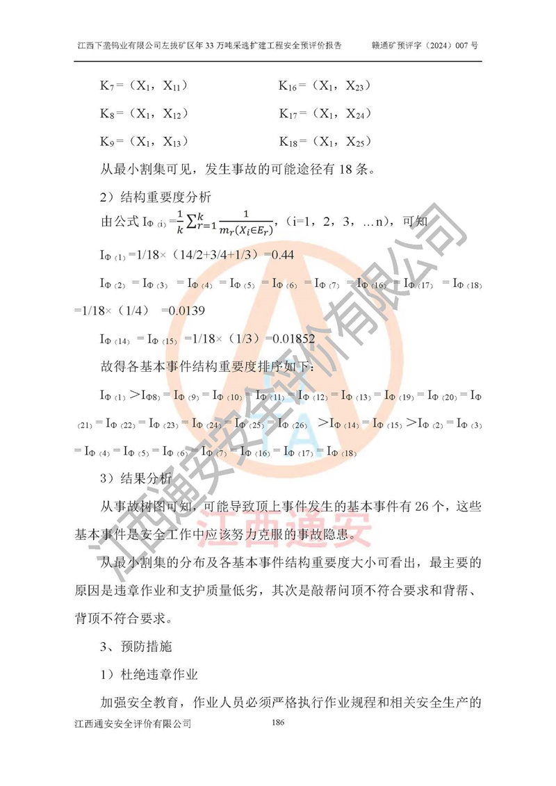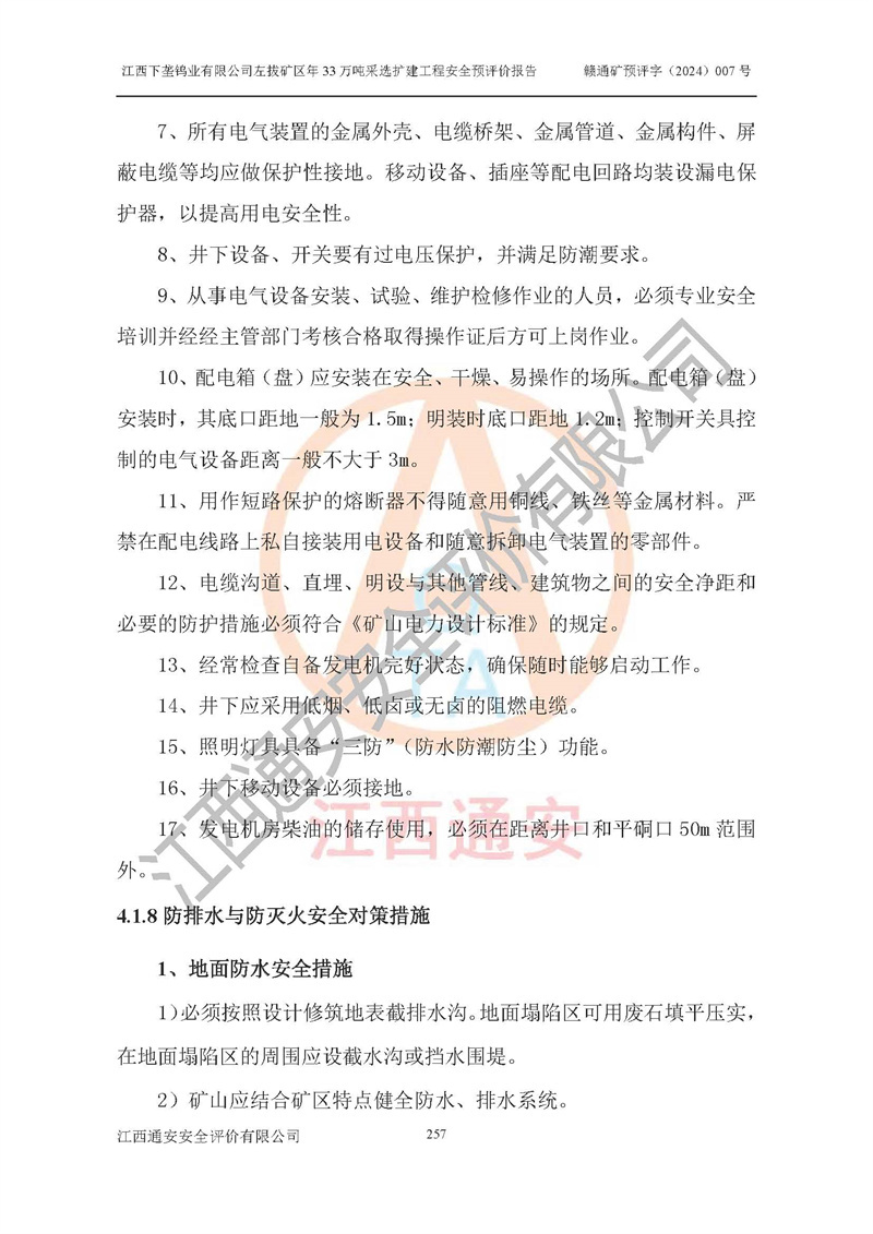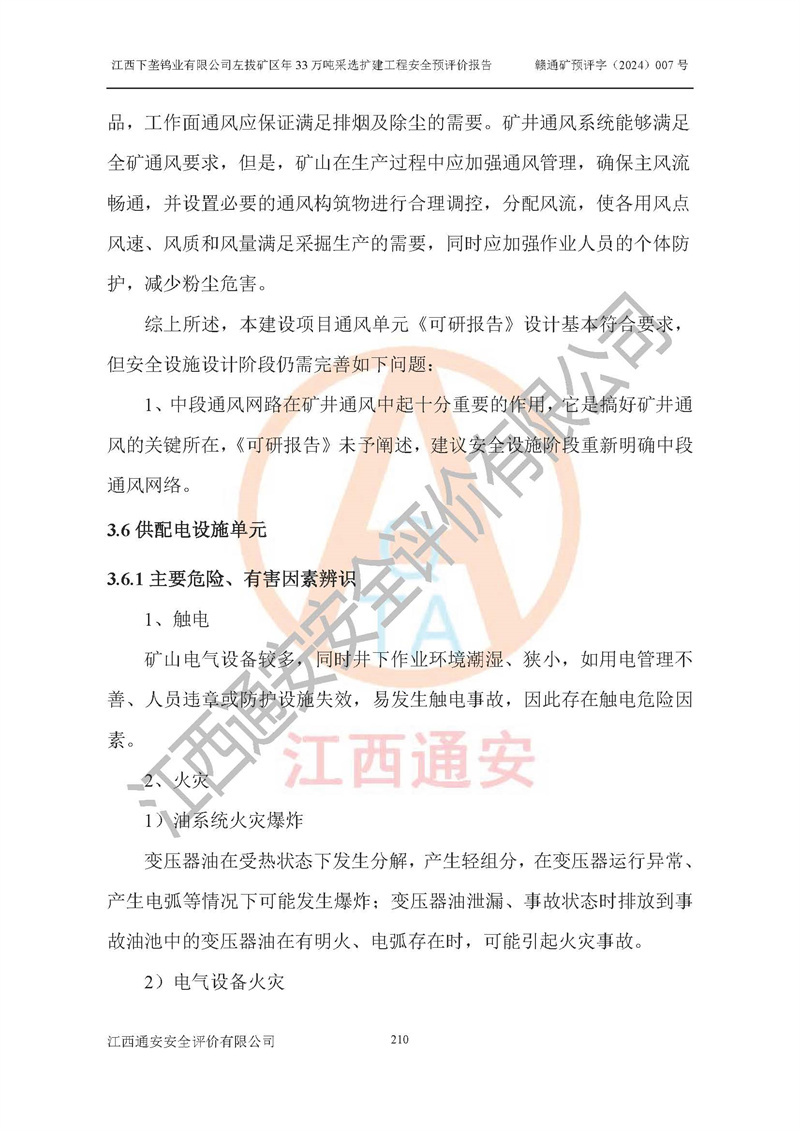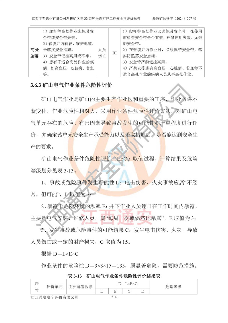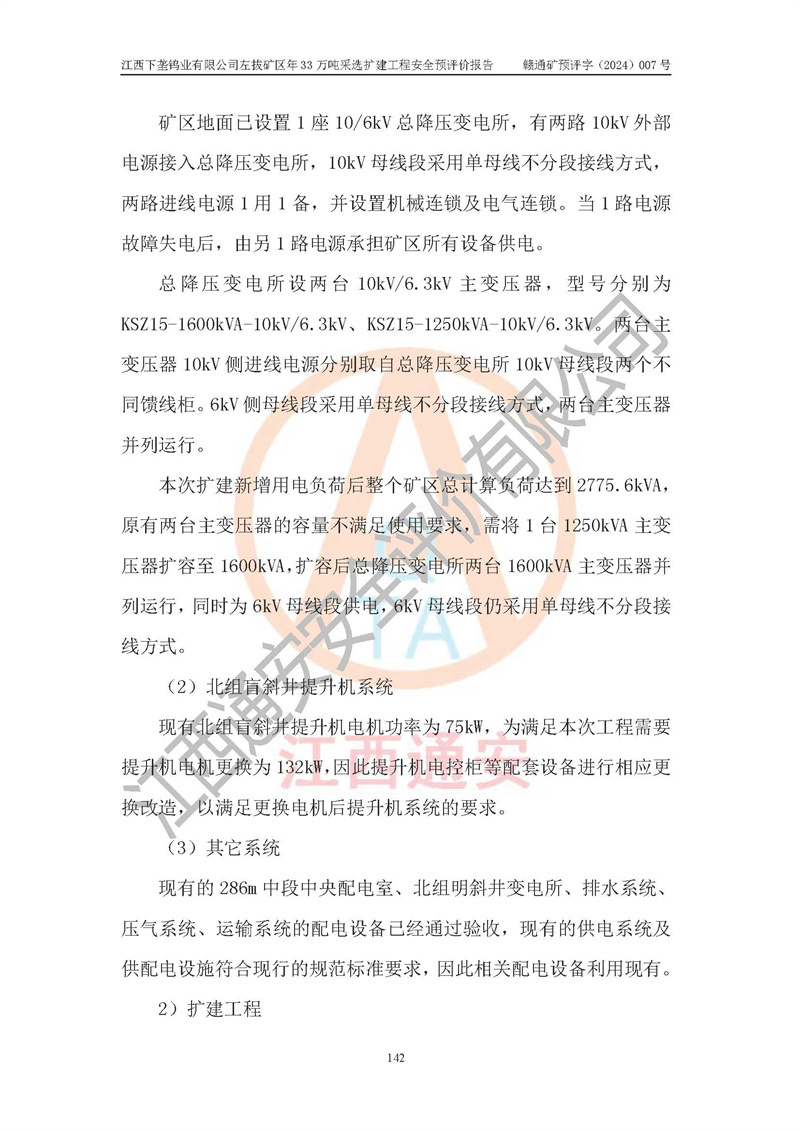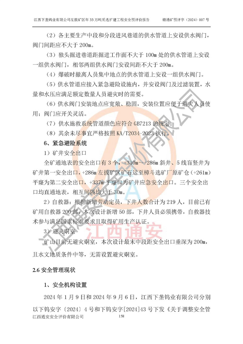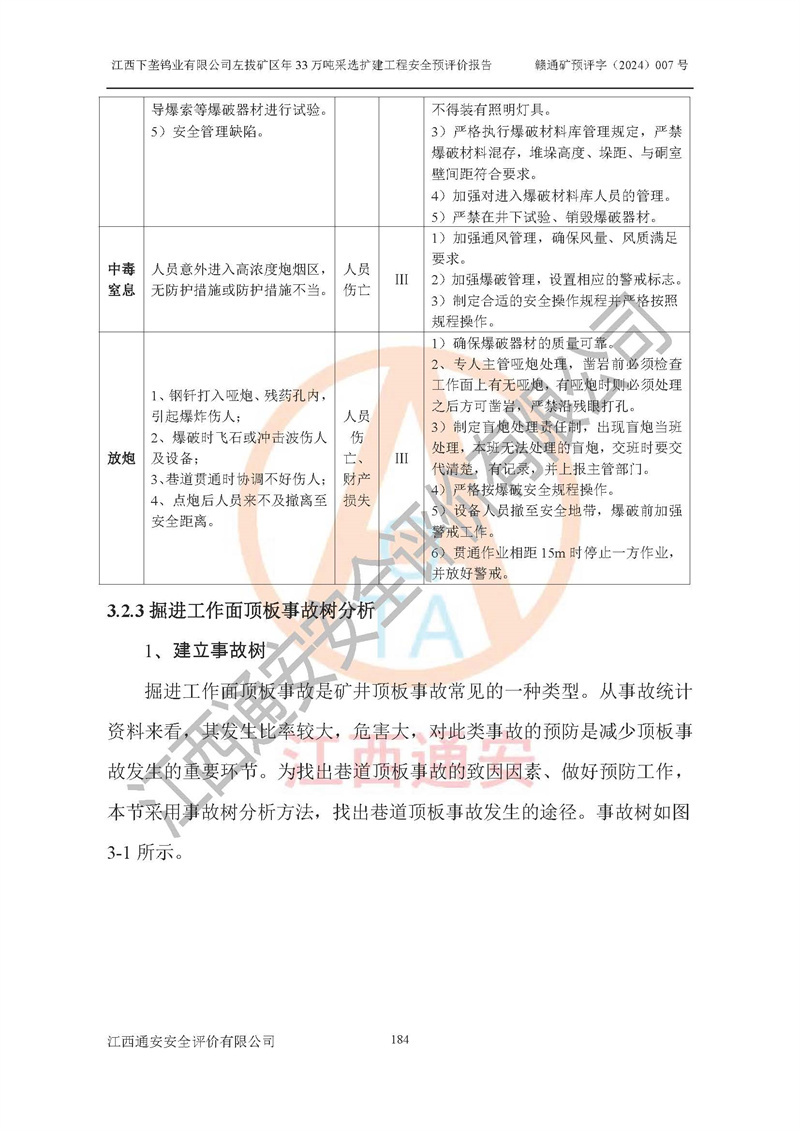 其它 | 江西下壟鎢業(yè)有限公司左拔礦區(qū)年33萬噸采選擴(kuò)建工程方案可行、選用的工藝和設(shè)備成熟、系統(tǒng)總體可靠,礦山具有建設(shè)、生產(chǎn)和管理的經(jīng)驗(yàn)和基礎(chǔ),在采納《可研報(bào)告》和本安全預(yù)評(píng)價(jià)報(bào)告提出的安全對(duì)策措施的基礎(chǔ)上,嚴(yán)把工程建設(shè)質(zhì)量關(guān)和現(xiàn)場(chǎng)安全管理,安全設(shè)施做到與主體工程同時(shí)設(shè)計(jì)、同時(shí)施工、同時(shí)投產(chǎn)使用,該擴(kuò)建工程安全風(fēng)險(xiǎn)處在可控制的范圍,符合**有關(guān)安全生產(chǎn)法律、法規(guī)、規(guī)章、標(biāo)準(zhǔn)和規(guī)范的要求。 | ||||