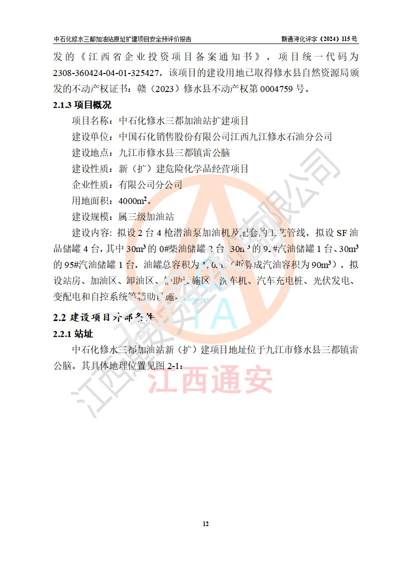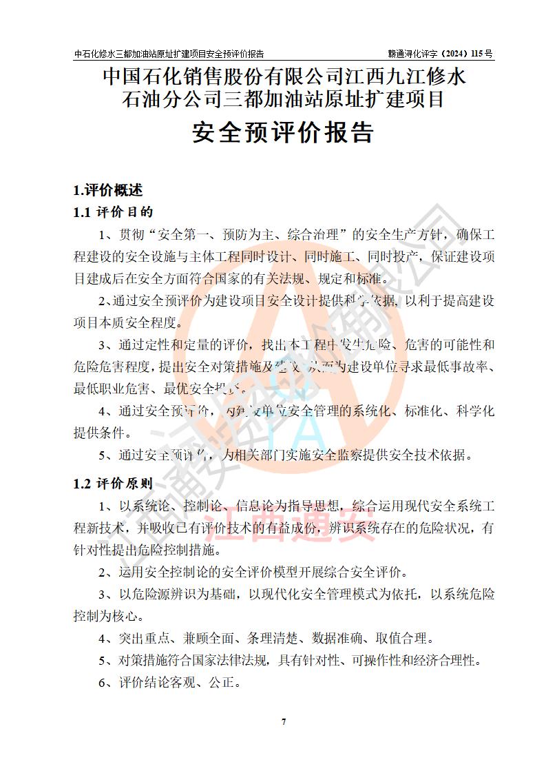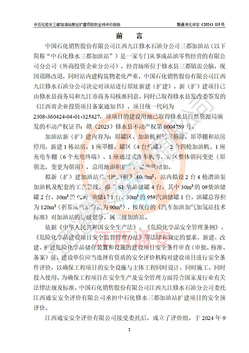評價報告名稱 | 中國石化銷售股份有限公司江西九江修水石油分公司三都加油站原址擴(kuò)建項目安全預(yù)評價報告 | |||