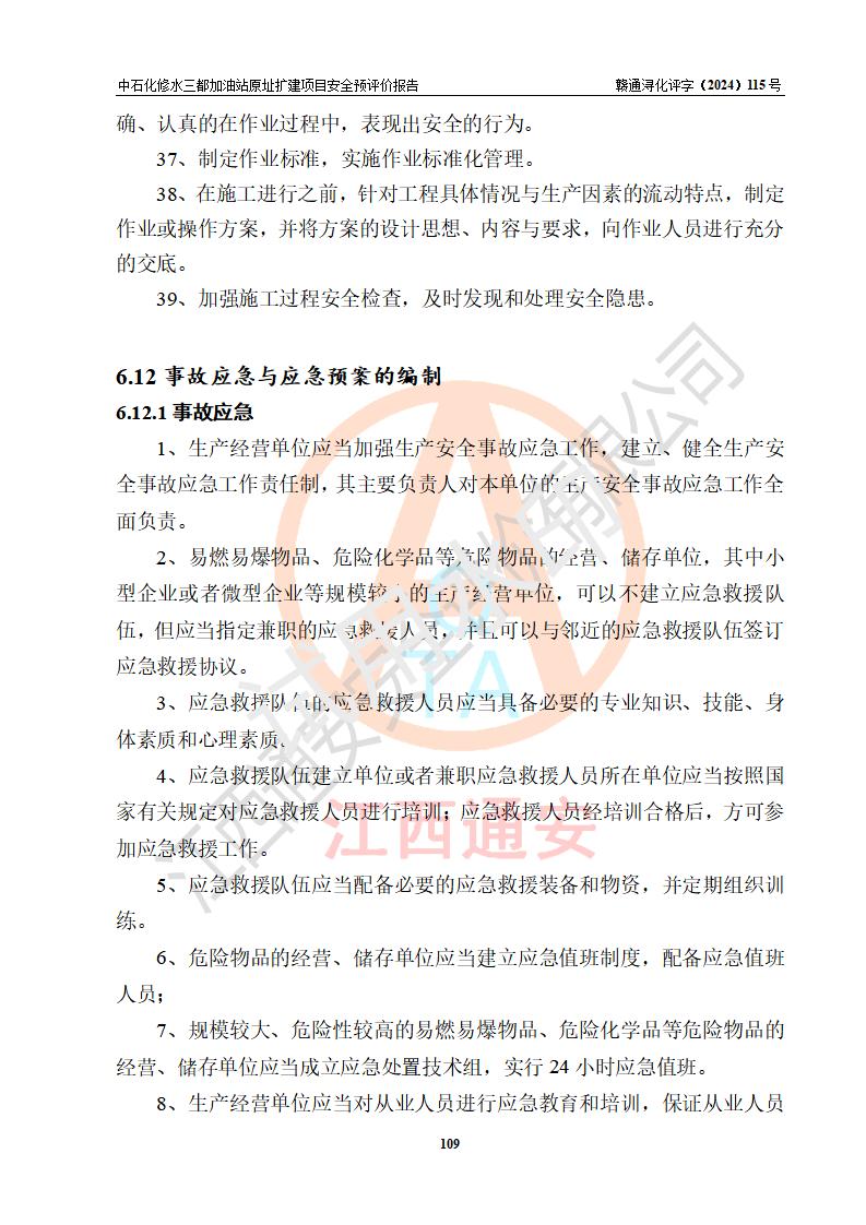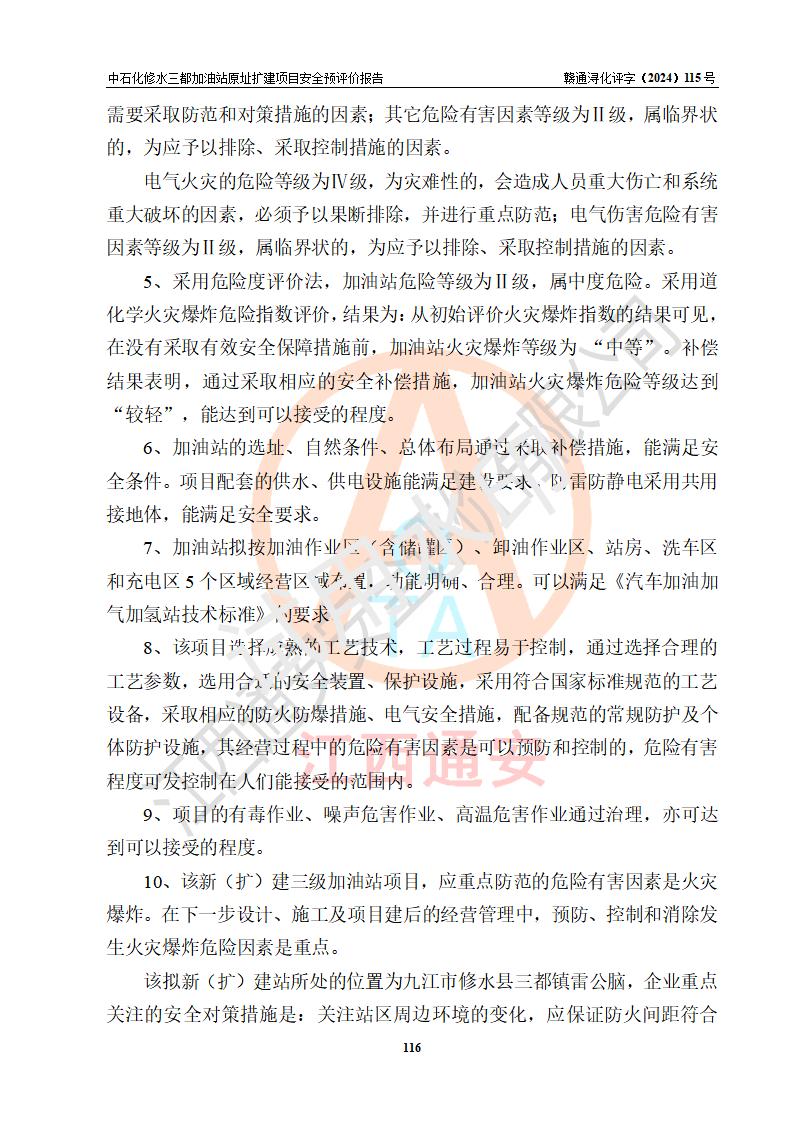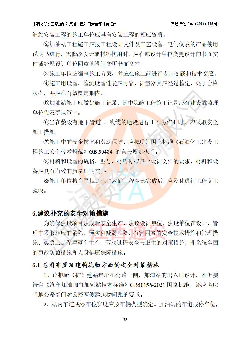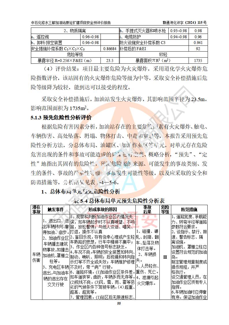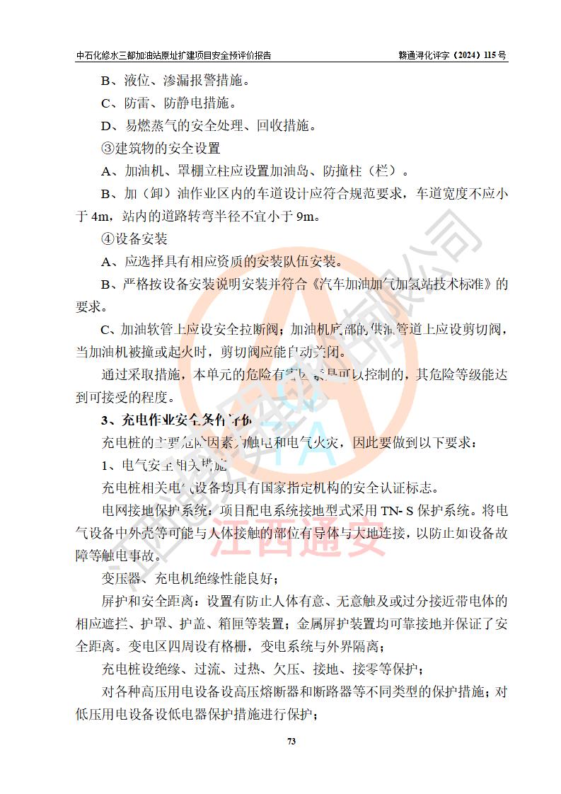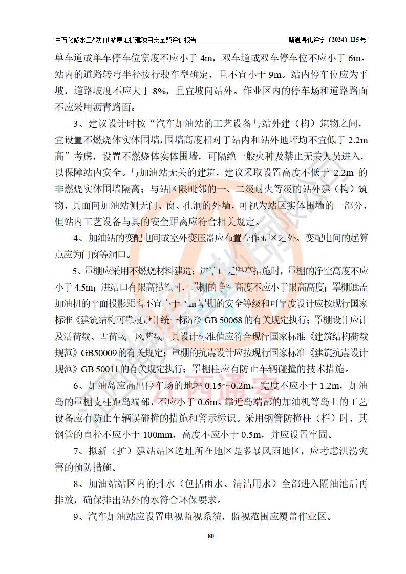 評價結(jié)論 | 中國石化銷售股份有限公司江西九江修水石油分公司三都加油站原址擴(kuò)建項目的選址、自然條件適宜該項目工程的建設(shè);項目規(guī)劃設(shè)計中的總體布局方案可行,符合有關(guān)法規(guī)、標(biāo)準(zhǔn)要求;項目選擇的工藝過程及設(shè)備設(shè)施的安全可靠性能達(dá)到**法規(guī)、標(biāo)準(zhǔn)規(guī)定要求;項目存在的危險有害因素可控,在落實項目建設(shè)方案及評價報告提出的有關(guān)安全對策措施后,其危險有害程度能達(dá)到可以接受的程度,項目建設(shè)能夠?qū)崿F(xiàn)安全運行的目標(biāo)。 | |||