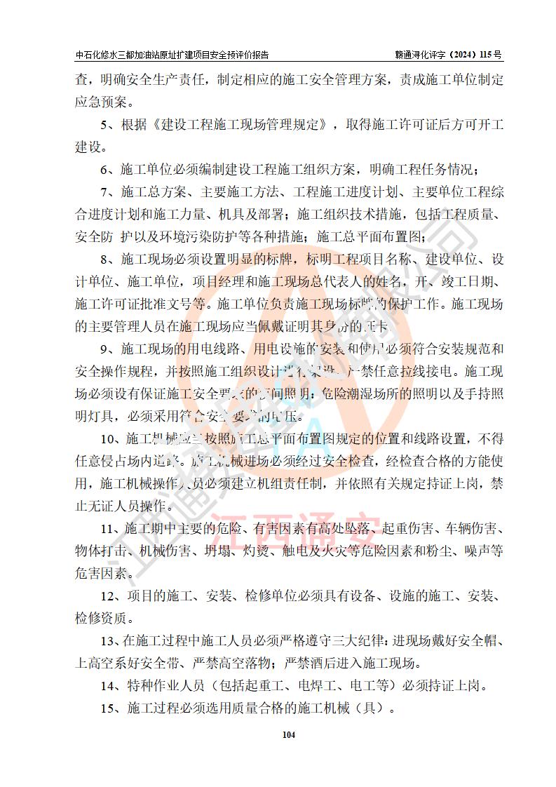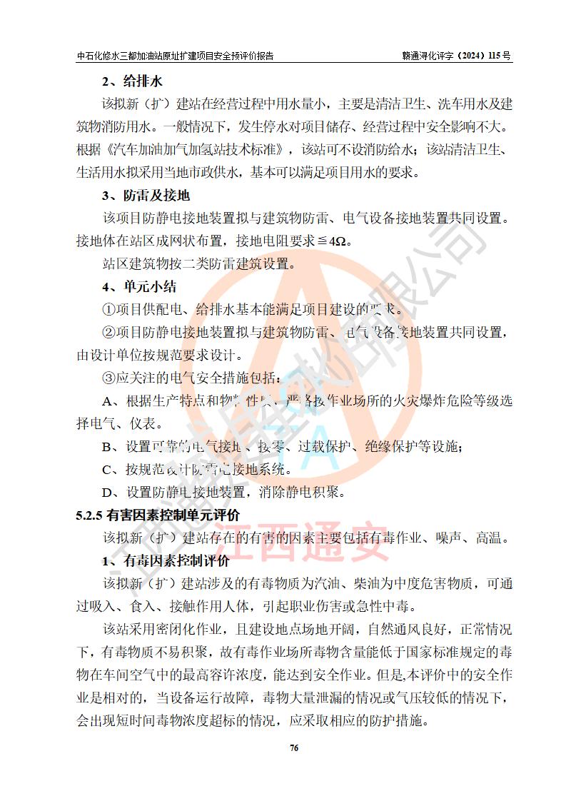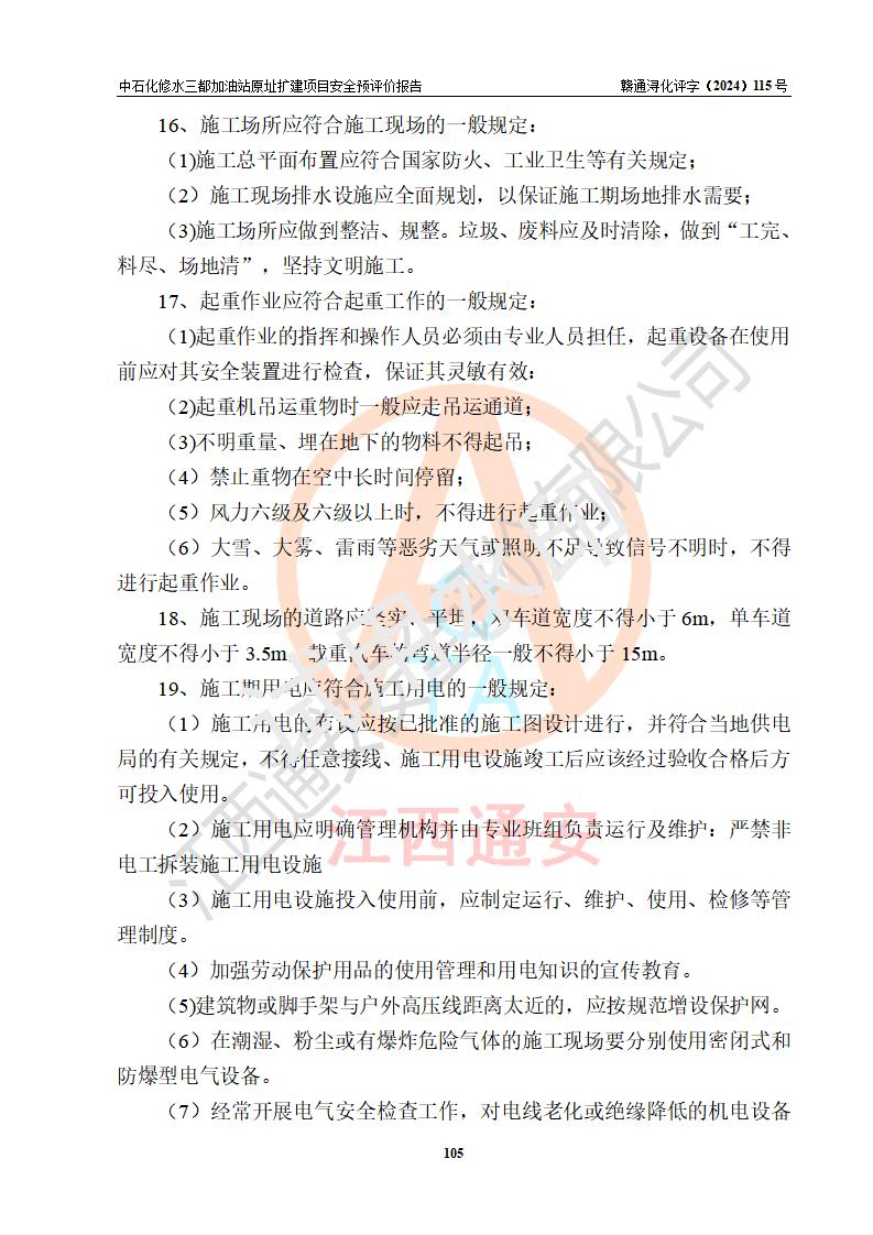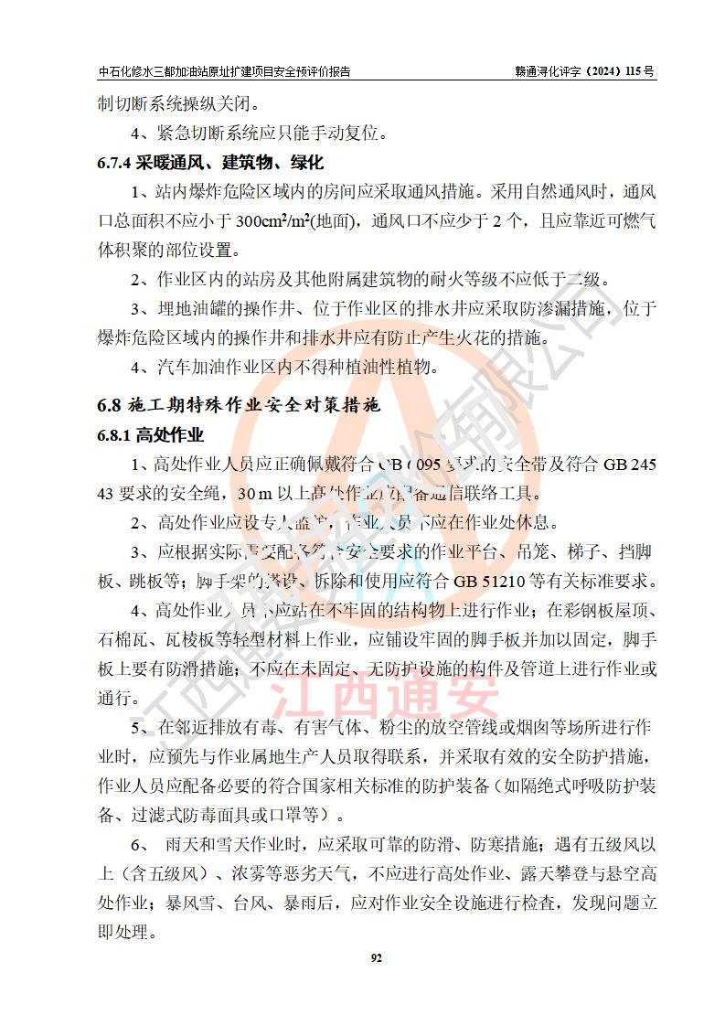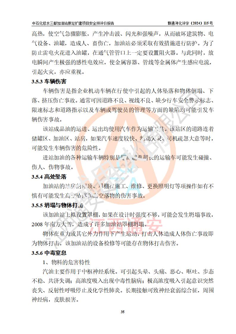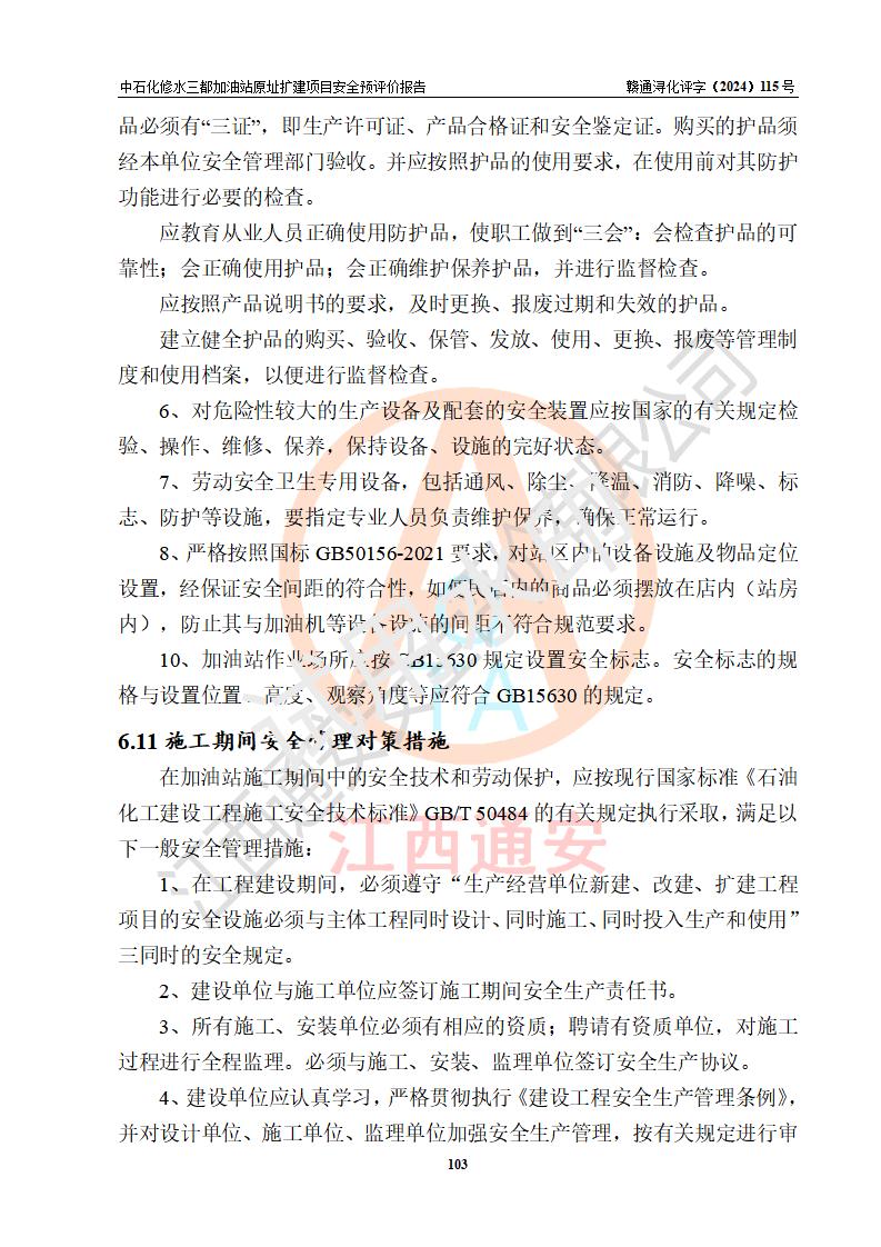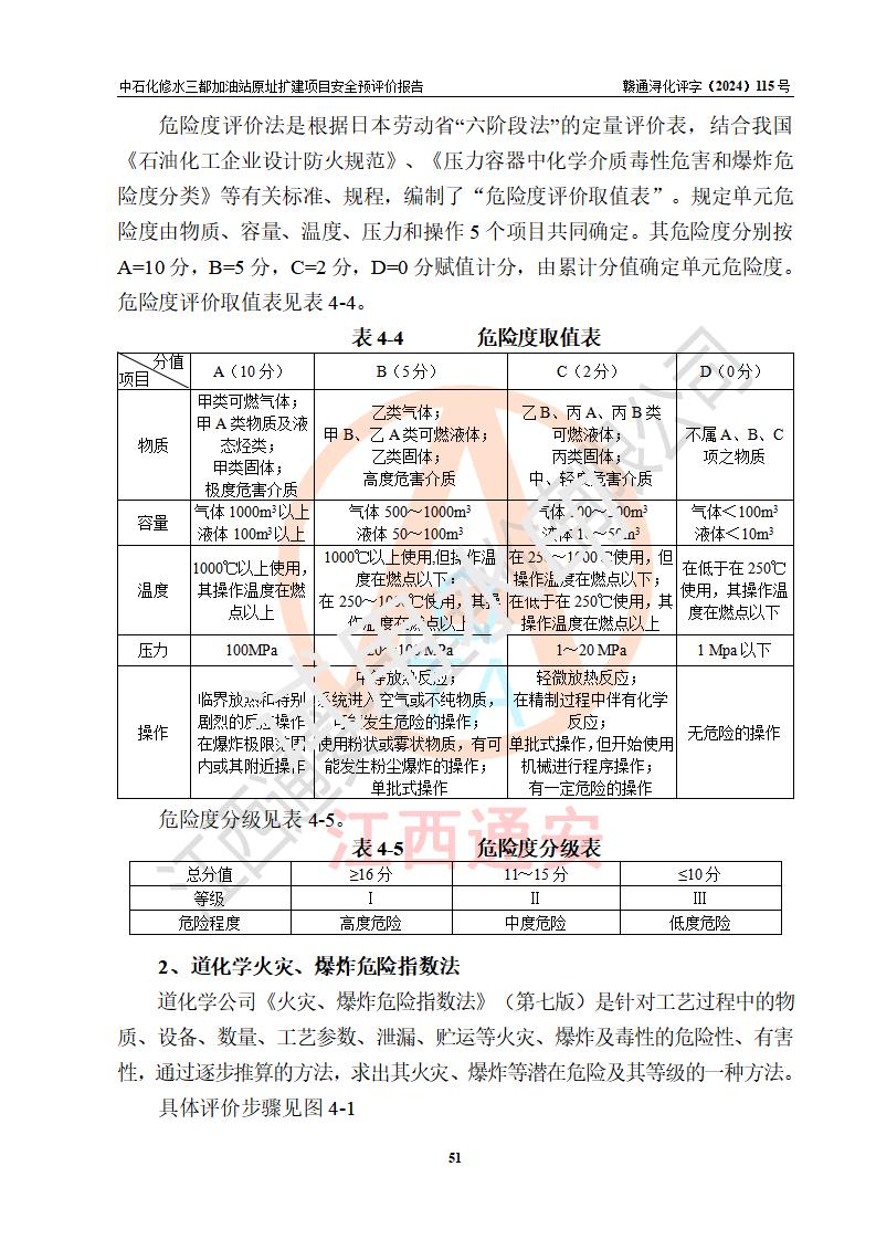 評價結(jié)論 | 中國石化銷售股份有限公司江西九江修水石油分公司三都加油站原址擴(kuò)建項目的選址、自然條件適宜該項目工程的建設(shè);項目規(guī)劃設(shè)計中的總體布局方案可行,符合有關(guān)法規(guī)、標(biāo)準(zhǔn)要求;項目選擇的工藝過程及設(shè)備設(shè)施的安全可靠性能達(dá)到**法規(guī)、標(biāo)準(zhǔn)規(guī)定要求;項目存在的危險有害因素可控,在落實項目建設(shè)方案及評價報告提出的有關(guān)安全對策措施后,其危險有害程度能達(dá)到可以接受的程度,項目建設(shè)能夠?qū)崿F(xiàn)安全運行的目標(biāo)。 | |||