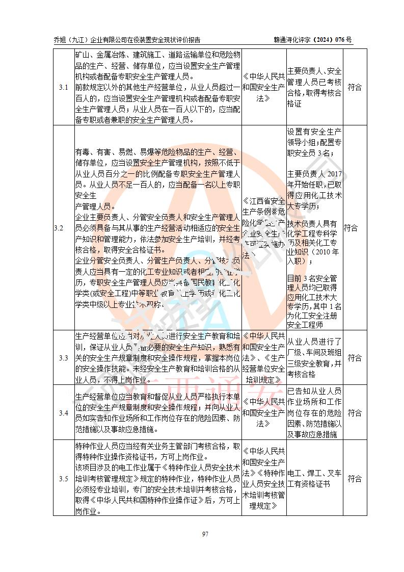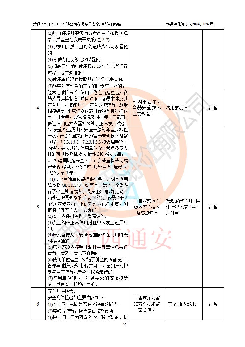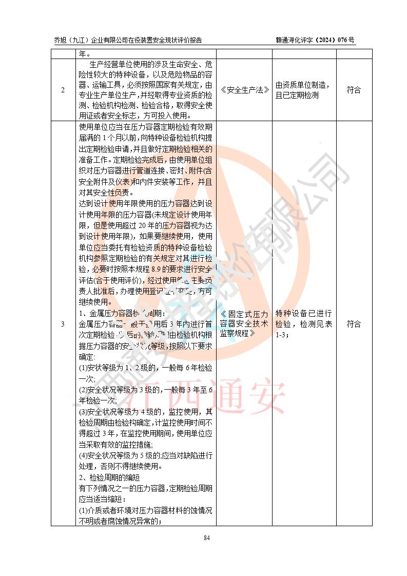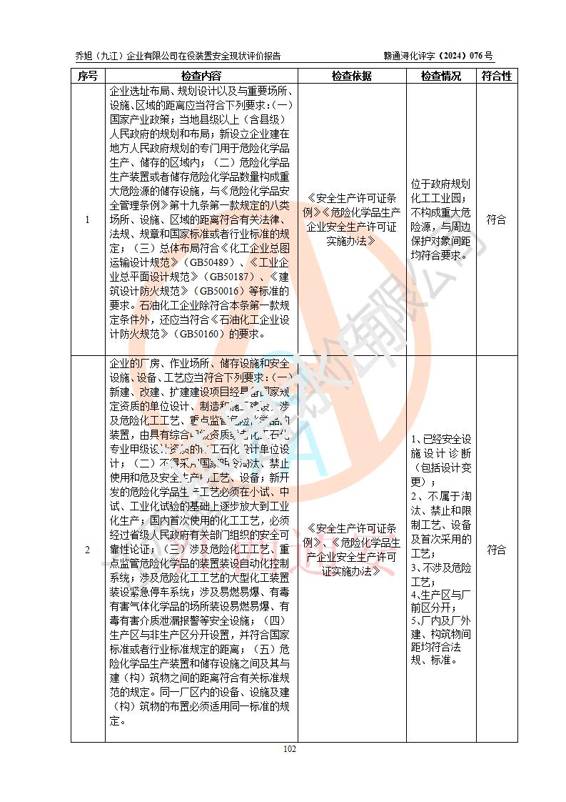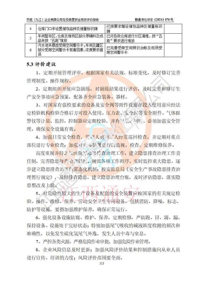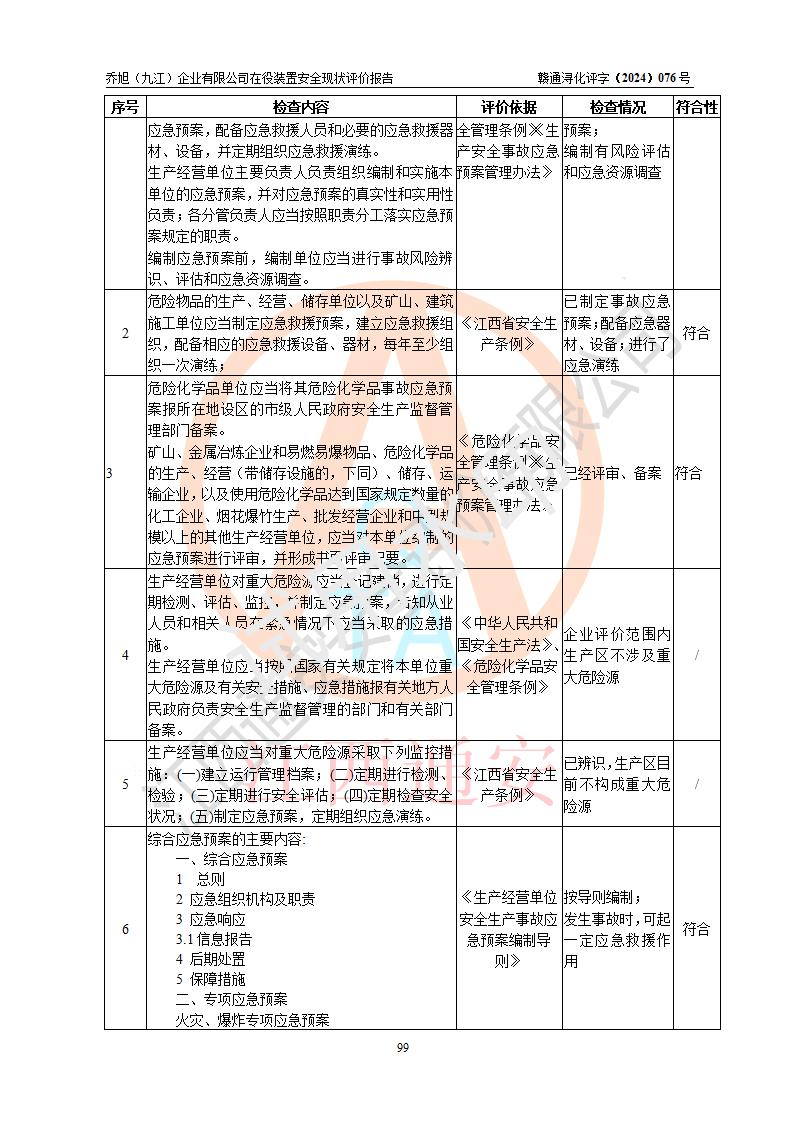 評(píng)價(jià)報(bào)告名稱 | 喬旭(九江)企業(yè)有限公司在役裝置安全現(xiàn)狀評(píng)價(jià) | |||||