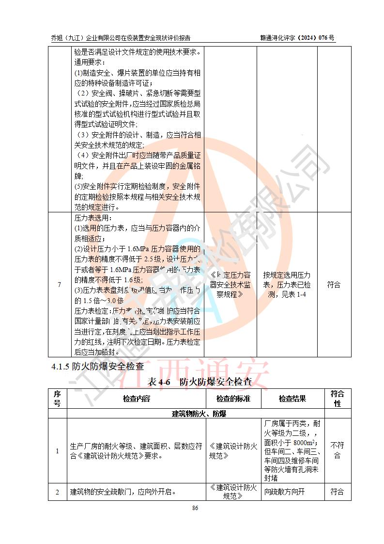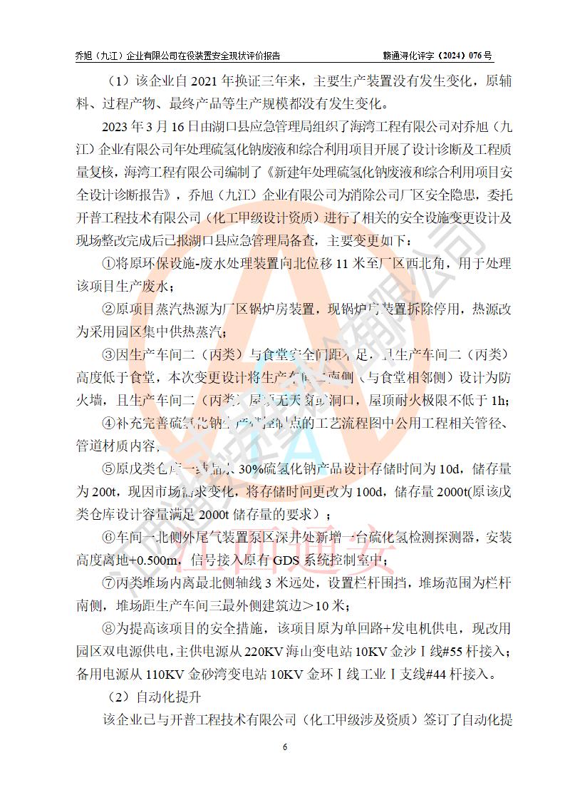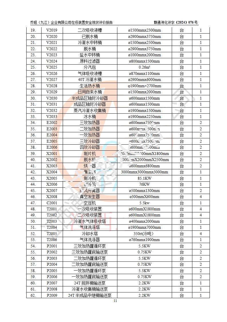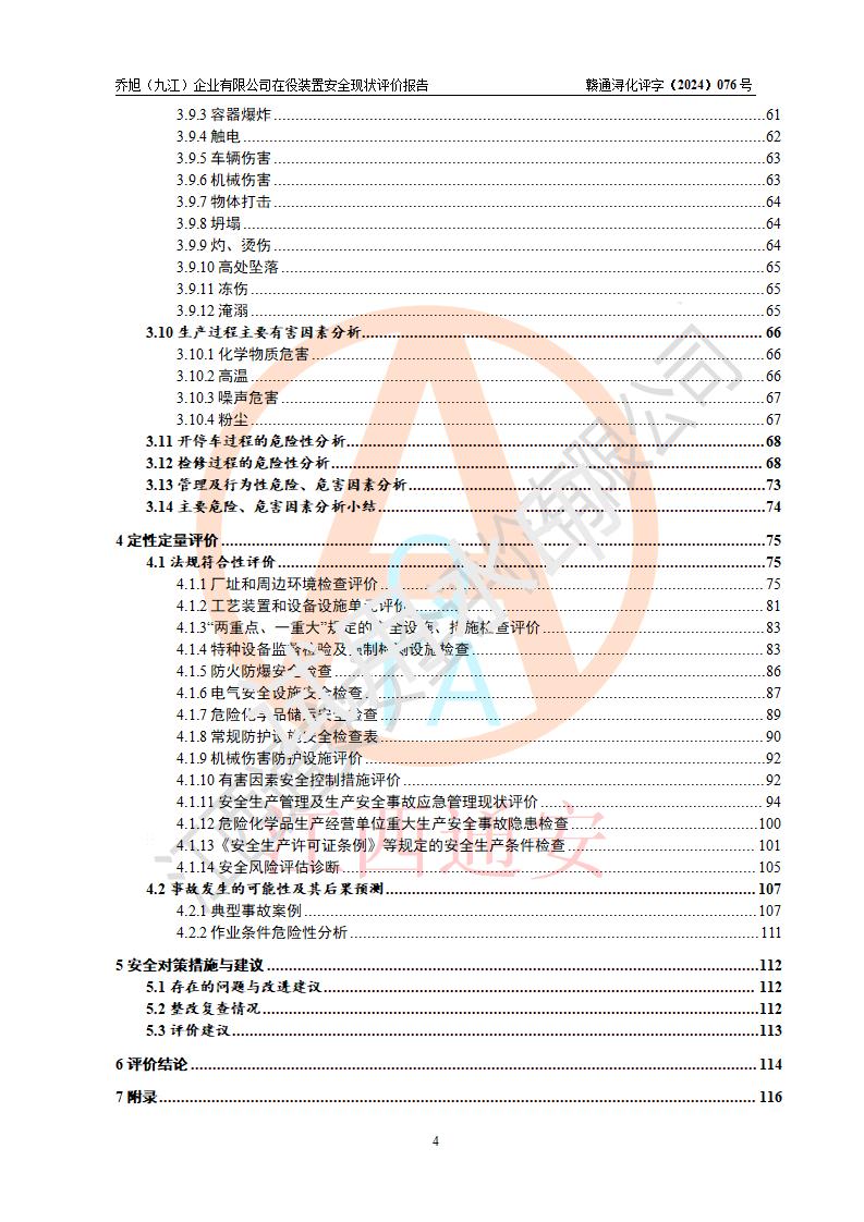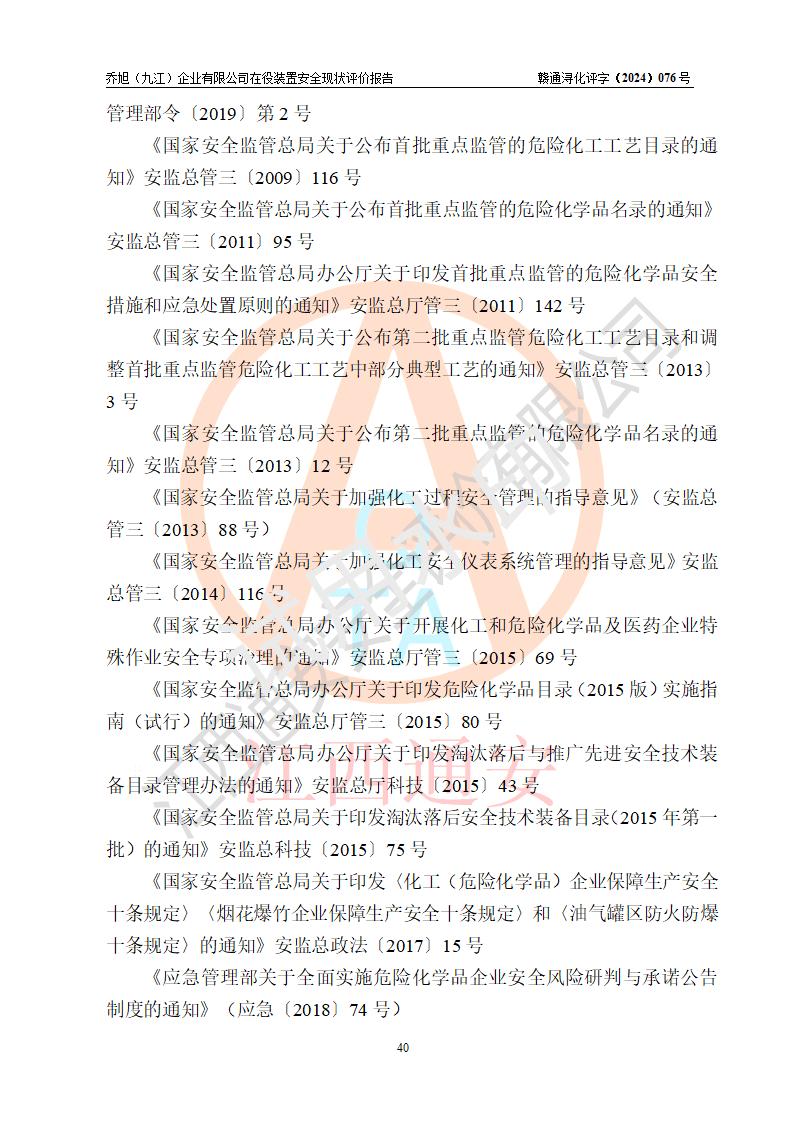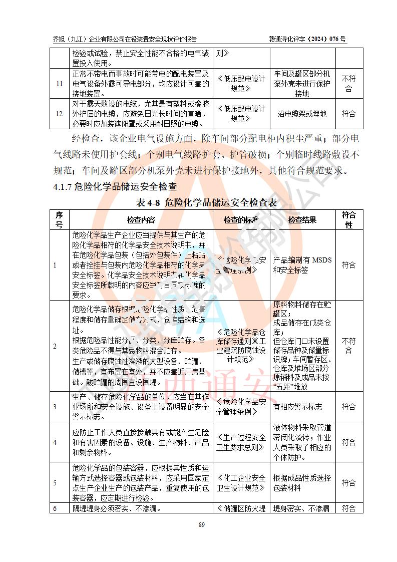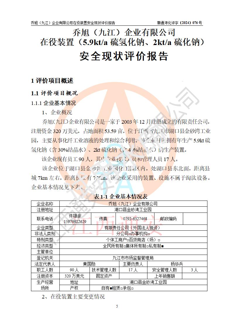 評(píng)價(jià)報(bào)告名稱 | 喬旭(九江)企業(yè)有限公司在役裝置安全現(xiàn)狀評(píng)價(jià) | |||||