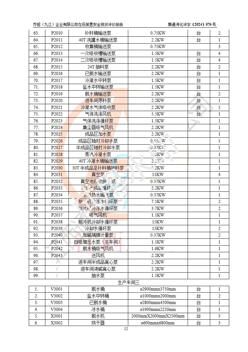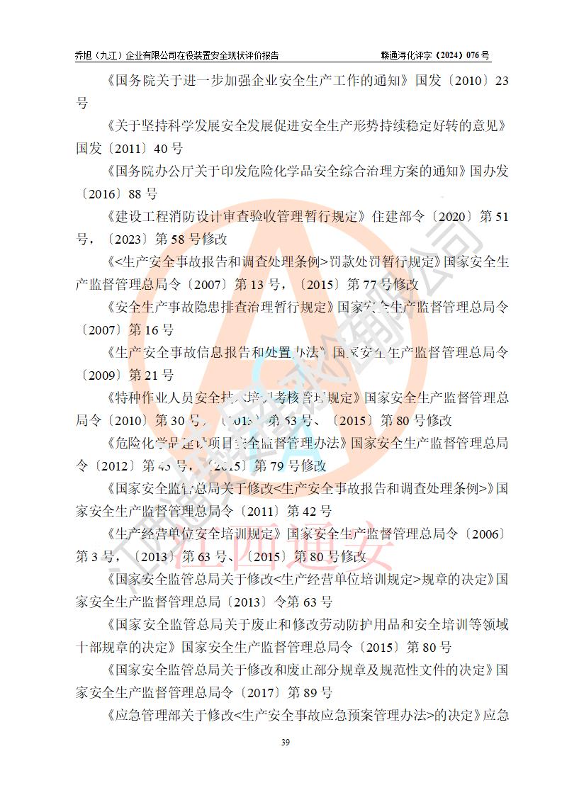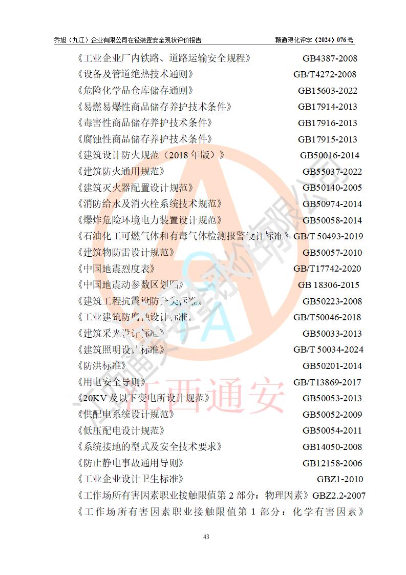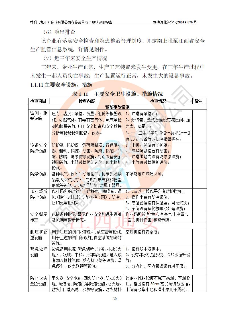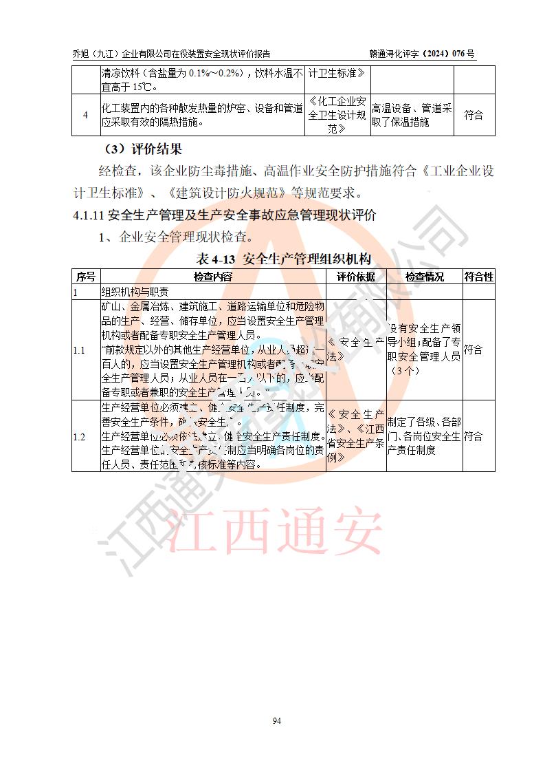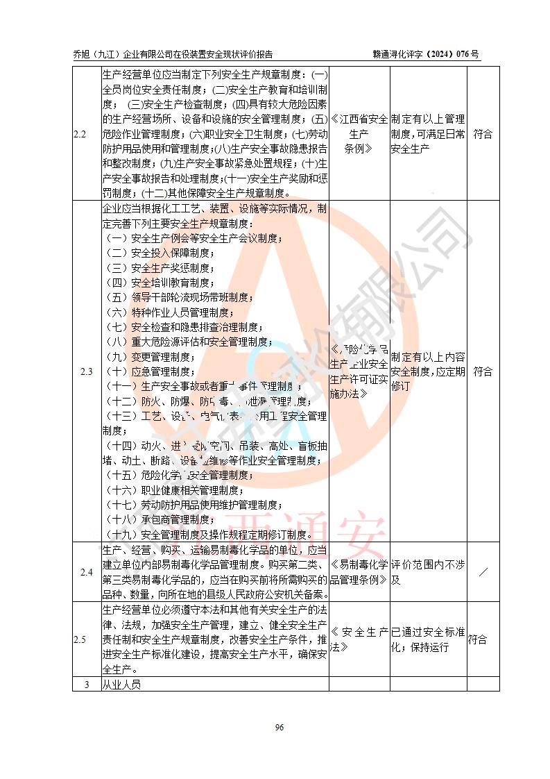 評(píng)價(jià)報(bào)告名稱 | 喬旭(九江)企業(yè)有限公司在役裝置安全現(xiàn)狀評(píng)價(jià) | |||||