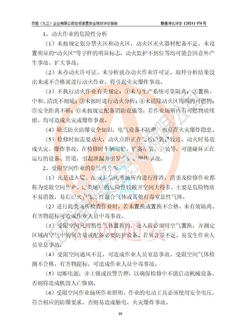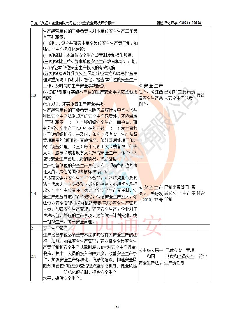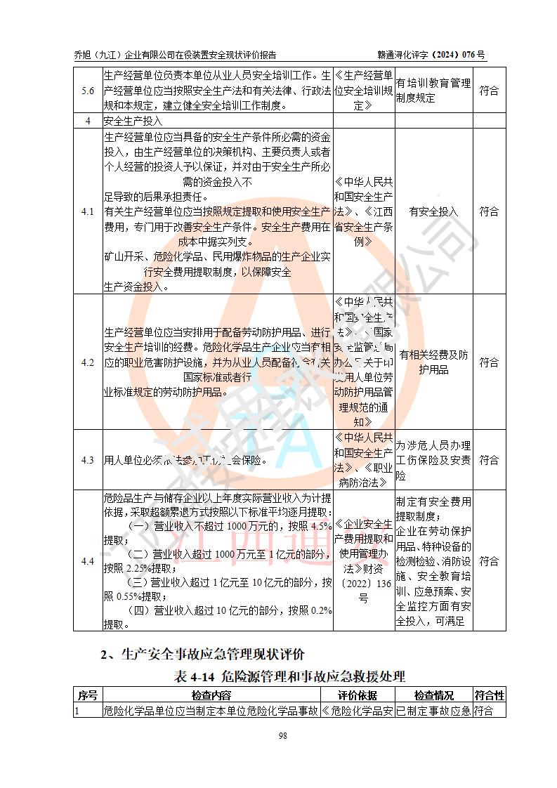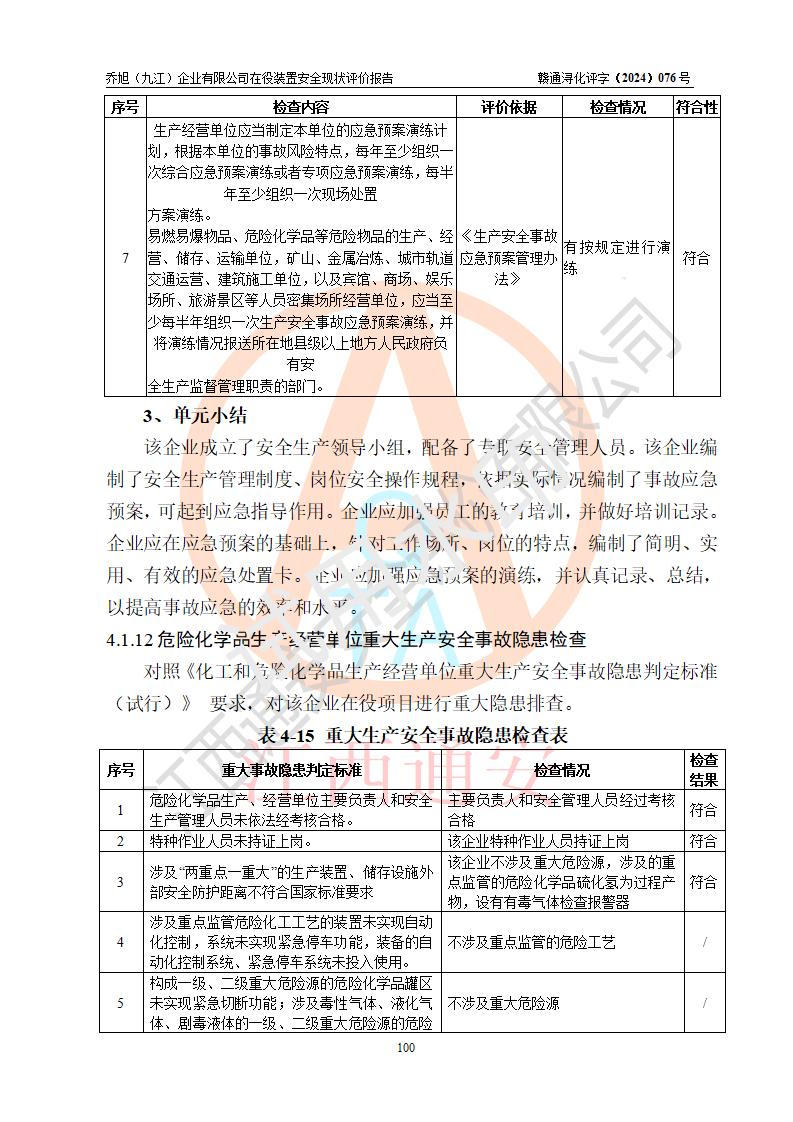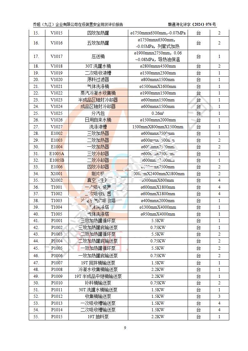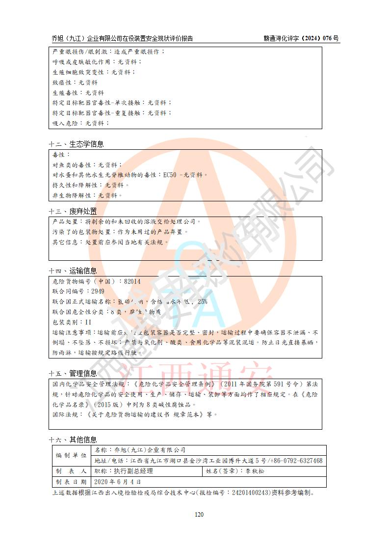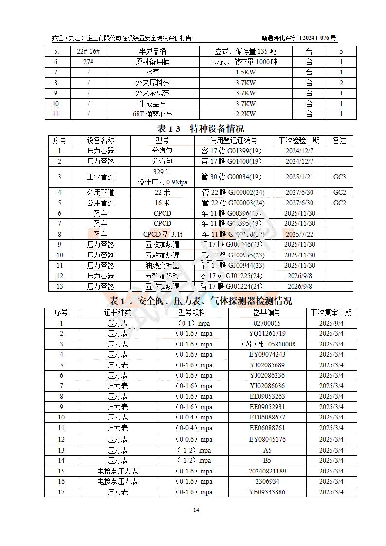 評(píng)價(jià)報(bào)告名稱 | 喬旭(九江)企業(yè)有限公司在役裝置安全現(xiàn)狀評(píng)價(jià) | |||||