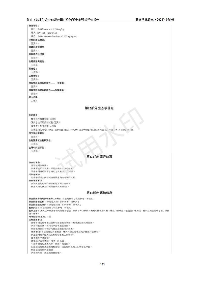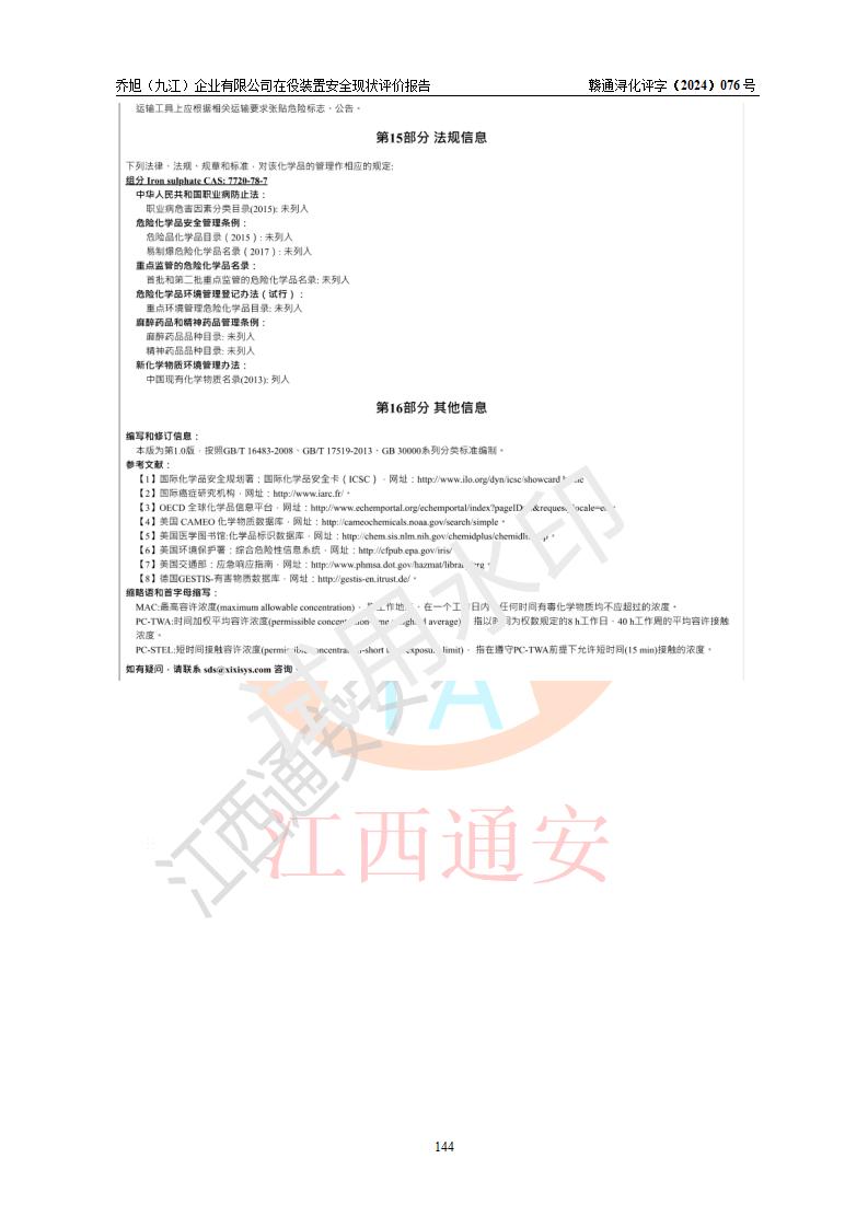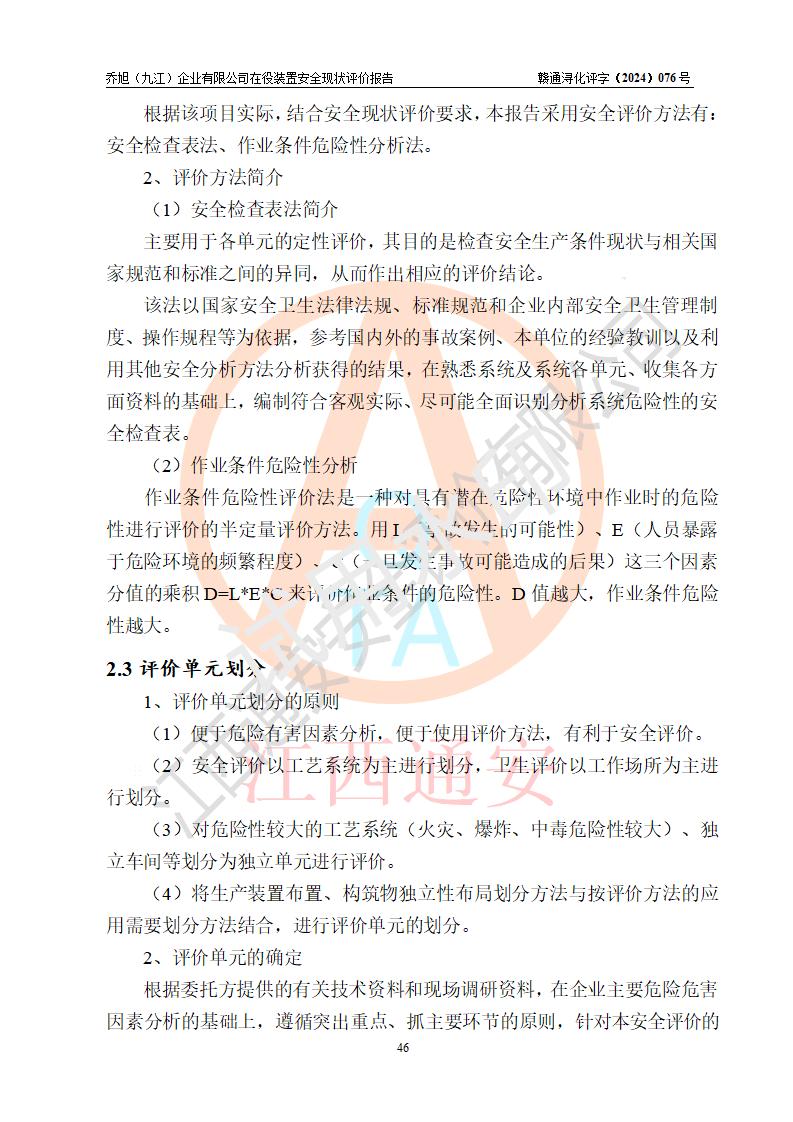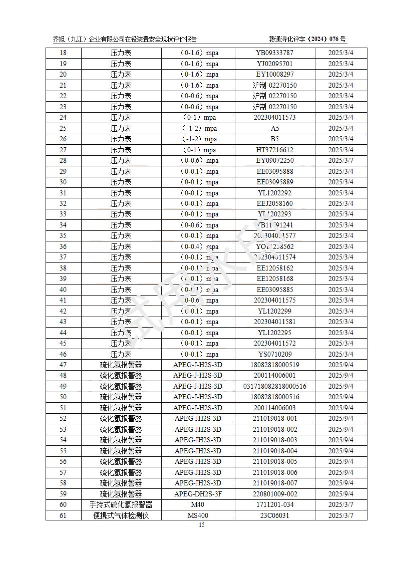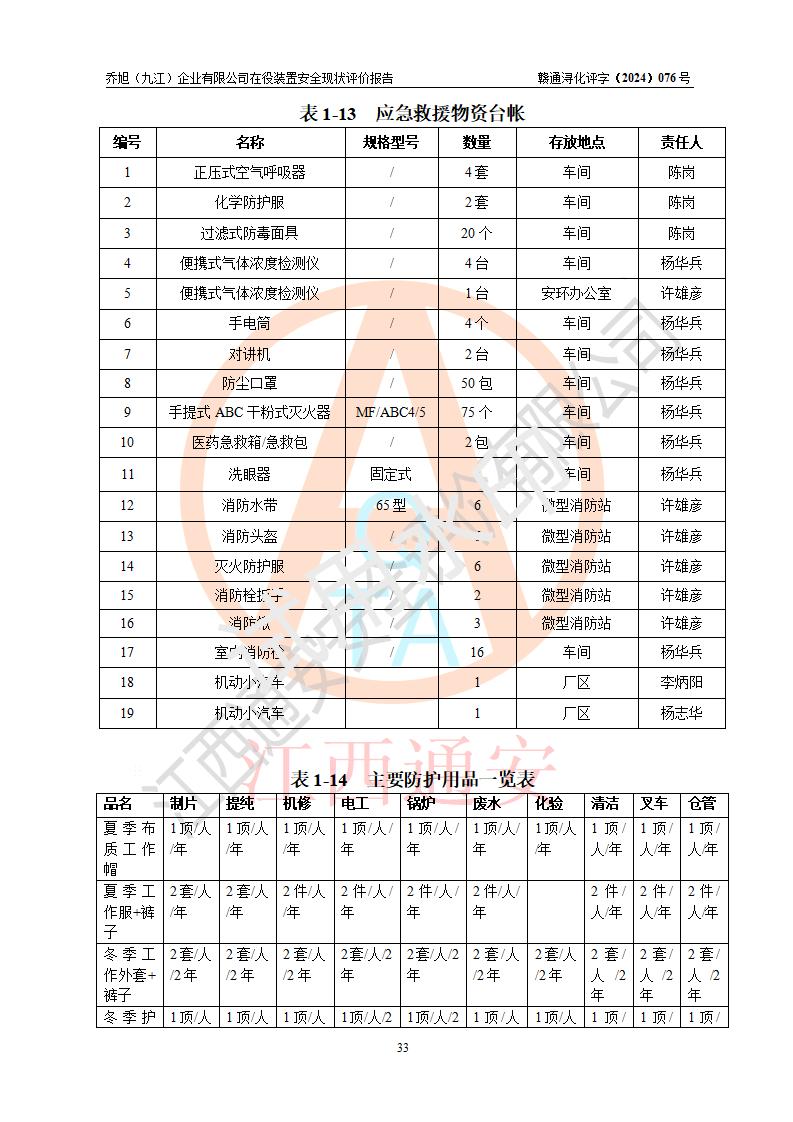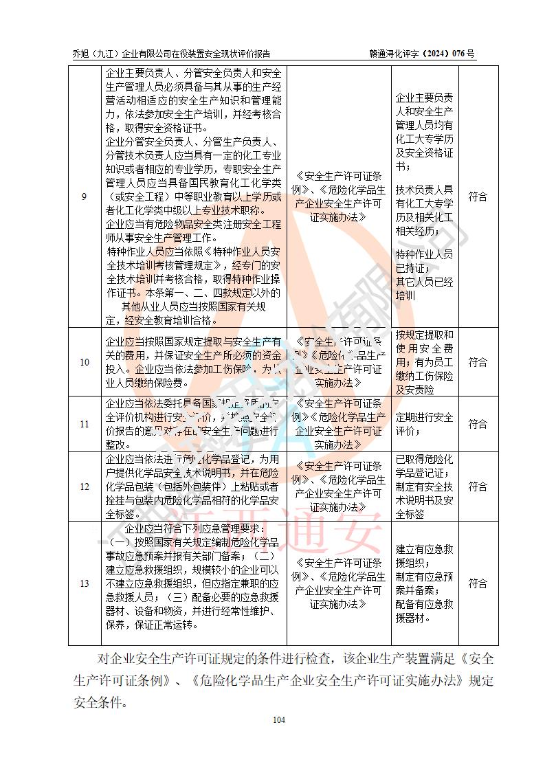 評(píng)價(jià)報(bào)告名稱 | 喬旭(九江)企業(yè)有限公司在役裝置安全現(xiàn)狀評(píng)價(jià) | |||||