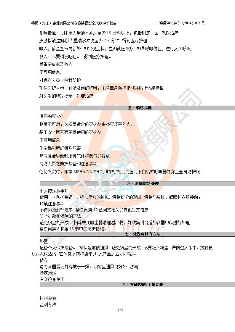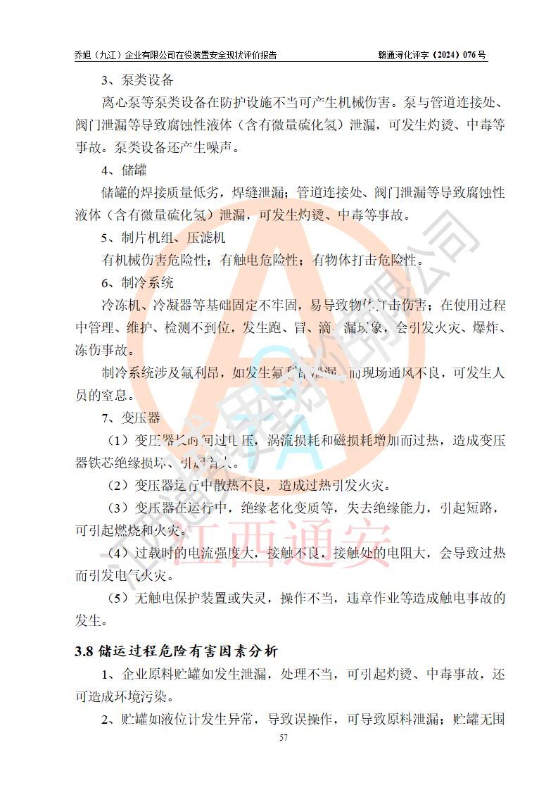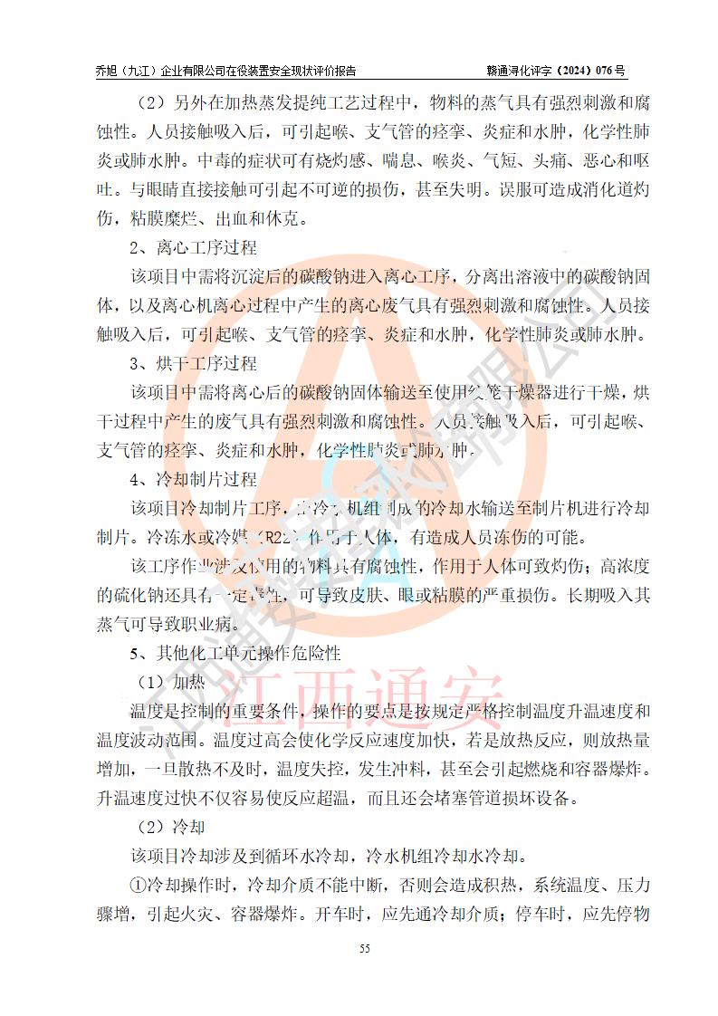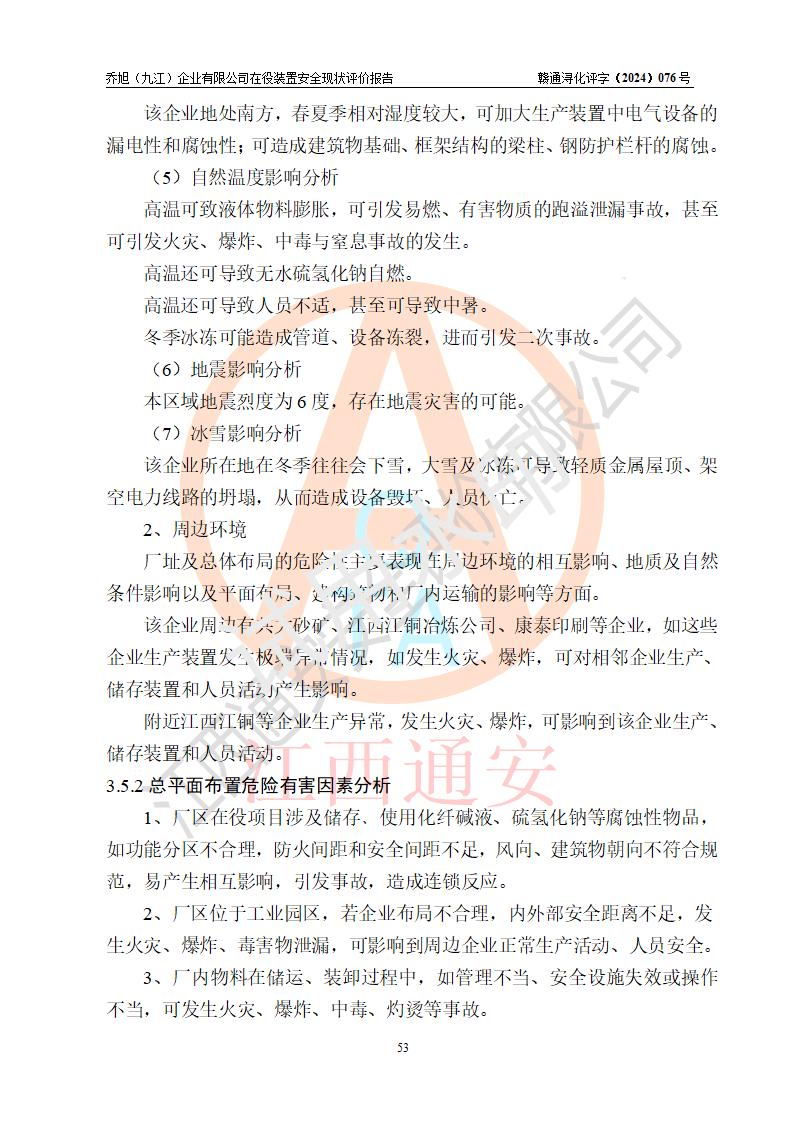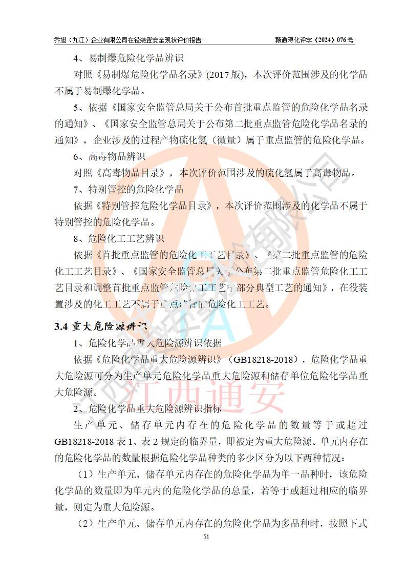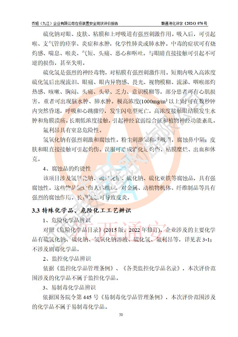 評(píng)價(jià)結(jié)論 | 評(píng)價(jià)結(jié)論:?jiǎn)绦瘢ň沤┢髽I(yè)有限公司現(xiàn)場(chǎng)總體布局、車間設(shè)備布置情況與安全設(shè)計(jì)圖紙一致(化工**資質(zhì));企業(yè)在役裝置不涉及危險(xiǎn)工藝、重大危險(xiǎn)源;儀表方面已按現(xiàn)有設(shè)計(jì)要求設(shè)置,且自動(dòng)化提升改造已**按文件要求期限內(nèi)完成;企業(yè)主要負(fù)責(zé)人、技術(shù)負(fù)責(zé)人有相關(guān)化學(xué)專業(yè)學(xué)歷,且有3年以上化工行業(yè)從業(yè)經(jīng)歷,企業(yè)主要負(fù)責(zé)人及安全管理人員已取得危險(xiǎn)化學(xué)品生產(chǎn)企業(yè)主要負(fù)責(zé)人及安全管理人員考核合格證。 喬旭(九江)企業(yè)有限公司在役5.9kt/a硫氫化鈉(含30%結(jié)晶水)、2kt/a硫化鈉(含40%結(jié)晶水)生產(chǎn)裝置配套安全裝置、防護(hù)設(shè)施以及采取的安全技術(shù)措施及安全管理措施符合**有關(guān)法規(guī)、標(biāo)準(zhǔn)、規(guī)范要求,符合《危險(xiǎn)化學(xué)品生產(chǎn)企業(yè)安全生產(chǎn)許可證實(shí)施辦法》規(guī)定的安全生產(chǎn)條件,在役裝置風(fēng)險(xiǎn)可控,可滿足安全生產(chǎn)條件。 | |||||