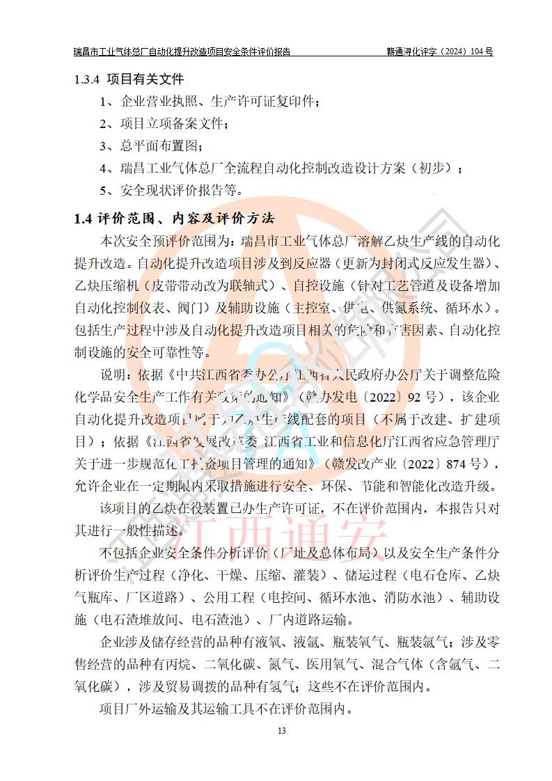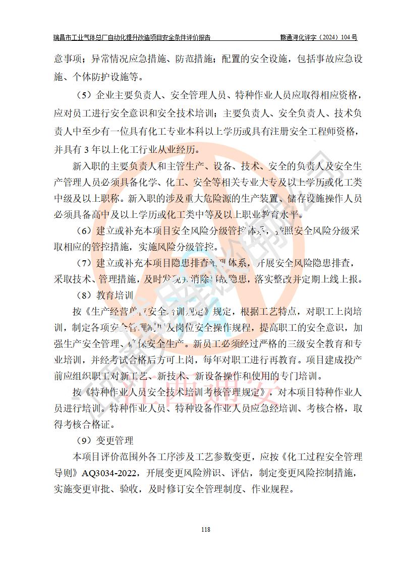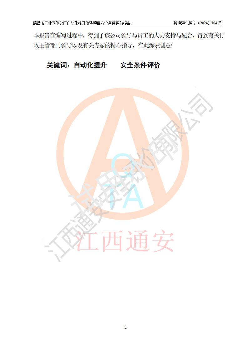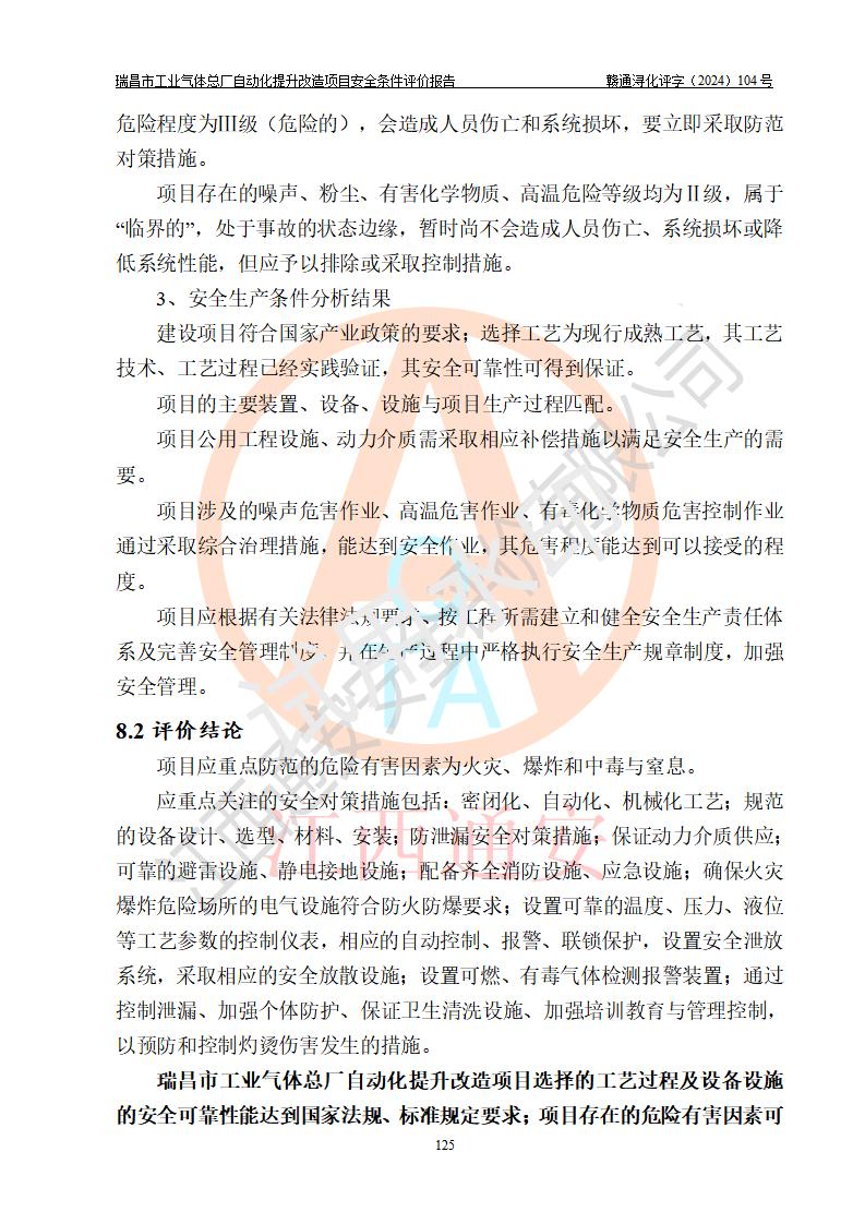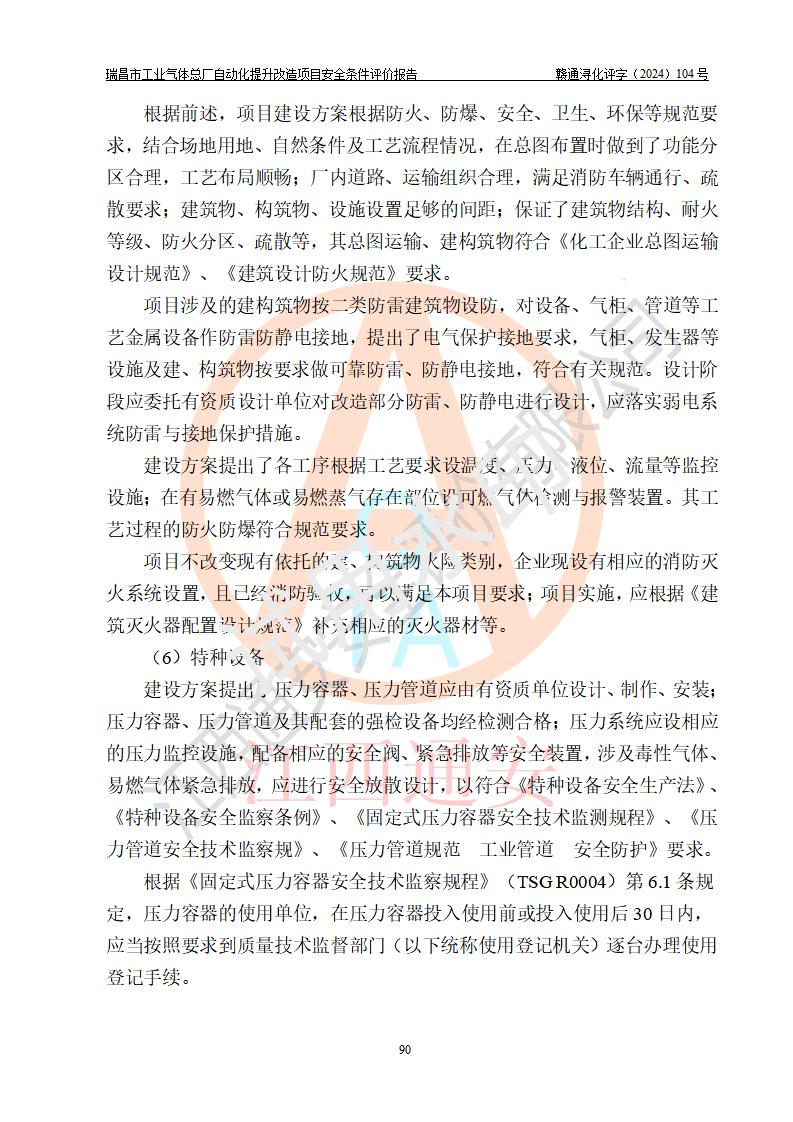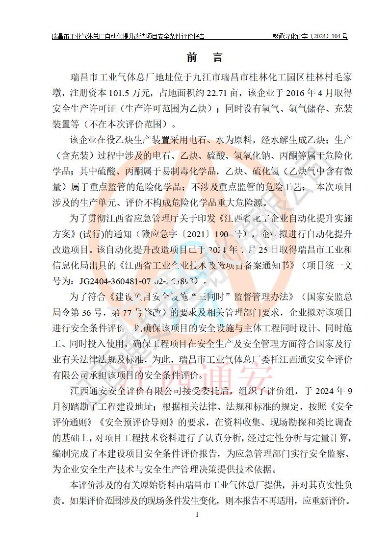 評價報告名稱 | 瑞昌市工業(yè)氣體總廠自動化提升改造項目安全條件評價報告 | ||||