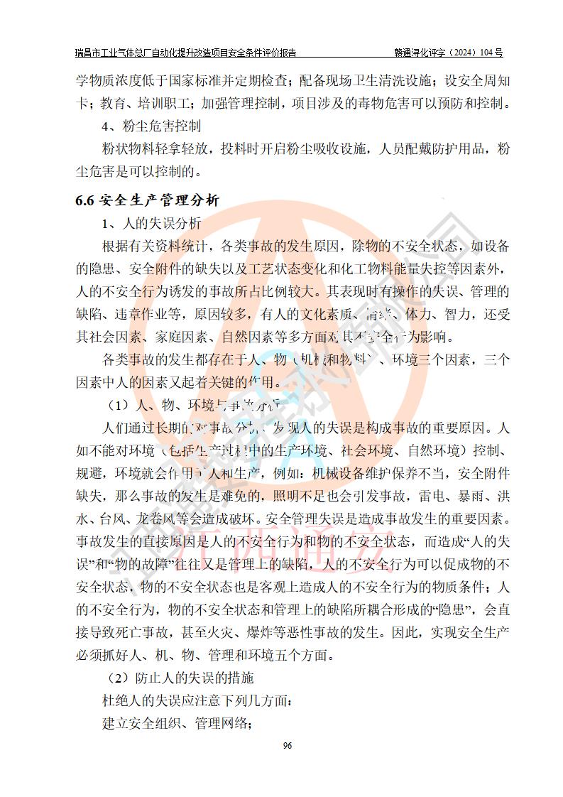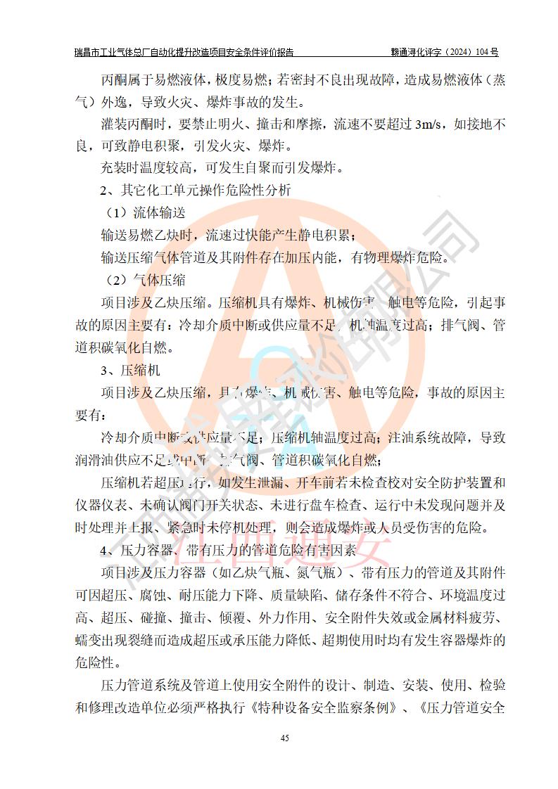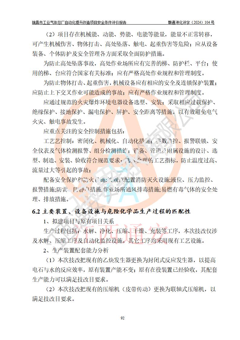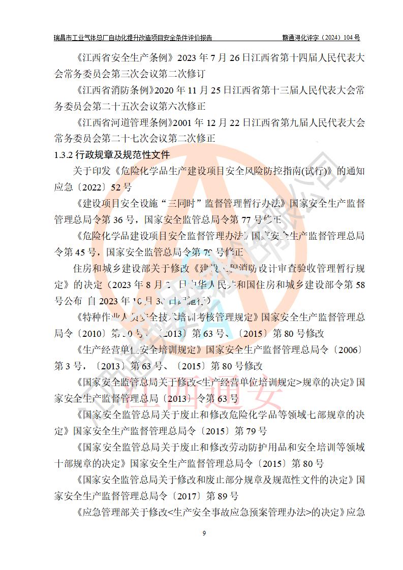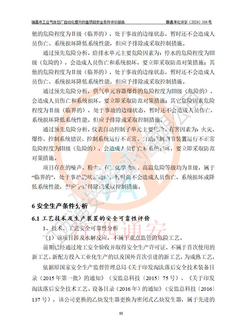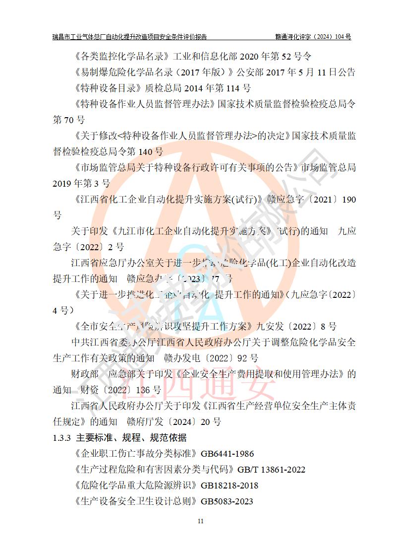 評價報告名稱 | 瑞昌市工業(yè)氣體總廠自動化提升改造項目安全條件評價報告 | ||||