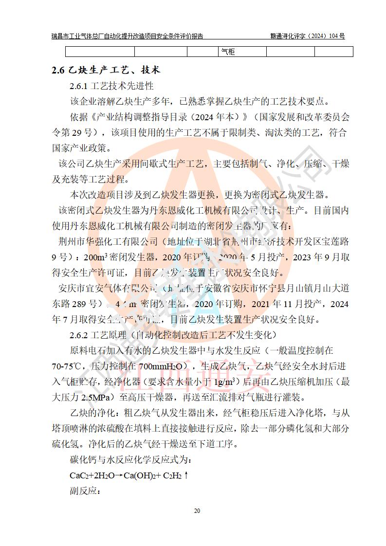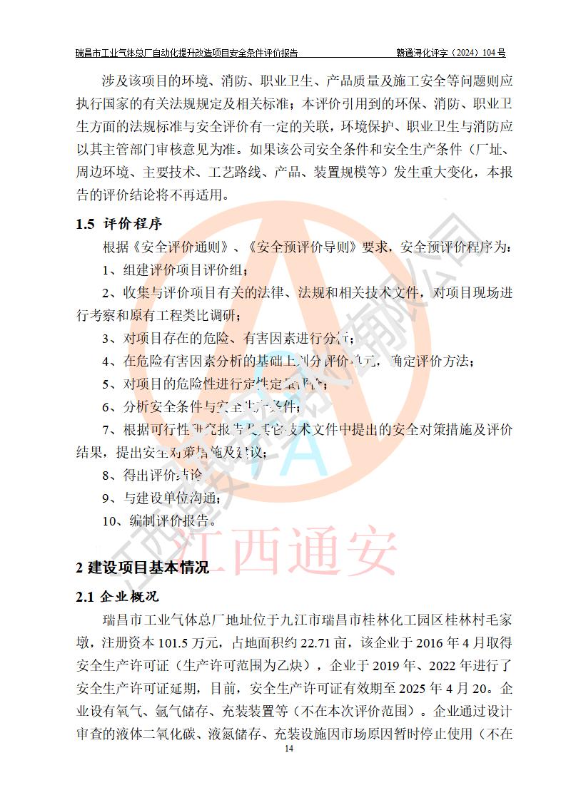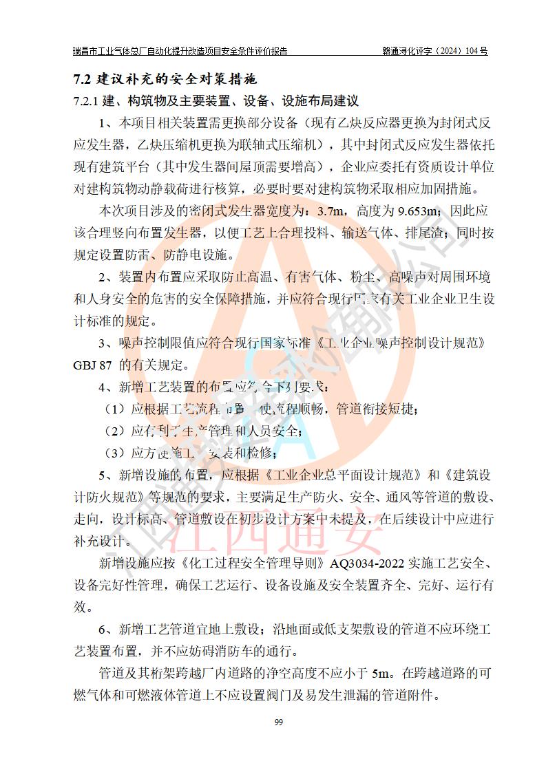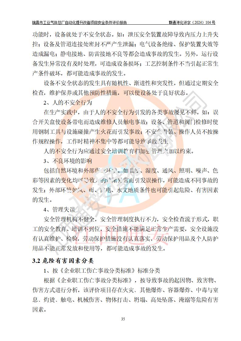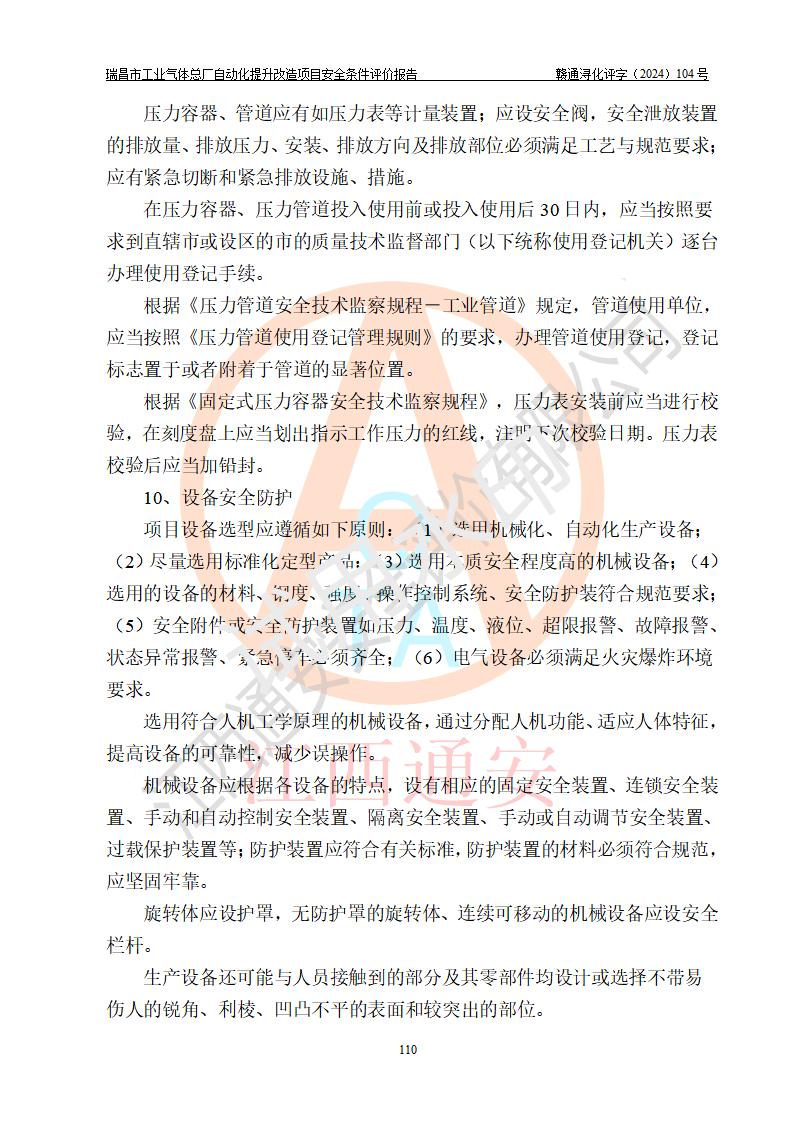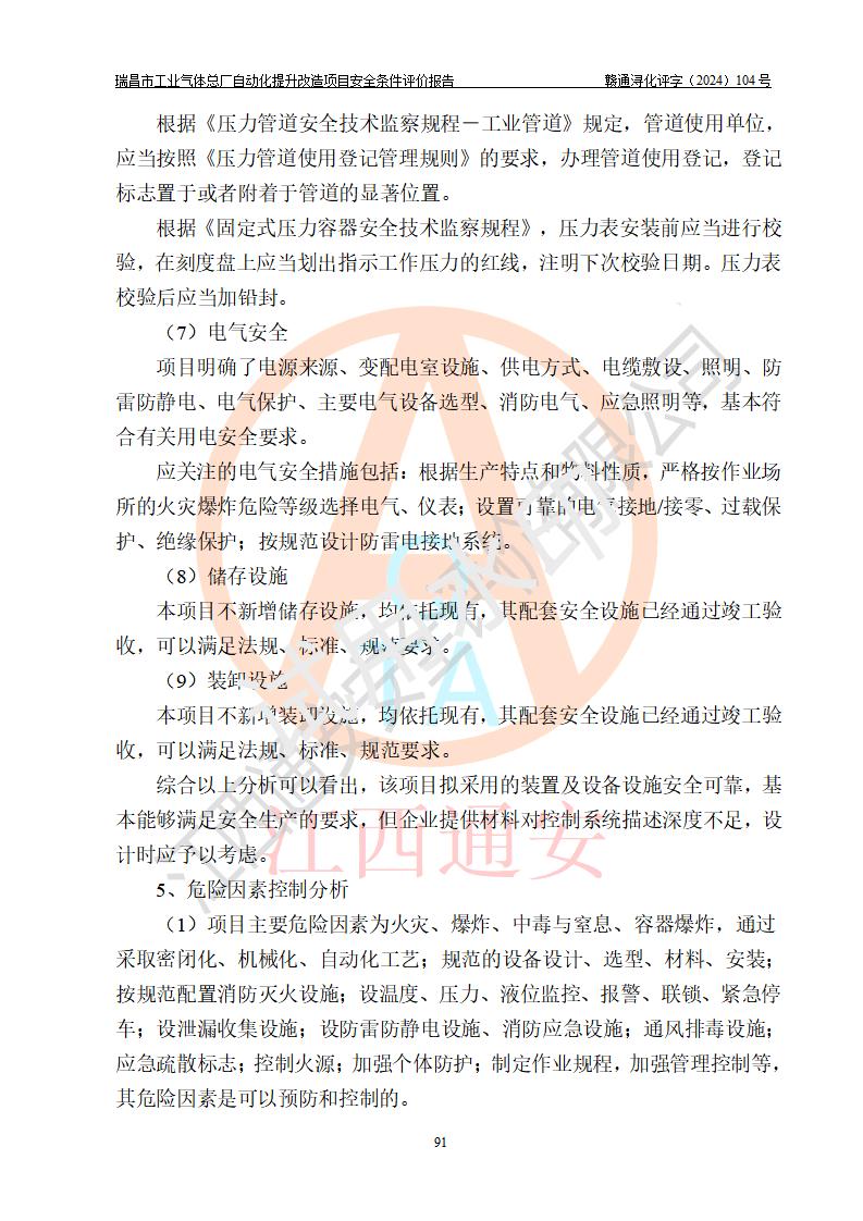 評價報告名稱 | 瑞昌市工業(yè)氣體總廠自動化提升改造項目安全條件評價報告 | ||||