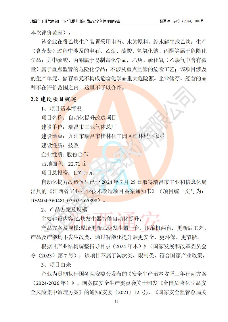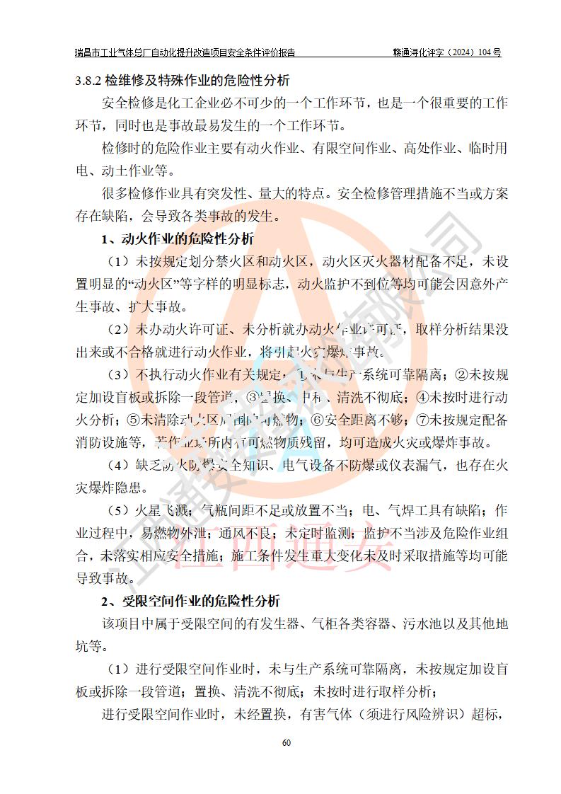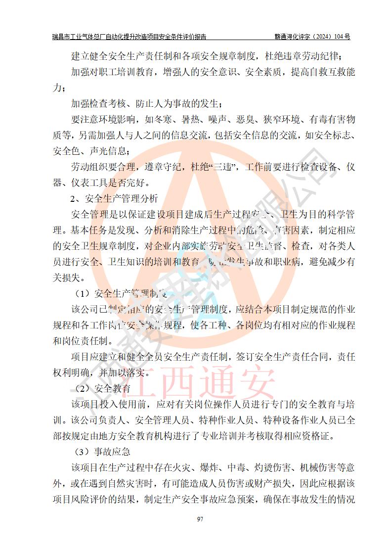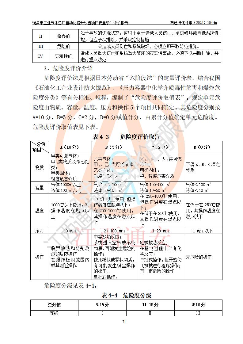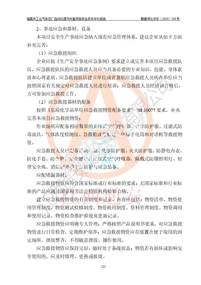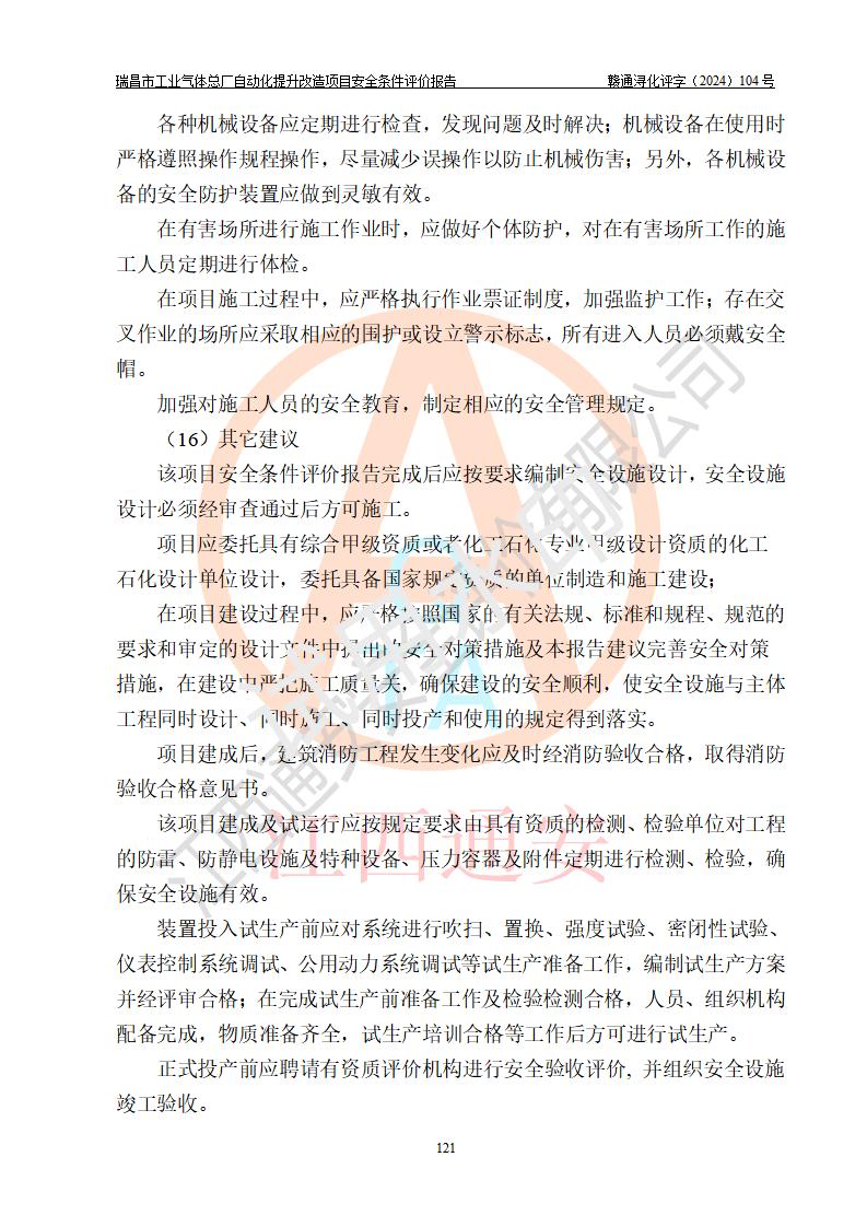 評價報告名稱 | 瑞昌市工業(yè)氣體總廠自動化提升改造項目安全條件評價報告 | ||||