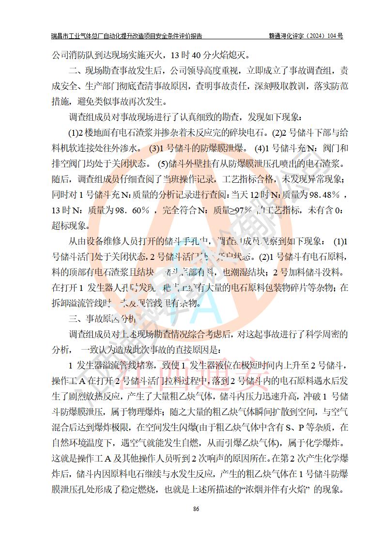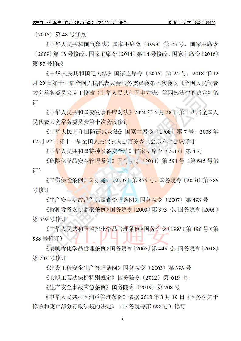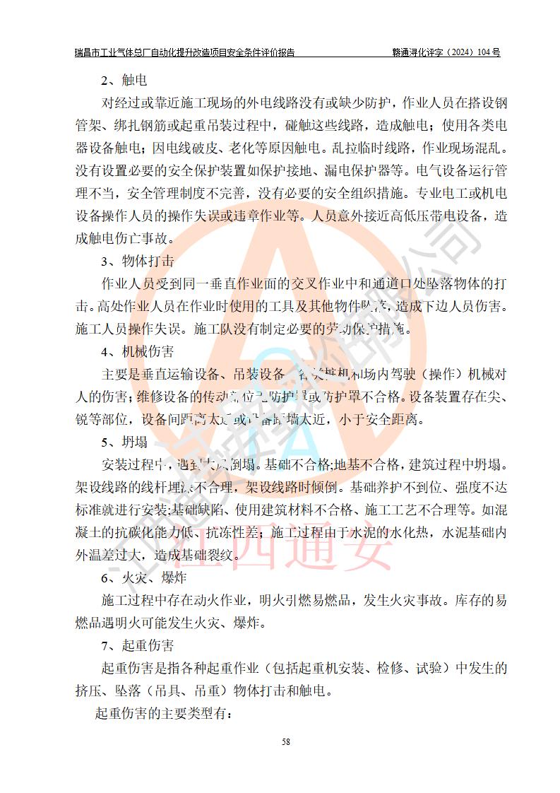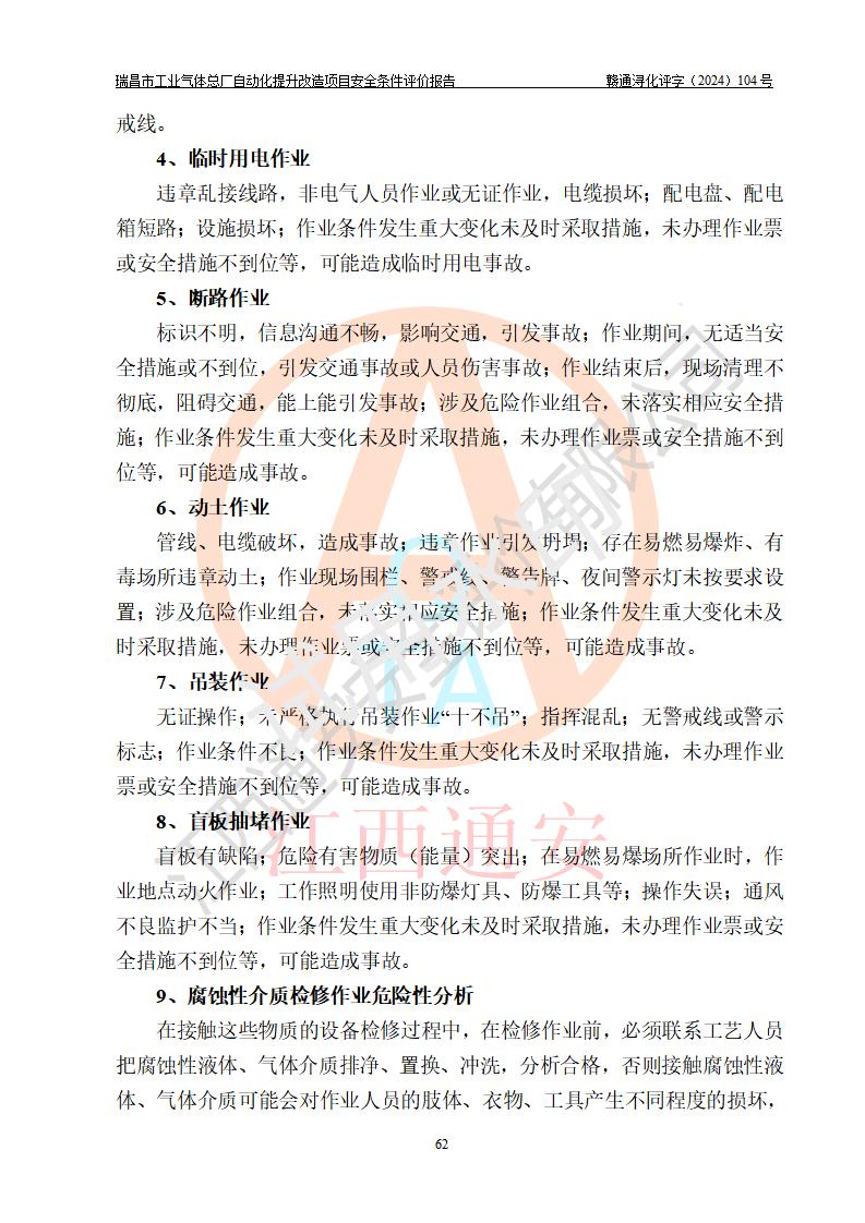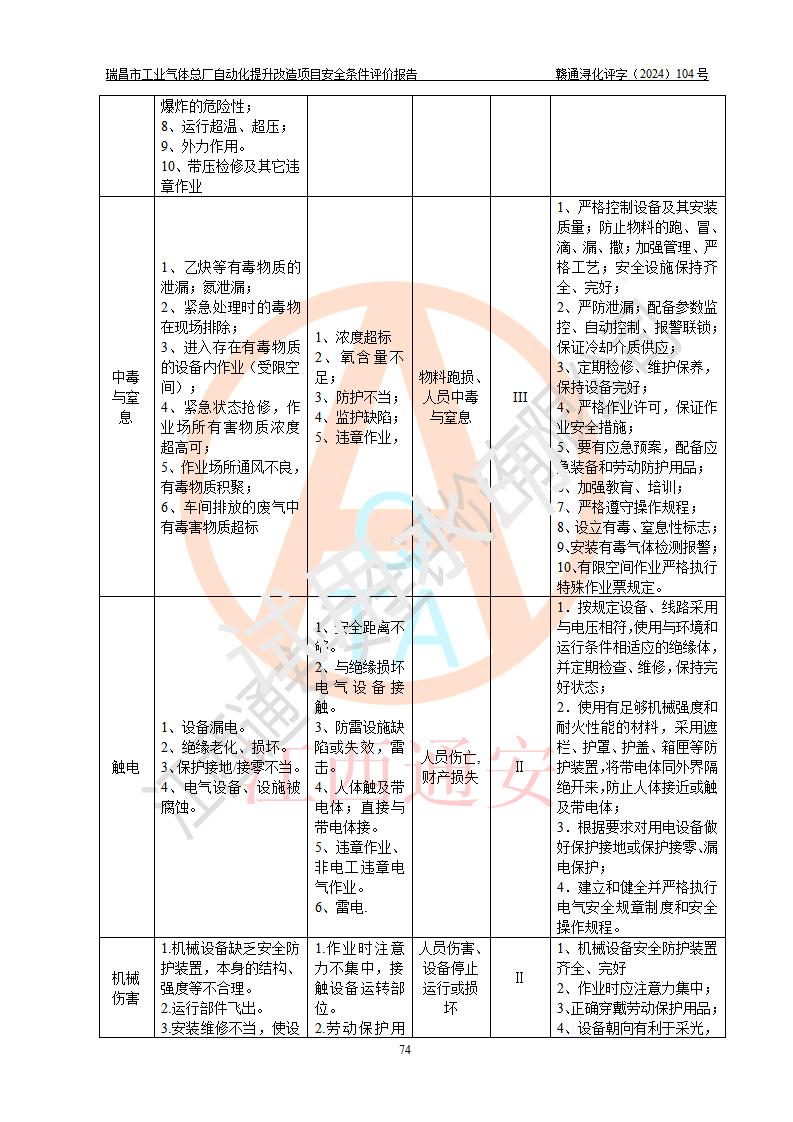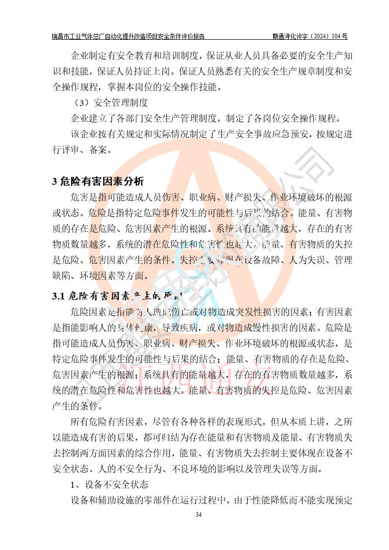 評價報告名稱 | 瑞昌市工業(yè)氣體總廠自動化提升改造項目安全條件評價報告 | ||||