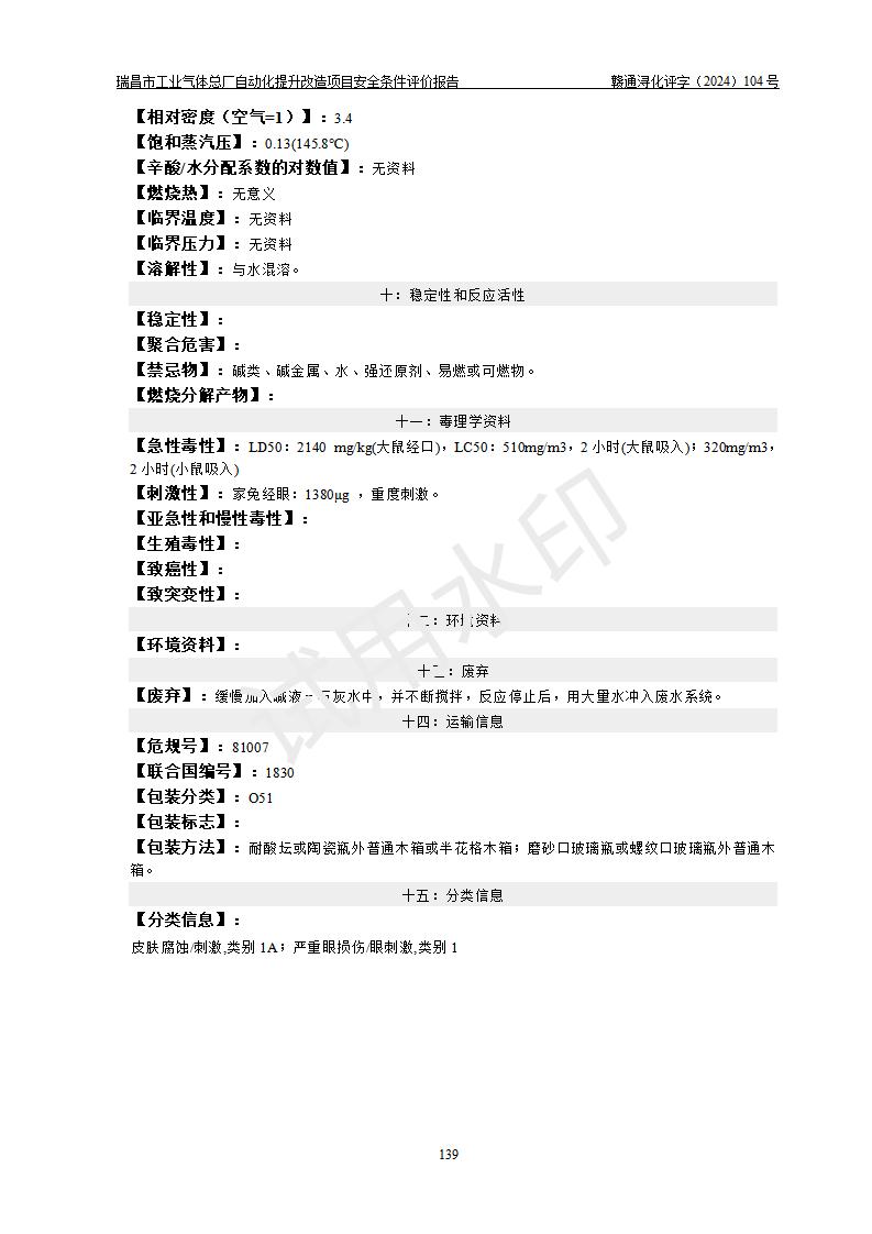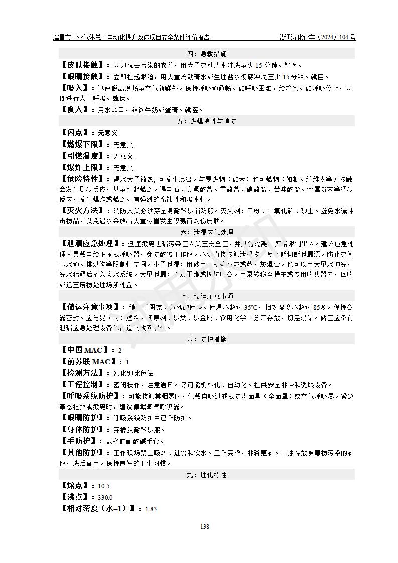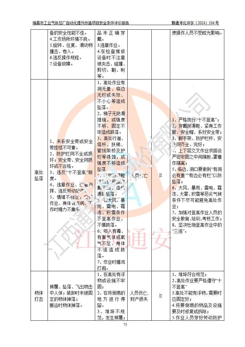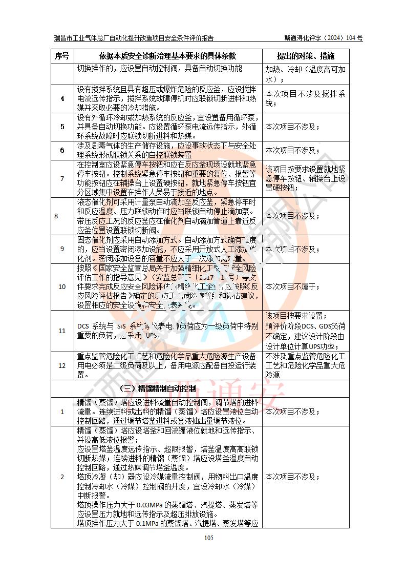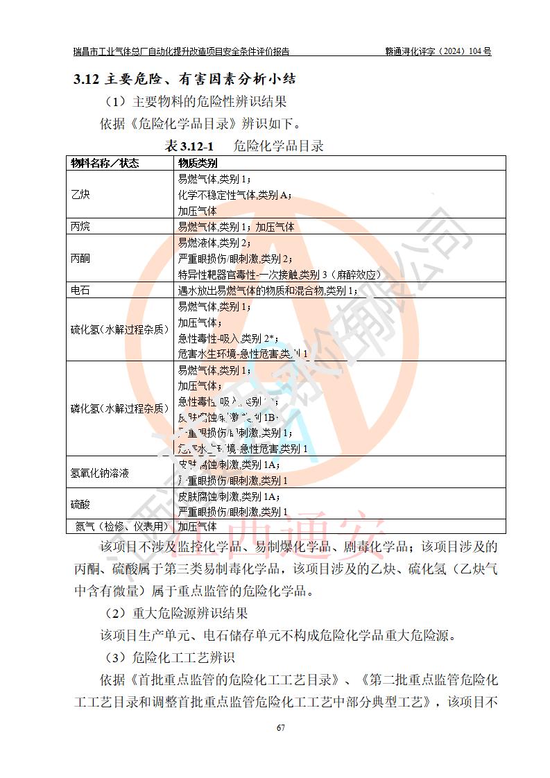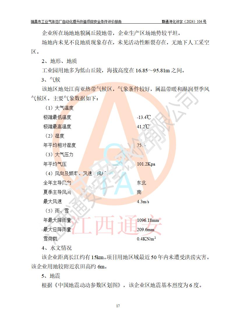 評價結論 | 瑞昌市工業(yè)氣體總廠自動化提升改造項目選擇的工藝過程及設備設施的安全可靠性能達到**法規(guī)、標準規(guī)定要求;項目存在的危險有害因素可控,在落實本評價報告提出的有關安全對策措施后,其危險有害程度能達到 可以接受的程度,項目建設能夠實現安全運行的目標。 | ||||
