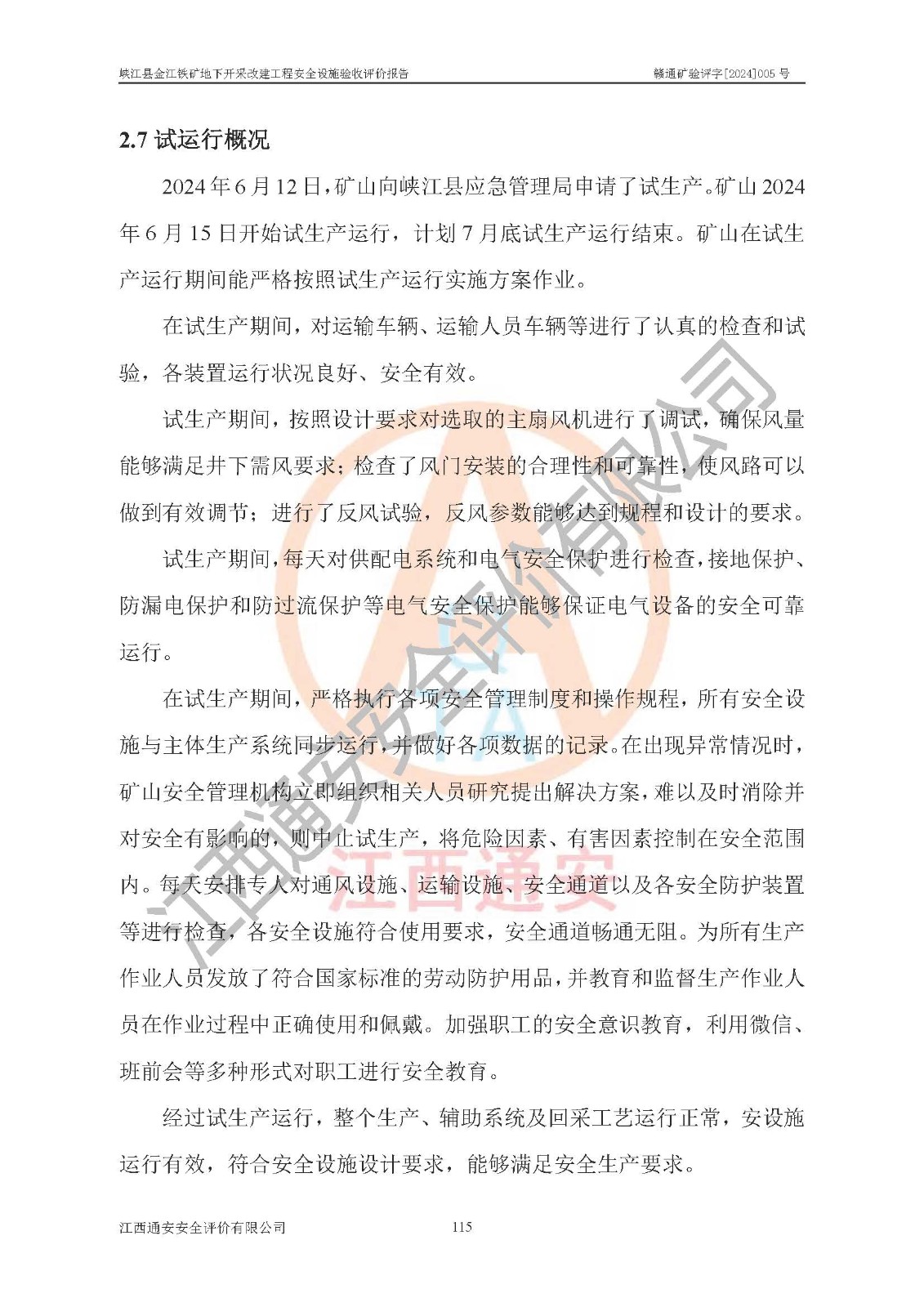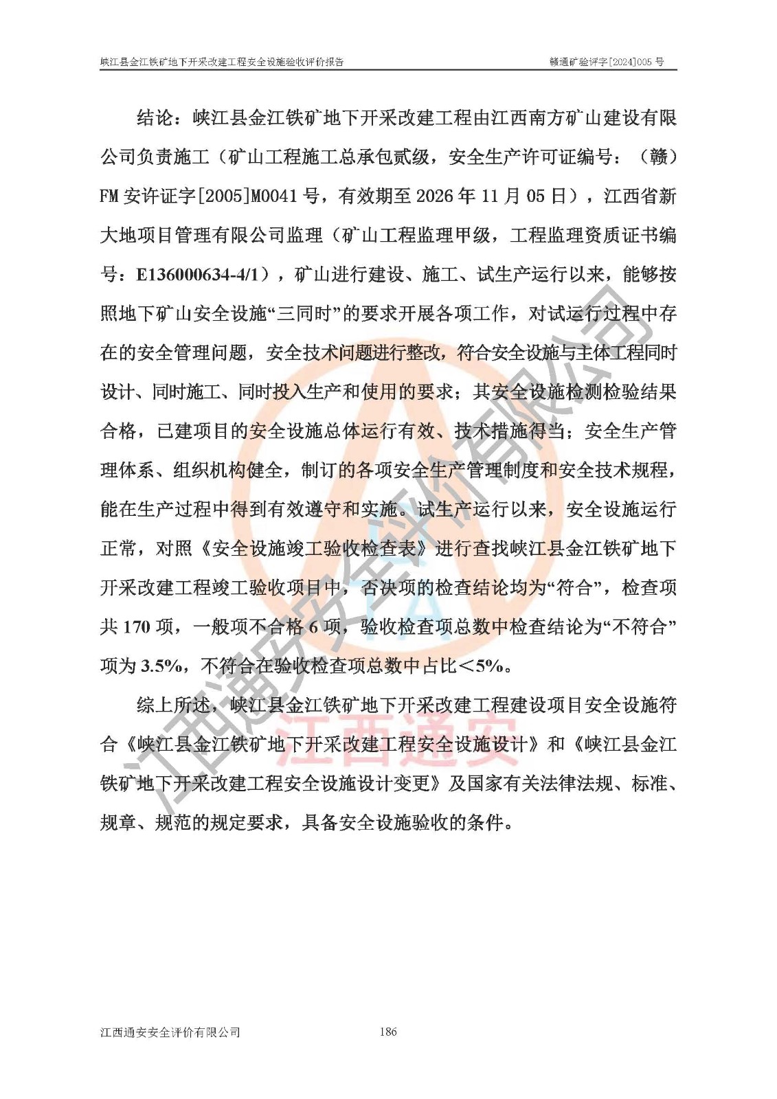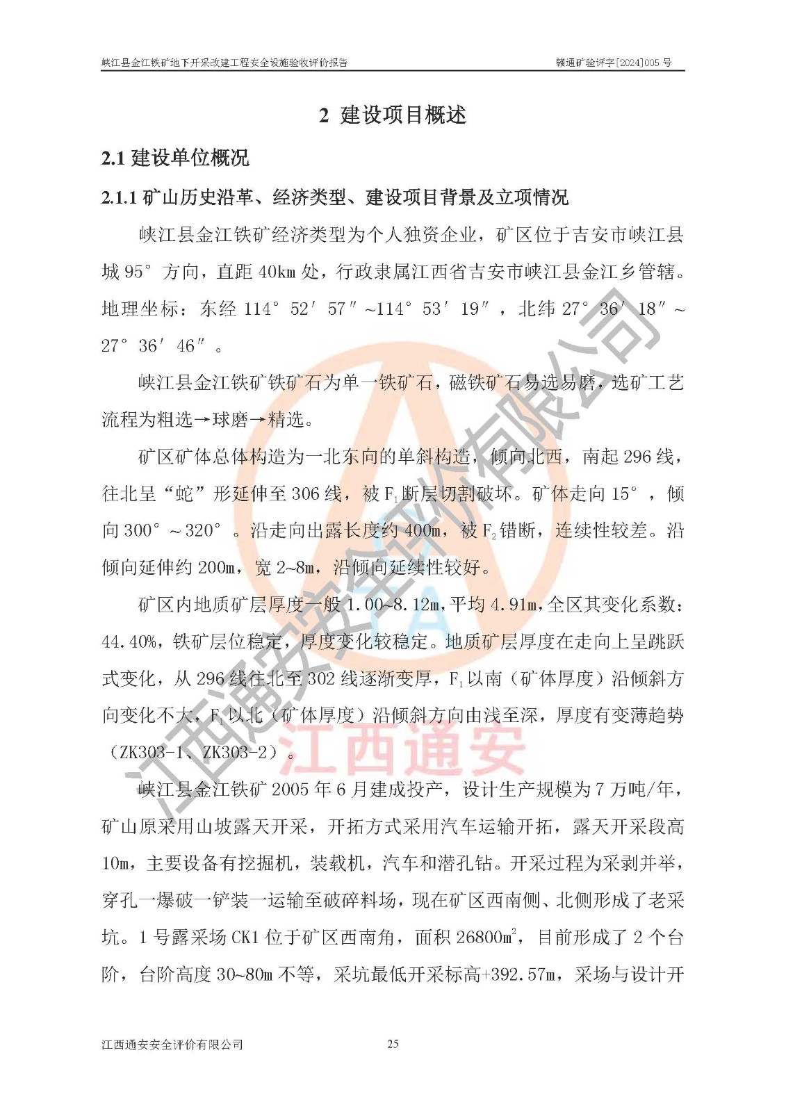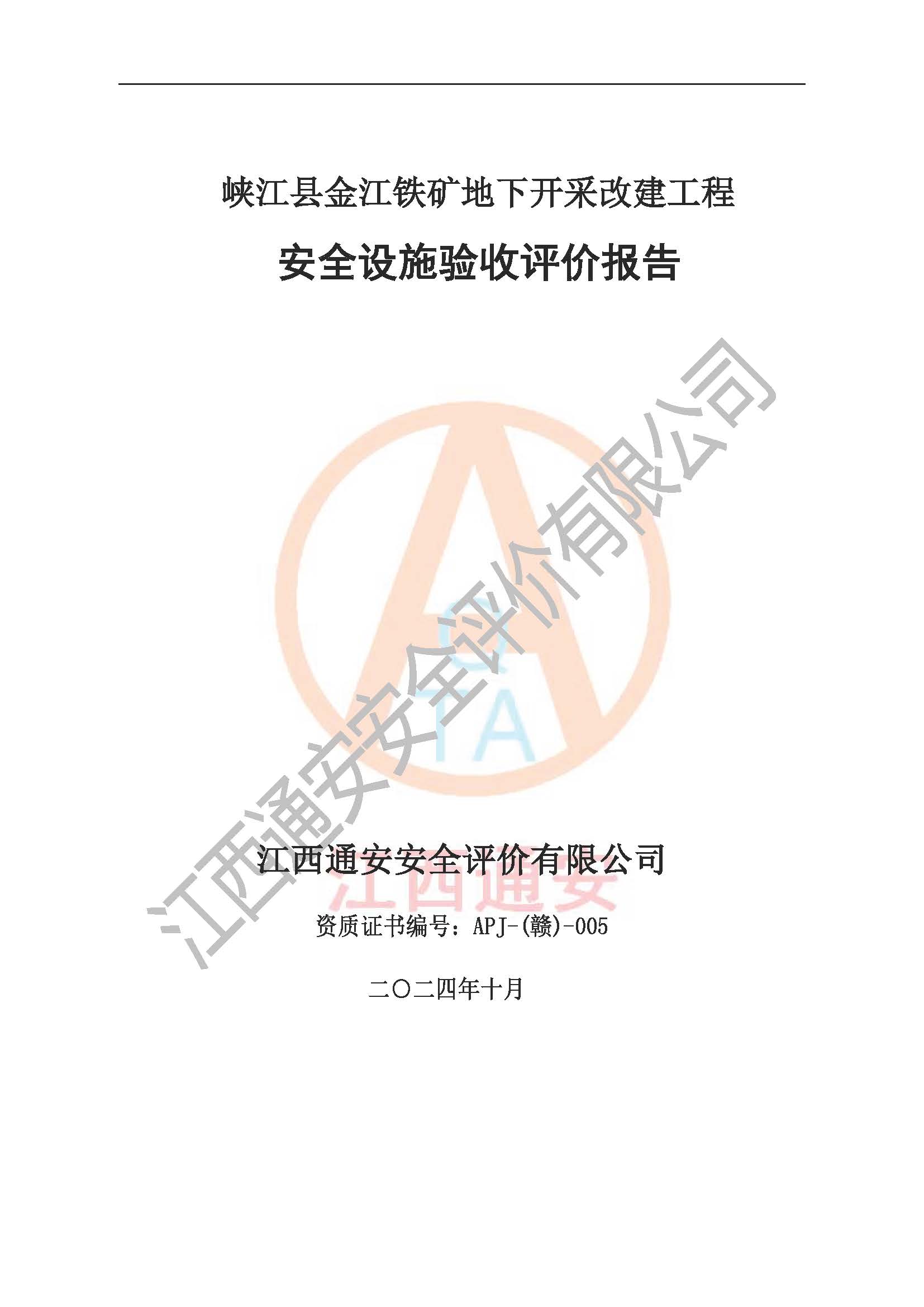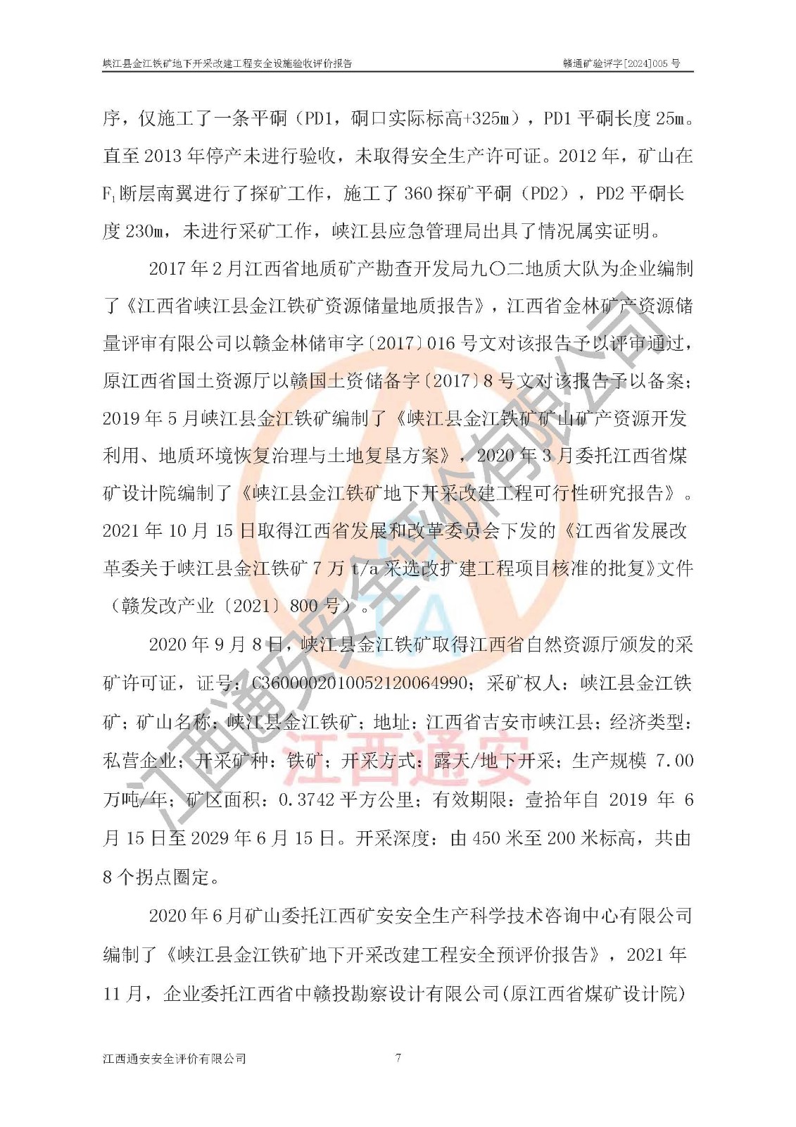 項(xiàng)目名稱(chēng) | 峽江縣金江鐵礦地下開(kāi)采改建工程安全設(shè)施驗(yàn)收評(píng)價(jià)報(bào)告 | ||||