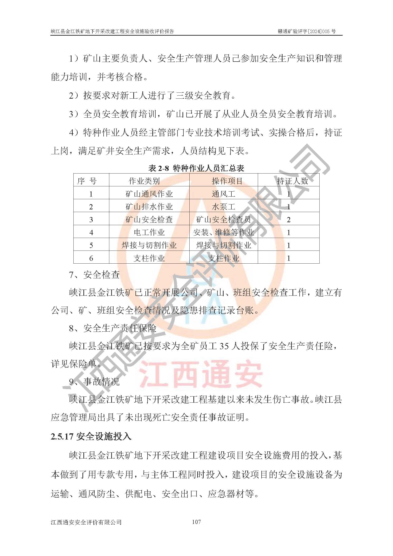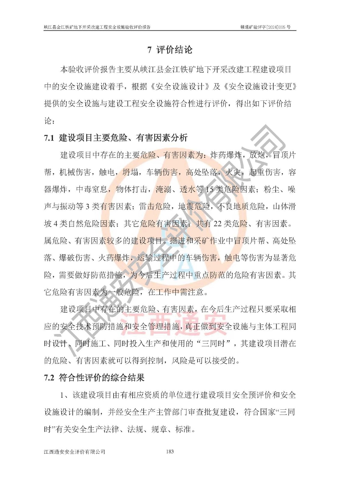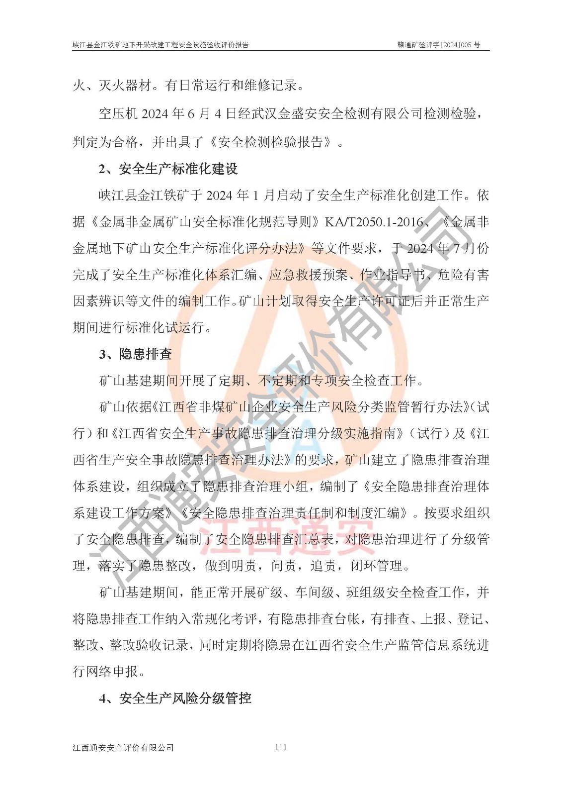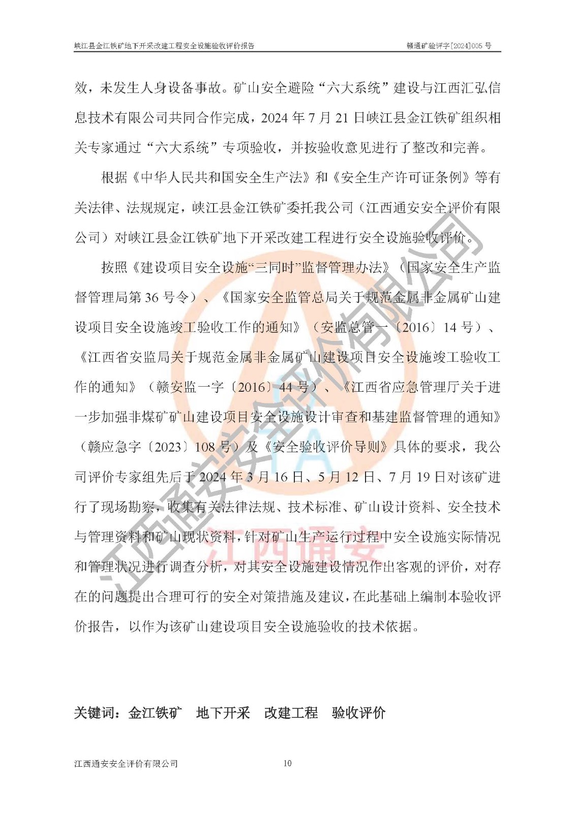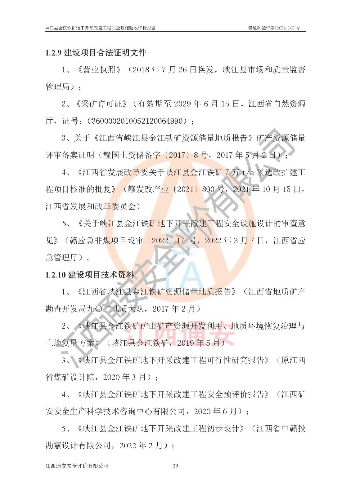 項(xiàng)目名稱(chēng) | 峽江縣金江鐵礦地下開(kāi)采改建工程安全設(shè)施驗(yàn)收評(píng)價(jià)報(bào)告 | ||||