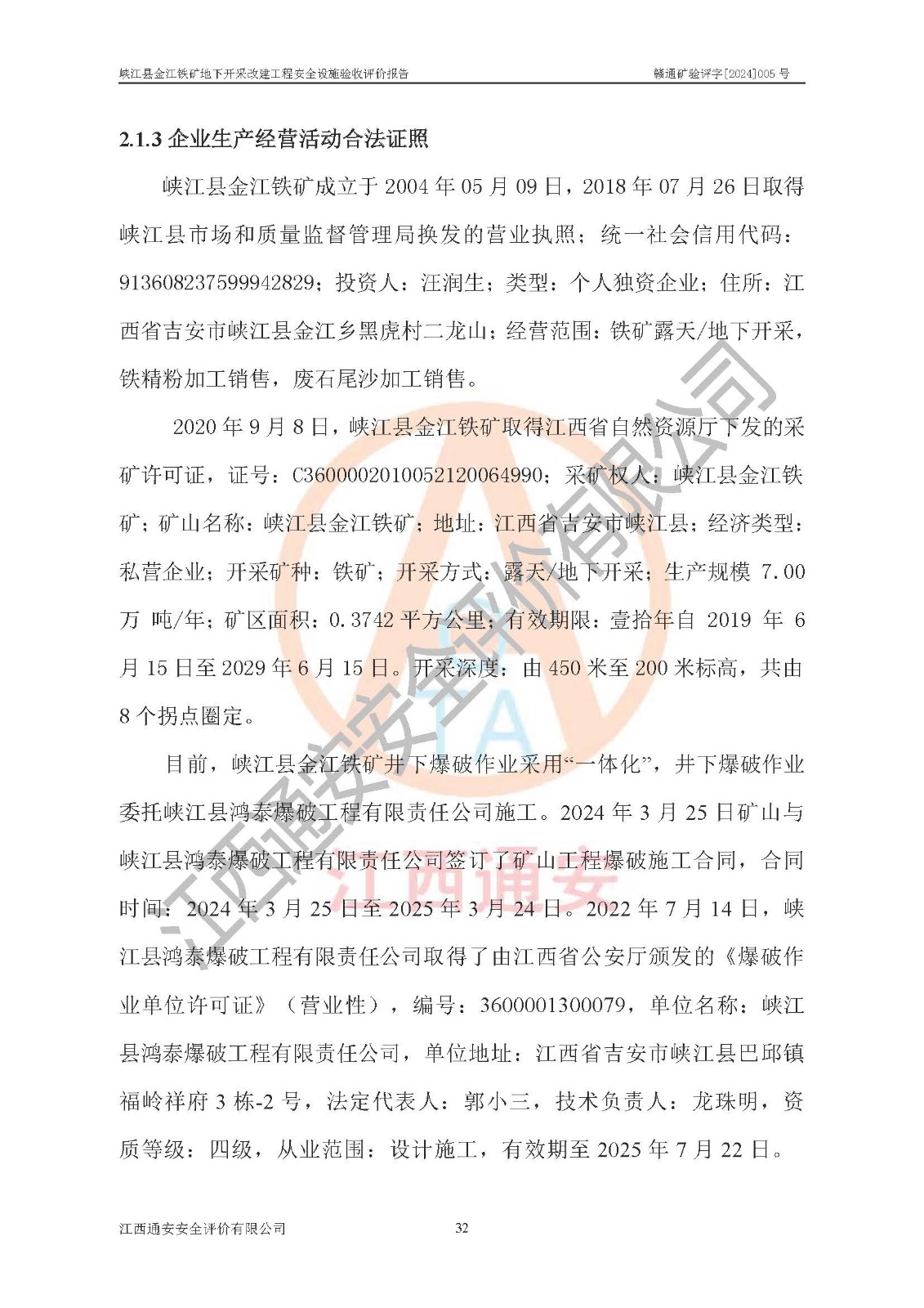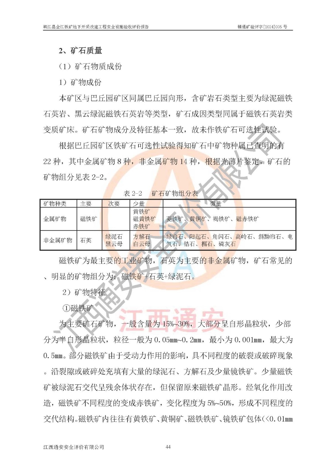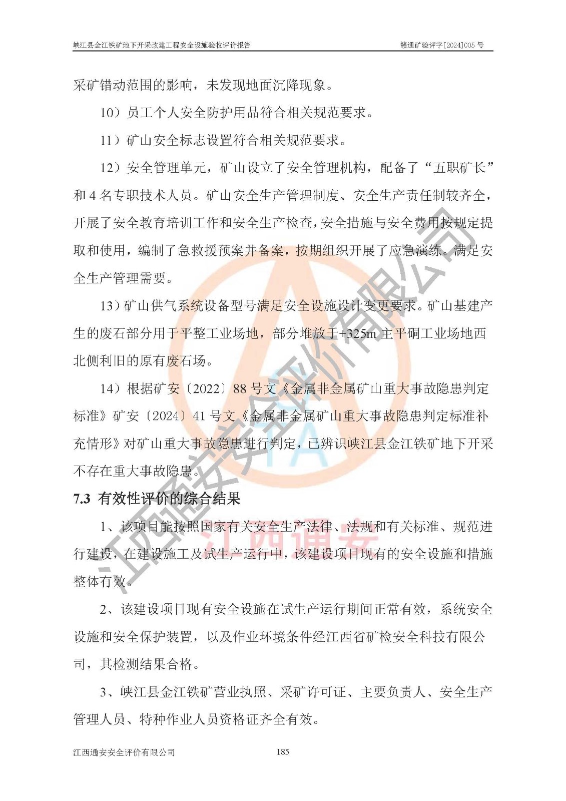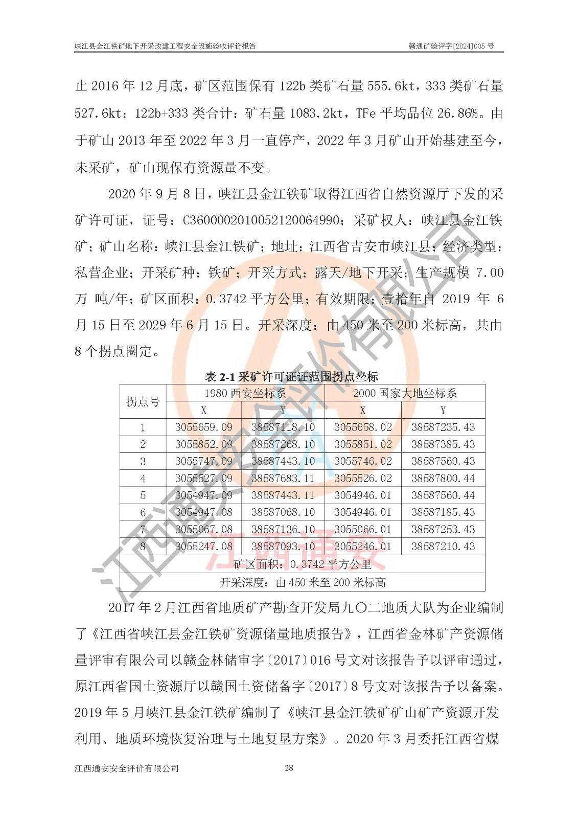 報(bào)告編號(hào):贛通礦驗(yàn)評(píng)字[2024]005號(hào)