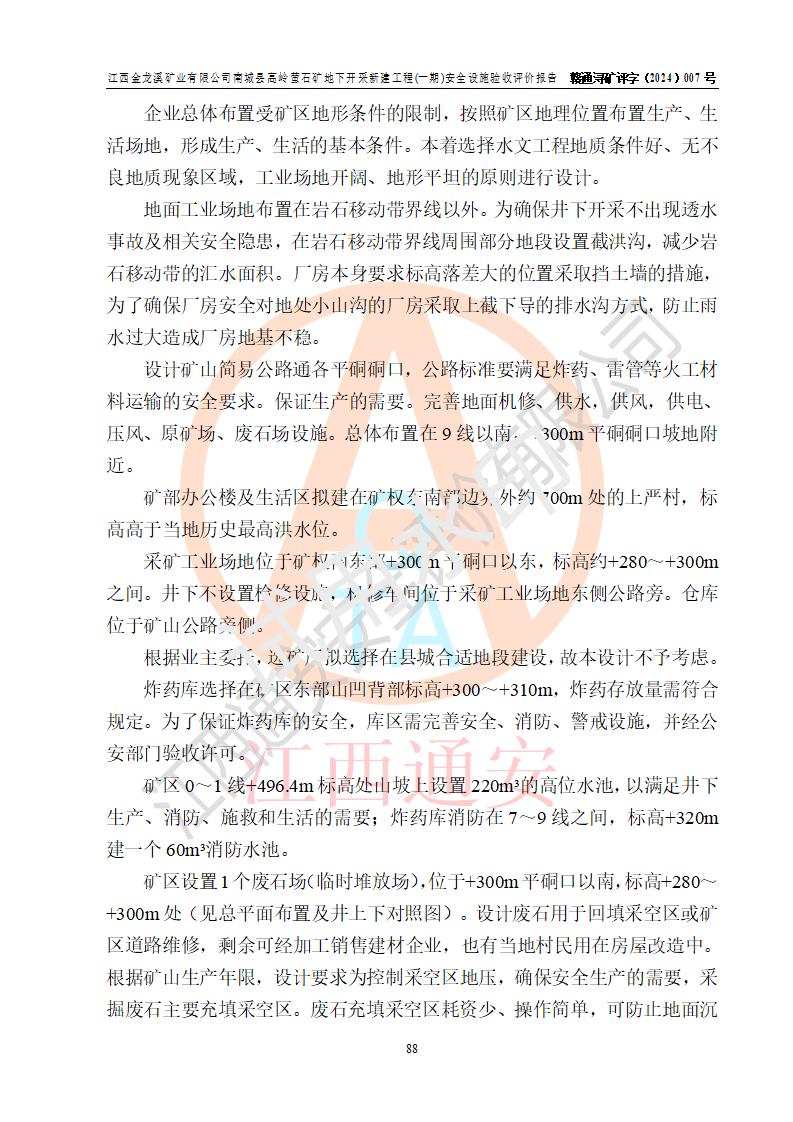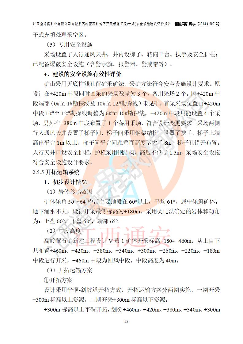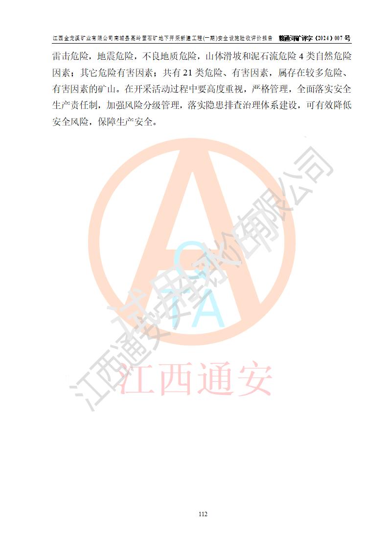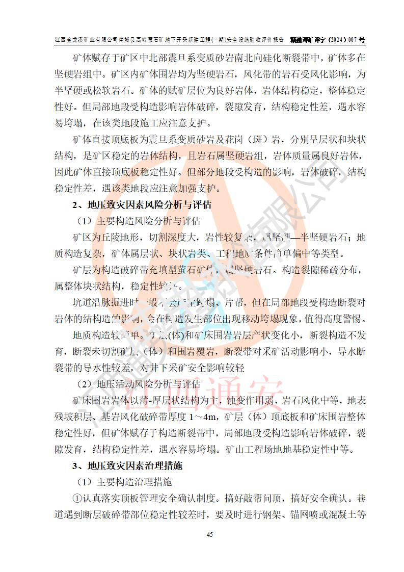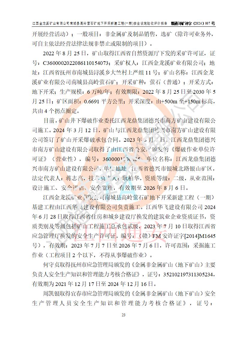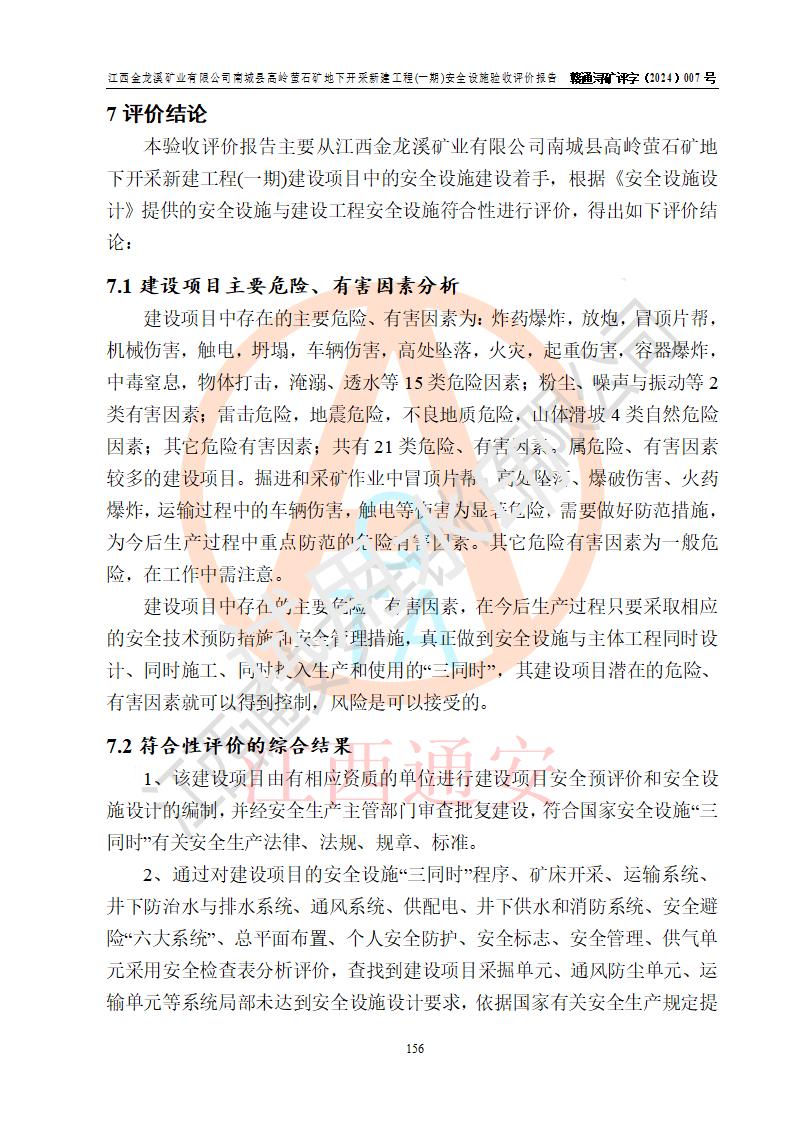 報告名稱 | 江西金龍溪礦業(yè)有限公司南城縣高嶺螢石礦地下開采新建工程(一期)安全設(shè)施驗收評價報告 | |||||