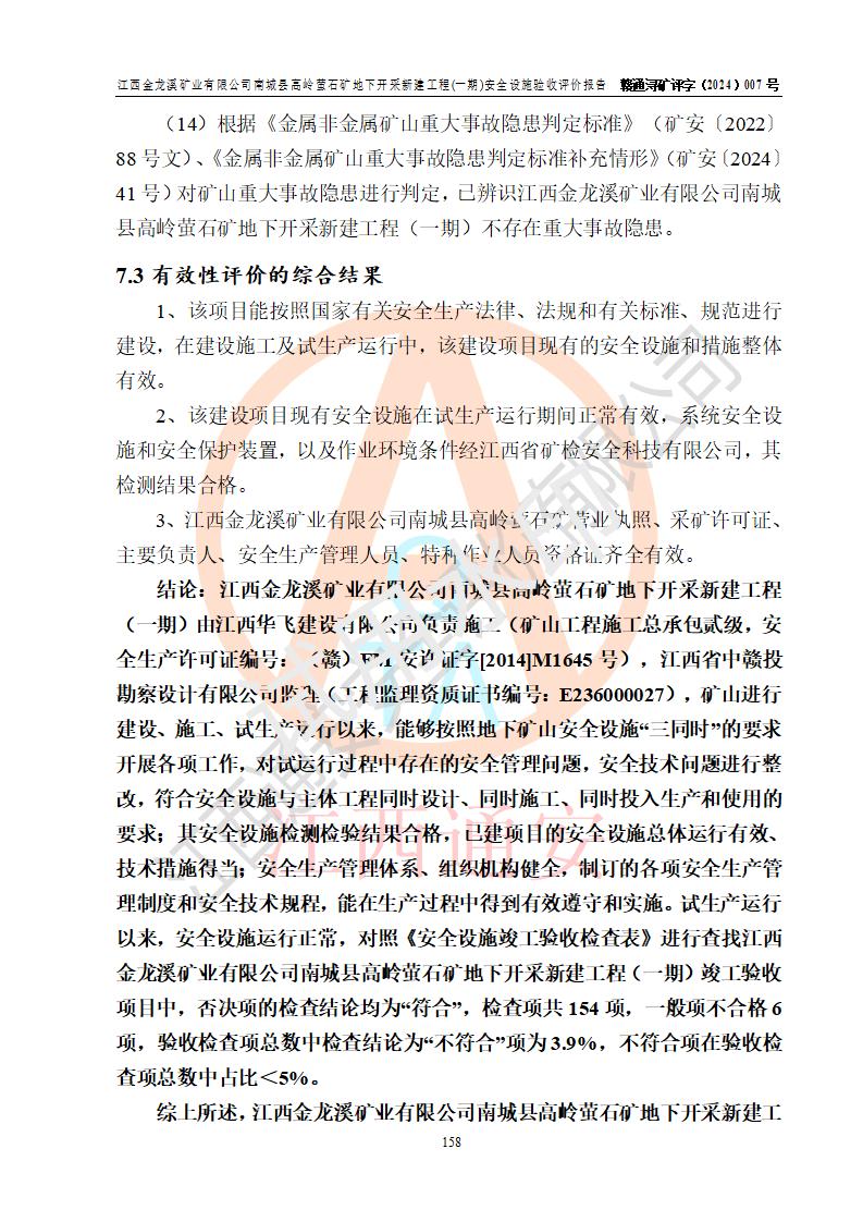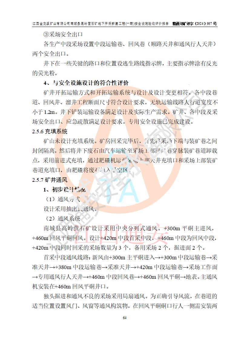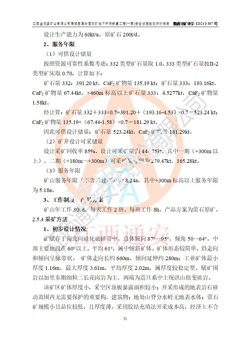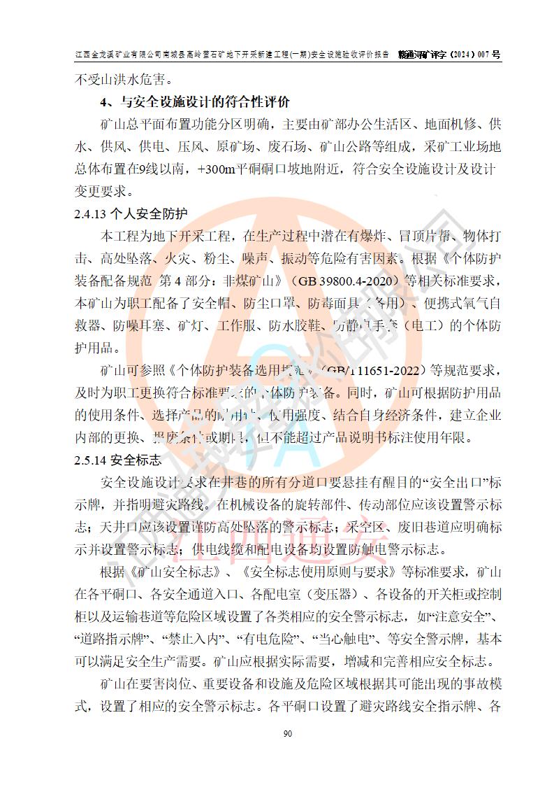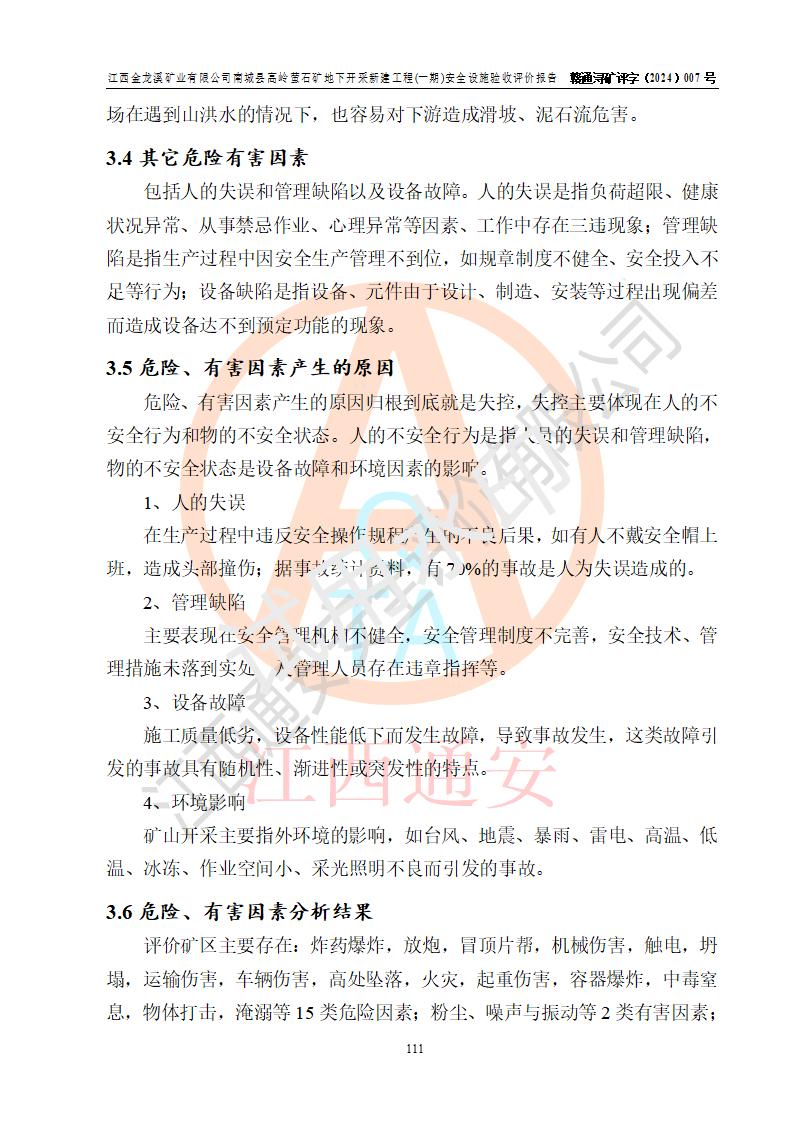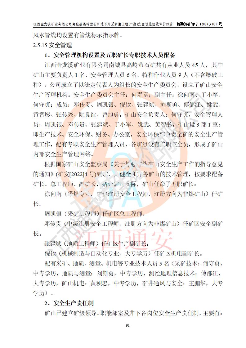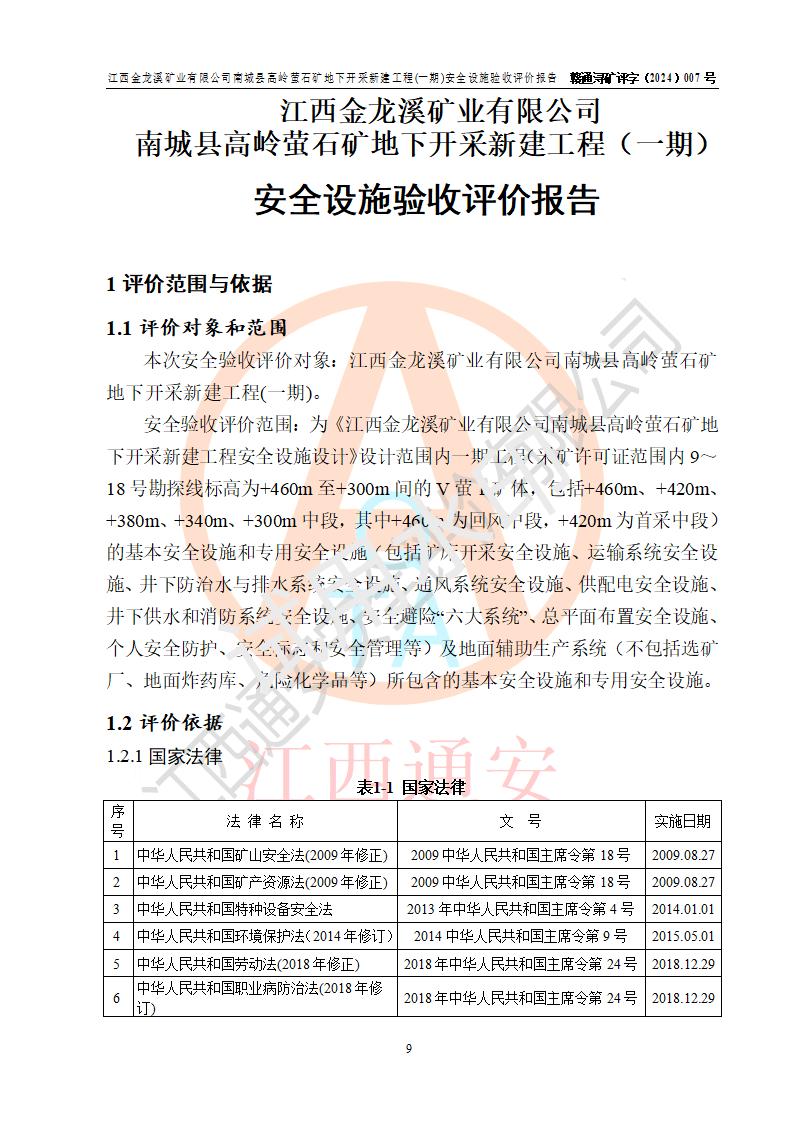報告名稱 | 江西金龍溪礦業(yè)有限公司南城縣高嶺螢石礦地下開采新建工程(一期)安全設(shè)施驗收評價報告 | |||||
