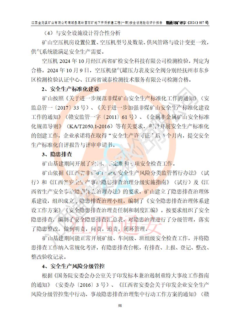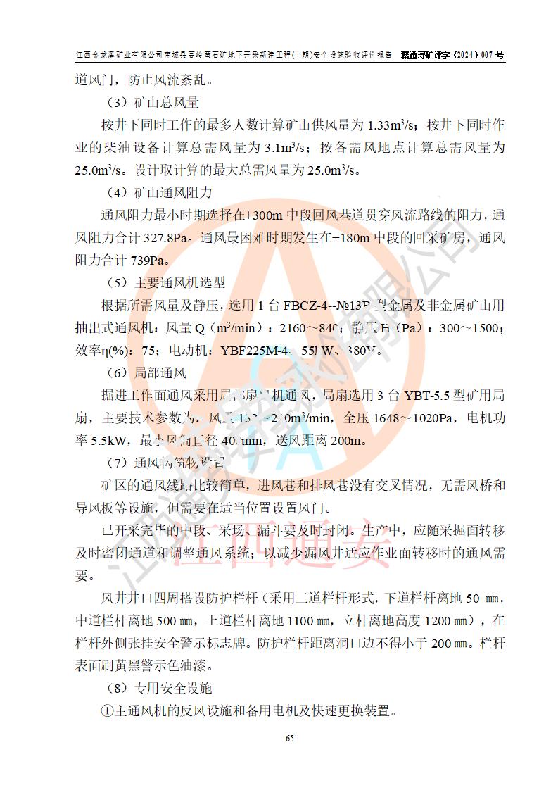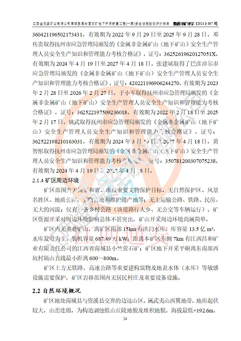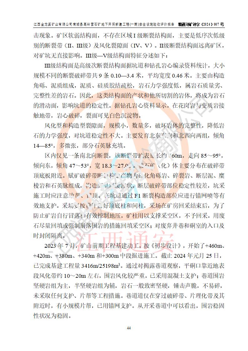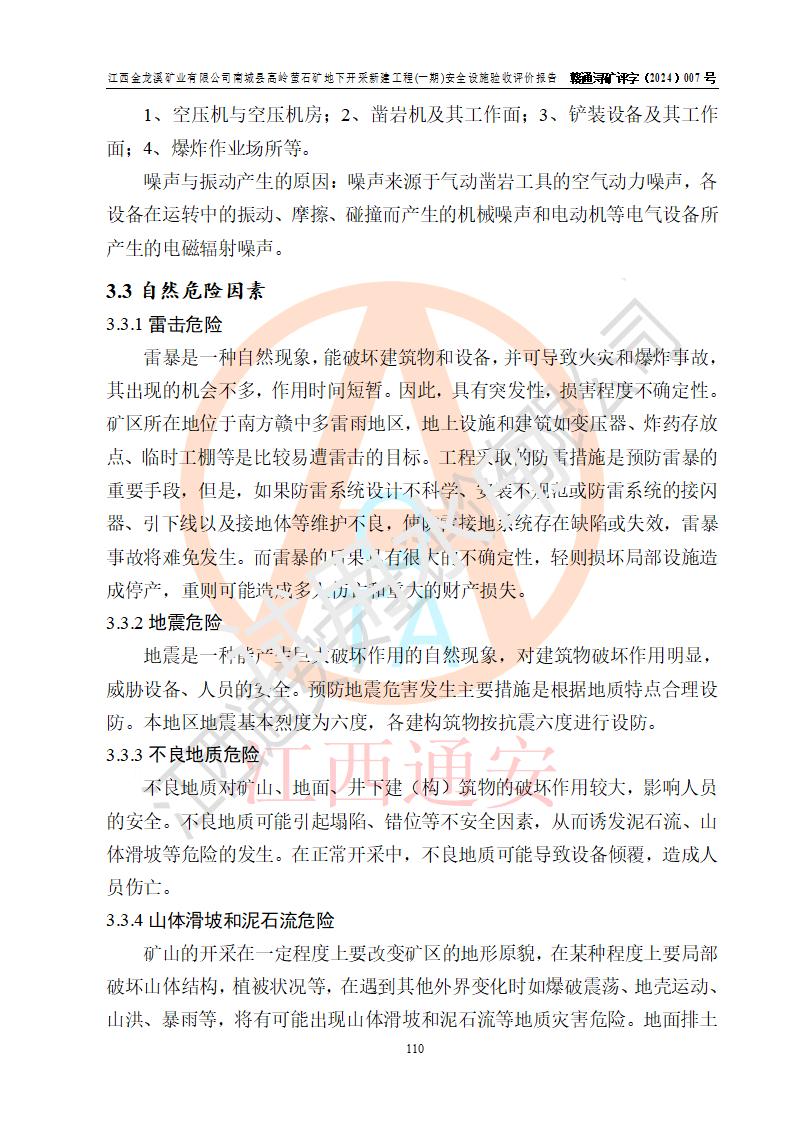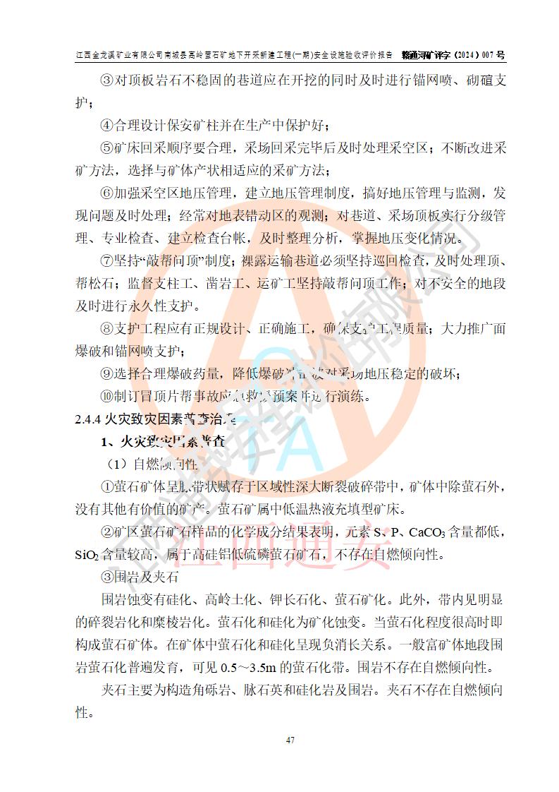 報告名稱 | 江西金龍溪礦業(yè)有限公司南城縣高嶺螢石礦地下開采新建工程(一期)安全設(shè)施驗收評價報告 | |||||