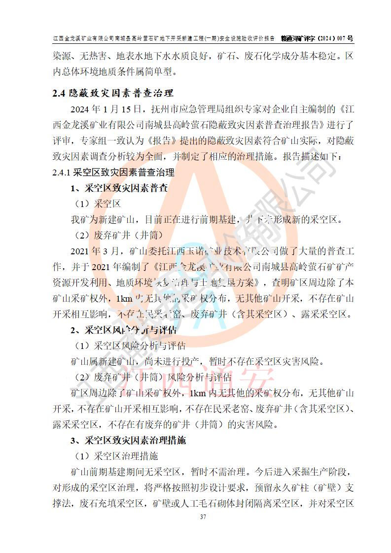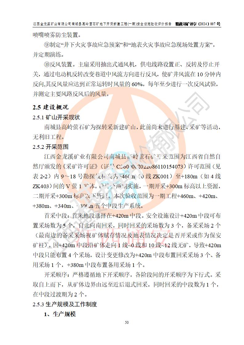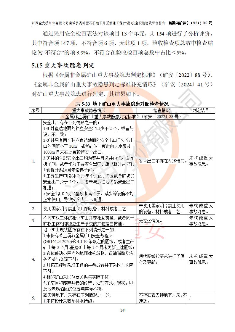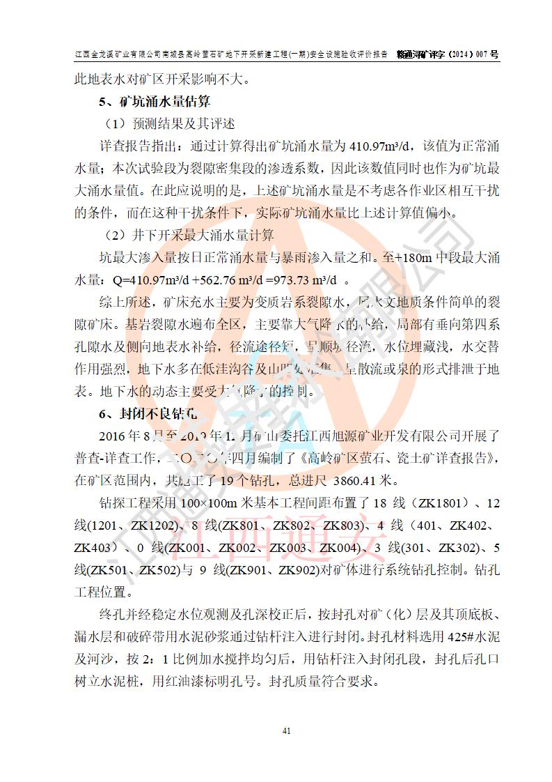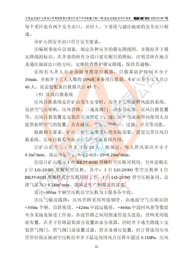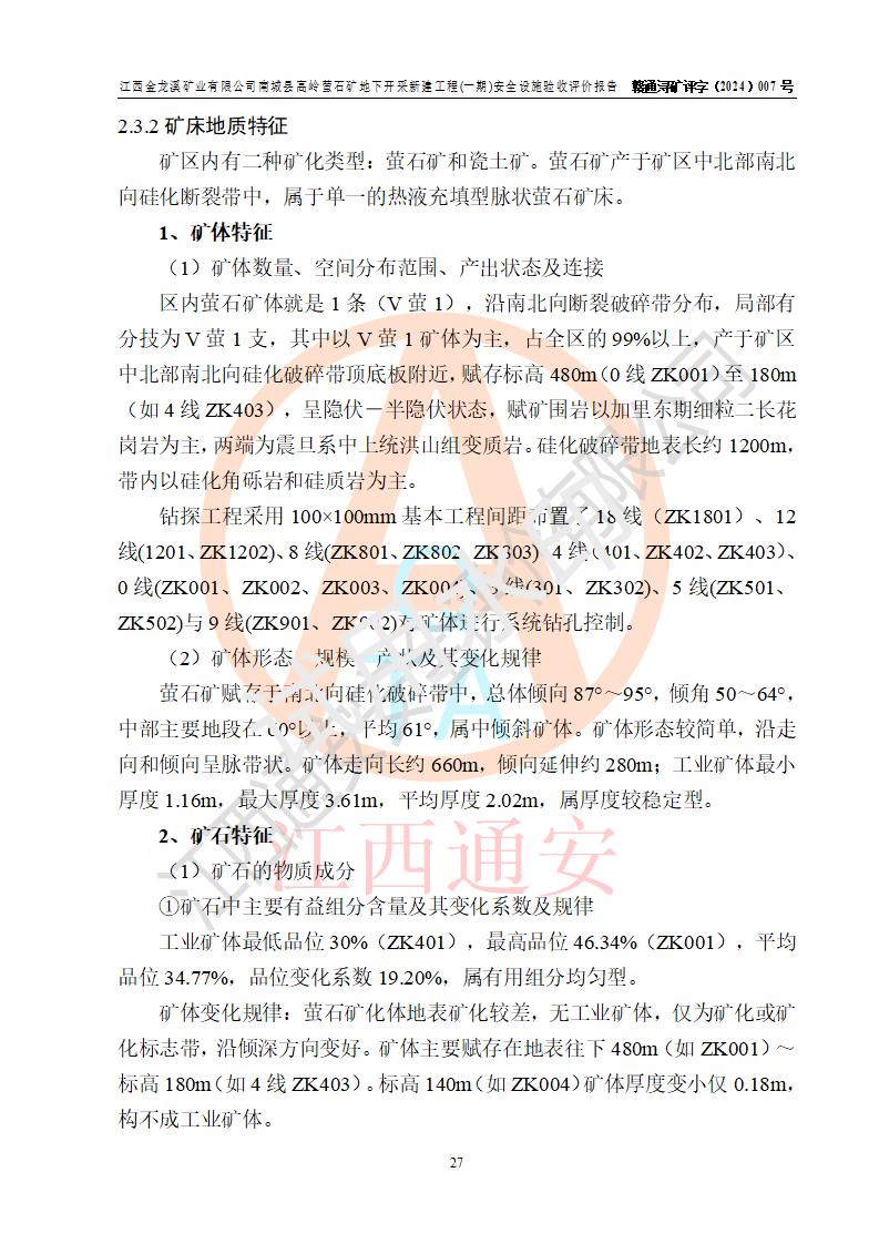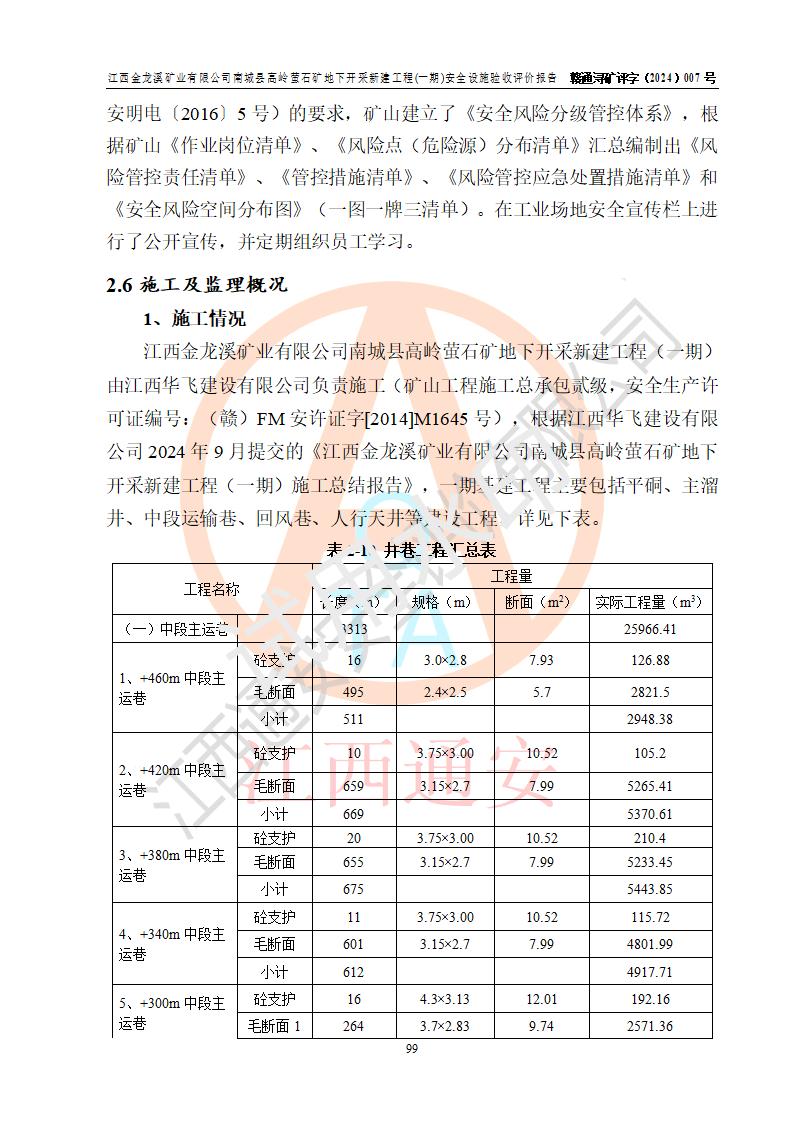 報告名稱 | 江西金龍溪礦業(yè)有限公司南城縣高嶺螢石礦地下開采新建工程(一期)安全設(shè)施驗收評價報告 | |||||