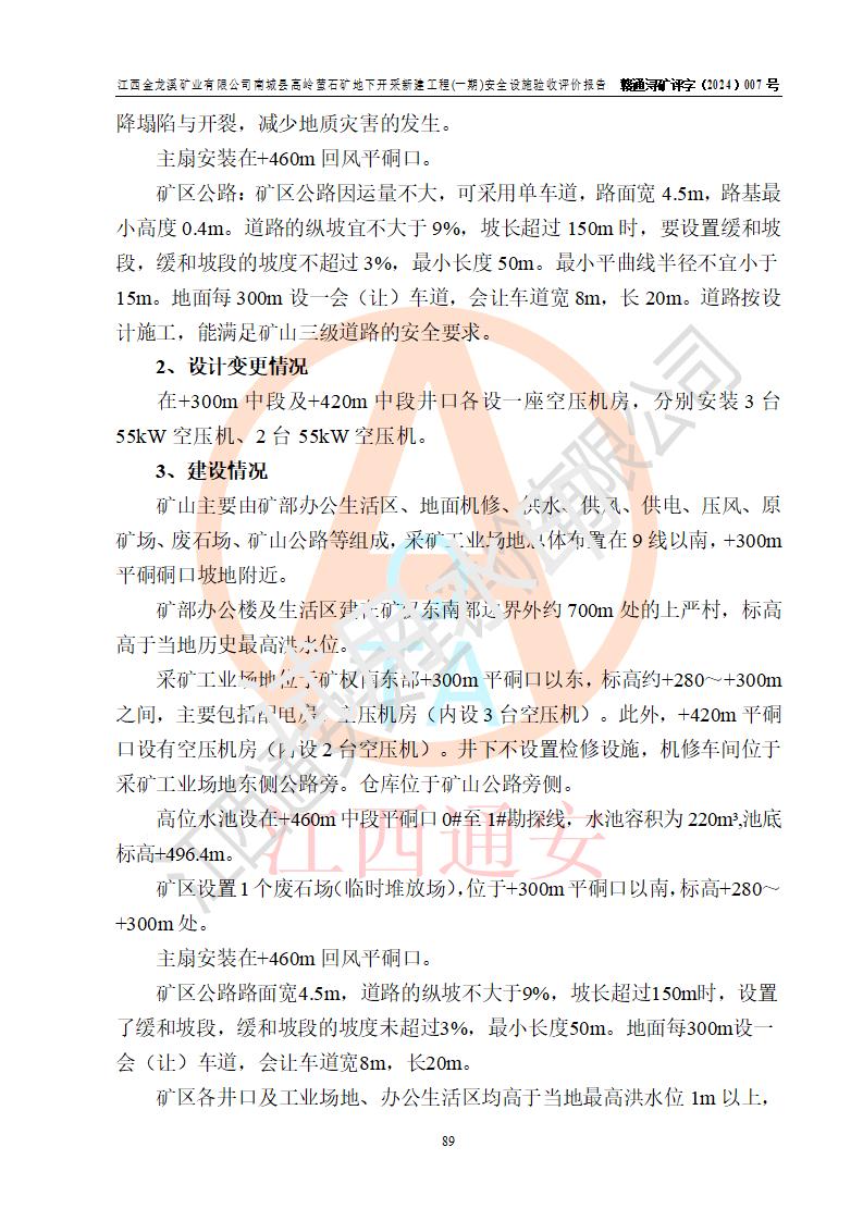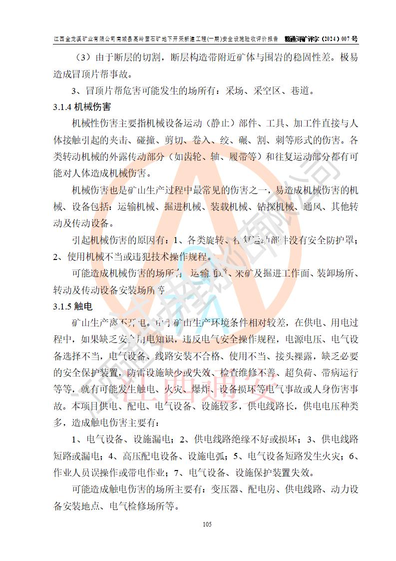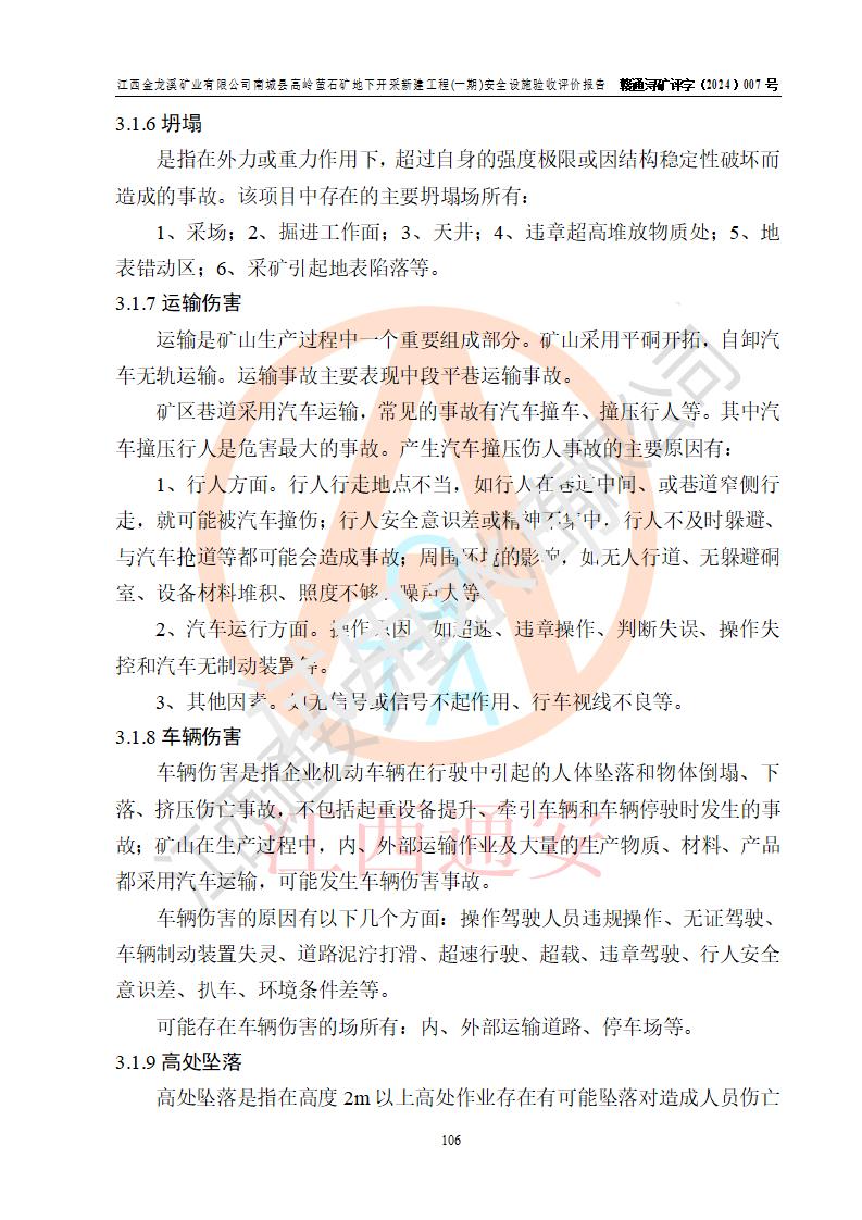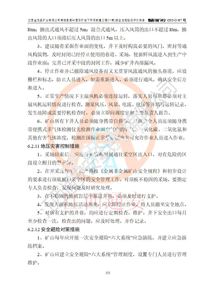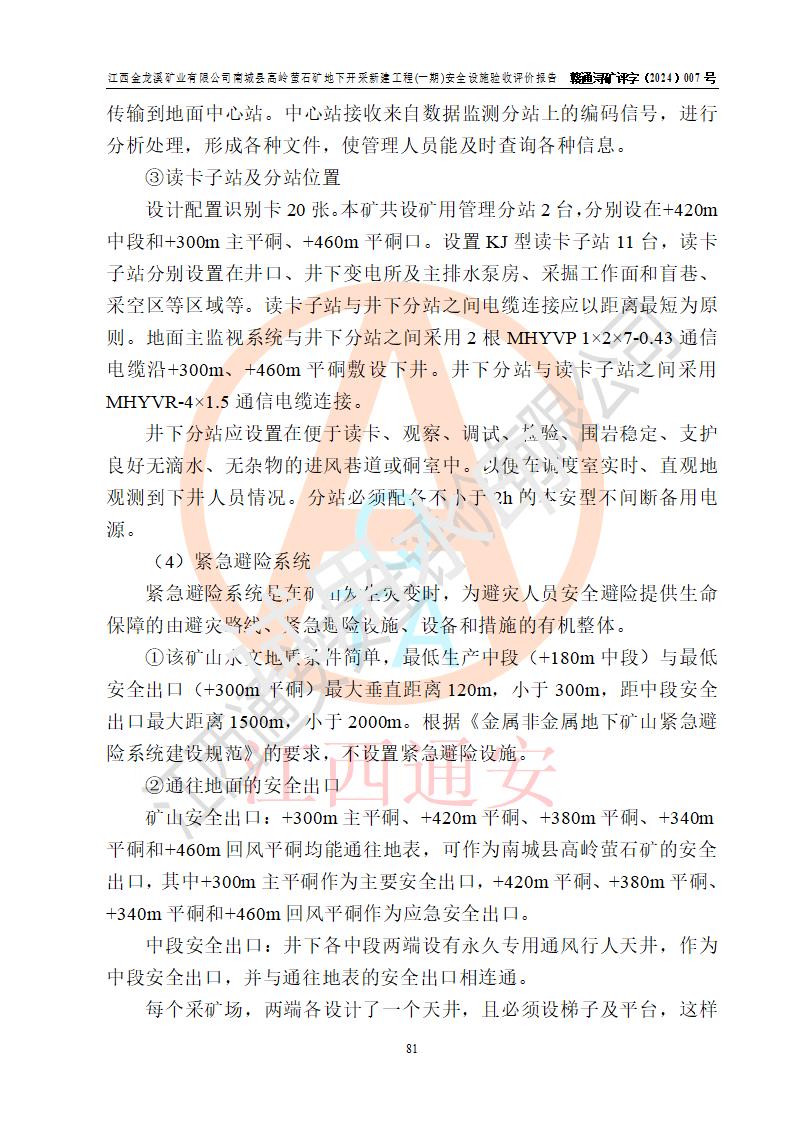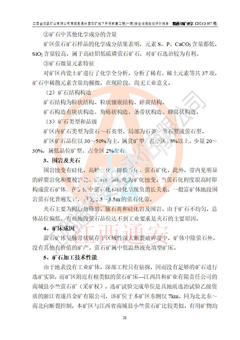 報告名稱 | 江西金龍溪礦業(yè)有限公司南城縣高嶺螢石礦地下開采新建工程(一期)安全設(shè)施驗收評價報告 | |||||