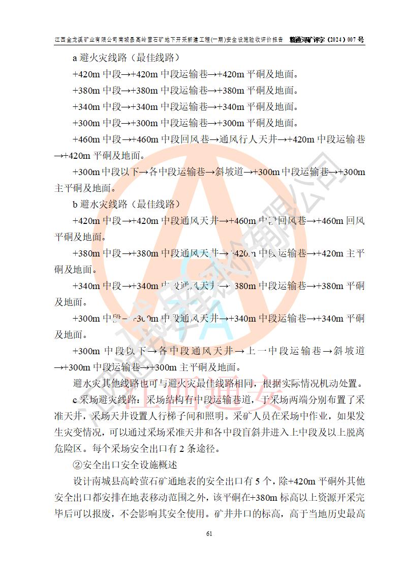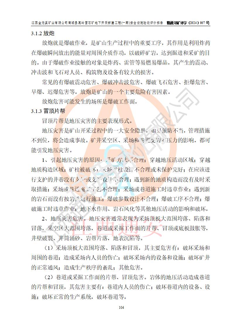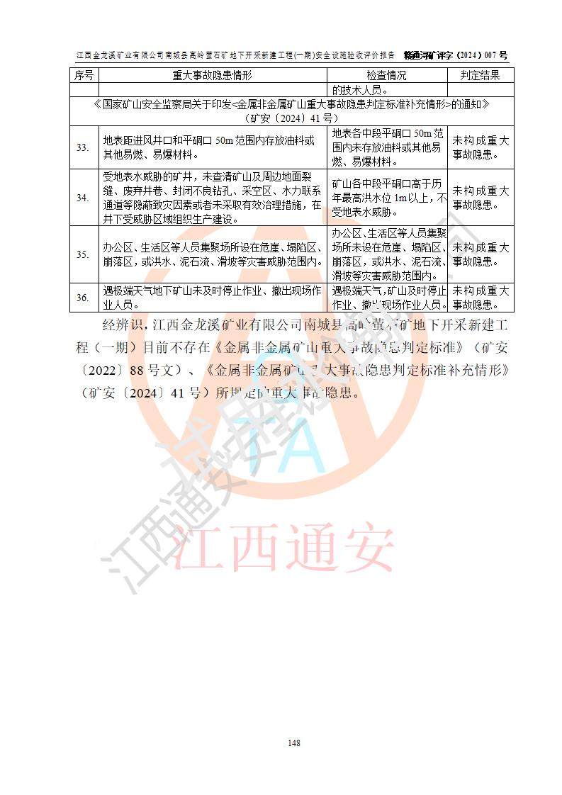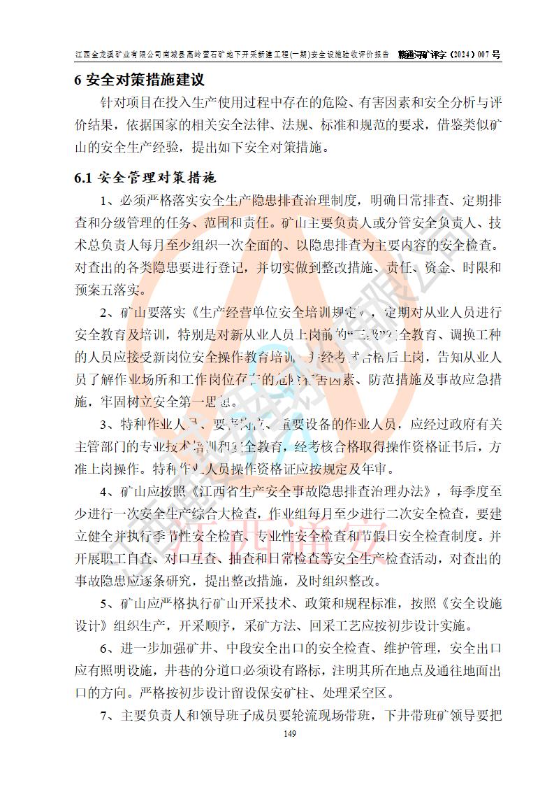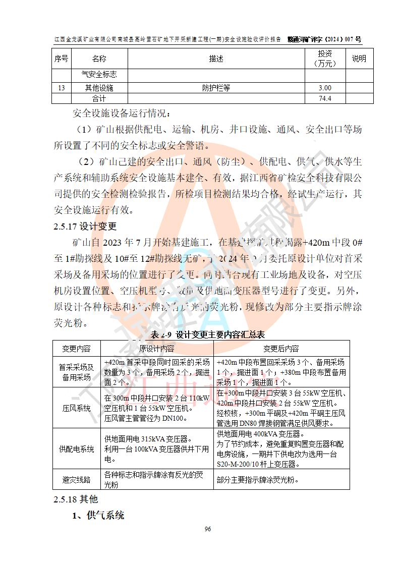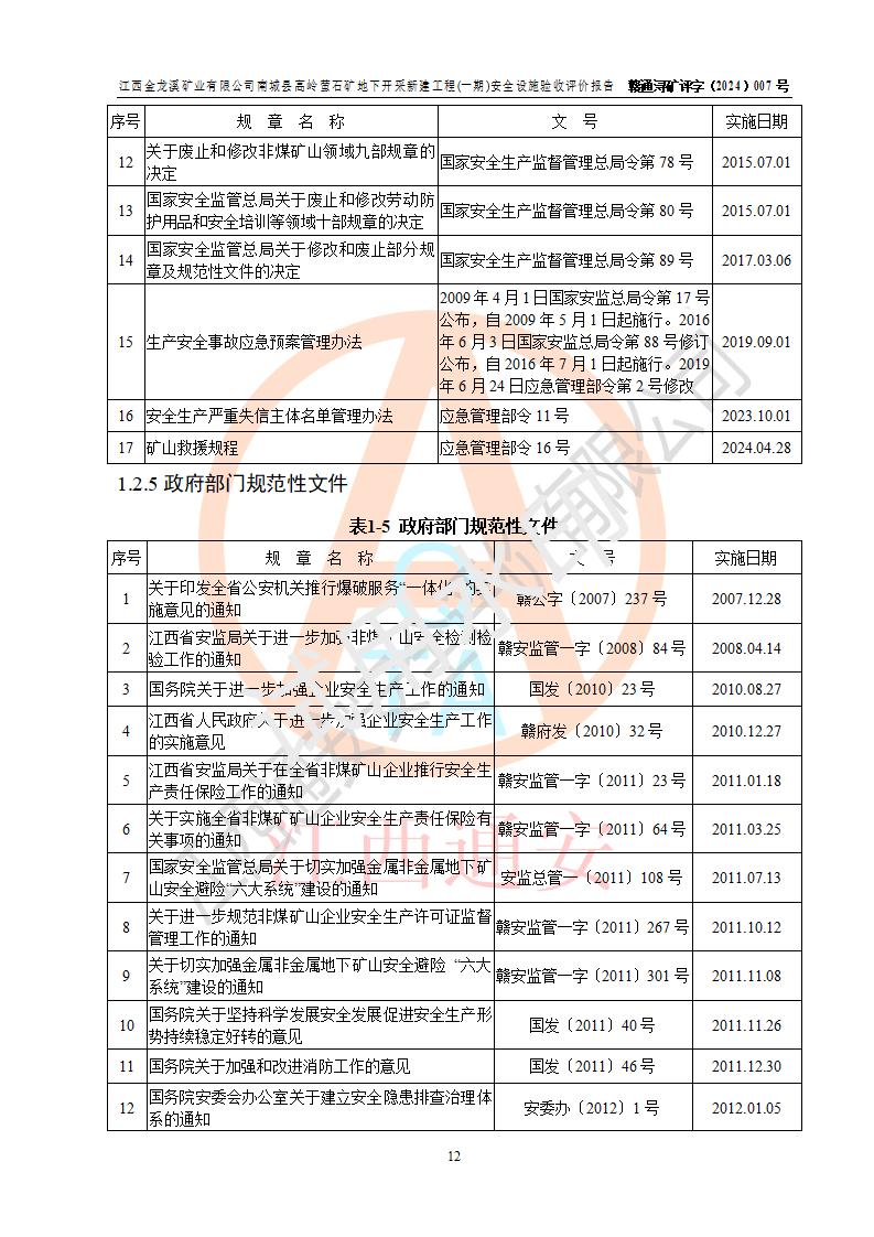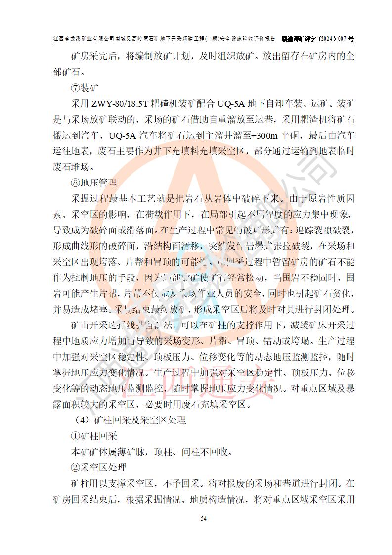 報告名稱 | 江西金龍溪礦業(yè)有限公司南城縣高嶺螢石礦地下開采新建工程(一期)安全設(shè)施驗收評價報告 | |||||