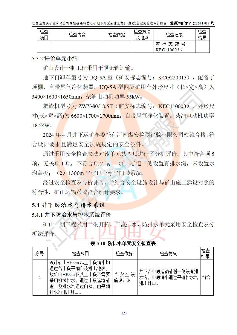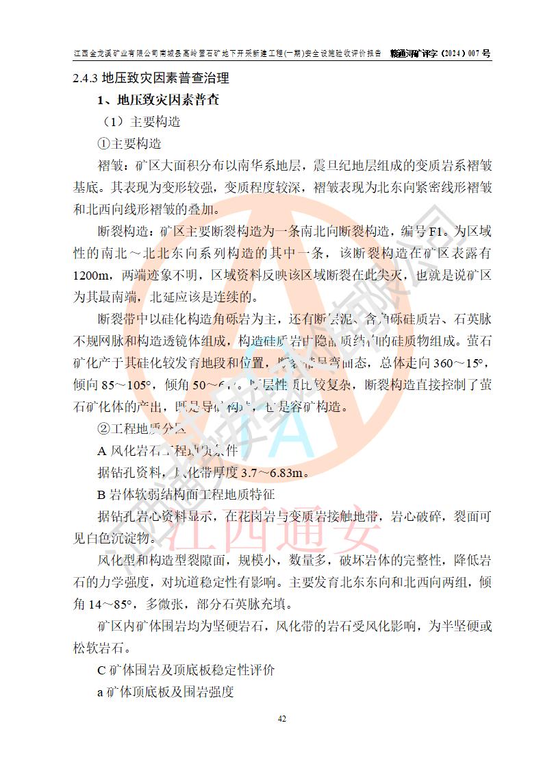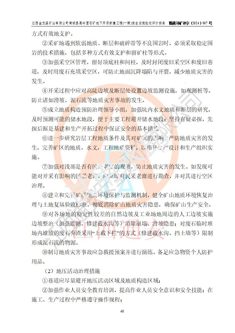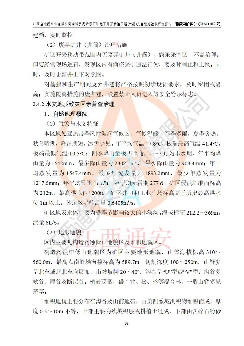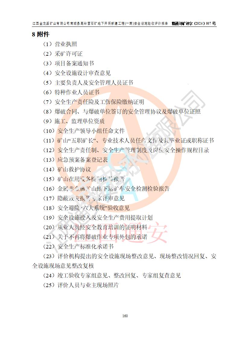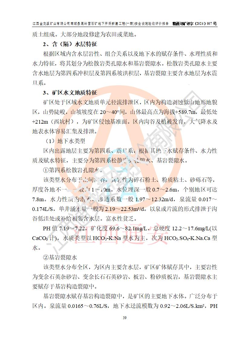 報告名稱 | 江西金龍溪礦業(yè)有限公司南城縣高嶺螢石礦地下開采新建工程(一期)安全設(shè)施驗收評價報告 | |||||
