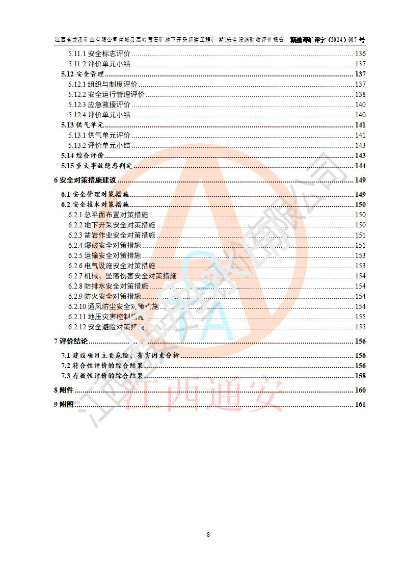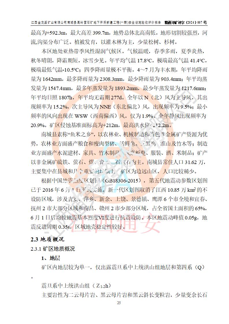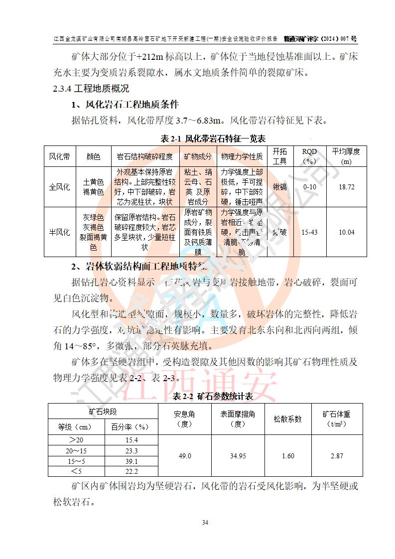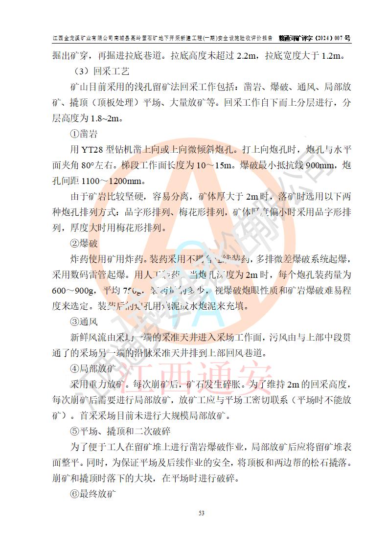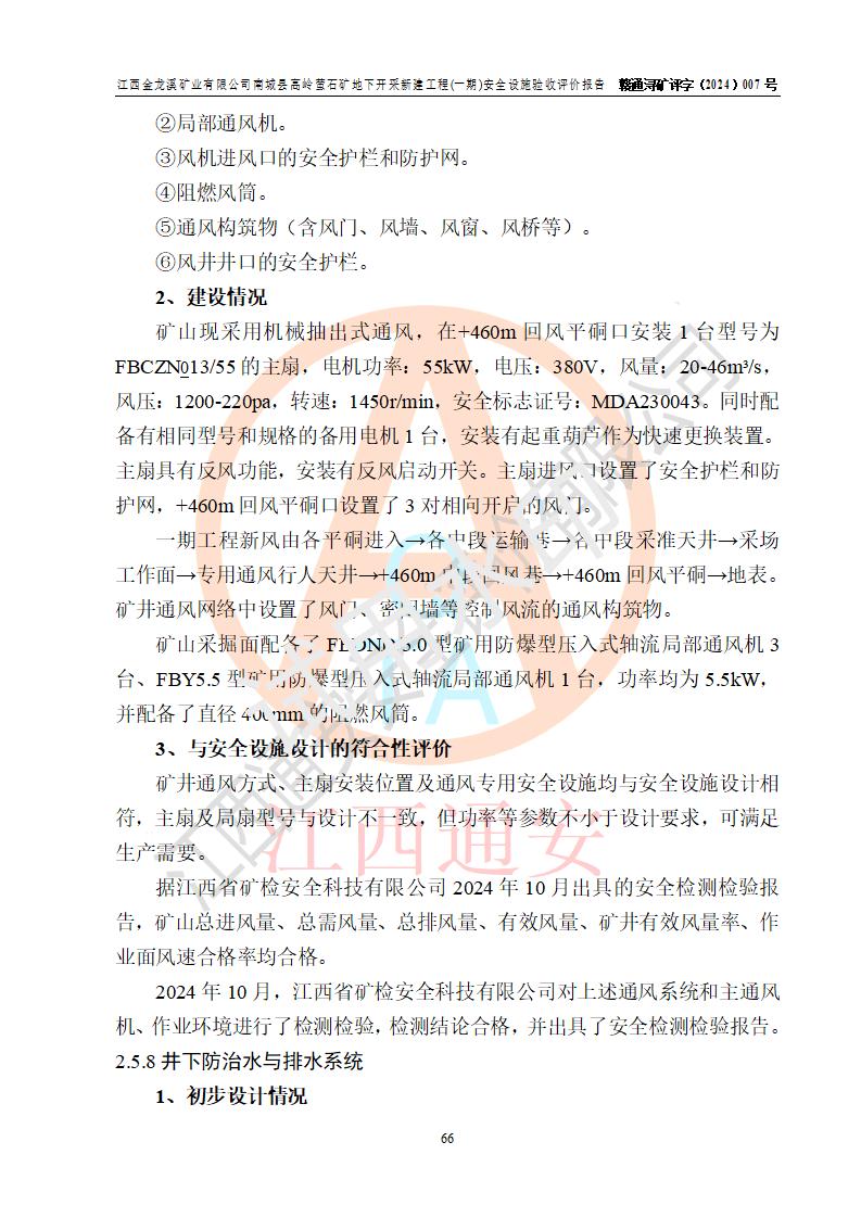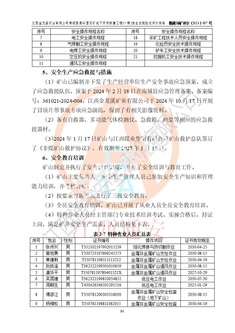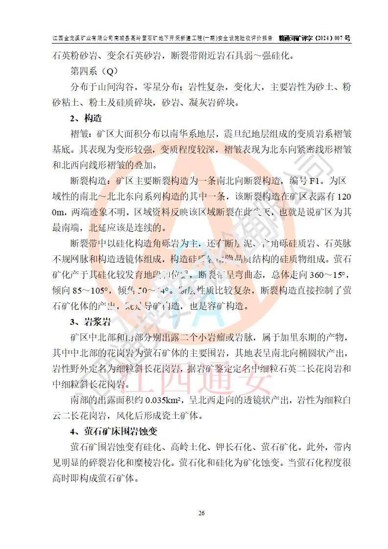 報告名稱 | 江西金龍溪礦業(yè)有限公司南城縣高嶺螢石礦地下開采新建工程(一期)安全設(shè)施驗收評價報告 | |||||