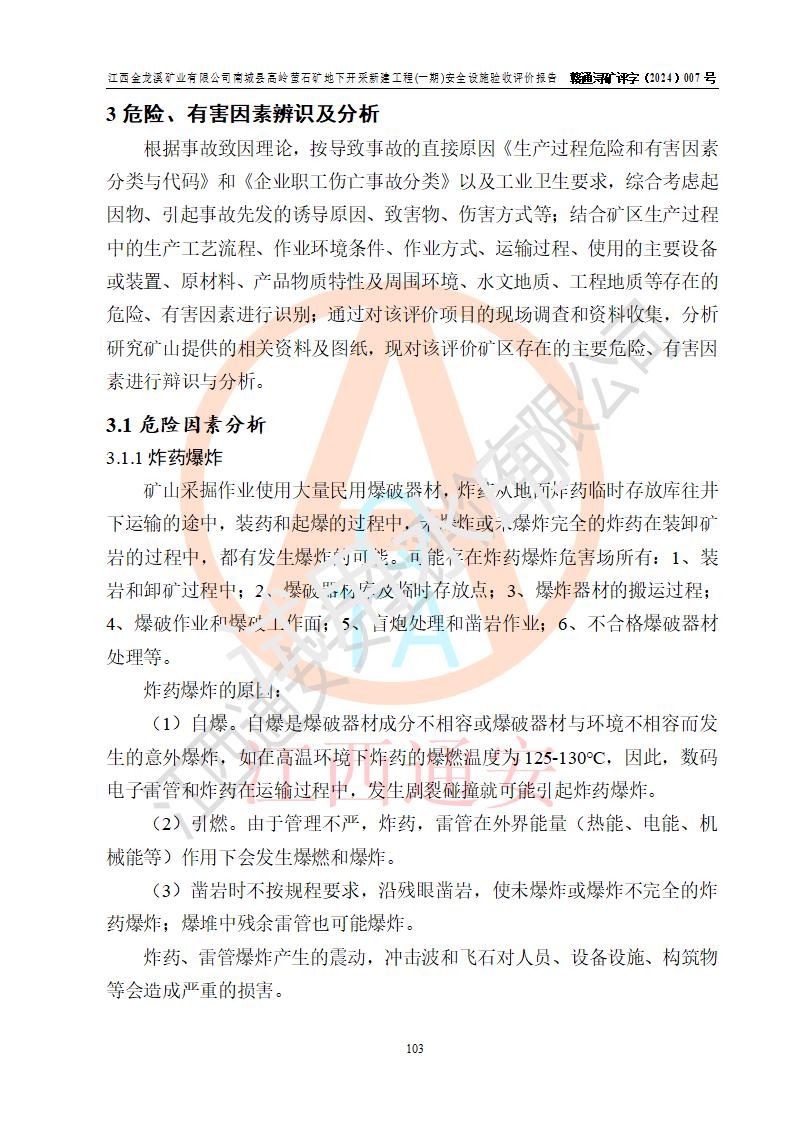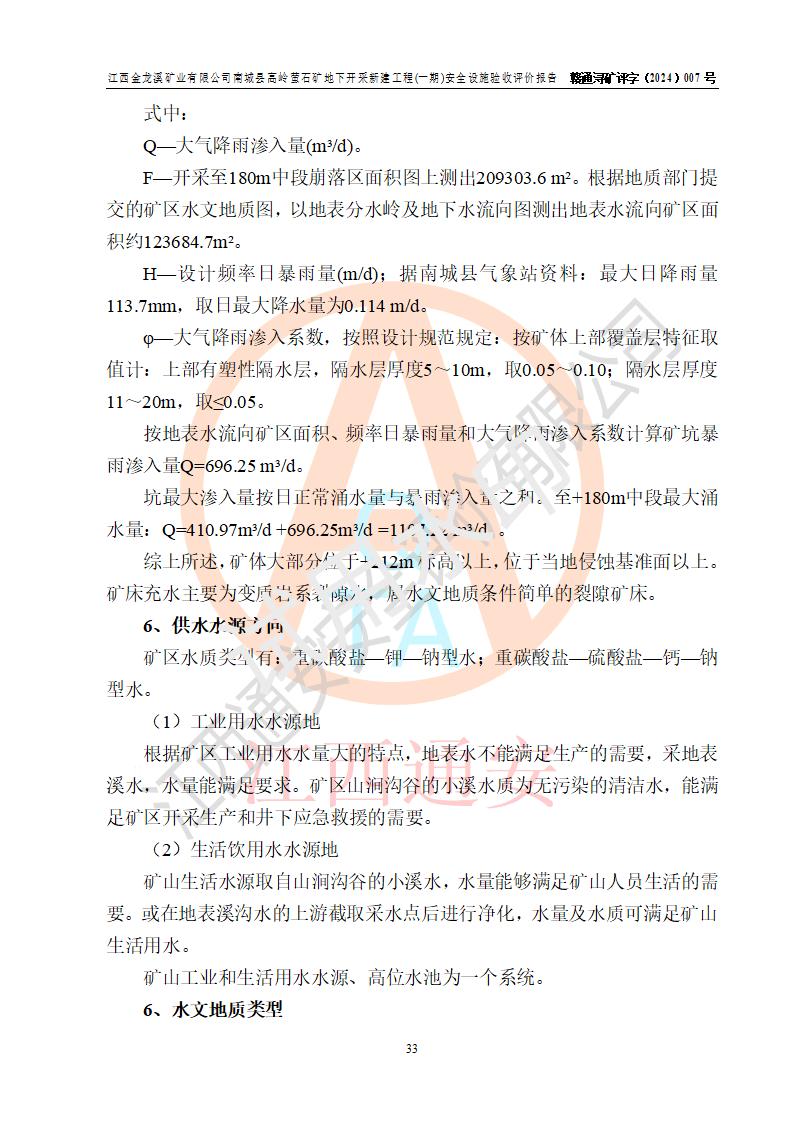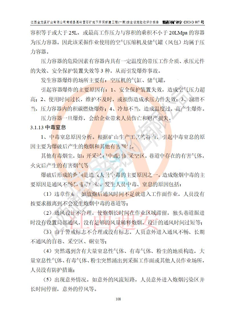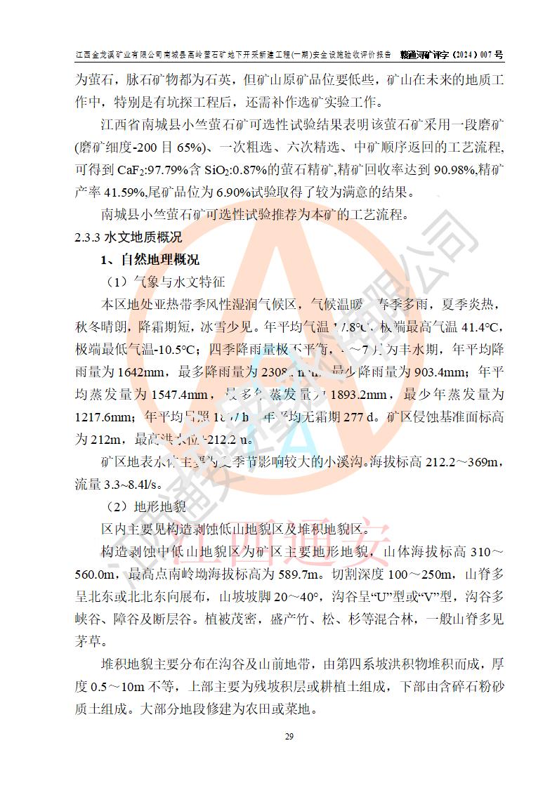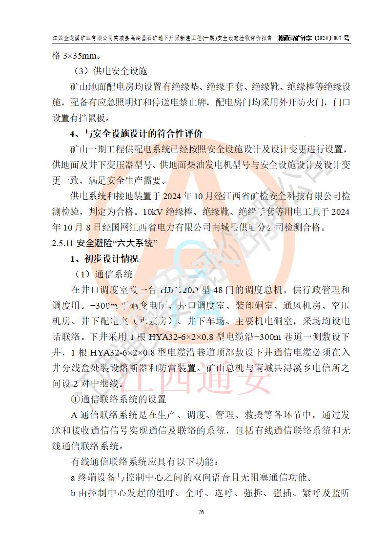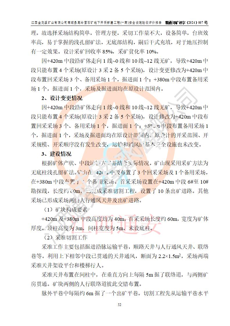 報告名稱 | 江西金龍溪礦業(yè)有限公司南城縣高嶺螢石礦地下開采新建工程(一期)安全設(shè)施驗收評價報告 | |||||