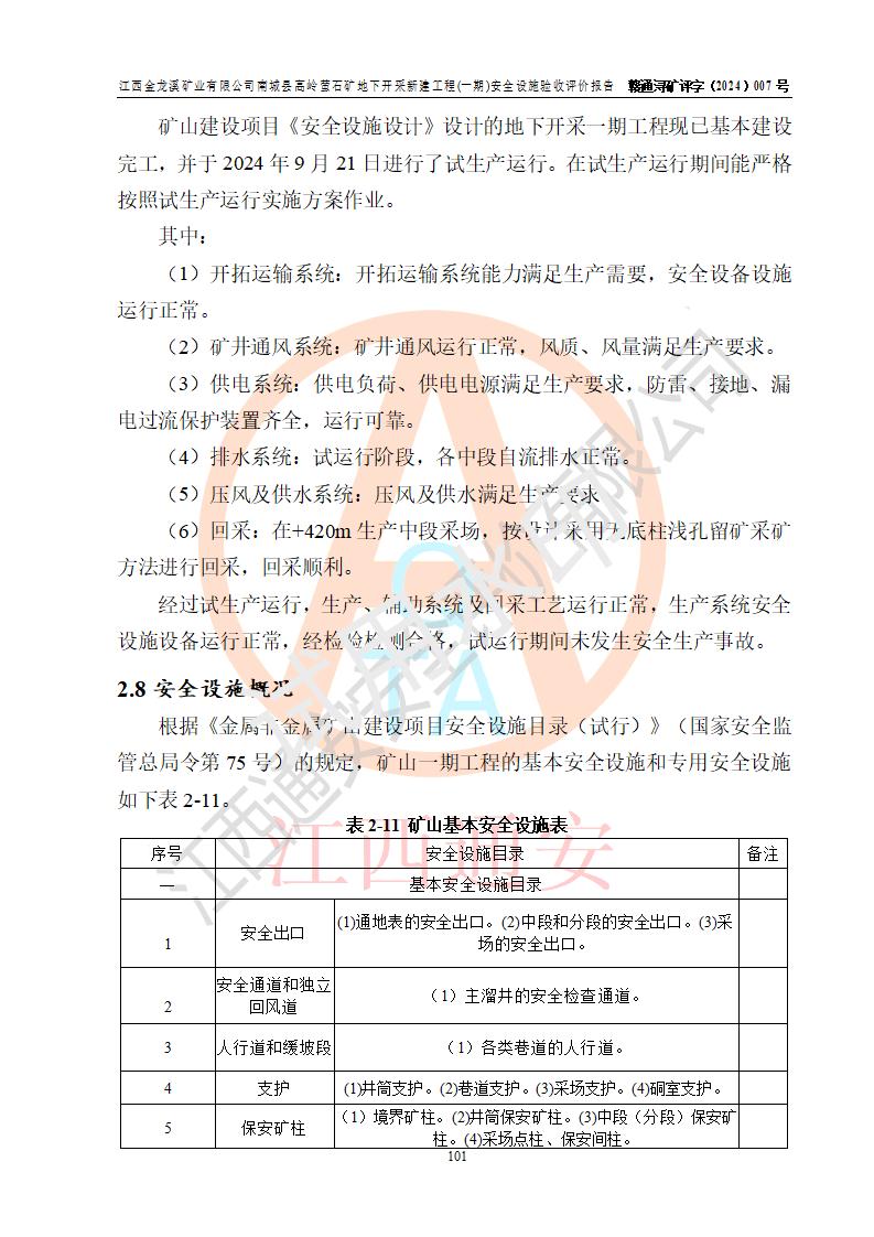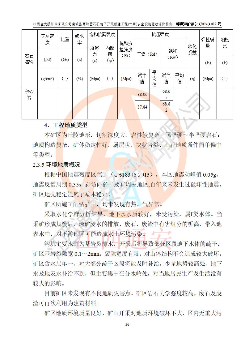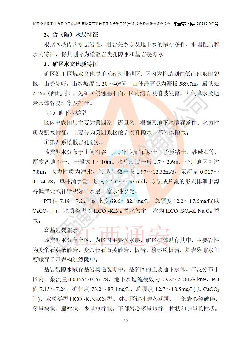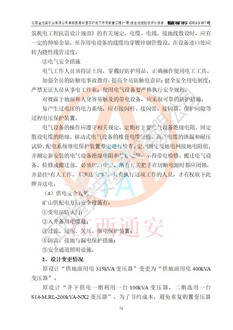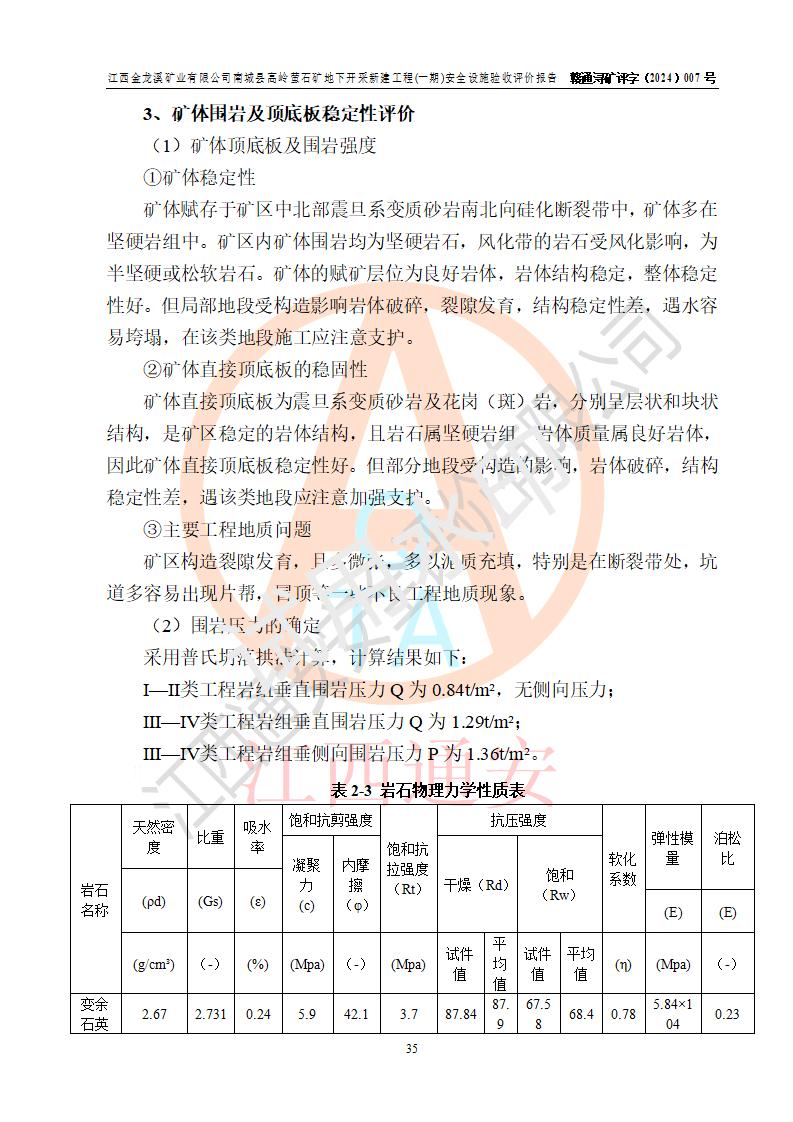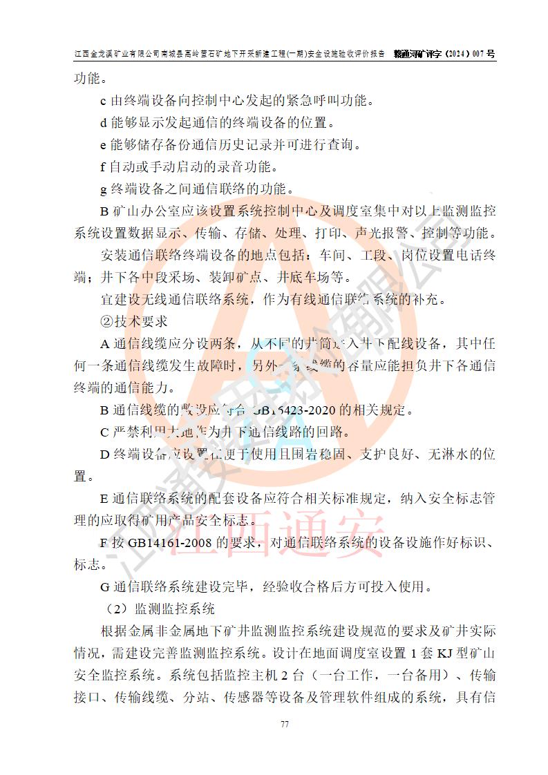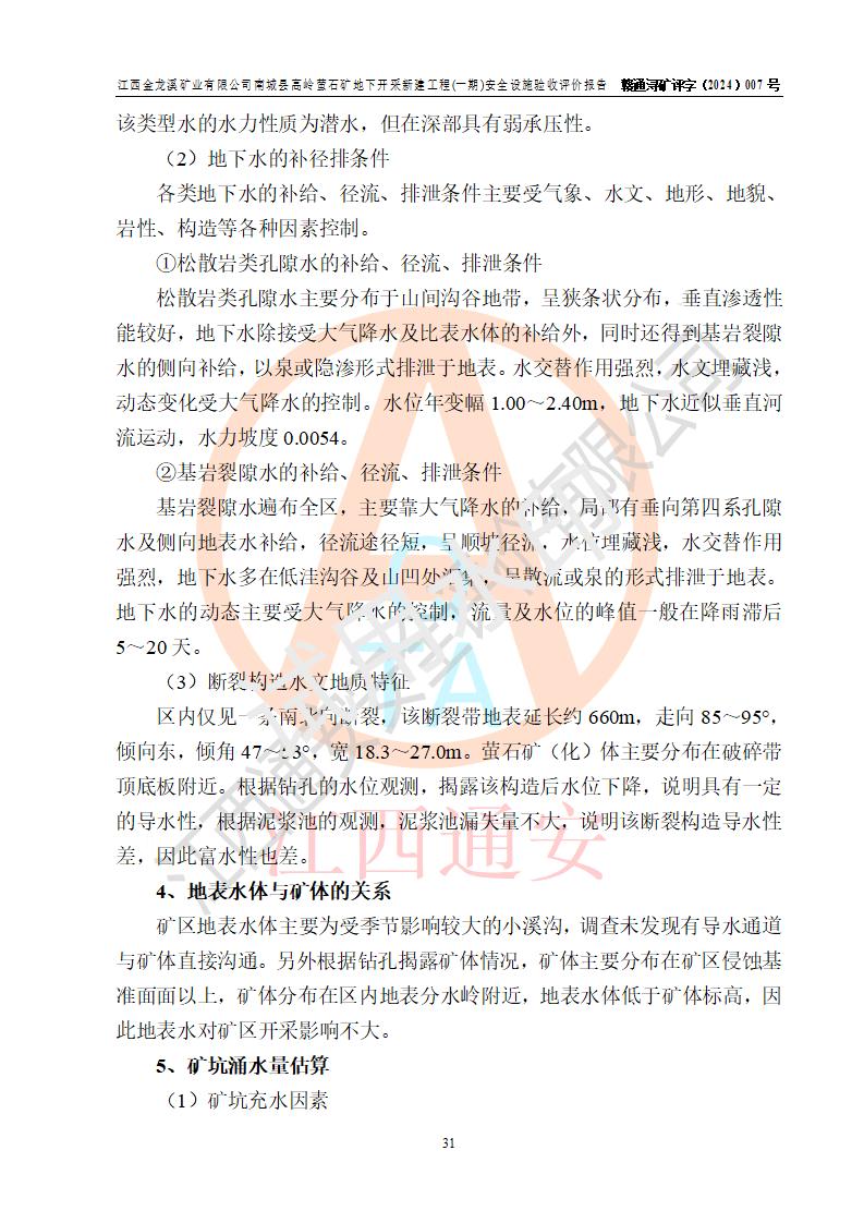 報告名稱 | 江西金龍溪礦業(yè)有限公司南城縣高嶺螢石礦地下開采新建工程(一期)安全設(shè)施驗收評價報告 | |||||
