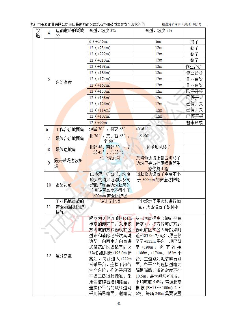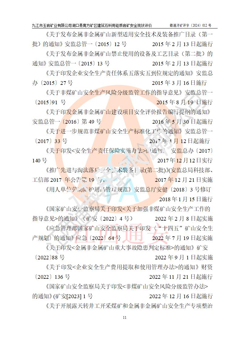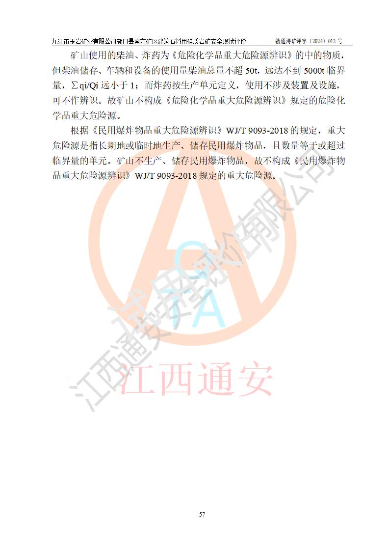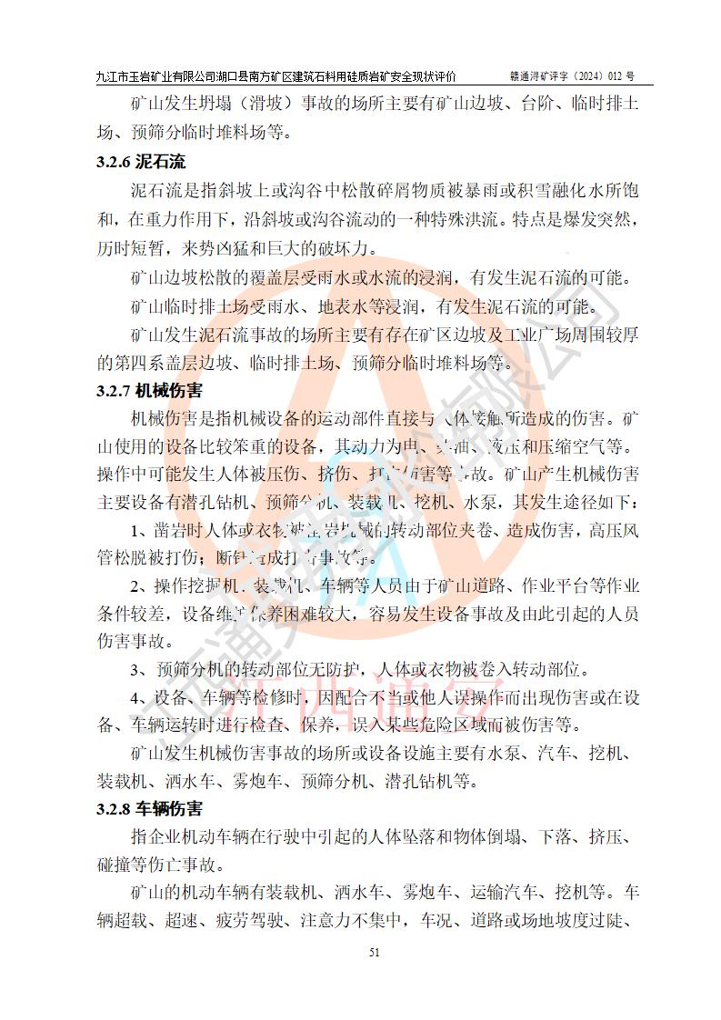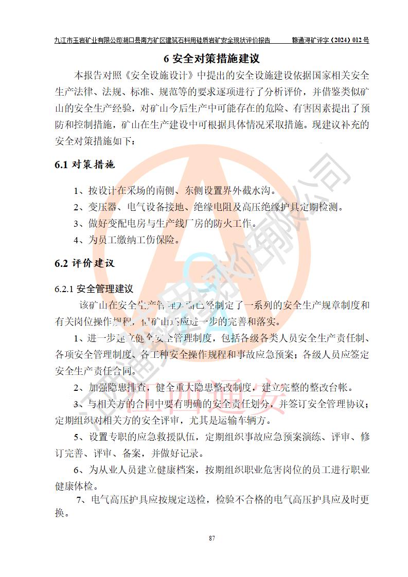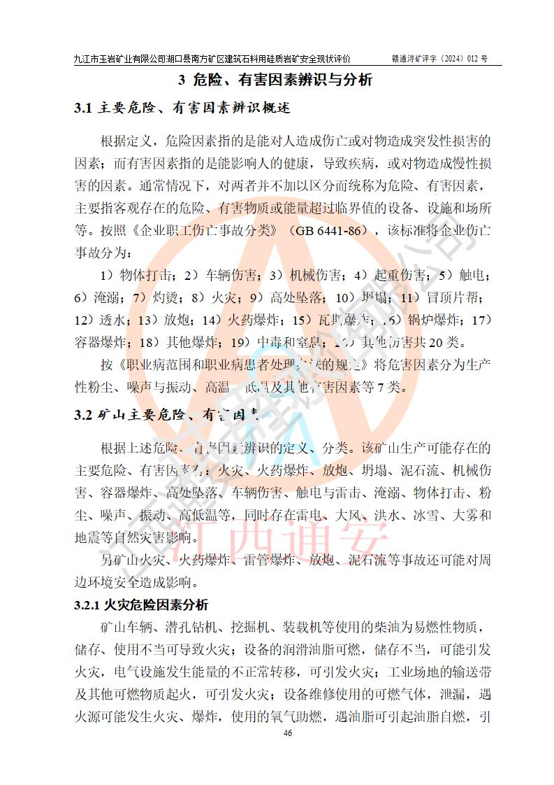 評價(jià)報(bào)告名稱 | 九江市玉巖礦業(yè)有限公司湖口縣南方礦區(qū)建筑石料用硅質(zhì)巖礦安全現(xiàn)狀評價(jià) | |||||