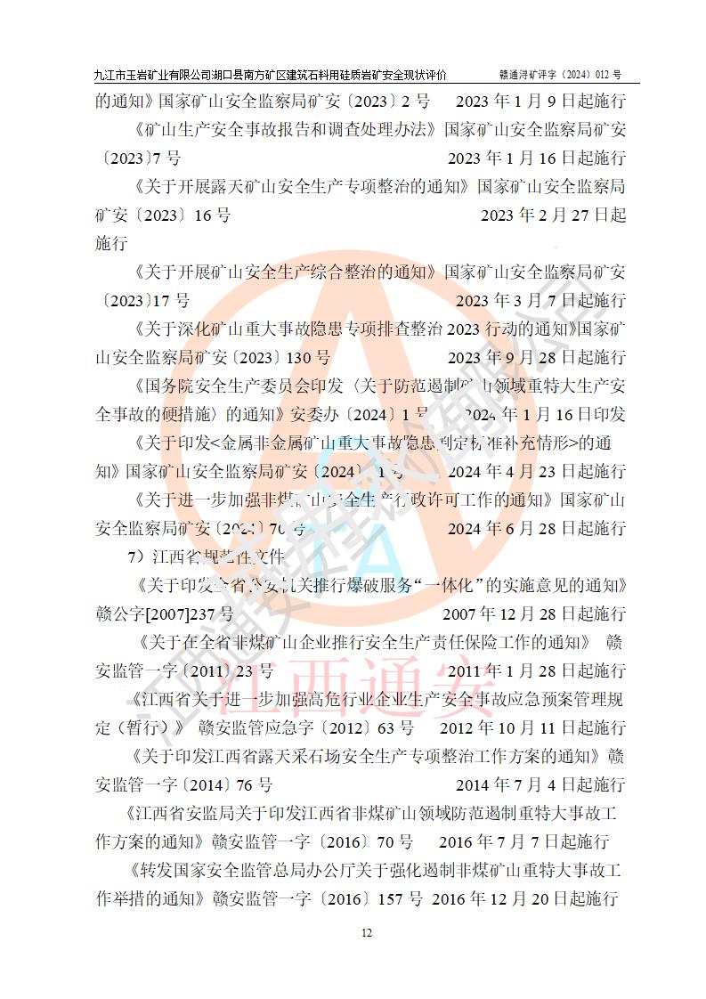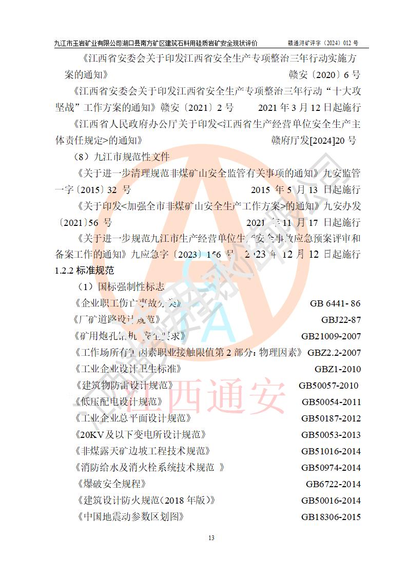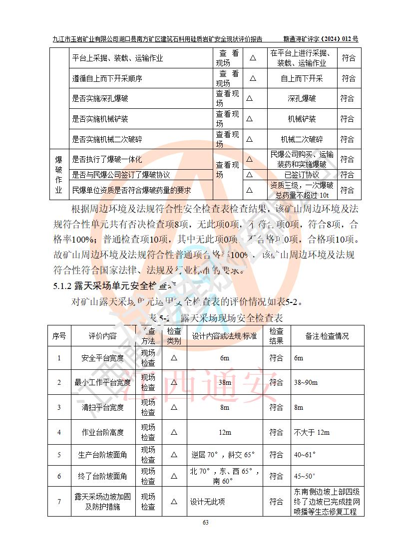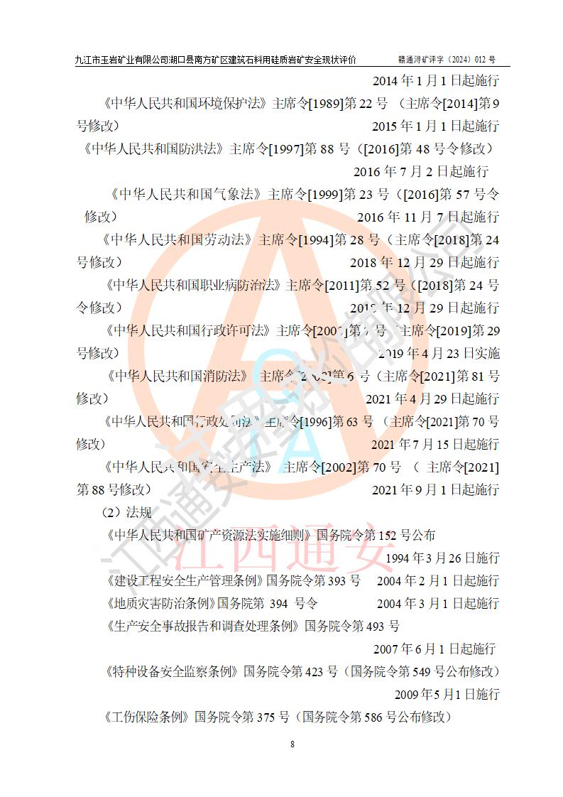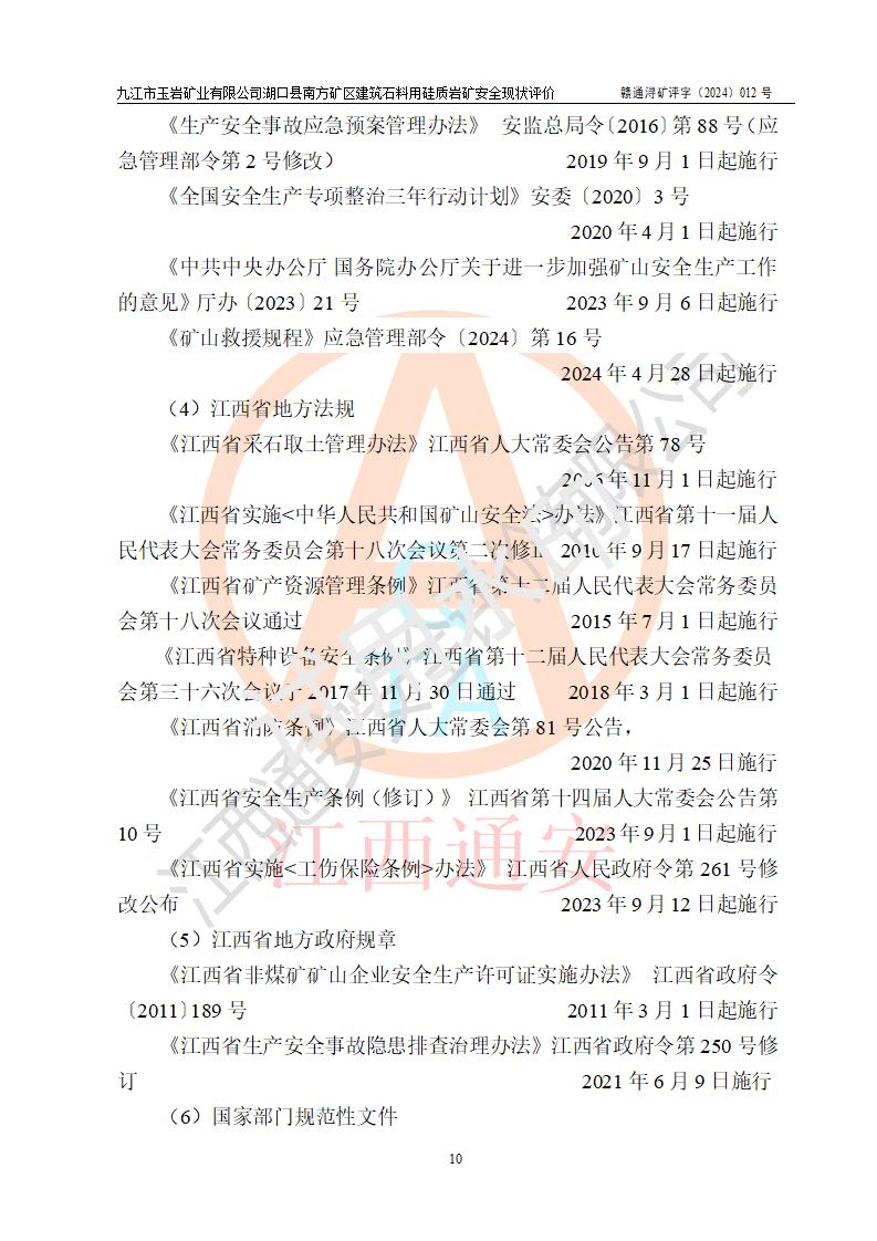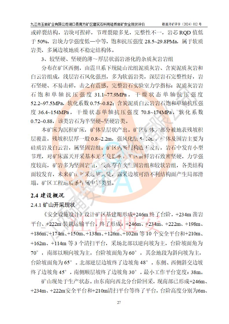 評價(jià)報(bào)告名稱 | 九江市玉巖礦業(yè)有限公司湖口縣南方礦區(qū)建筑石料用硅質(zhì)巖礦安全現(xiàn)狀評價(jià) | |||||