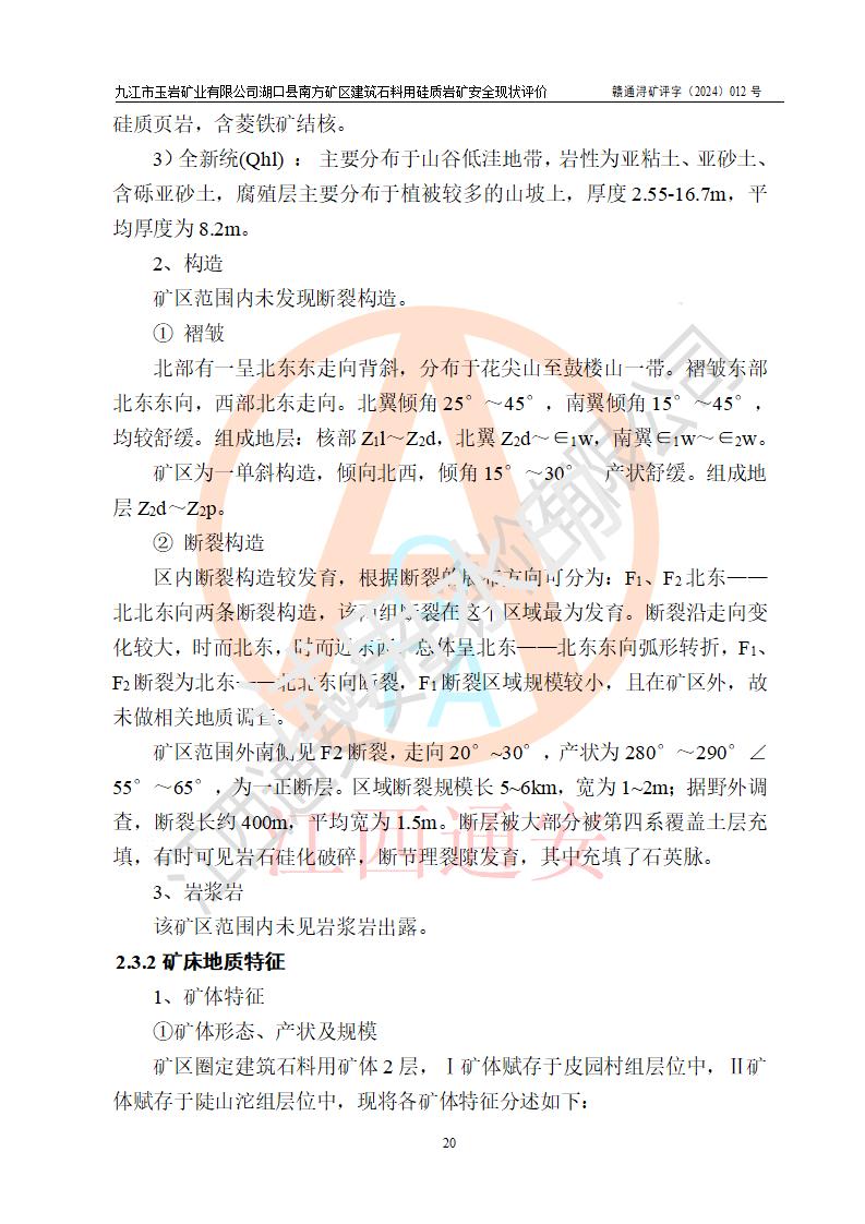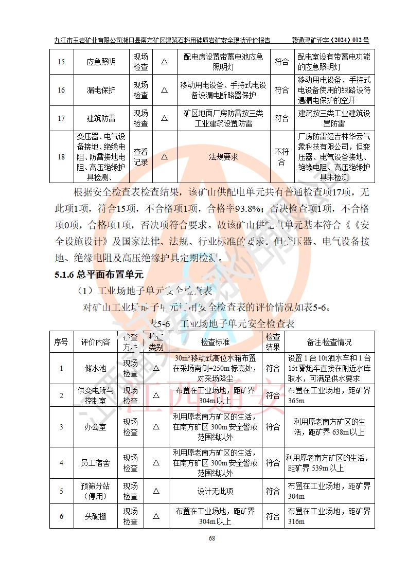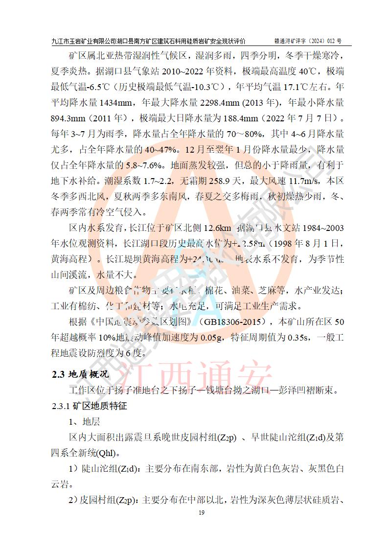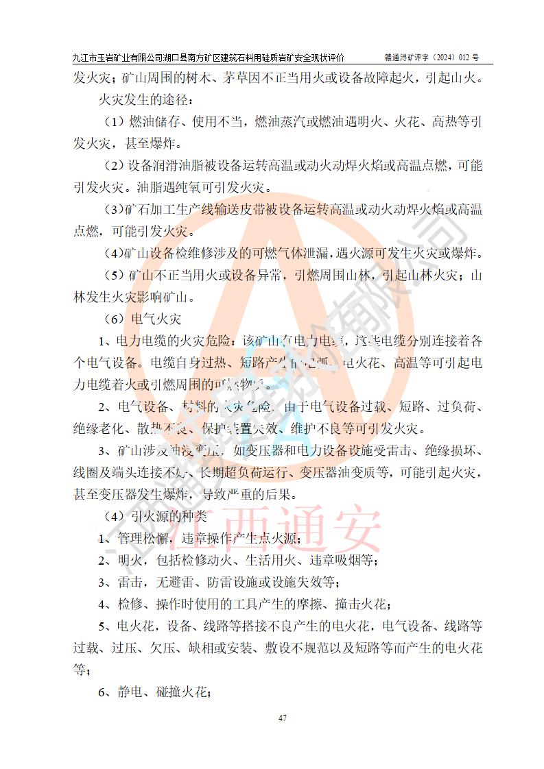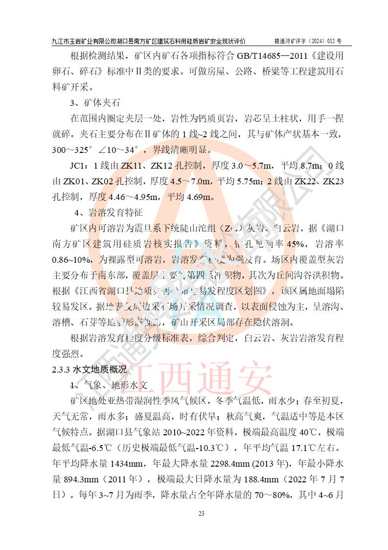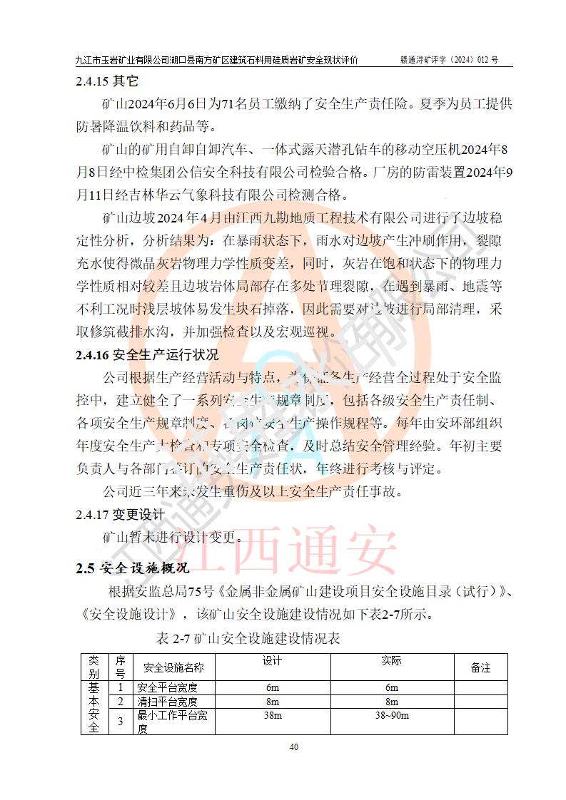 評價(jià)報(bào)告名稱 | 九江市玉巖礦業(yè)有限公司湖口縣南方礦區(qū)建筑石料用硅質(zhì)巖礦安全現(xiàn)狀評價(jià) | |||||