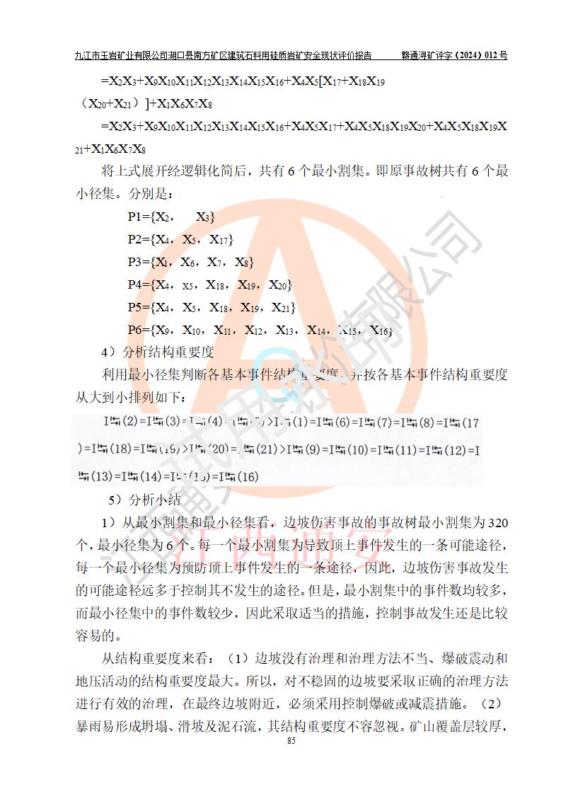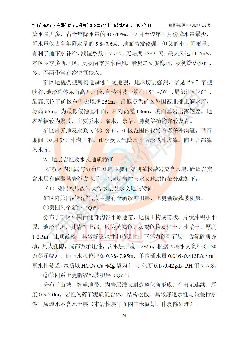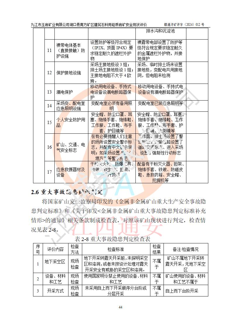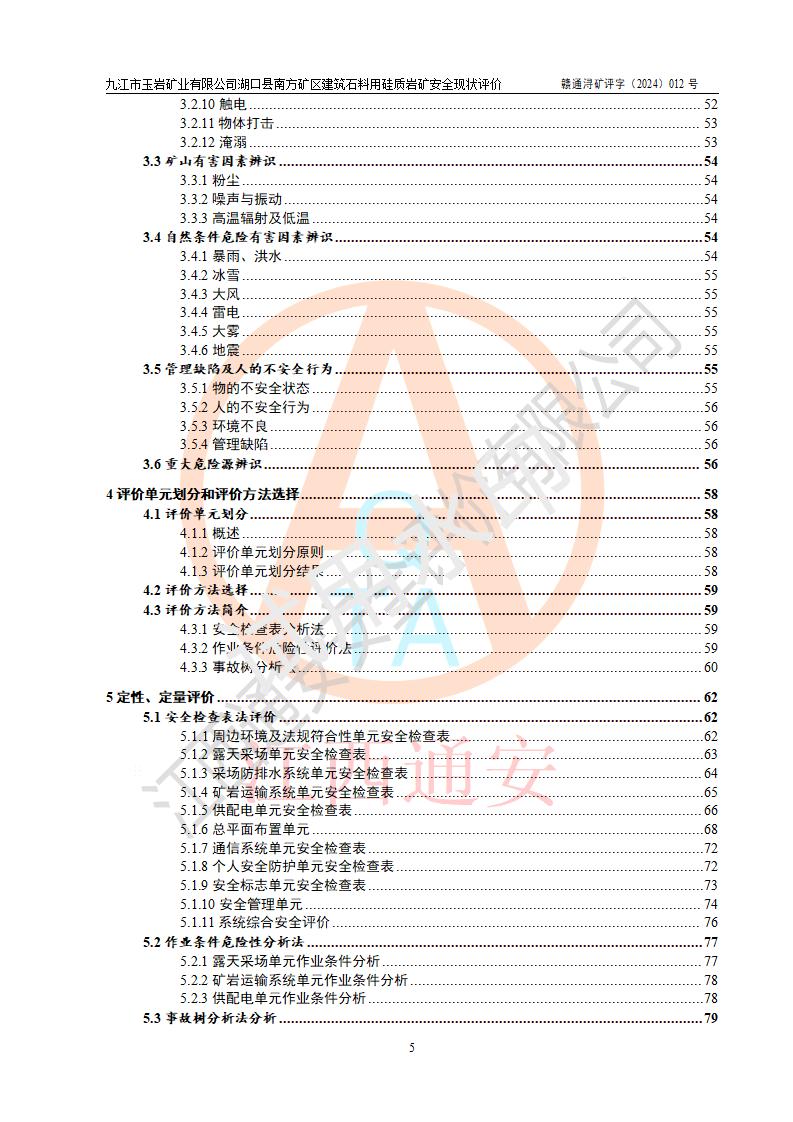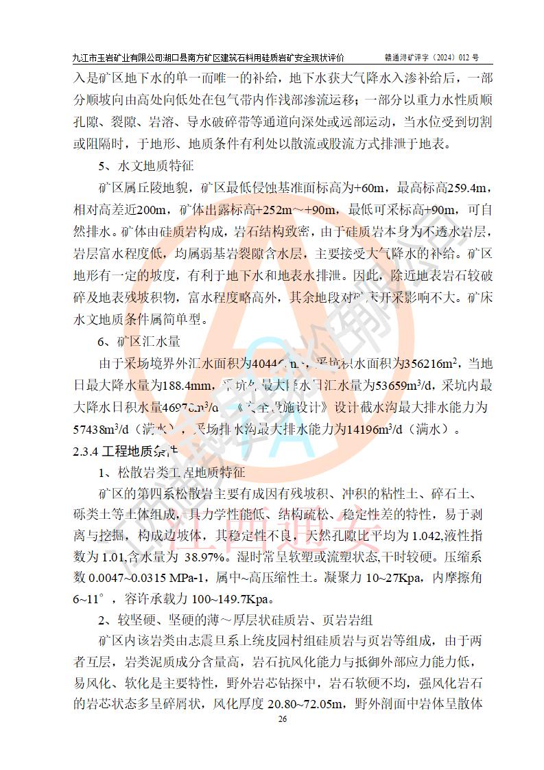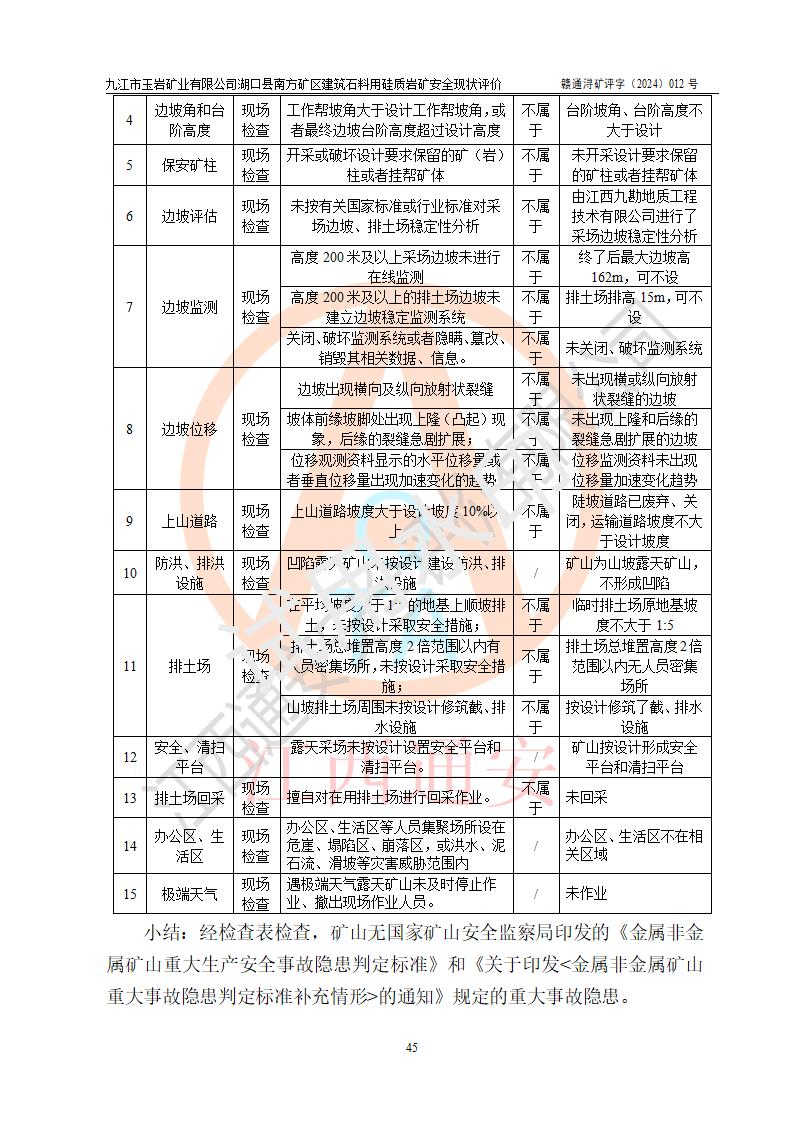 評價(jià)報(bào)告名稱 | 九江市玉巖礦業(yè)有限公司湖口縣南方礦區(qū)建筑石料用硅質(zhì)巖礦安全現(xiàn)狀評價(jià) | |||||