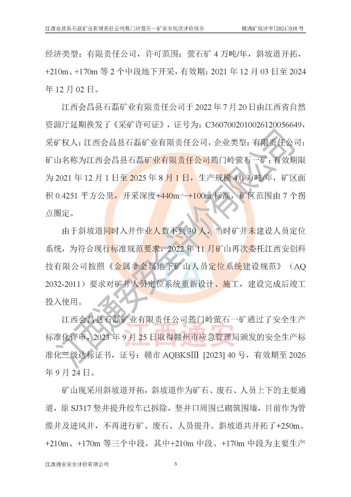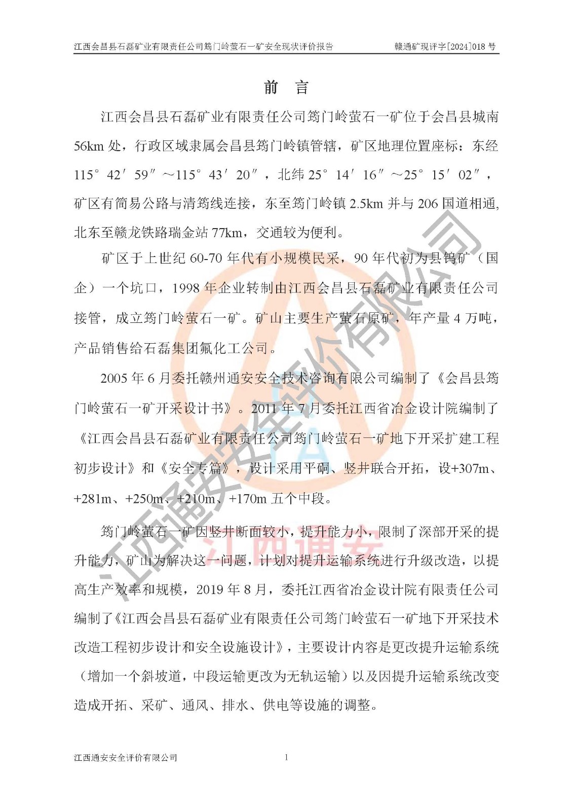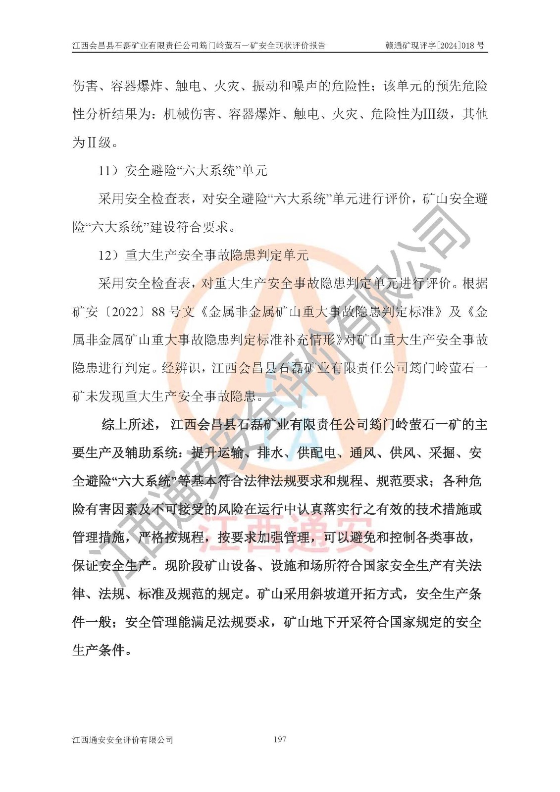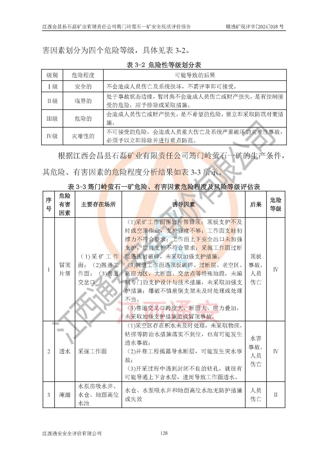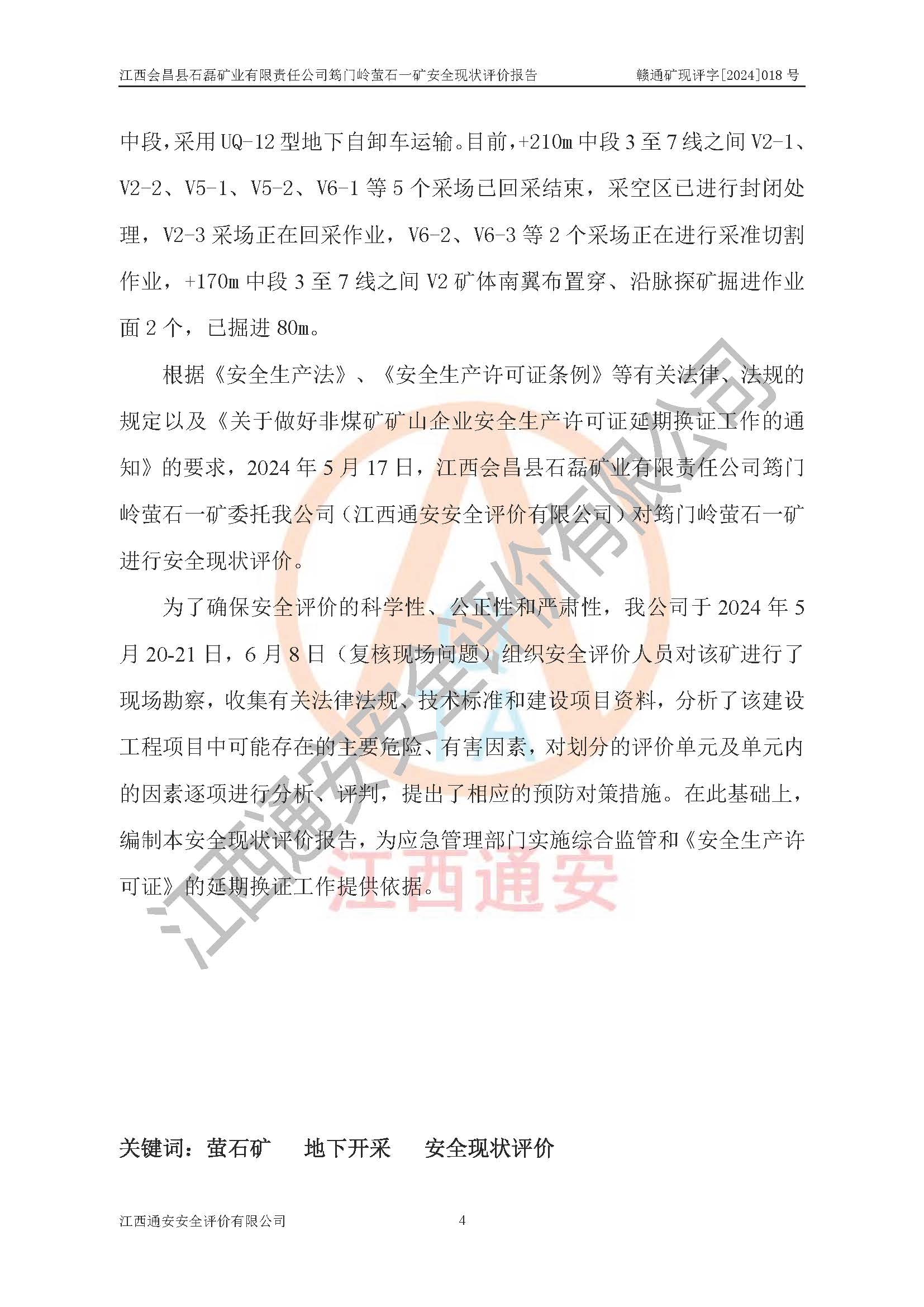 項目名稱 | 江西會昌縣石磊礦業(yè)有限責任公司筠門嶺螢石一礦安全現(xiàn)狀評價報告 | ||||