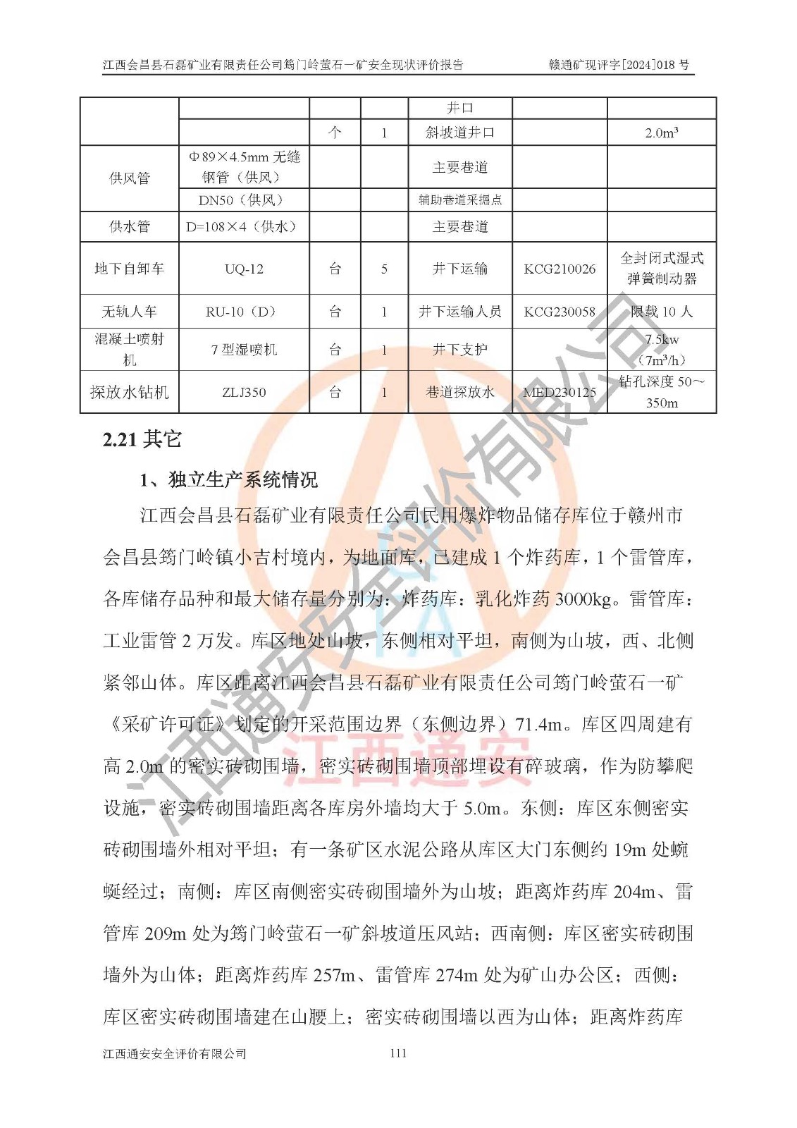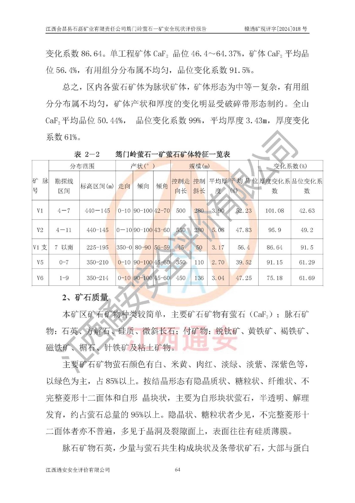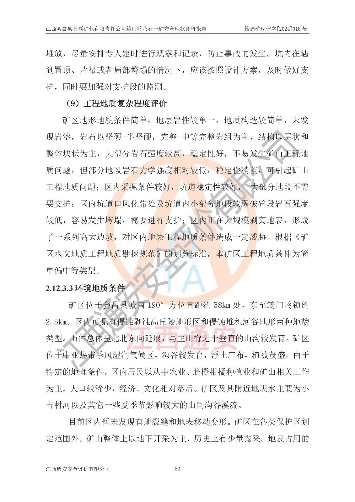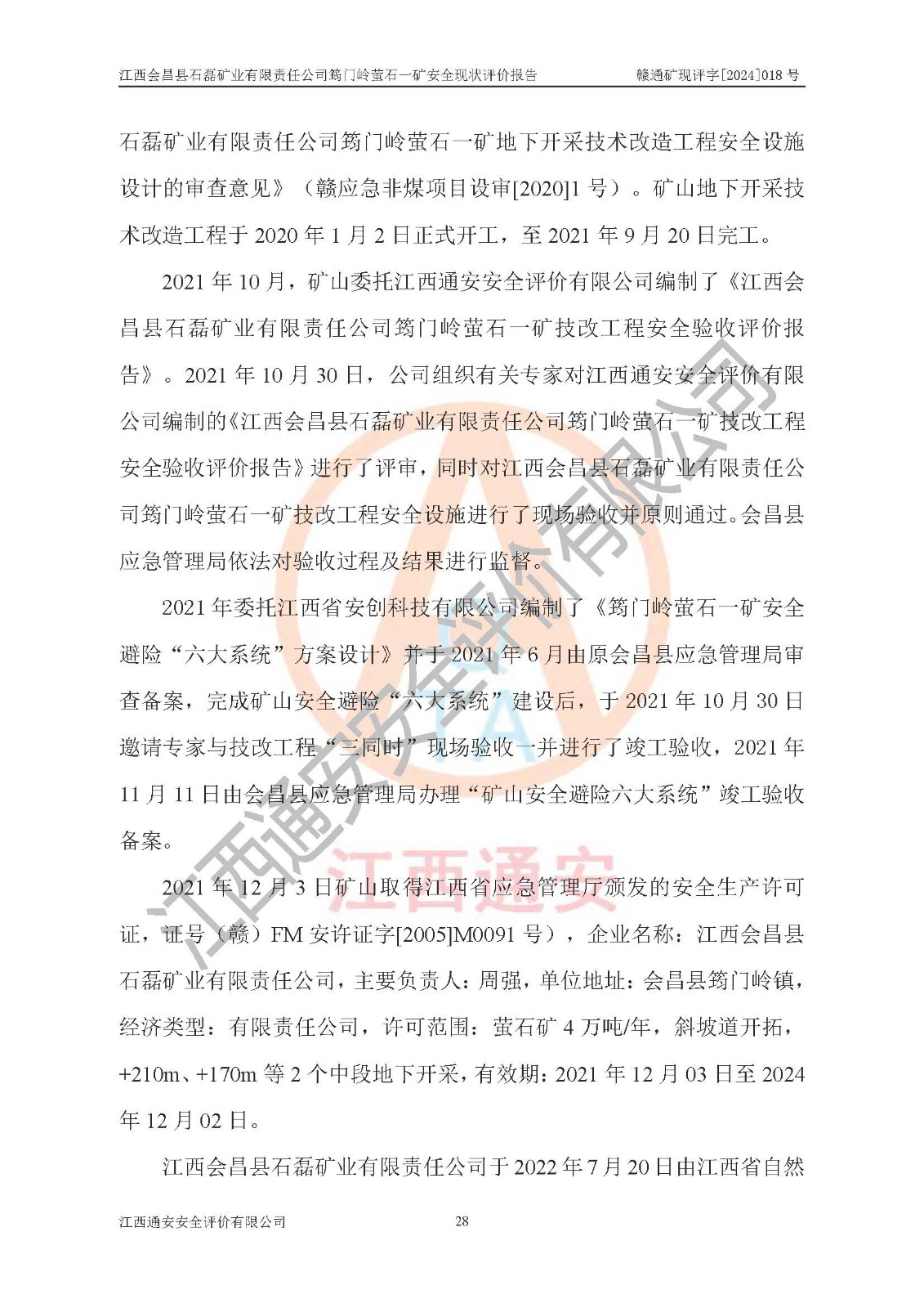 項目名稱 | 江西會昌縣石磊礦業(yè)有限責任公司筠門嶺螢石一礦安全現(xiàn)狀評價報告 | ||||