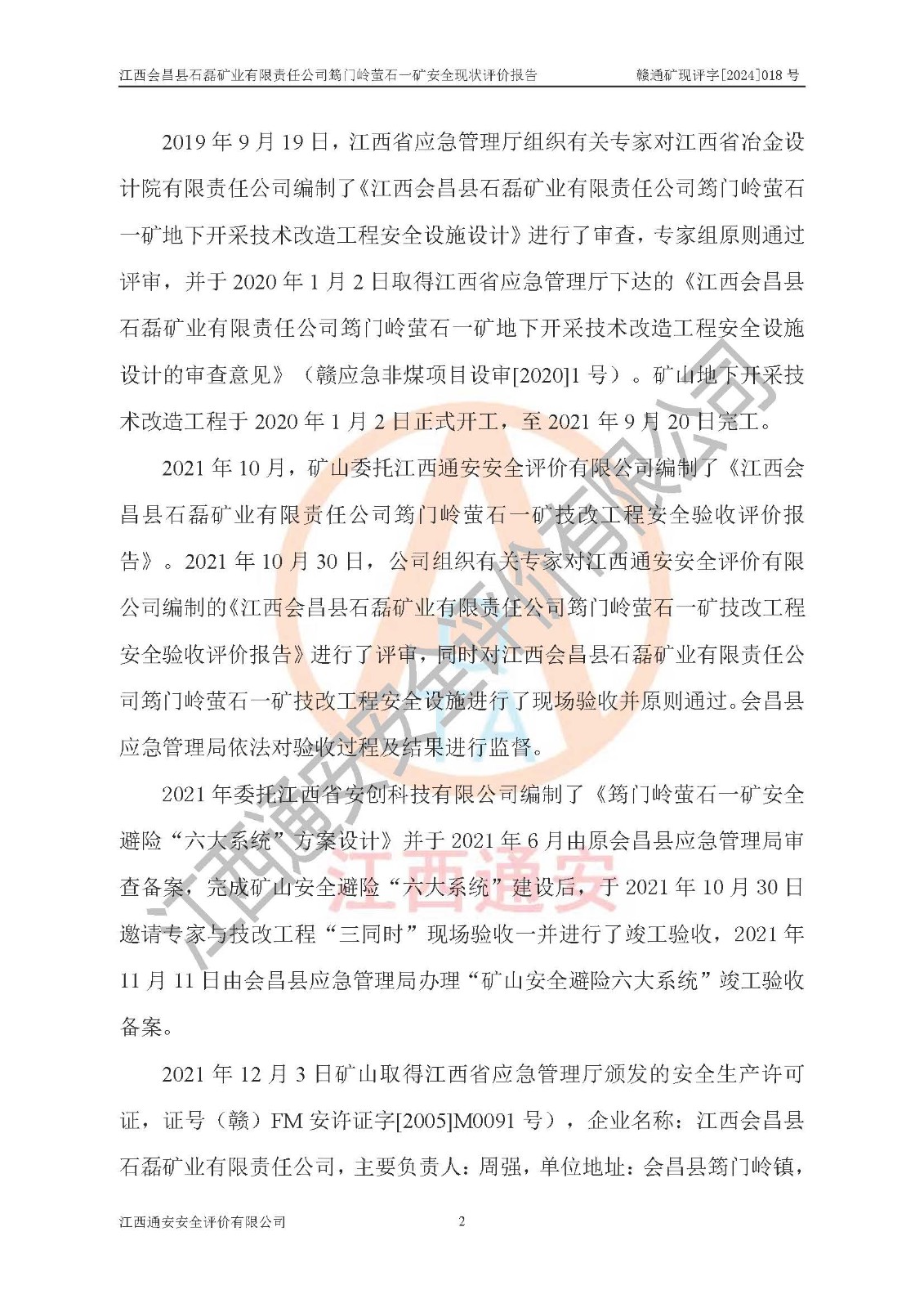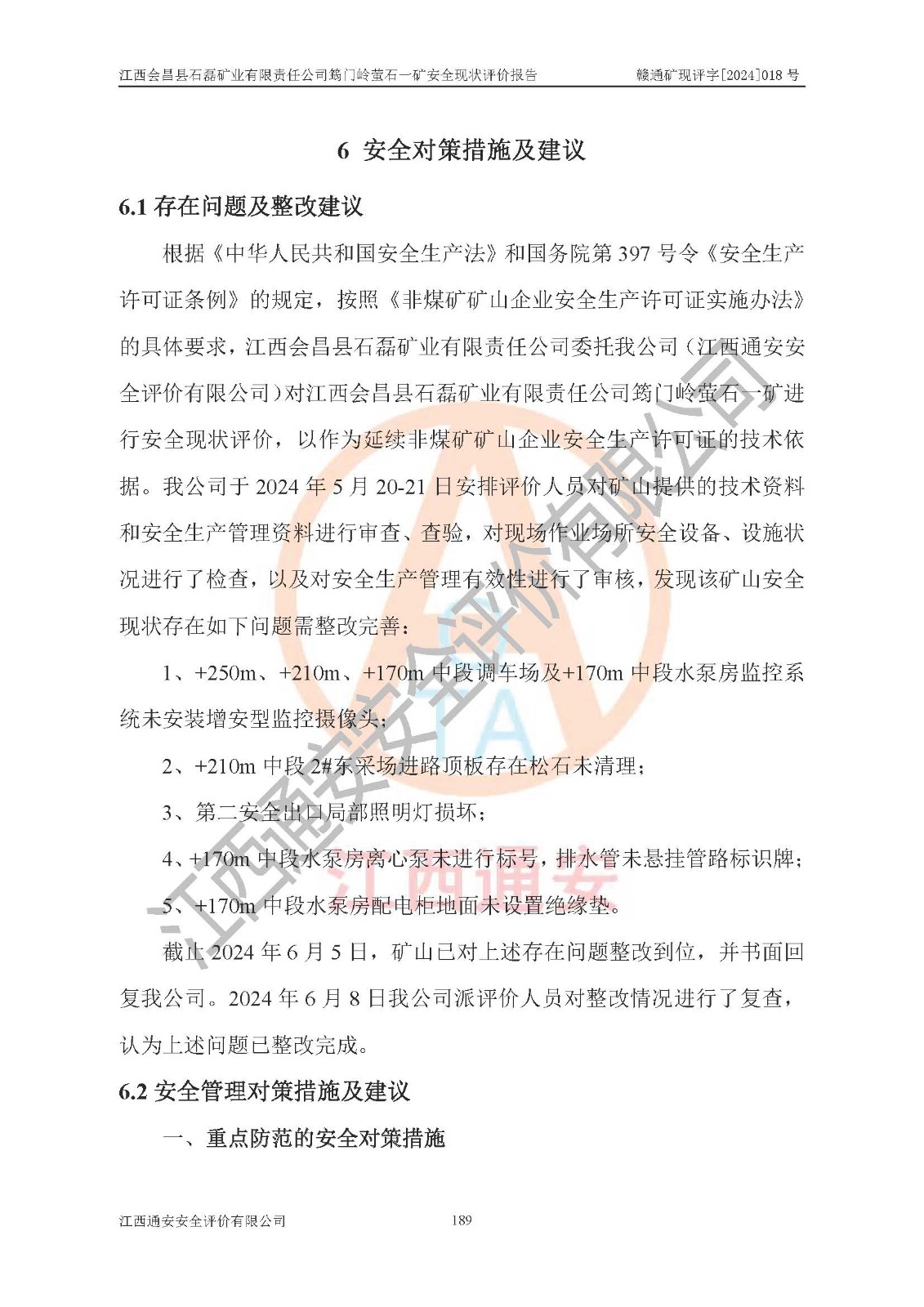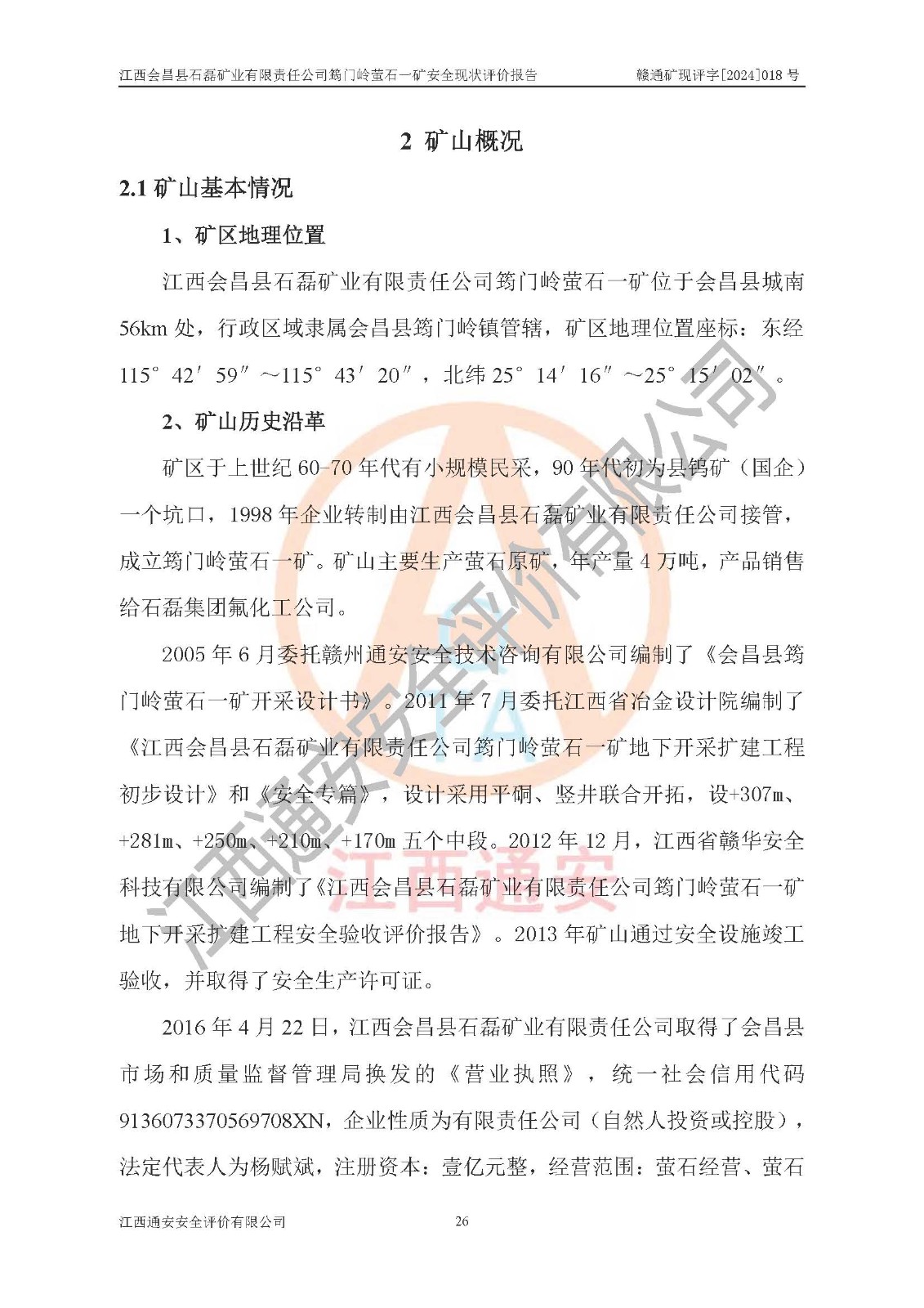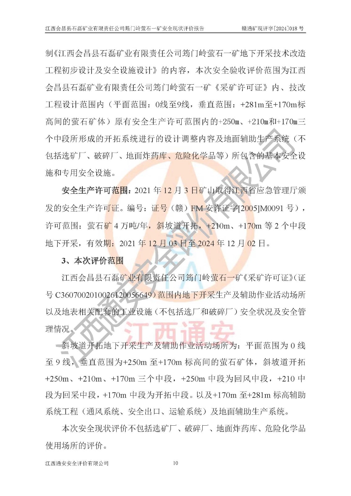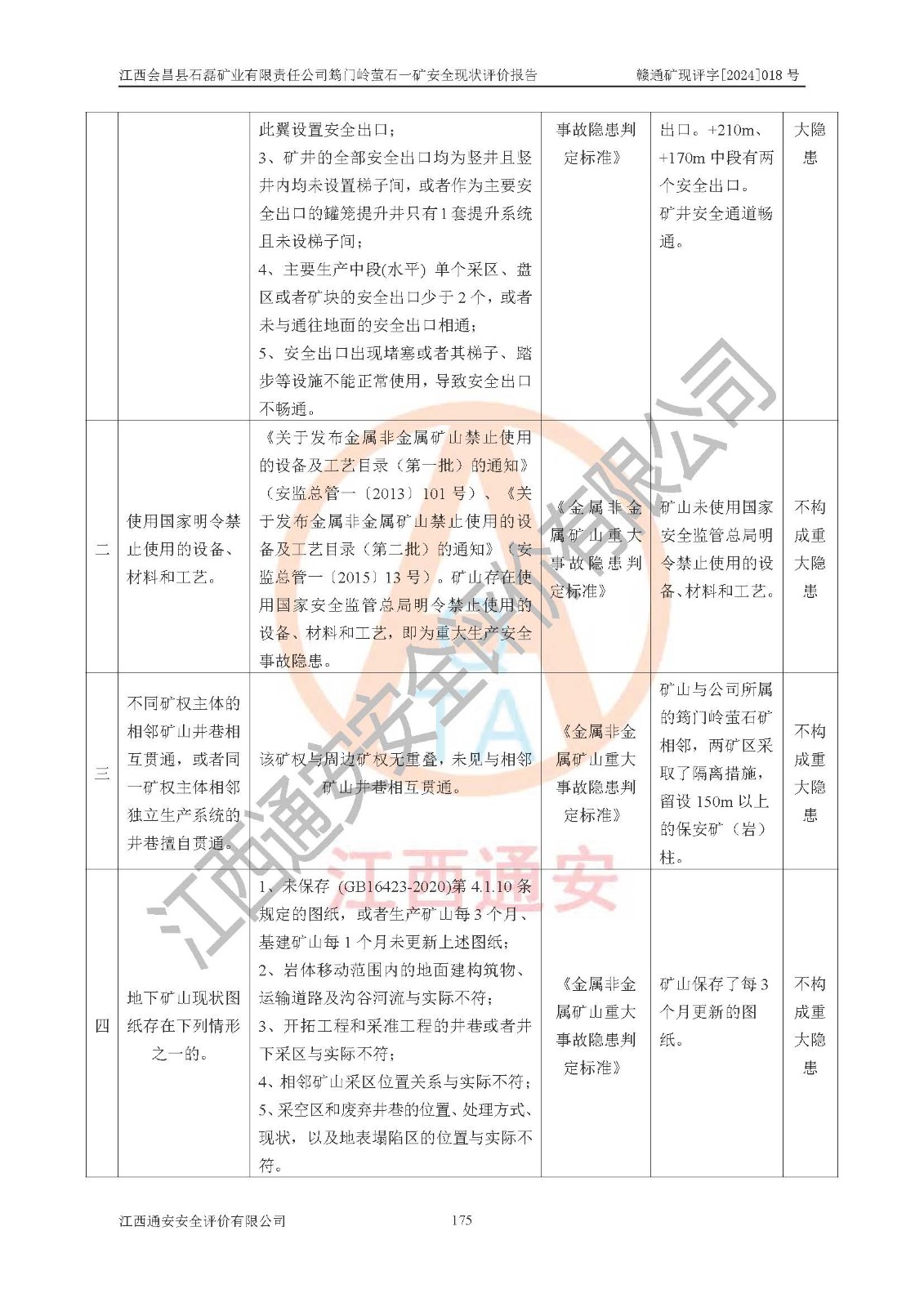 項目名稱 | 江西會昌縣石磊礦業(yè)有限責任公司筠門嶺螢石一礦安全現(xiàn)狀評價報告 | ||||