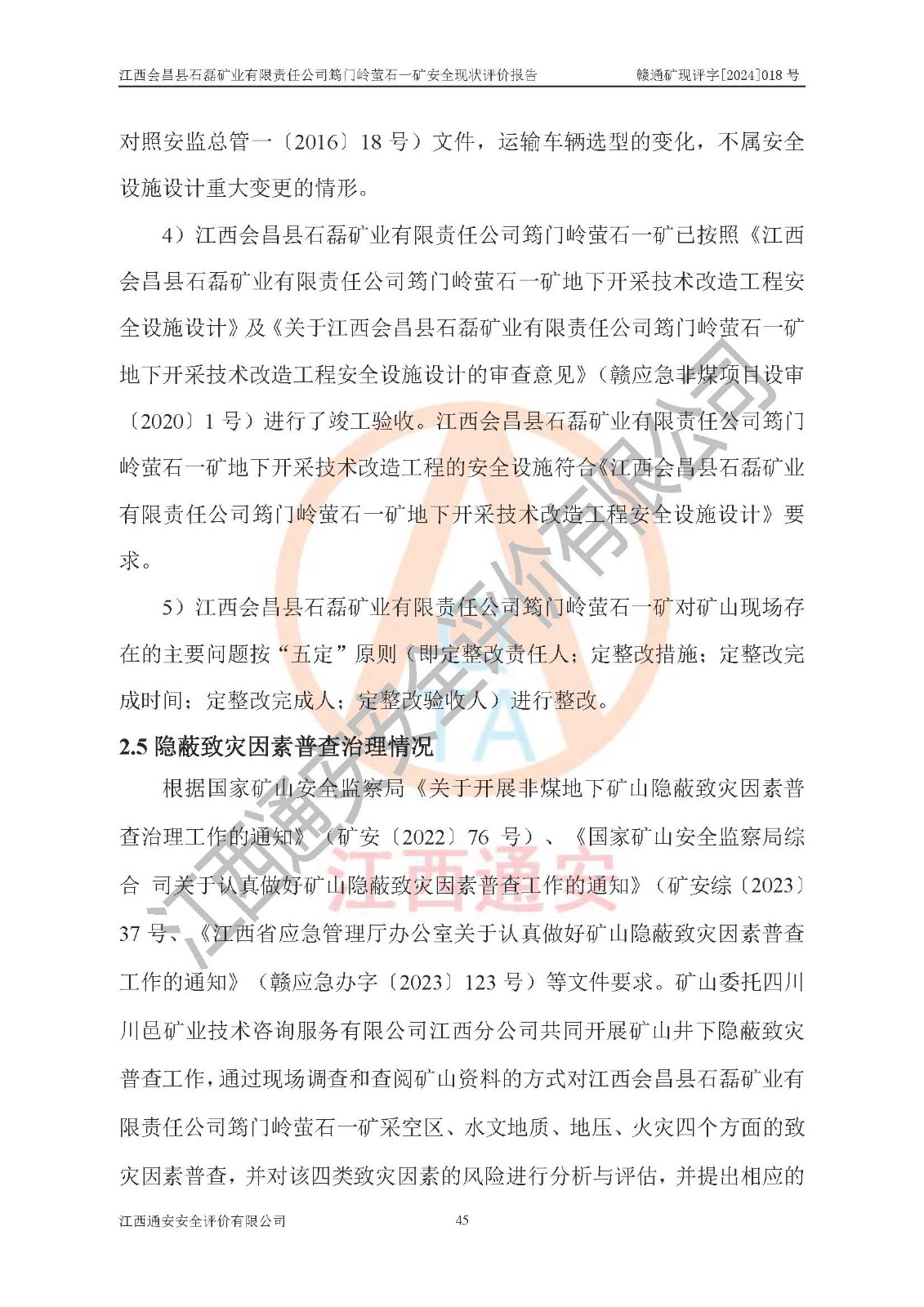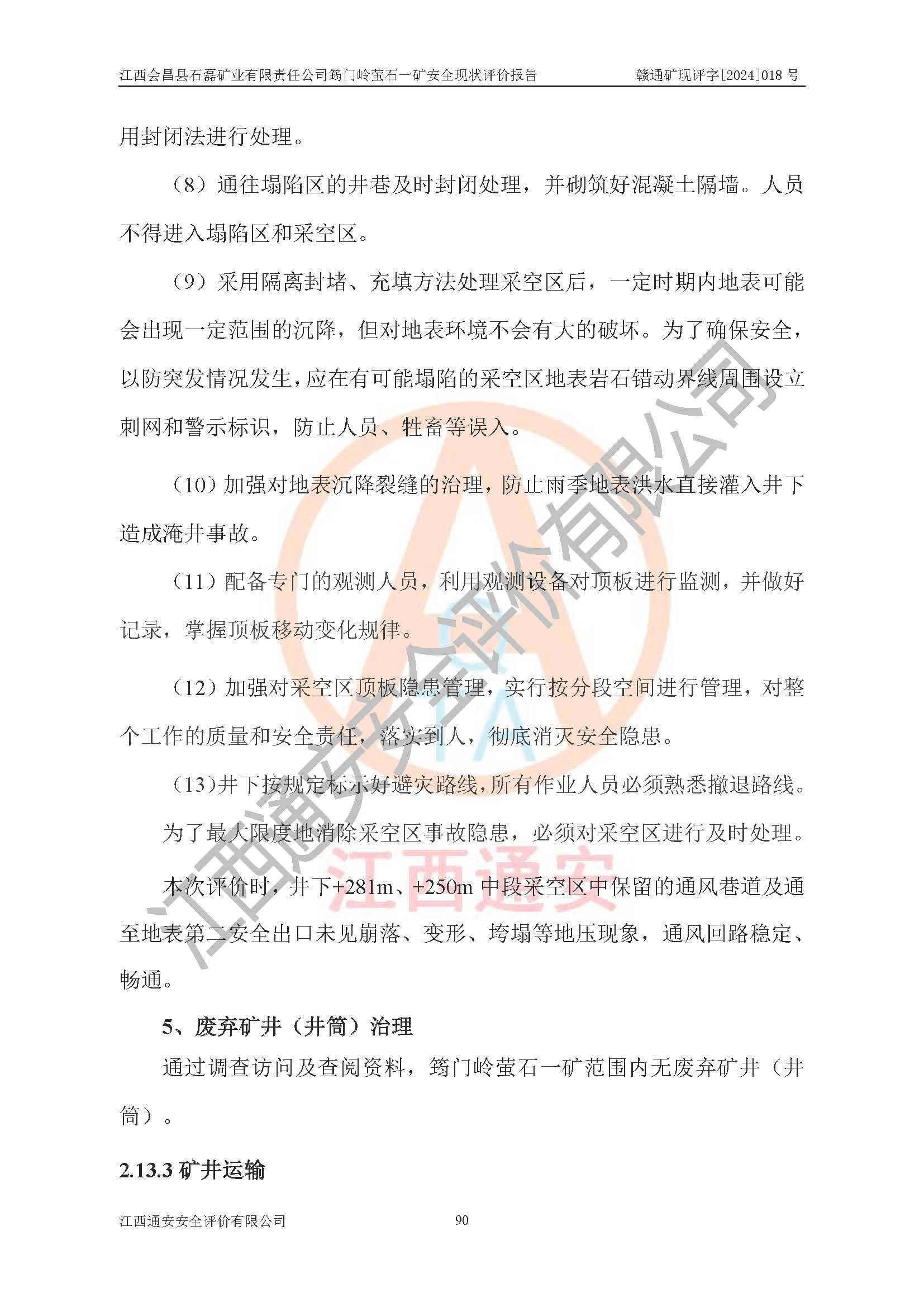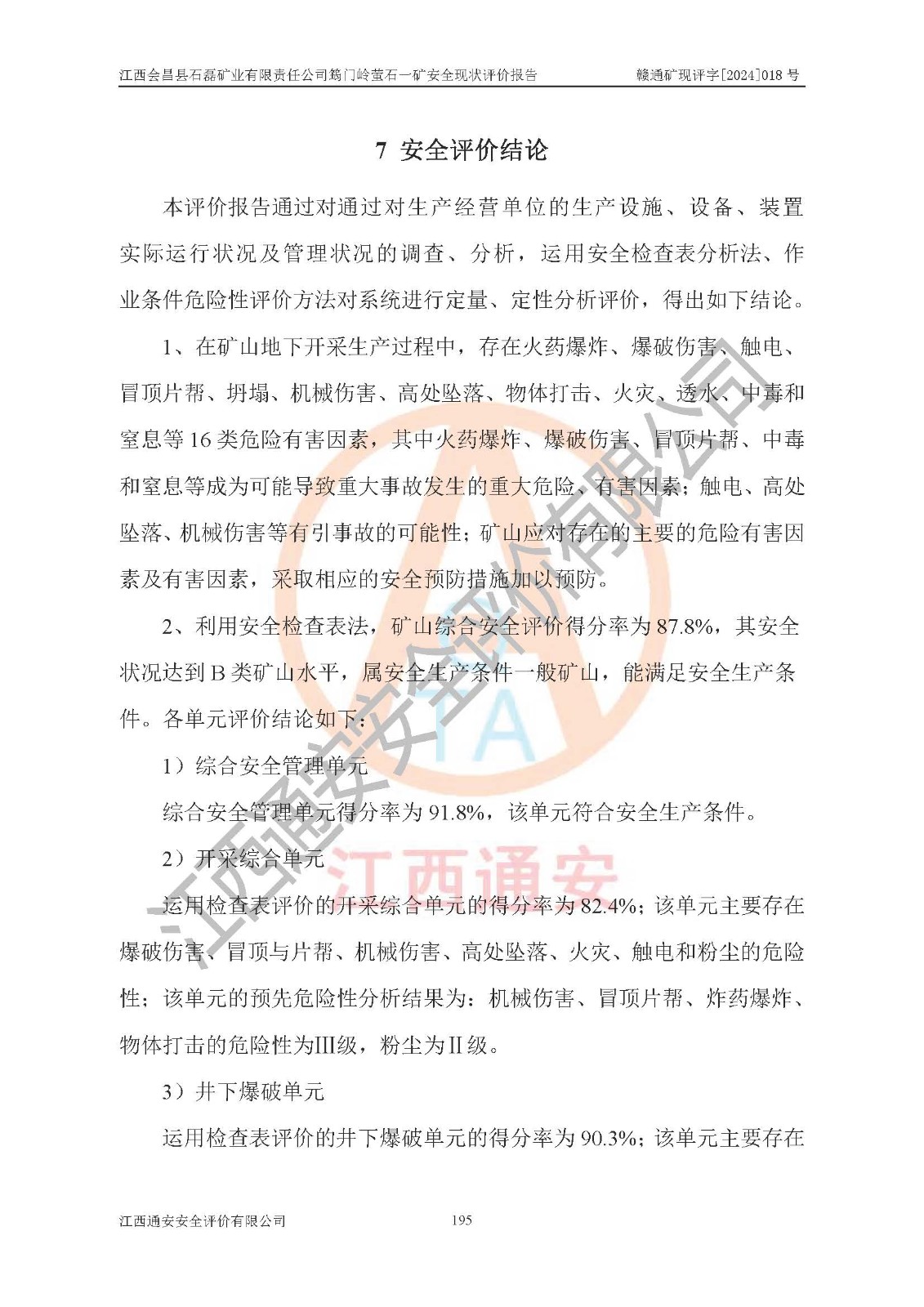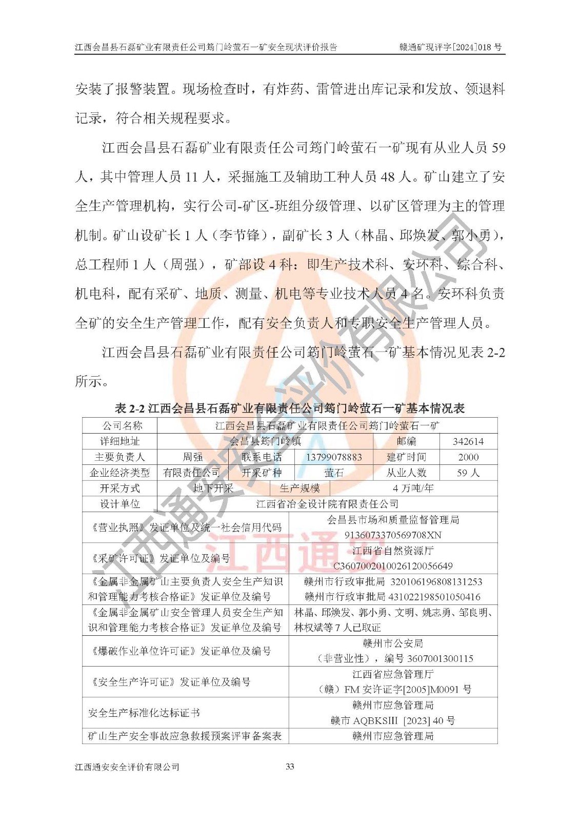 項目名稱 | 江西會昌縣石磊礦業(yè)有限責任公司筠門嶺螢石一礦安全現(xiàn)狀評價報告 | ||||