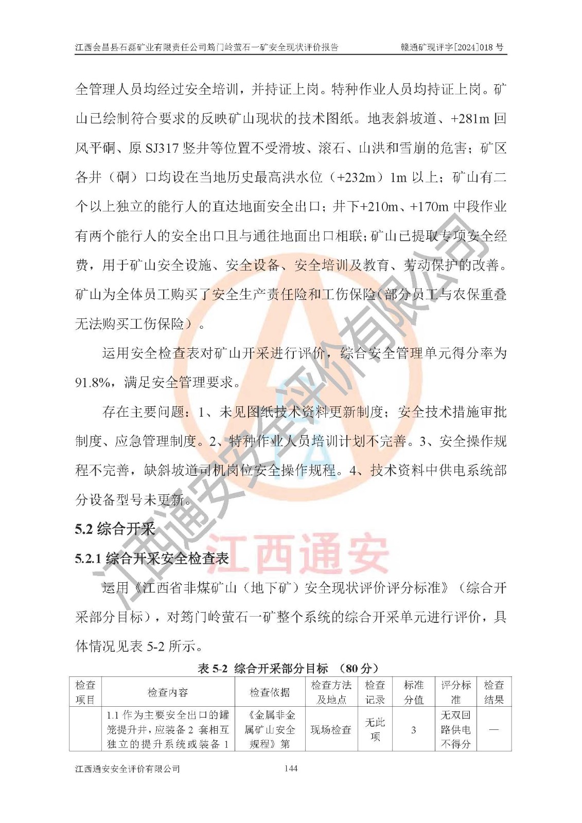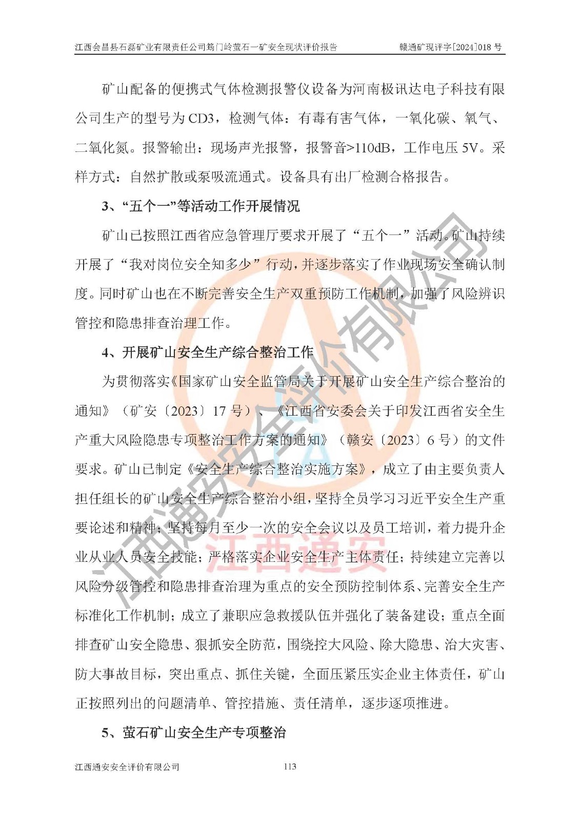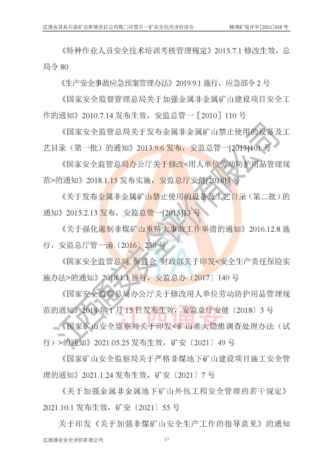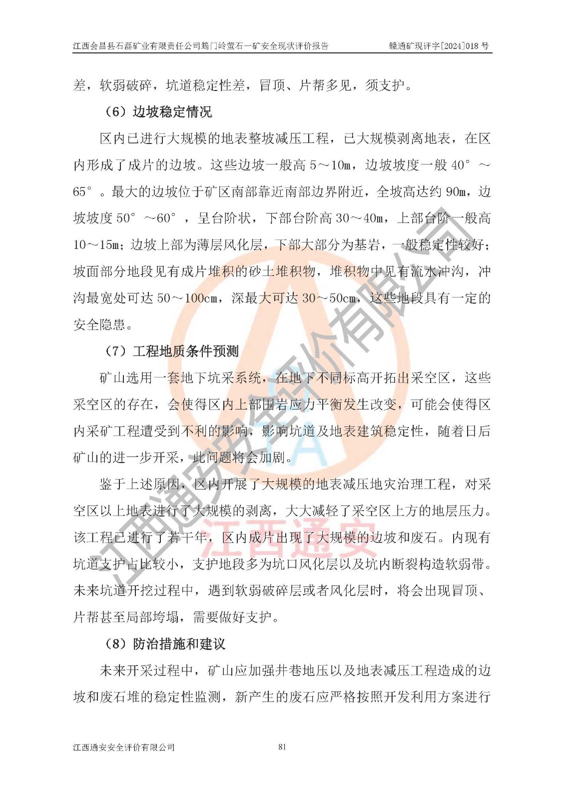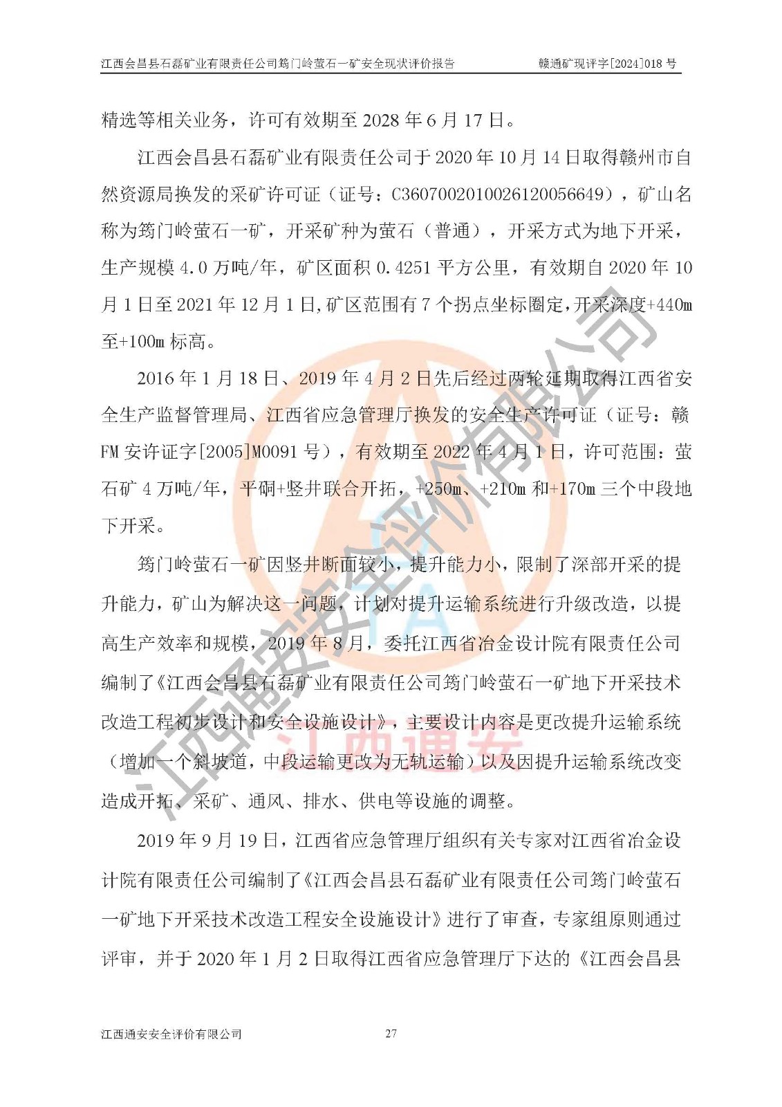 項目名稱 | 江西會昌縣石磊礦業(yè)有限責任公司筠門嶺螢石一礦安全現(xiàn)狀評價報告 | ||||