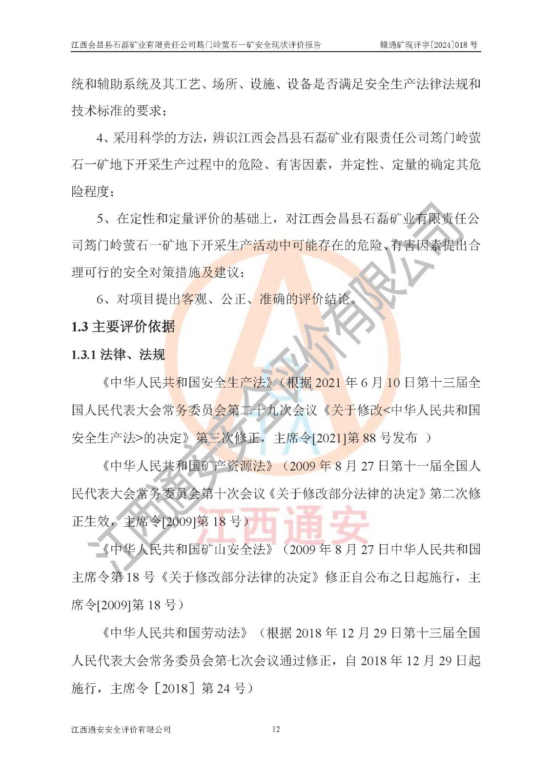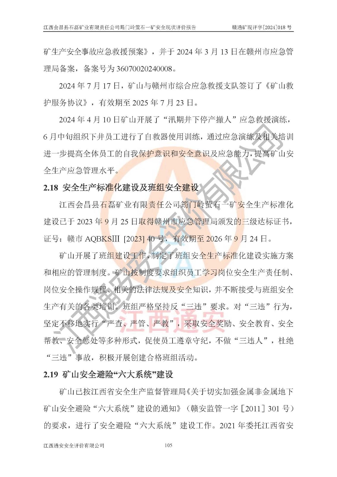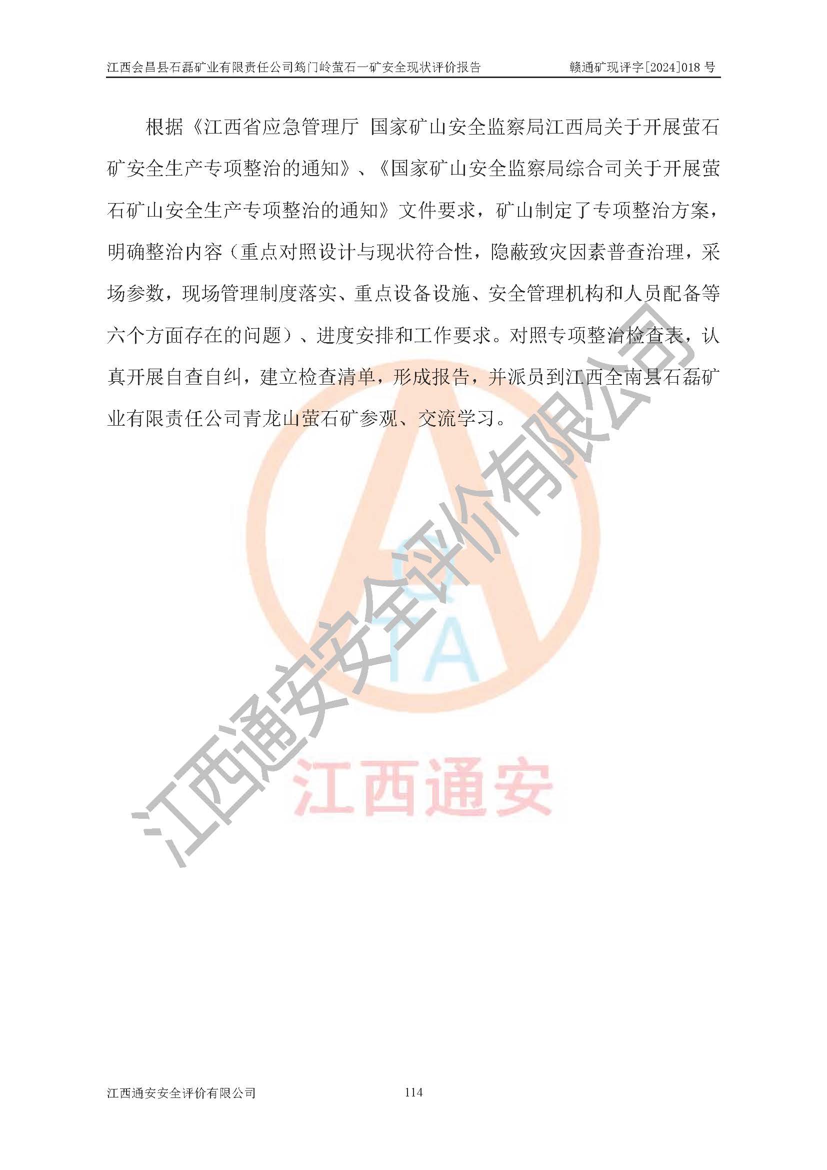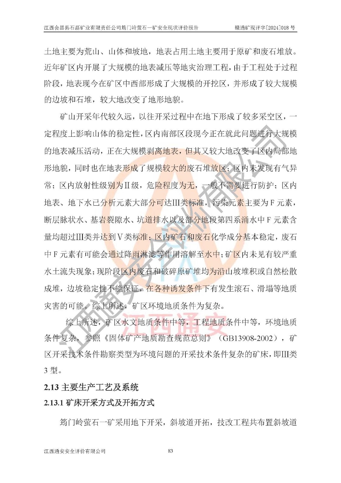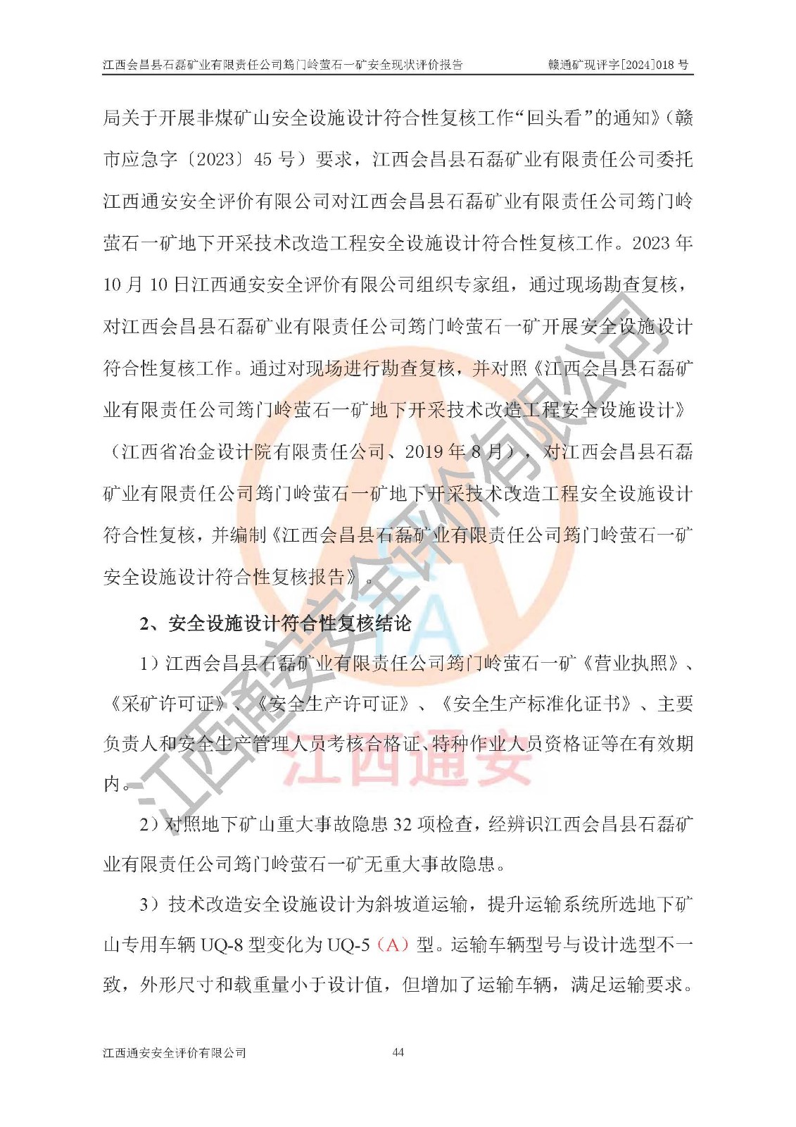 項目名稱 | 江西會昌縣石磊礦業(yè)有限責任公司筠門嶺螢石一礦安全現(xiàn)狀評價報告 | ||||