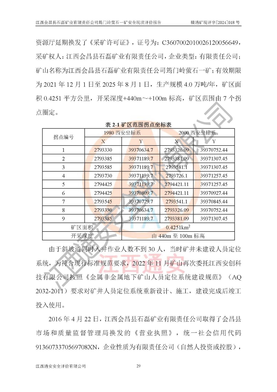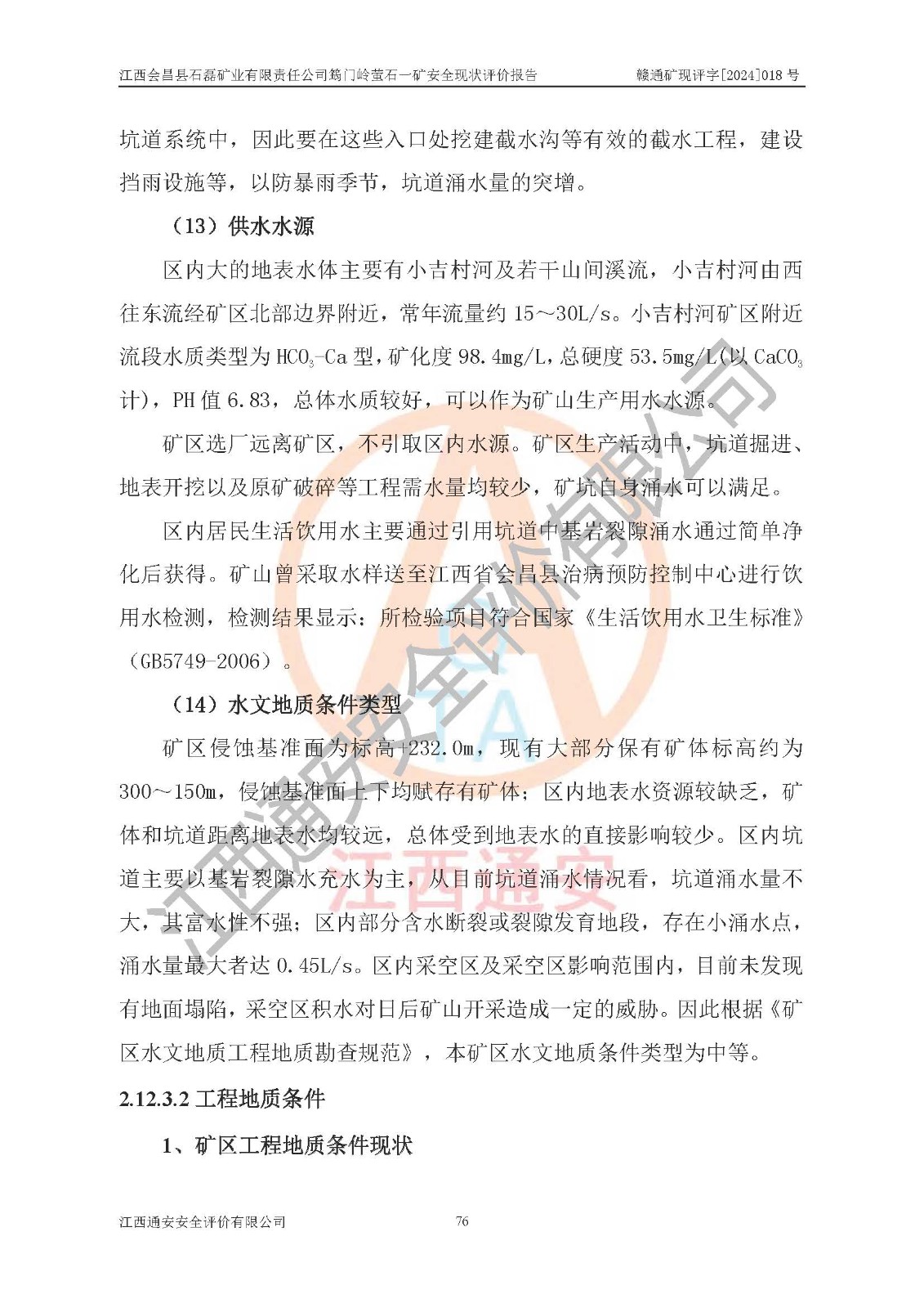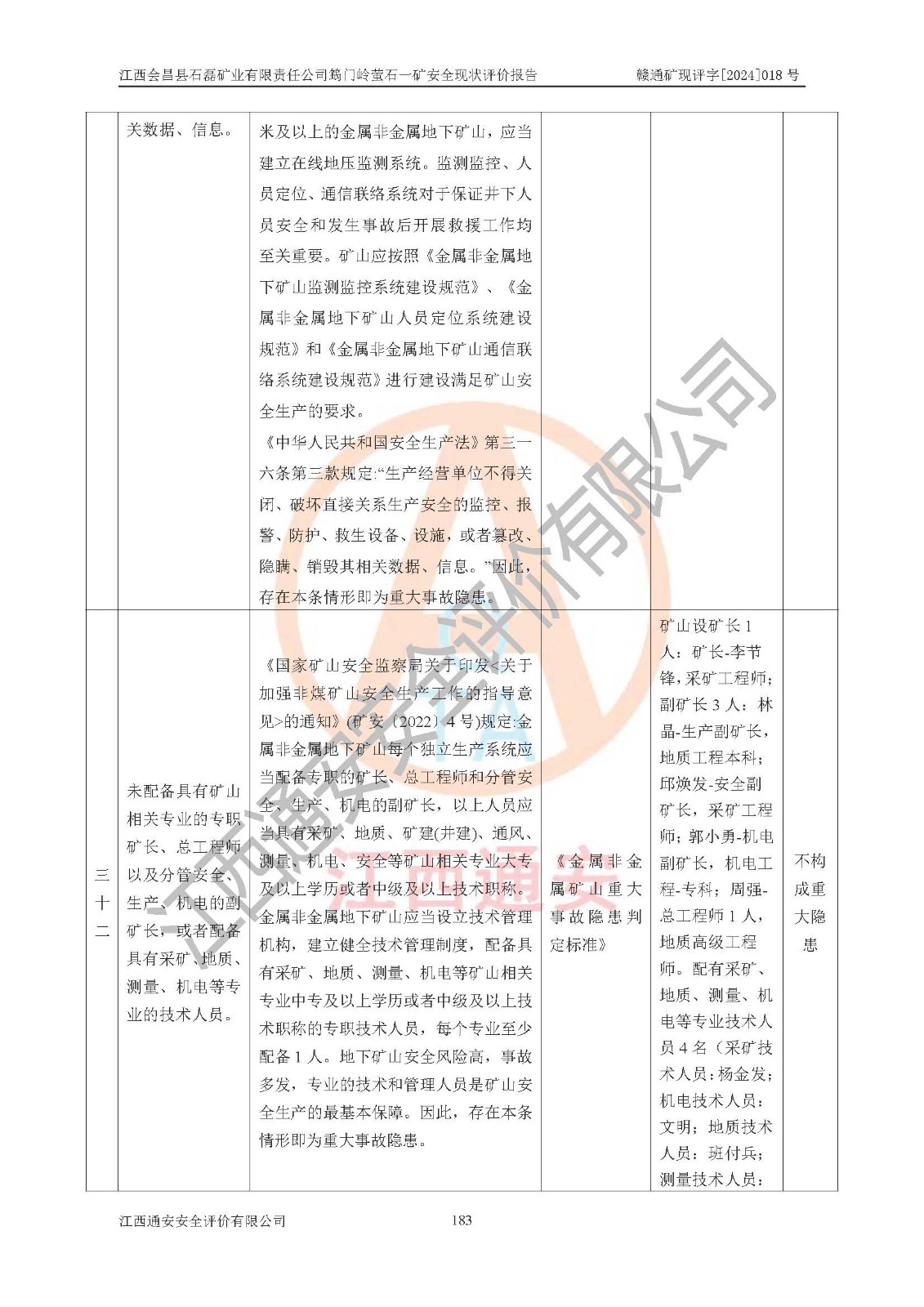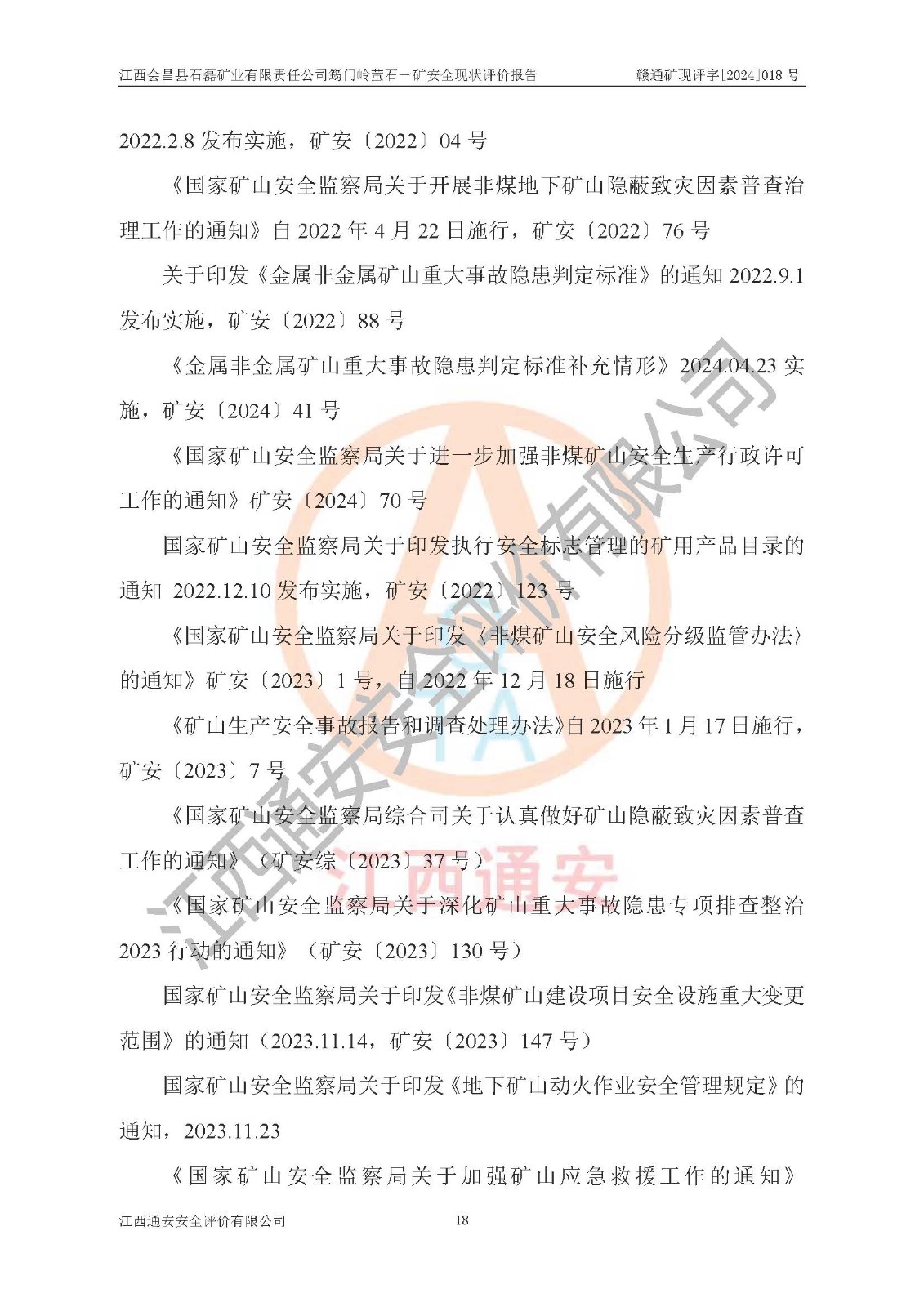 項目名稱 | 江西會昌縣石磊礦業(yè)有限責任公司筠門嶺螢石一礦安全現(xiàn)狀評價報告 | ||||