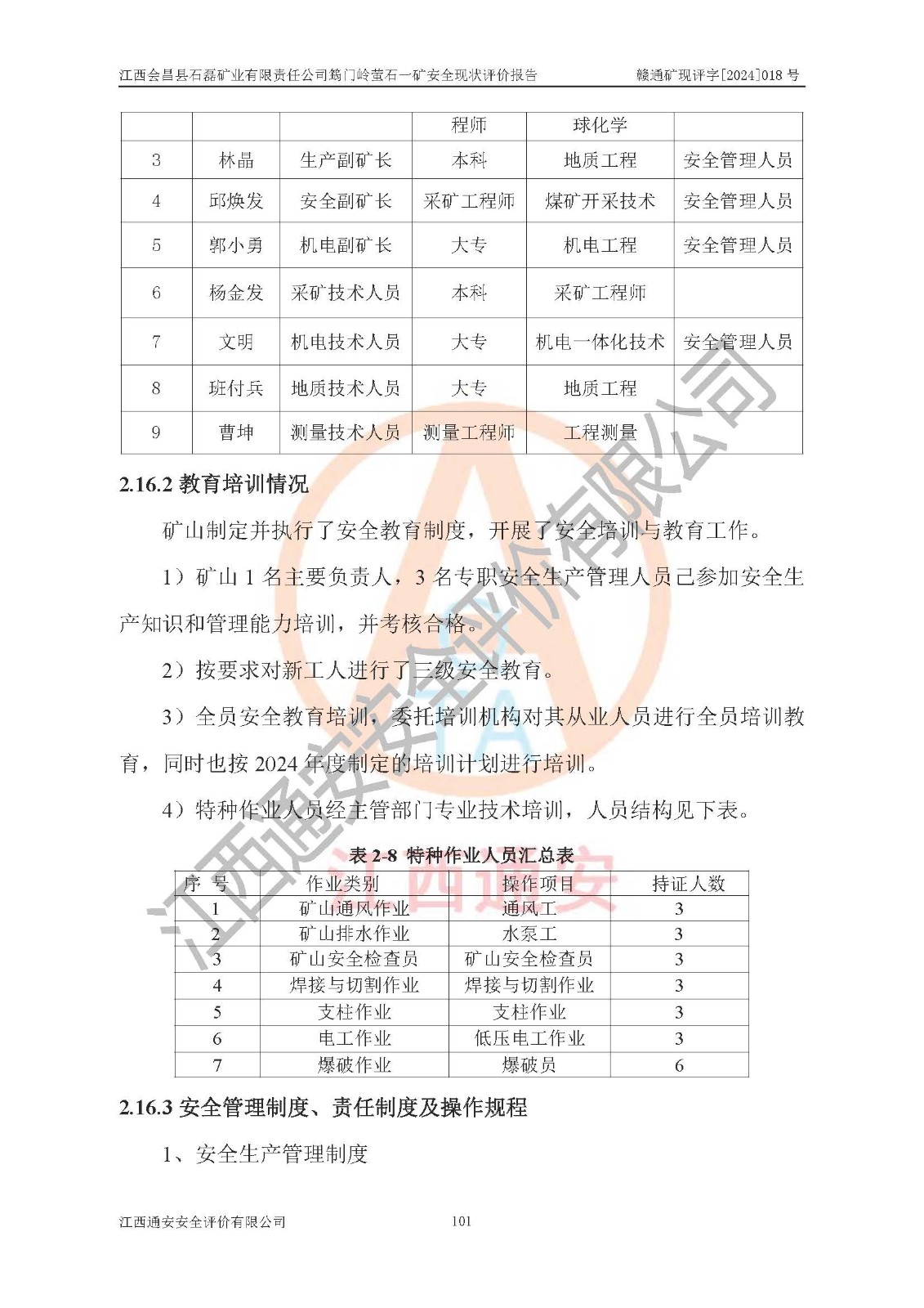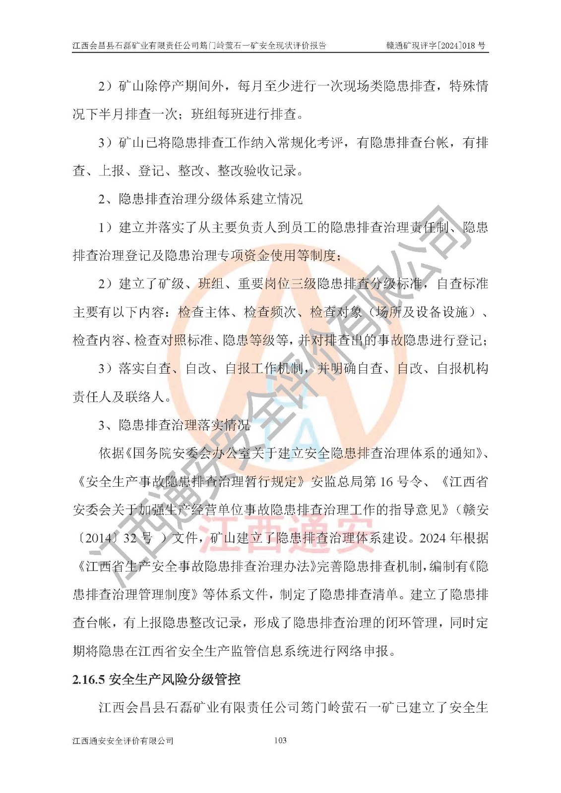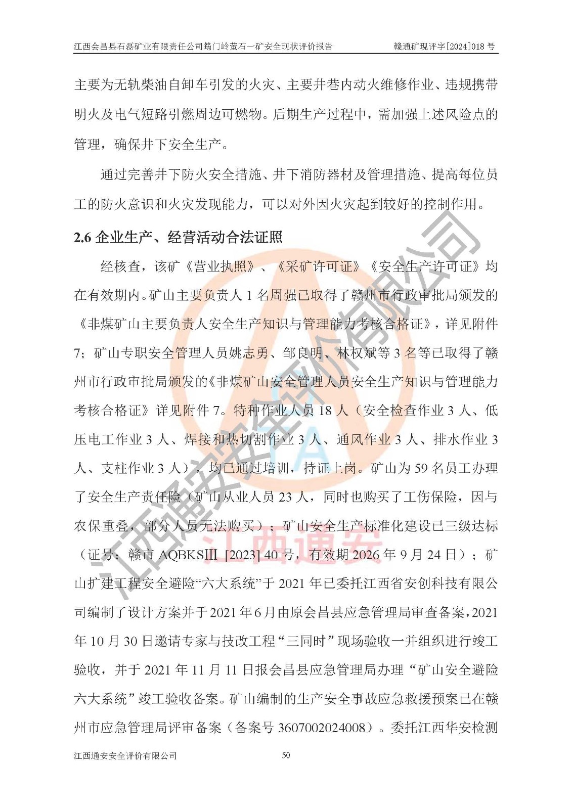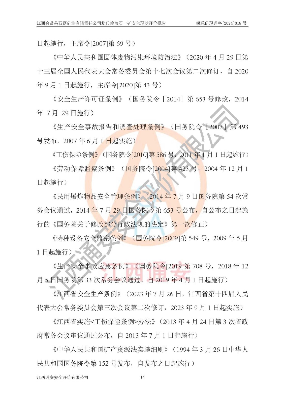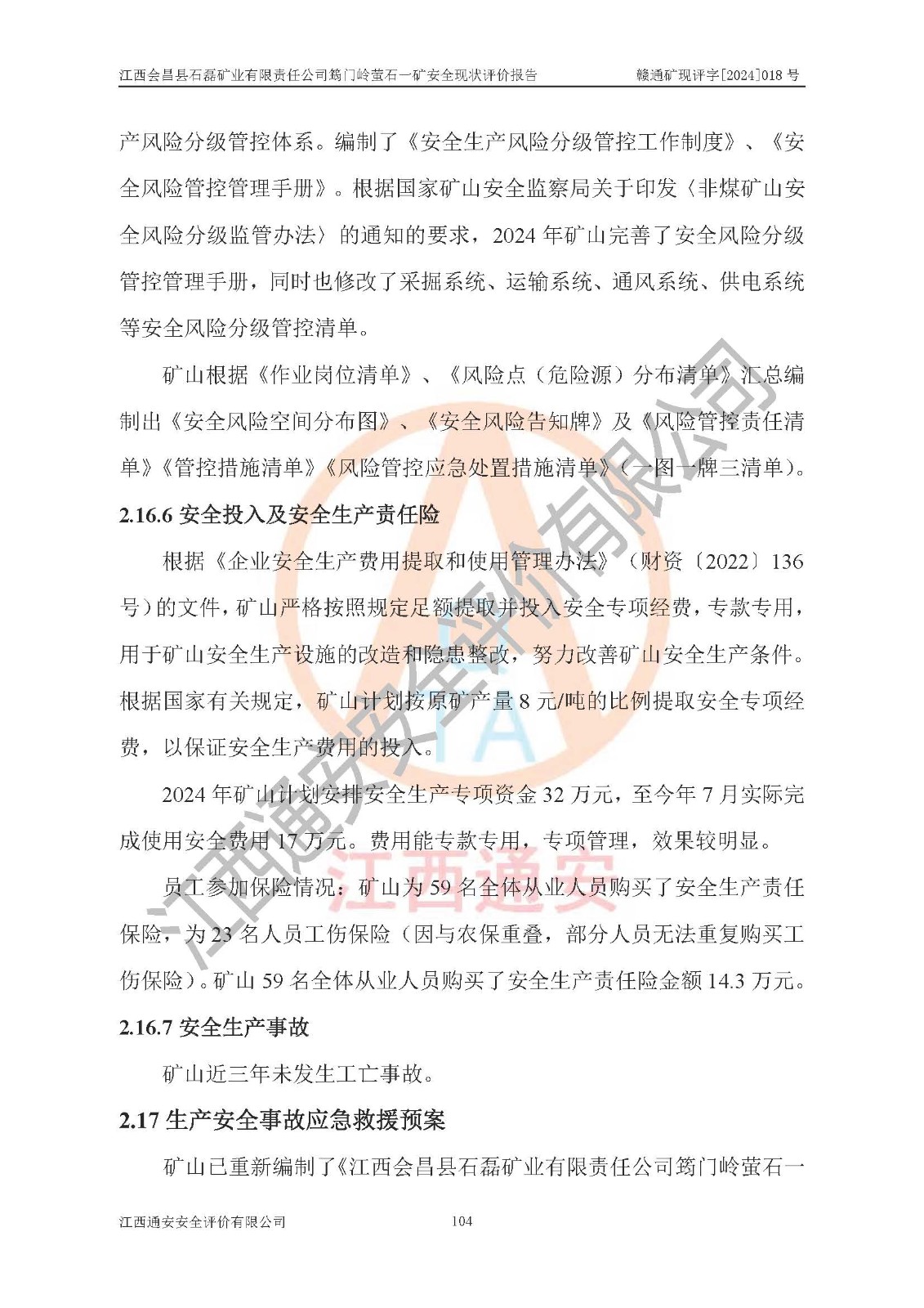 項目名稱 | 江西會昌縣石磊礦業(yè)有限責任公司筠門嶺螢石一礦安全現(xiàn)狀評價報告 | ||||