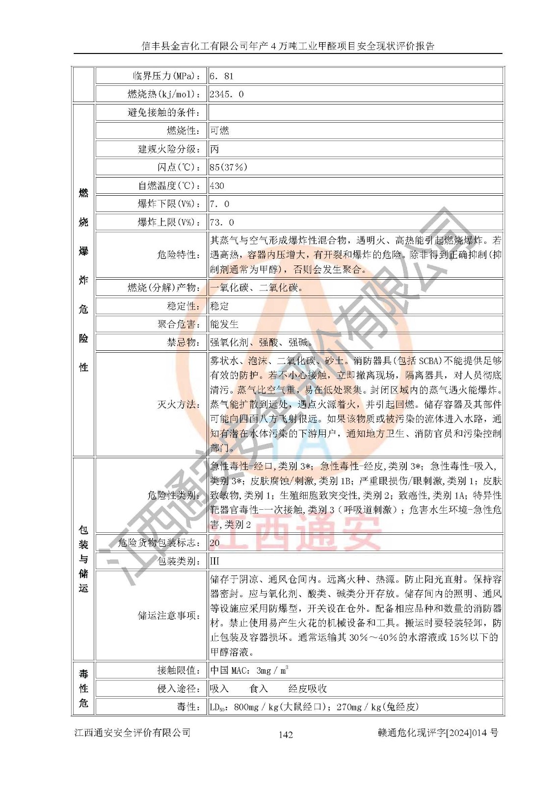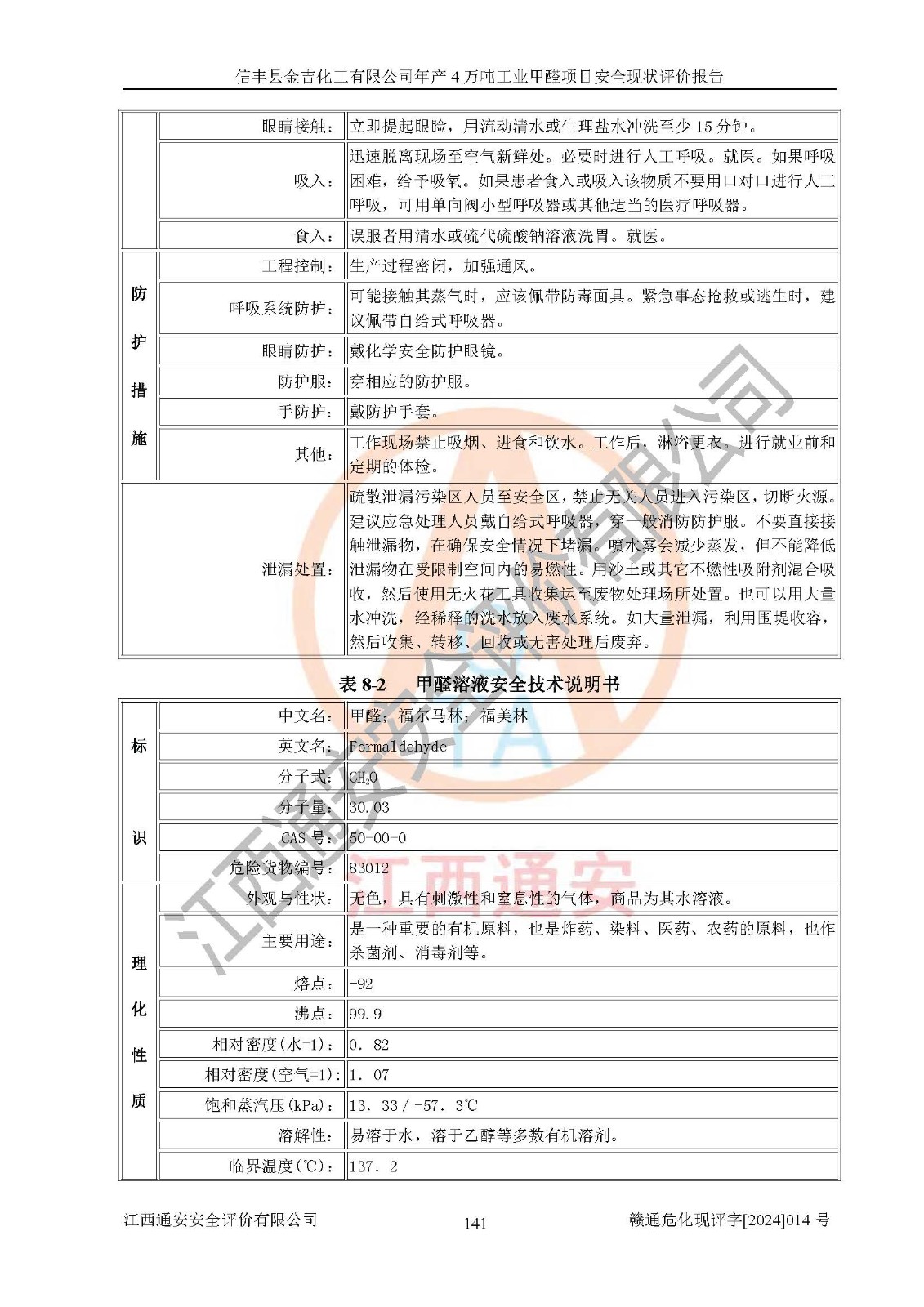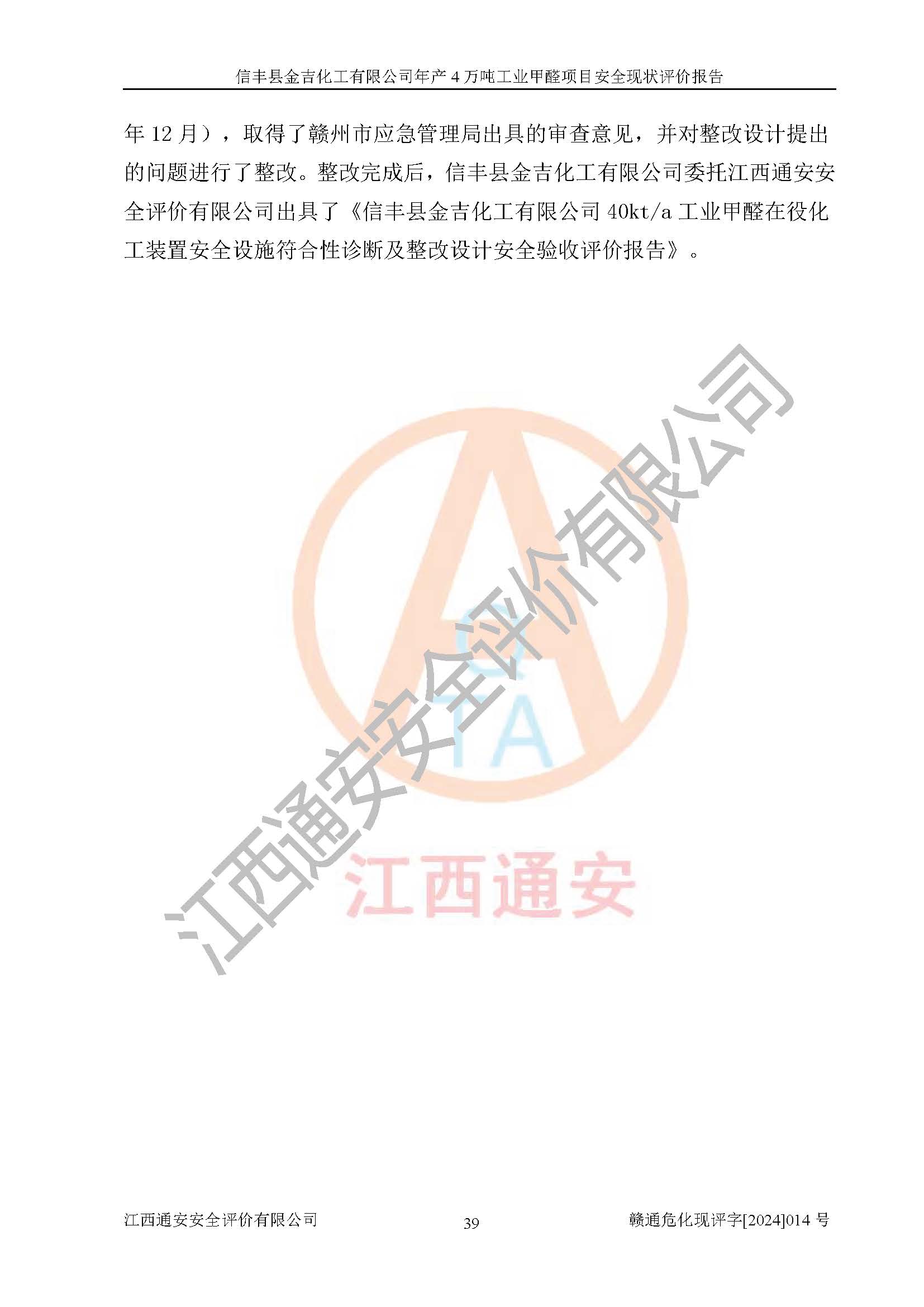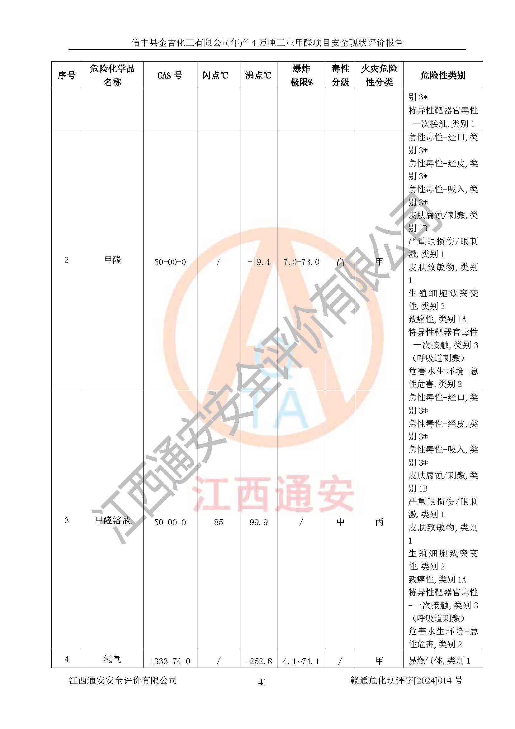 評價報告名稱 | 信豐縣金吉化工有限公司年產(chǎn)4萬噸工業(yè)甲醛項目安全現(xiàn)狀評價報告 | ||||||