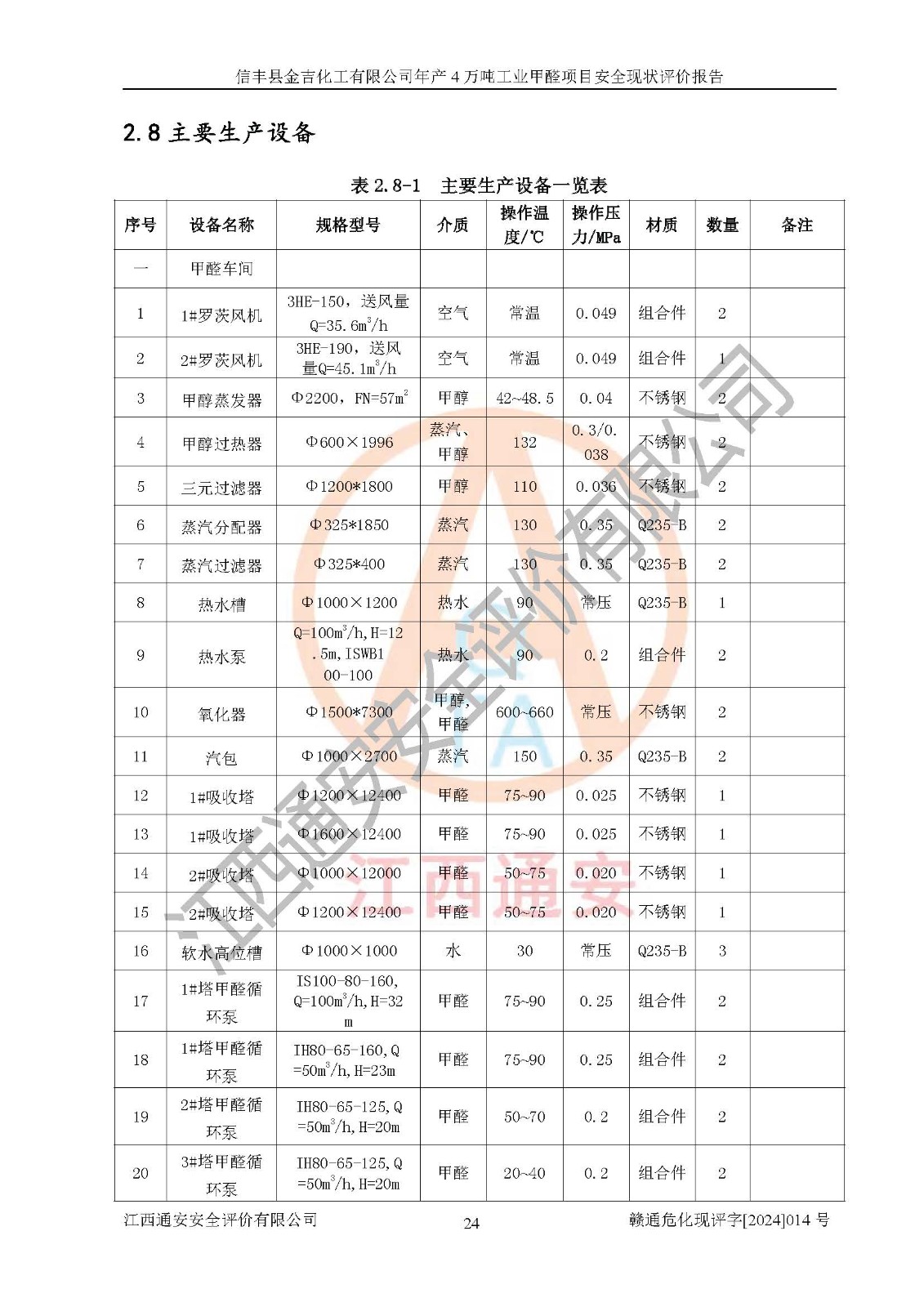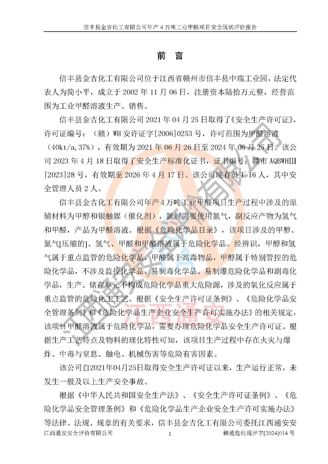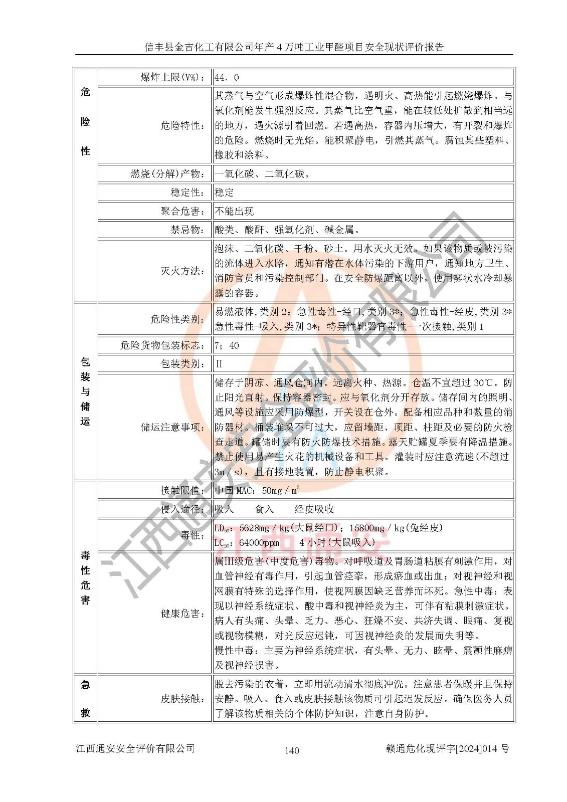 評價報告名稱 | 信豐縣金吉化工有限公司年產(chǎn)4萬噸工業(yè)甲醛項目安全現(xiàn)狀評價報告 | ||||||