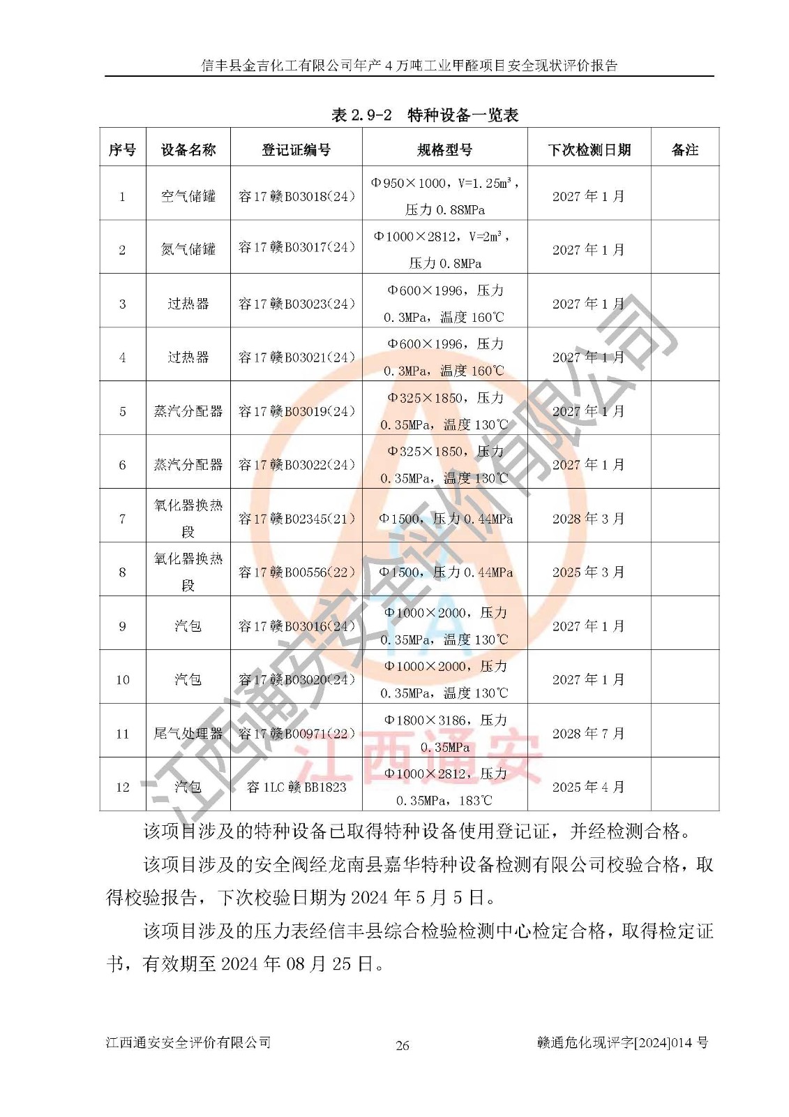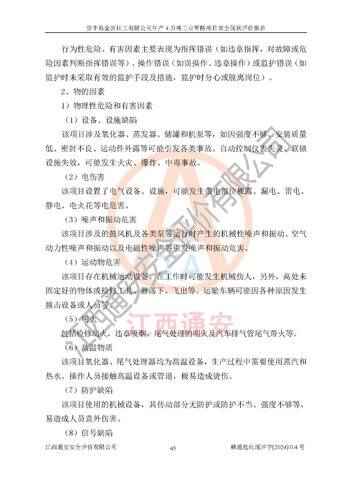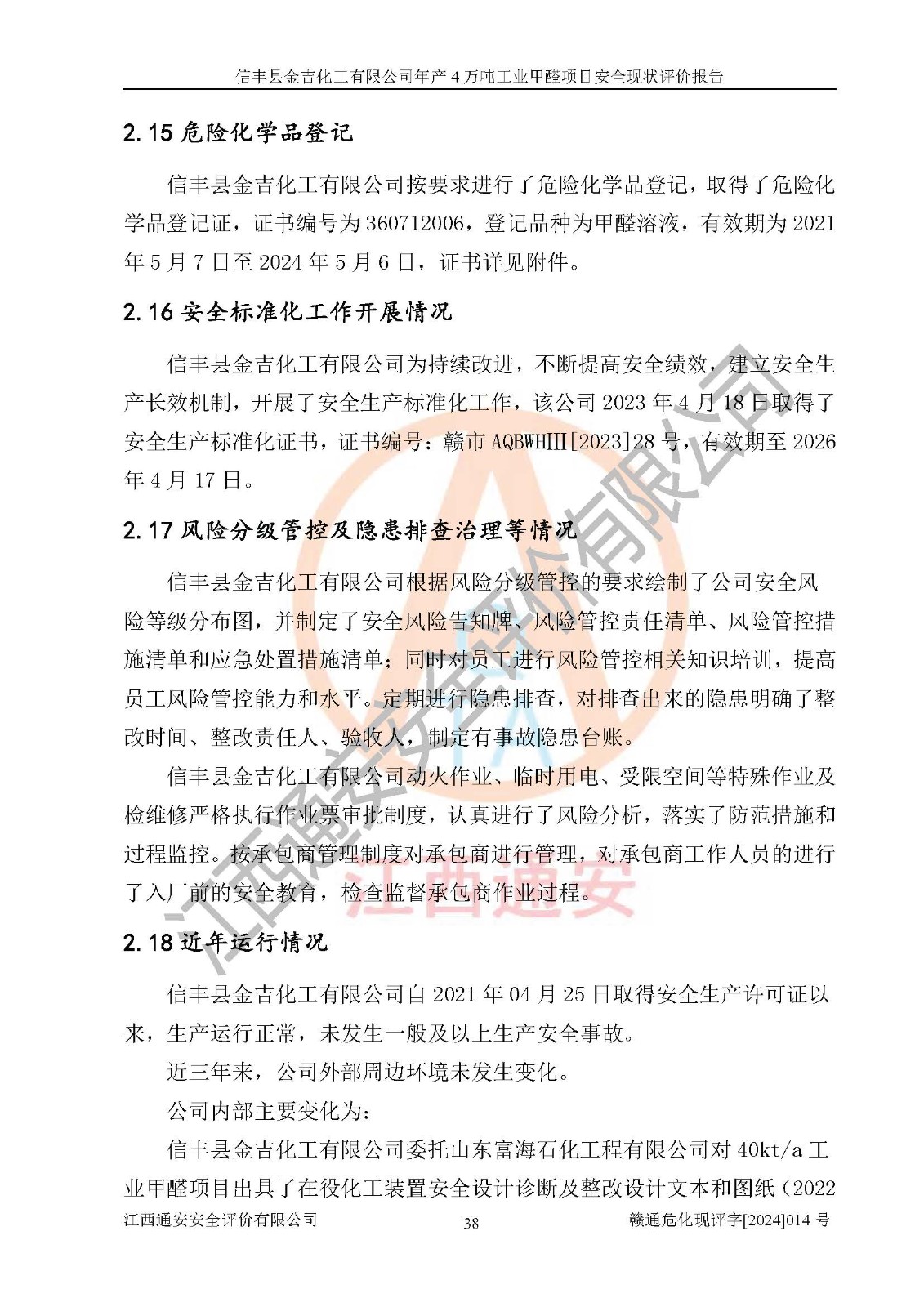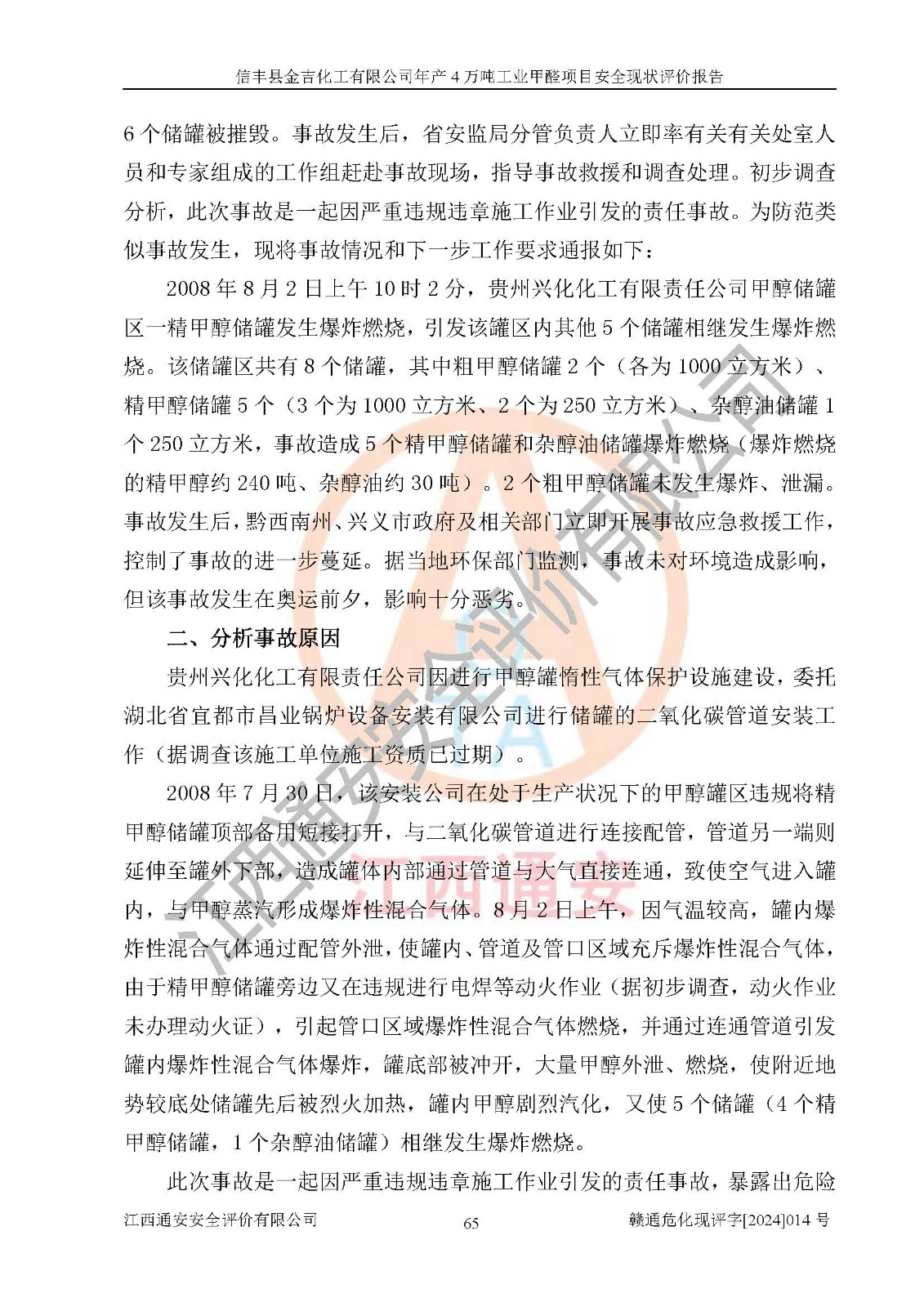 評價報告名稱 | 信豐縣金吉化工有限公司年產(chǎn)4萬噸工業(yè)甲醛項目安全現(xiàn)狀評價報告 | ||||||