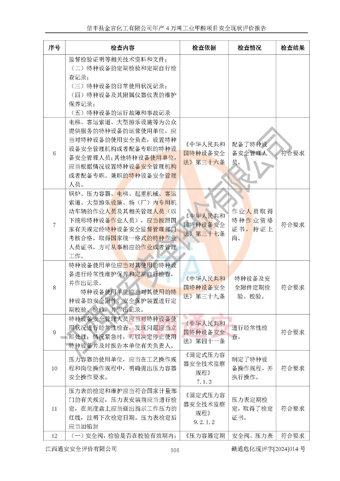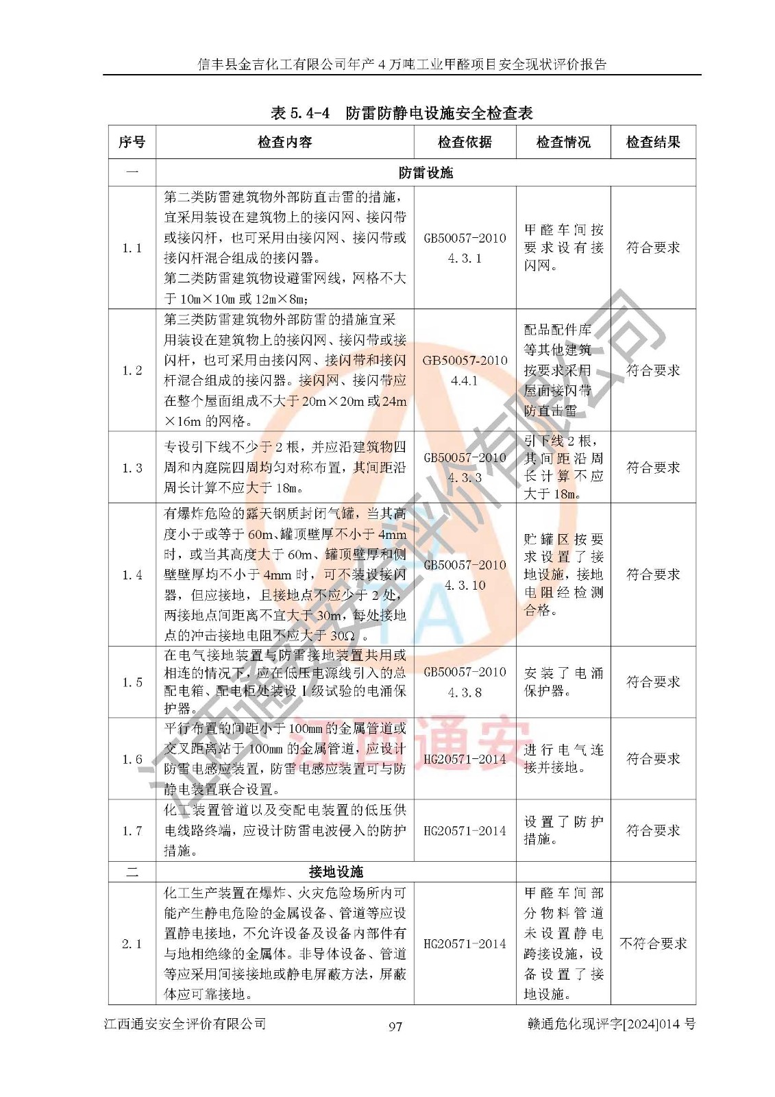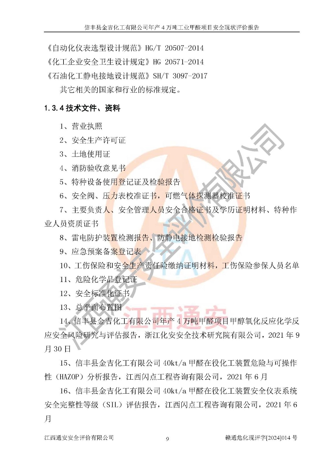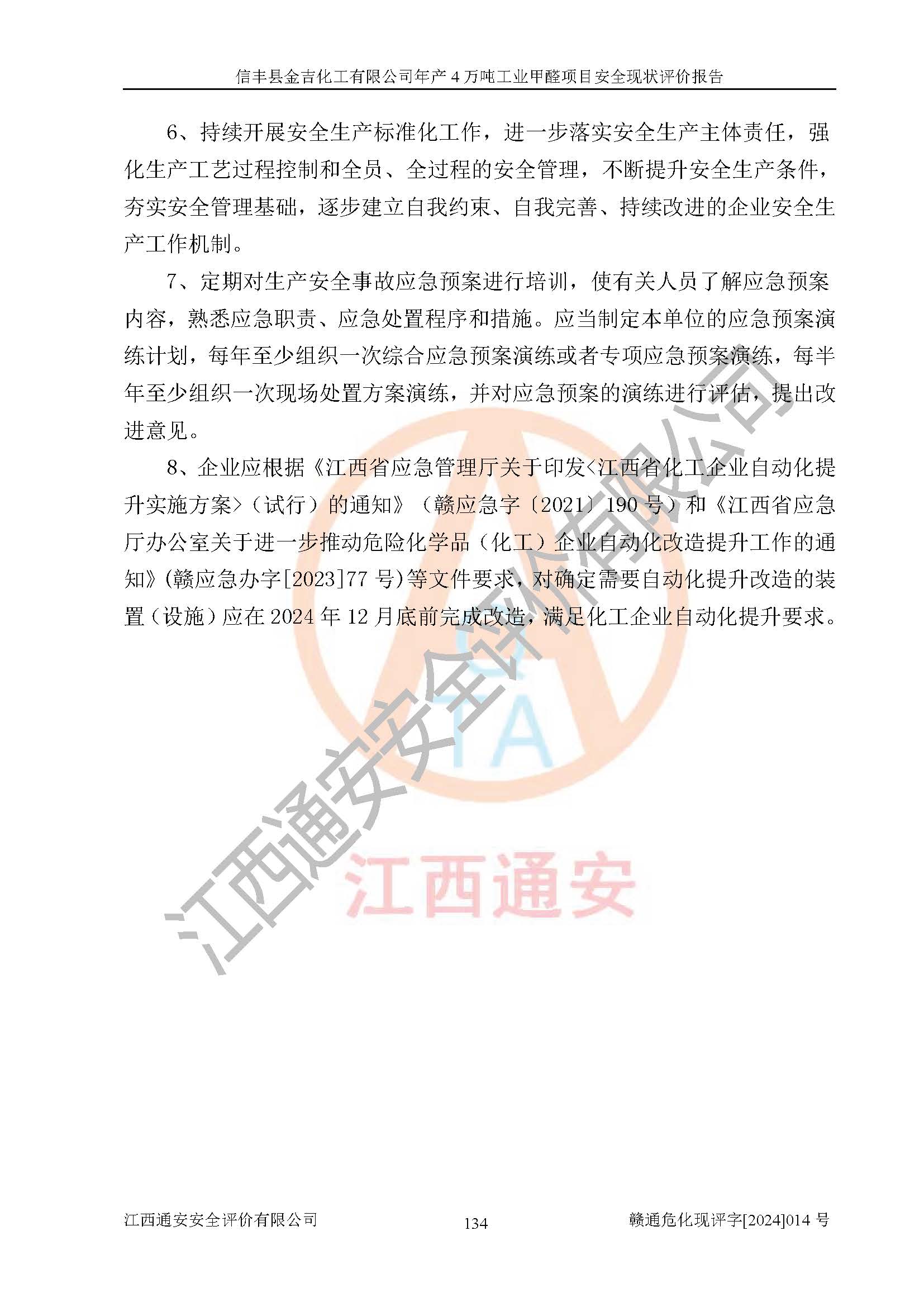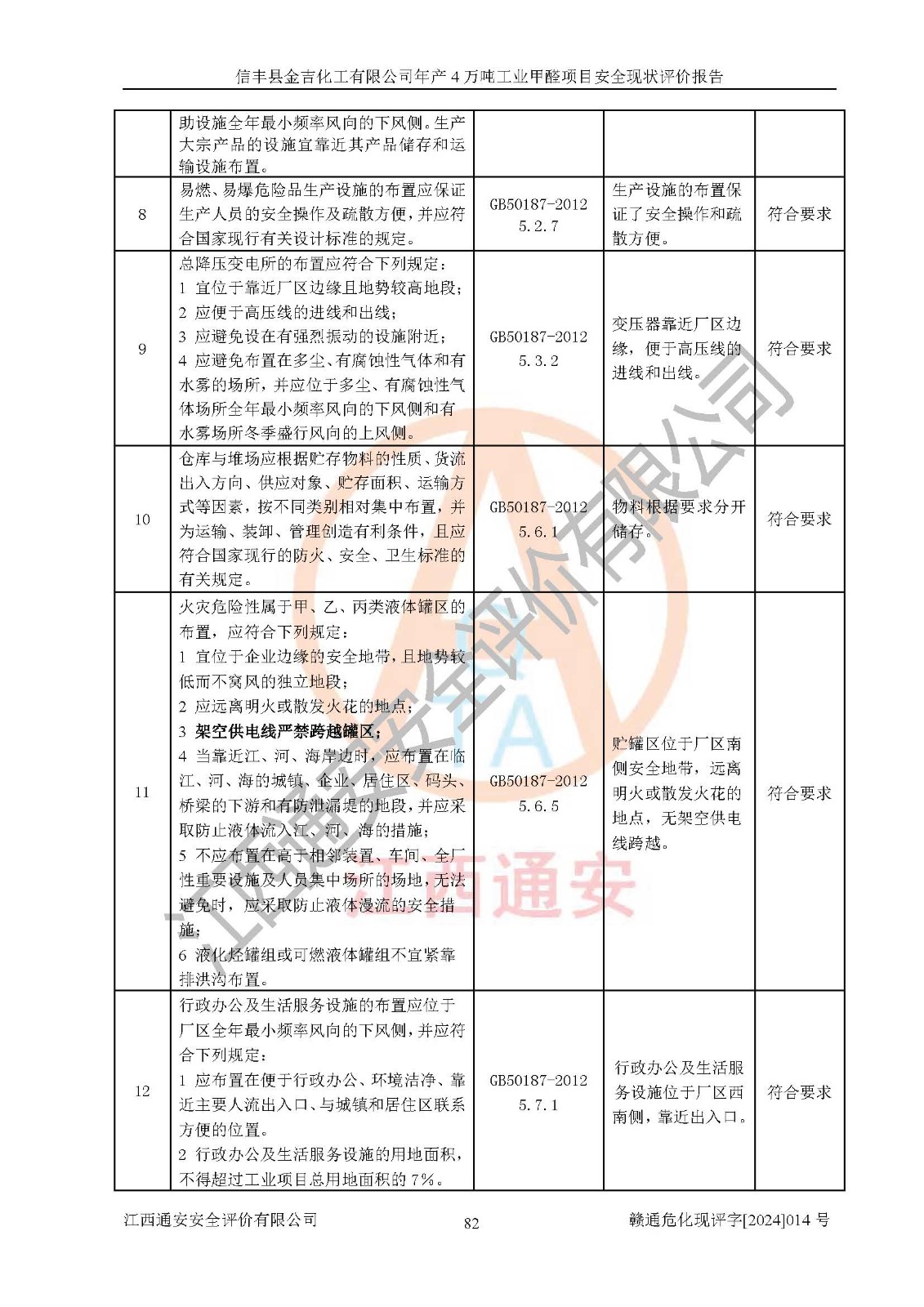 評價結(jié)論 | 信豐縣金吉化工有限公司年產(chǎn)4萬噸工業(yè)甲醛項目現(xiàn)場情況與設計圖紙一致,DCS和SIS系統(tǒng)設計符合要求、運行正常,有關(guān)從業(yè)人員資質(zhì)符合《江西省危險化學品安全專項整治三年行動實施方案》要求,安全設施及安全管理符合法律、法規(guī)、標準的要求,安全風險是受控制的,其風險程度是可以接受的,安全設施符合安全生產(chǎn)條件,能夠滿足安全生產(chǎn)的要求。 | ||||||