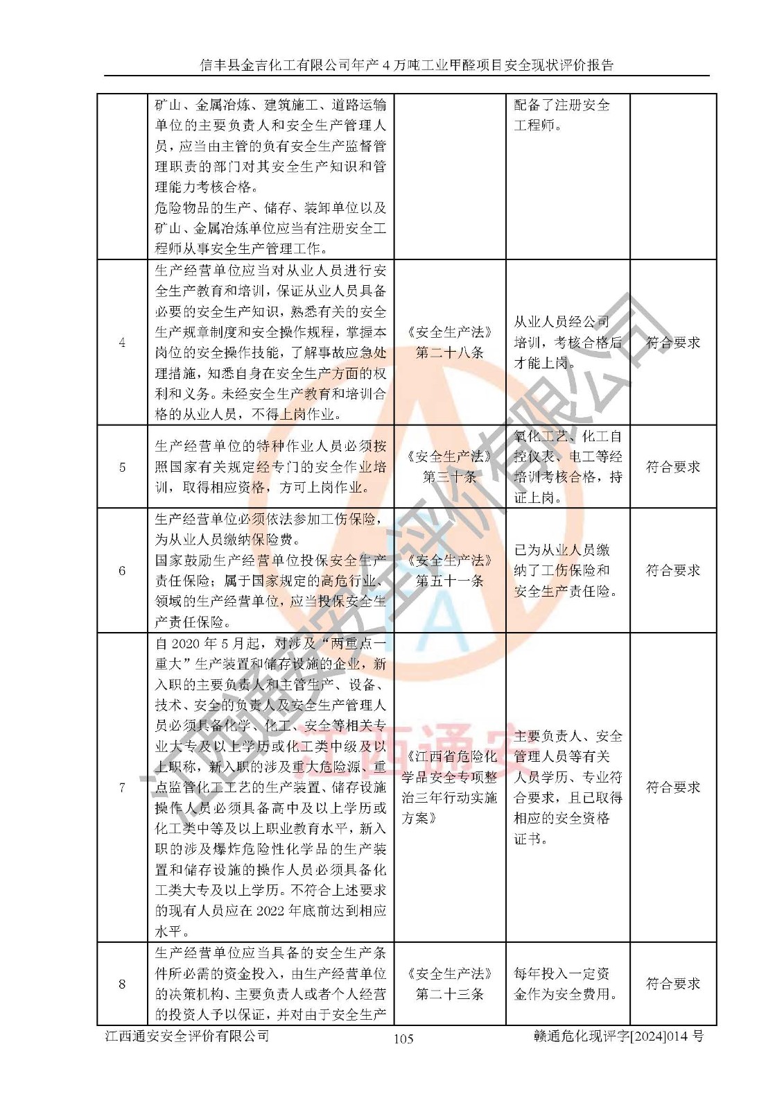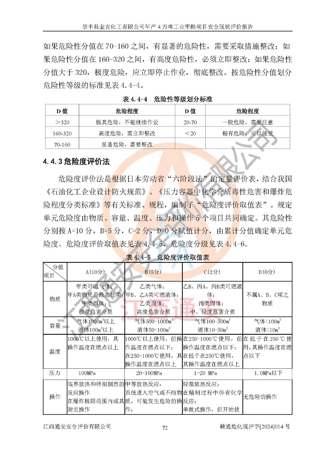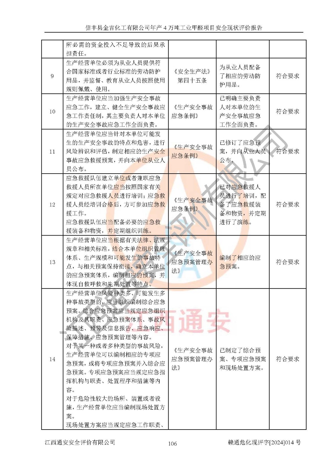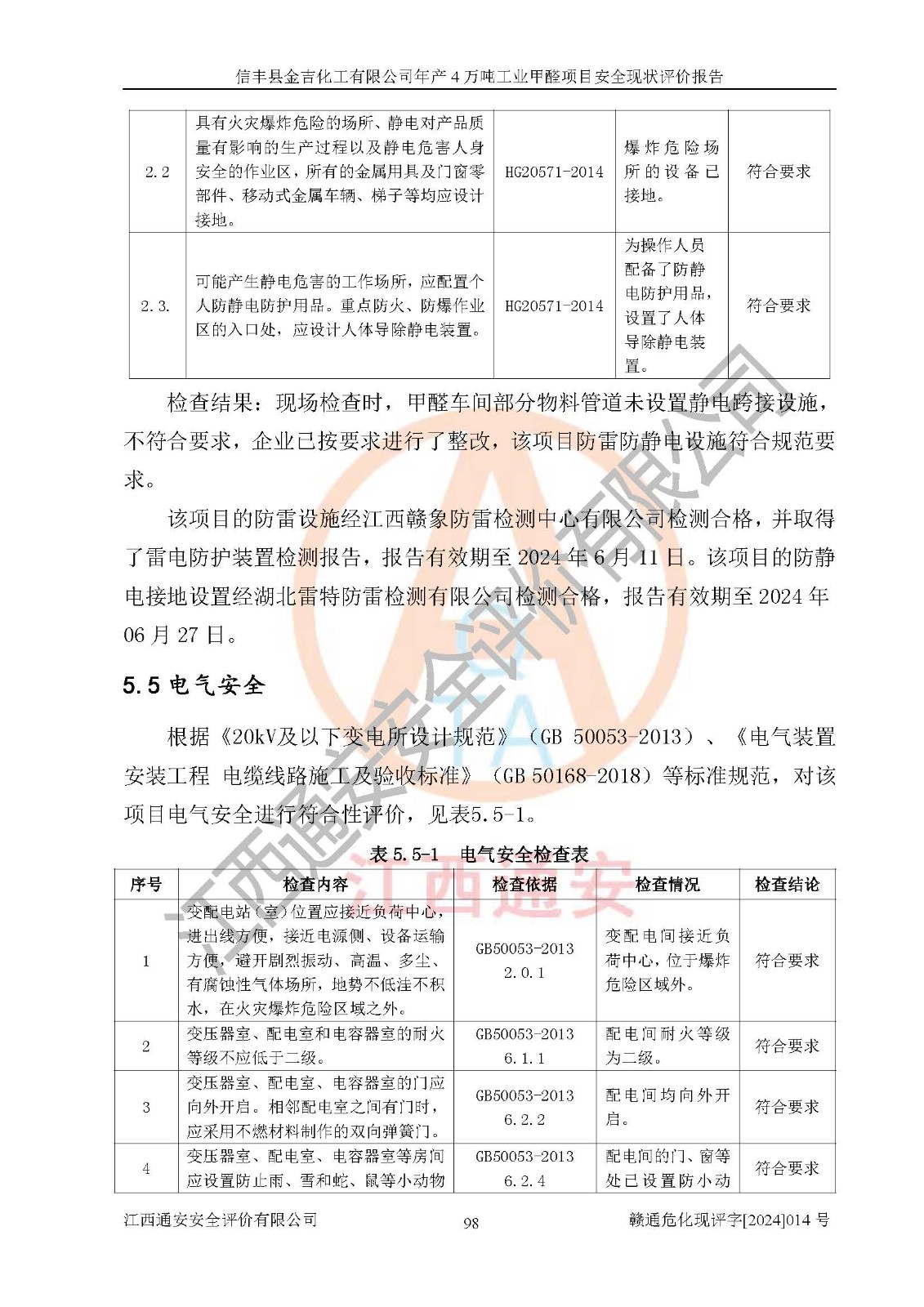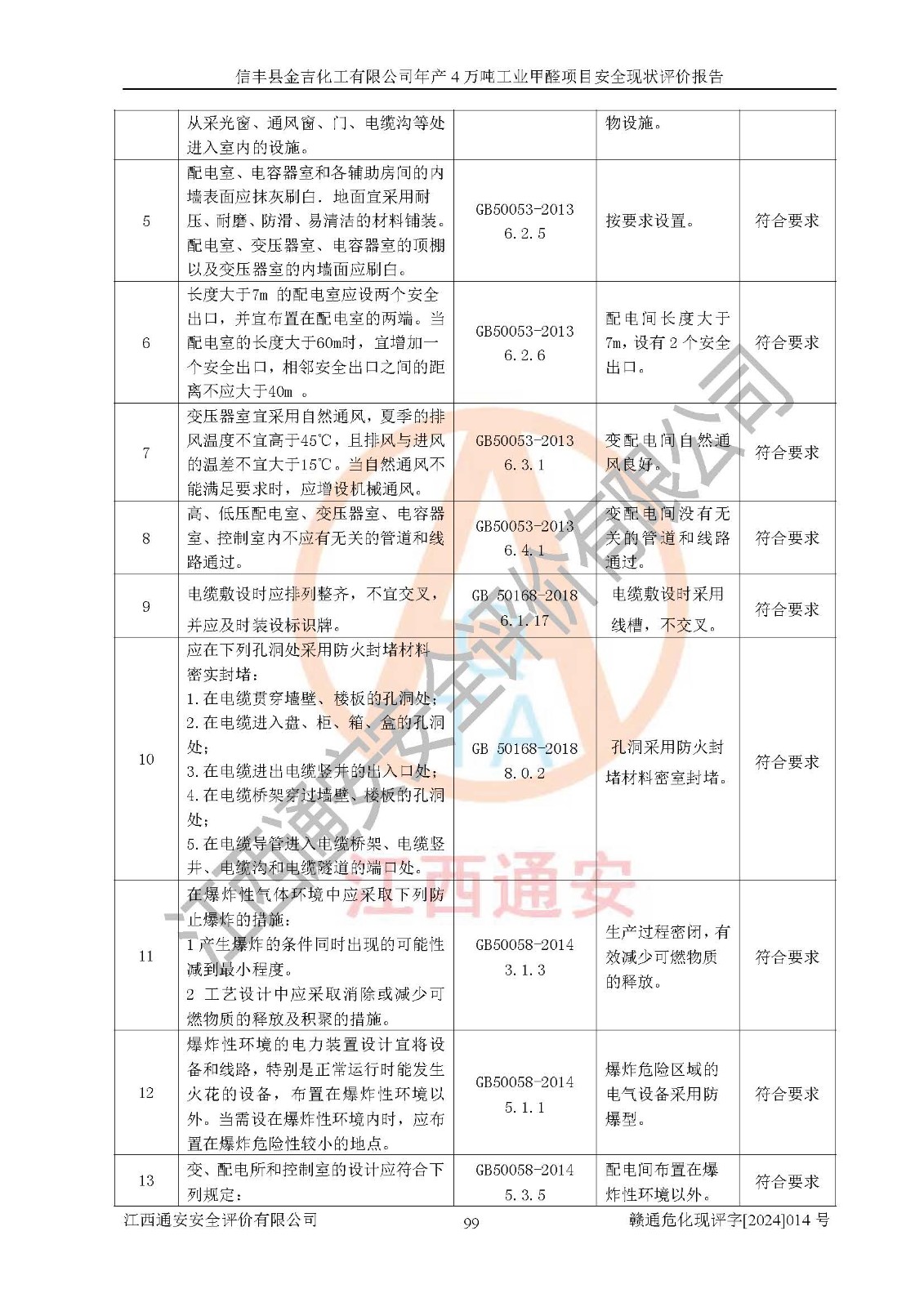 評價結(jié)論 | 信豐縣金吉化工有限公司年產(chǎn)4萬噸工業(yè)甲醛項目現(xiàn)場情況與設計圖紙一致,DCS和SIS系統(tǒng)設計符合要求、運行正常,有關(guān)從業(yè)人員資質(zhì)符合《江西省危險化學品安全專項整治三年行動實施方案》要求,安全設施及安全管理符合法律、法規(guī)、標準的要求,安全風險是受控制的,其風險程度是可以接受的,安全設施符合安全生產(chǎn)條件,能夠滿足安全生產(chǎn)的要求。 | ||||||