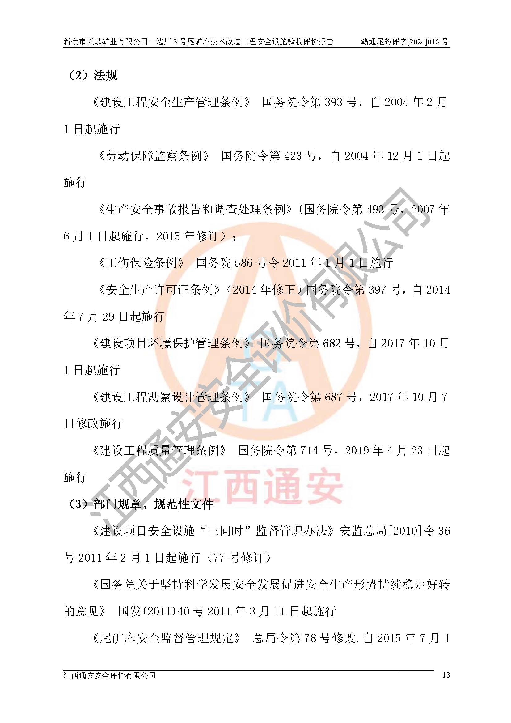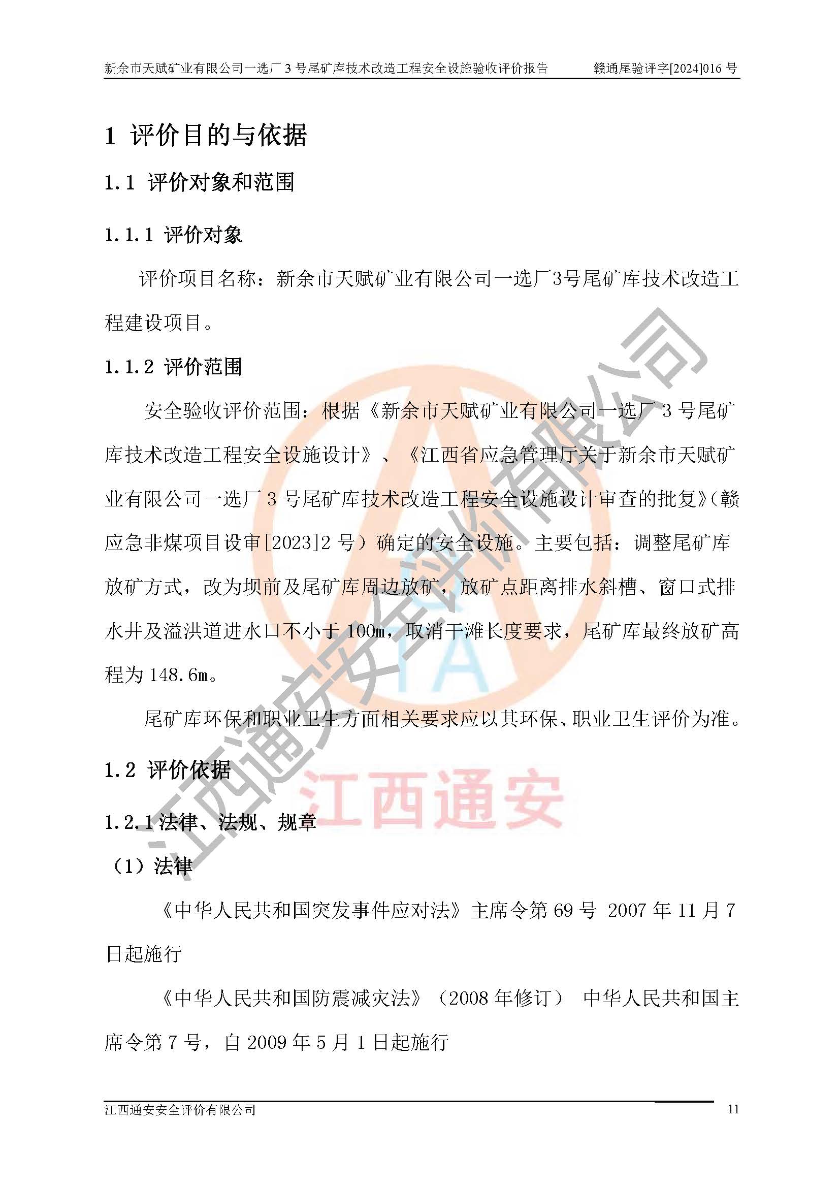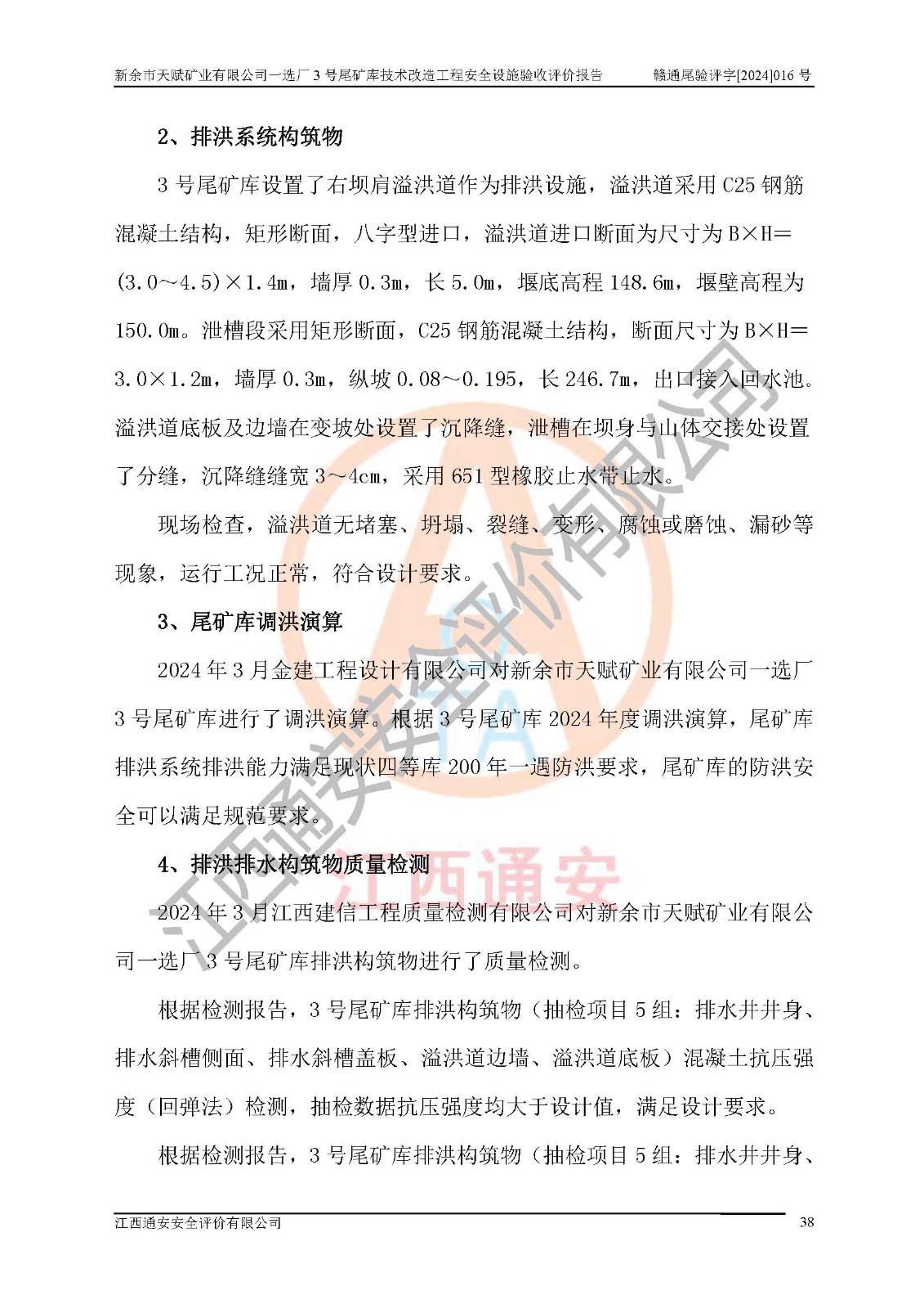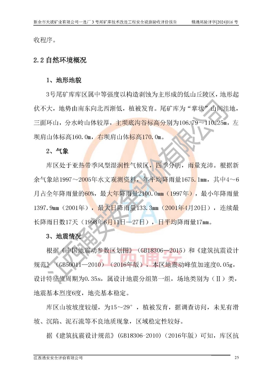 新余市天賦礦業(yè)有限公司一選廠3號(hào)尾礦庫(kù)位于江西省分宜縣鈐山鎮(zhèn)境內(nèi),屬鈐山鎮(zhèn)管轄,有鄉(xiāng)村公路相通,交通較為方便。3號(hào)尾礦庫(kù)壩頂中心點(diǎn)地理坐標(biāo)為:X=3058292,Y=38566139。 2008年6月,邯鄲華北冶建工程設(shè)計(jì)有限公司完成了3號(hào)尾礦庫(kù)初步設(shè)計(jì),該尾礦庫(kù)為五等庫(kù),尾礦壩壩型為攔擋壩,一次型機(jī)械碾壓土石壩,排洪系統(tǒng)為溢洪道,排水系統(tǒng)為排水斜槽+排水管+消力池。2010年7月原江西省安全生產(chǎn)監(jiān)督管理局組織專家對(duì)該尾礦庫(kù)進(jìn)行竣工驗(yàn)收,對(duì)驗(yàn)收過(guò)程中發(fā)現(xiàn)的問(wèn)題,建設(shè)單位積極整改,整改完成后通過(guò)了竣工驗(yàn)收,并取得了安全生產(chǎn)許可證。為了礦山的可持續(xù)性發(fā)展,2012年委托金建工程設(shè)計(jì)有限公司對(duì)3號(hào)尾礦庫(kù)進(jìn)行加高擴(kuò)容設(shè)計(jì),2013年2月,金建工程設(shè)計(jì)有限公司完成了該尾礦庫(kù)加高擴(kuò)容可行性研究報(bào)告,2014年2月,原江西省安全生產(chǎn)監(jiān)督管理局組織專家對(duì)金建工程設(shè)計(jì)有限公司編制的3號(hào)尾礦庫(kù)加高擴(kuò)容安全專篇進(jìn)行評(píng)審,2014年6月原江西省安全生產(chǎn)監(jiān)督管理局以贛安監(jiān)非煤項(xiàng)目設(shè)審〔2014〕30號(hào)對(duì)3號(hào)尾礦庫(kù)加高擴(kuò)容安全專篇進(jìn)行批復(fù),3號(hào)尾礦庫(kù)加高擴(kuò)容工程分二期實(shí)施,一期工程由江西南方礦山建設(shè)有限公司進(jìn)行施工,江西省新大地建設(shè)監(jiān)理有限公司進(jìn)行監(jiān)理,該工程(一期工程)已于2018年8月底完工,2021年3月完成一期工程竣工驗(yàn)收,2021年8月19日取得了江西省應(yīng)急管理廳下發(fā)的尾礦庫(kù)安全生產(chǎn)許可證(證號(hào):(贛)FM 安許證字[2021]M1790 號(hào)),安全生產(chǎn)許可證**期為2021年8月19日至2024年8月18 日。 由于選廠對(duì)尾砂進(jìn)行分級(jí),粗尾砂外賣,細(xì)粒尾砂排入尾礦庫(kù),因入庫(kù)尾砂粒度變細(xì),尾砂灘面坡度較緩,造成壩前干灘長(zhǎng)度不滿足設(shè)計(jì)要求,2022年6月,分宜縣應(yīng)急管理局在對(duì)尾礦庫(kù)進(jìn)行檢查時(shí),發(fā)現(xiàn)了上述問(wèn)題(詳見(jiàn)附件安全生產(chǎn)行政執(zhí)法文書(shū)),為了解決上述問(wèn)題,使尾礦庫(kù)運(yùn)行滿足設(shè)計(jì)要求,因此需要對(duì)3號(hào)尾礦庫(kù)進(jìn)行技術(shù)改造。 2022年12月金建工程設(shè)計(jì)有限公司出具了《新余市天賦礦業(yè)有限公司一選廠3號(hào)尾礦庫(kù)技術(shù)改造工程安全設(shè)施設(shè)計(jì)》,并于2023年1月12日取得《江西省應(yīng)急管理廳關(guān)于新余市天賦礦業(yè)有限公司一選廠3號(hào)尾礦庫(kù)技術(shù)改造工程安全設(shè)施設(shè)計(jì)審查的批復(fù)》(贛應(yīng)急非煤項(xiàng)目設(shè)審[2023]2號(hào))。因新余市天賦礦業(yè)有限公司綠色礦山建設(shè)原因選礦廠一直半停產(chǎn)狀態(tài),導(dǎo)致尾礦庫(kù)技術(shù)改造工程未能完成建設(shè)并沒(méi)有及時(shí)驗(yàn)收,現(xiàn)已完成了尾礦庫(kù)技術(shù)改造工程施工建設(shè)工作,尾礦庫(kù)技術(shù)改造工程2024年8月21日已完工,現(xiàn)進(jìn)入驗(yàn)收程序。 |