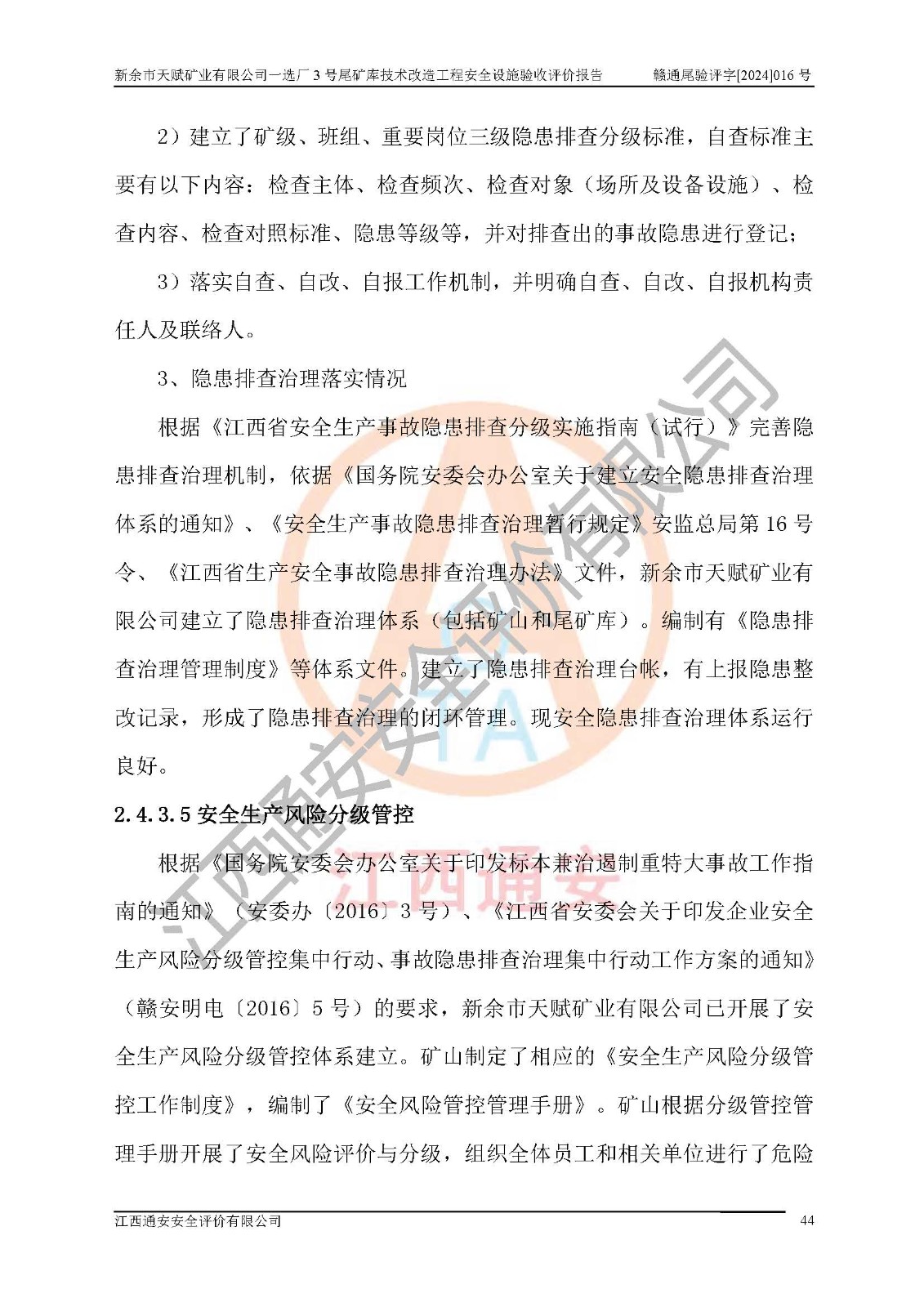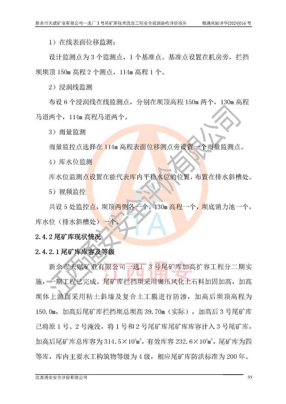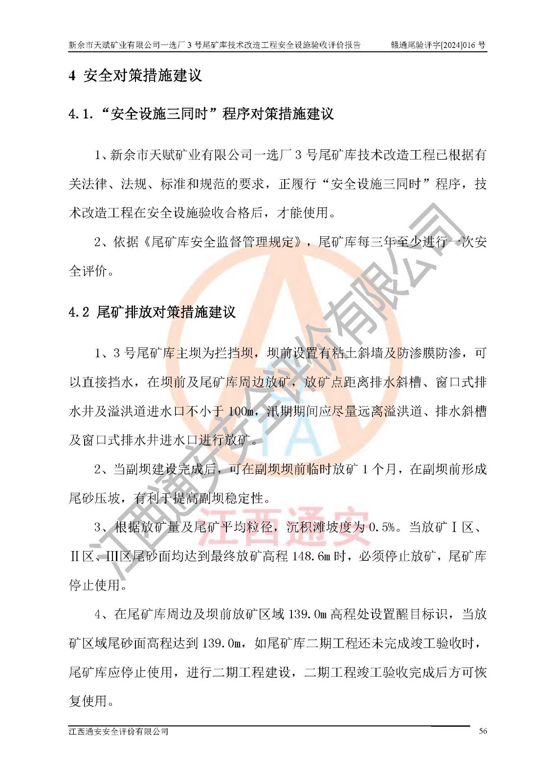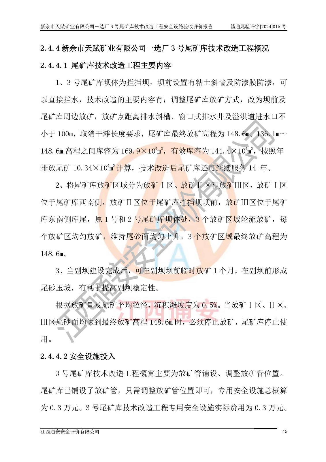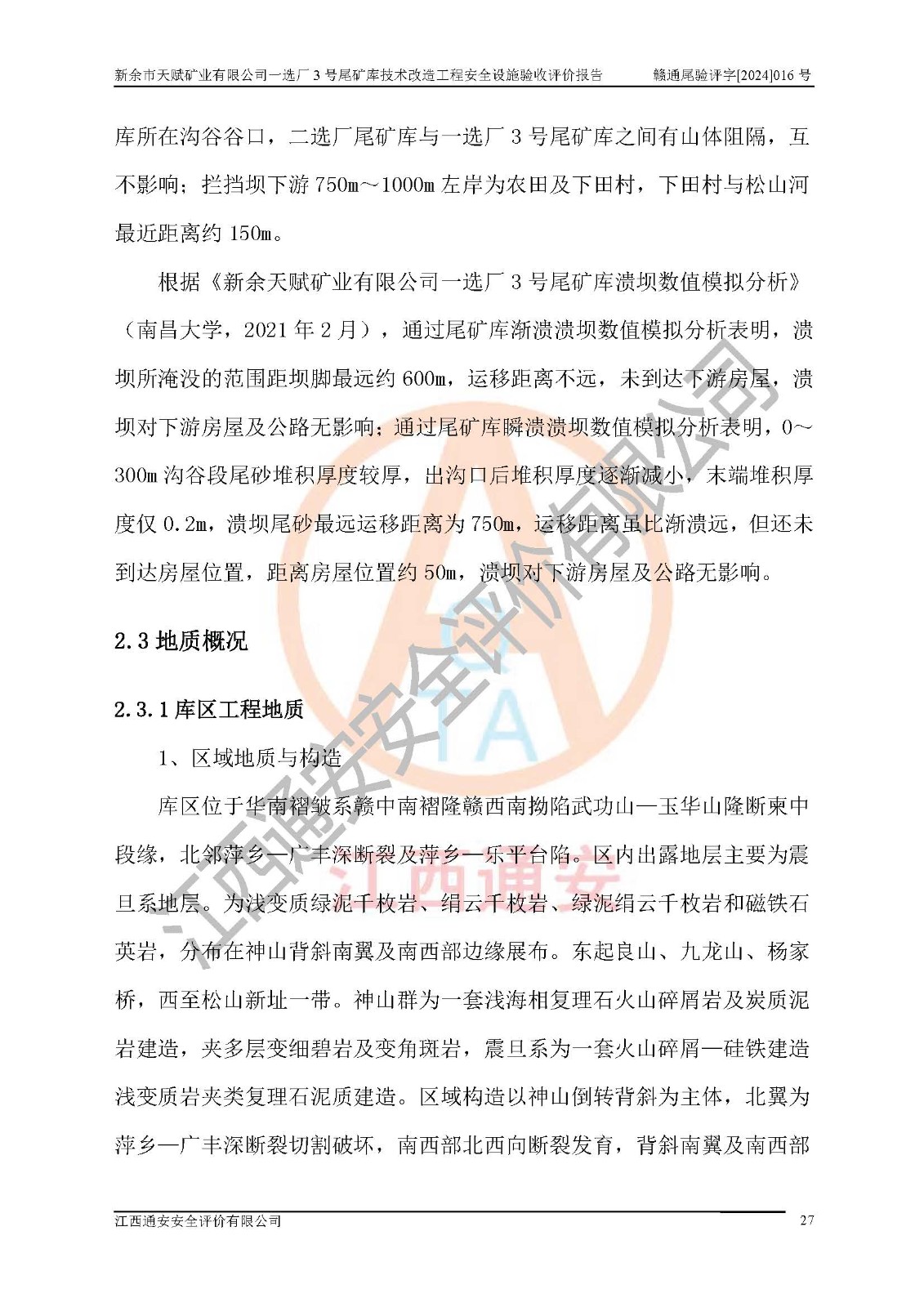 新余市天賦礦業(yè)有限公司一選廠3號(hào)尾礦庫(kù)位于江西省分宜縣鈐山鎮(zhèn)境內(nèi),屬鈐山鎮(zhèn)管轄,有鄉(xiāng)村公路相通,交通較為方便。3號(hào)尾礦庫(kù)壩頂中心點(diǎn)地理坐標(biāo)為:X=3058292,Y=38566139。 2008年6月,邯鄲華北冶建工程設(shè)計(jì)有限公司完成了3號(hào)尾礦庫(kù)初步設(shè)計(jì),該尾礦庫(kù)為五等庫(kù),尾礦壩壩型為攔擋壩,一次型機(jī)械碾壓土石壩,排洪系統(tǒng)為溢洪道,排水系統(tǒng)為排水斜槽+排水管+消力池。2010年7月原江西省安全生產(chǎn)監(jiān)督管理局組織專家對(duì)該尾礦庫(kù)進(jìn)行竣工驗(yàn)收,對(duì)驗(yàn)收過(guò)程中發(fā)現(xiàn)的問(wèn)題,建設(shè)單位積極整改,整改完成后通過(guò)了竣工驗(yàn)收,并取得了安全生產(chǎn)許可證。為了礦山的可持續(xù)性發(fā)展,2012年委托金建工程設(shè)計(jì)有限公司對(duì)3號(hào)尾礦庫(kù)進(jìn)行加高擴(kuò)容設(shè)計(jì),2013年2月,金建工程設(shè)計(jì)有限公司完成了該尾礦庫(kù)加高擴(kuò)容可行性研究報(bào)告,2014年2月,原江西省安全生產(chǎn)監(jiān)督管理局組織專家對(duì)金建工程設(shè)計(jì)有限公司編制的3號(hào)尾礦庫(kù)加高擴(kuò)容安全專篇進(jìn)行評(píng)審,2014年6月原江西省安全生產(chǎn)監(jiān)督管理局以贛安監(jiān)非煤項(xiàng)目設(shè)審〔2014〕30號(hào)對(duì)3號(hào)尾礦庫(kù)加高擴(kuò)容安全專篇進(jìn)行批復(fù),3號(hào)尾礦庫(kù)加高擴(kuò)容工程分二期實(shí)施,一期工程由江西南方礦山建設(shè)有限公司進(jìn)行施工,江西省新大地建設(shè)監(jiān)理有限公司進(jìn)行監(jiān)理,該工程(一期工程)已于2018年8月底完工,2021年3月完成一期工程竣工驗(yàn)收,2021年8月19日取得了江西省應(yīng)急管理廳下發(fā)的尾礦庫(kù)安全生產(chǎn)許可證(證號(hào):(贛)FM 安許證字[2021]M1790 號(hào)),安全生產(chǎn)許可證**期為2021年8月19日至2024年8月18 日。 由于選廠對(duì)尾砂進(jìn)行分級(jí),粗尾砂外賣,細(xì)粒尾砂排入尾礦庫(kù),因入庫(kù)尾砂粒度變細(xì),尾砂灘面坡度較緩,造成壩前干灘長(zhǎng)度不滿足設(shè)計(jì)要求,2022年6月,分宜縣應(yīng)急管理局在對(duì)尾礦庫(kù)進(jìn)行檢查時(shí),發(fā)現(xiàn)了上述問(wèn)題(詳見(jiàn)附件安全生產(chǎn)行政執(zhí)法文書(shū)),為了解決上述問(wèn)題,使尾礦庫(kù)運(yùn)行滿足設(shè)計(jì)要求,因此需要對(duì)3號(hào)尾礦庫(kù)進(jìn)行技術(shù)改造。 2022年12月金建工程設(shè)計(jì)有限公司出具了《新余市天賦礦業(yè)有限公司一選廠3號(hào)尾礦庫(kù)技術(shù)改造工程安全設(shè)施設(shè)計(jì)》,并于2023年1月12日取得《江西省應(yīng)急管理廳關(guān)于新余市天賦礦業(yè)有限公司一選廠3號(hào)尾礦庫(kù)技術(shù)改造工程安全設(shè)施設(shè)計(jì)審查的批復(fù)》(贛應(yīng)急非煤項(xiàng)目設(shè)審[2023]2號(hào))。因新余市天賦礦業(yè)有限公司綠色礦山建設(shè)原因選礦廠一直半停產(chǎn)狀態(tài),導(dǎo)致尾礦庫(kù)技術(shù)改造工程未能完成建設(shè)并沒(méi)有及時(shí)驗(yàn)收,現(xiàn)已完成了尾礦庫(kù)技術(shù)改造工程施工建設(shè)工作,尾礦庫(kù)技術(shù)改造工程2024年8月21日已完工,現(xiàn)進(jìn)入驗(yàn)收程序。 |
