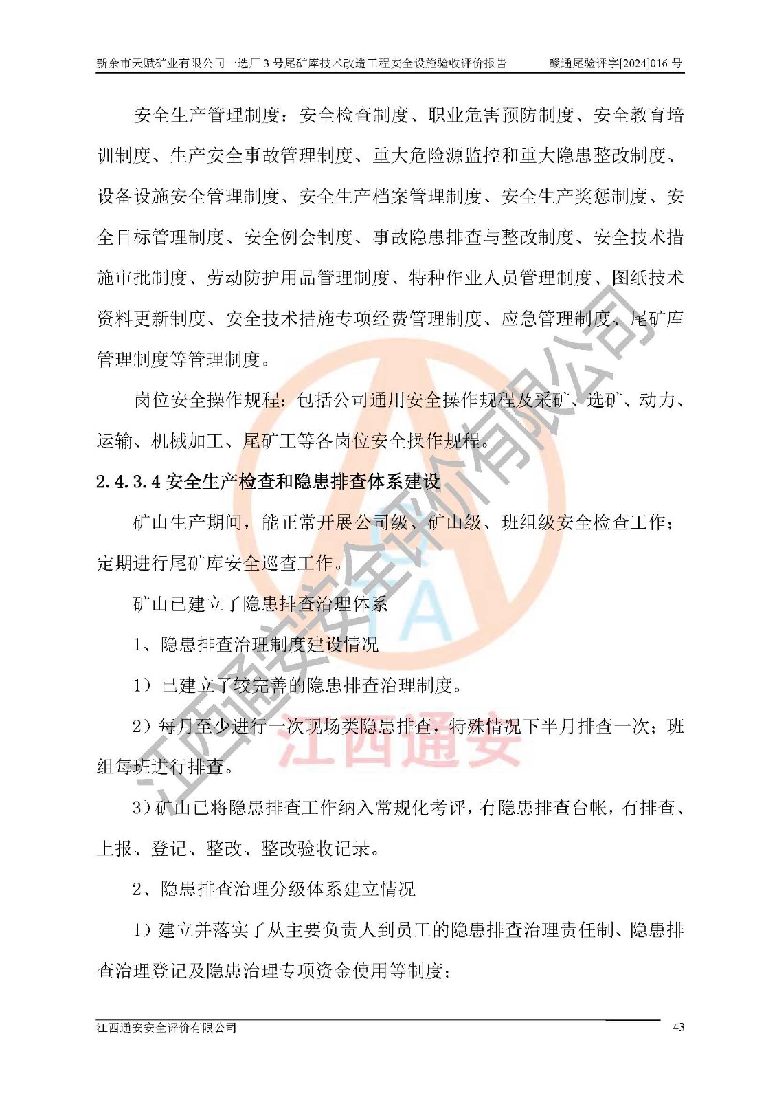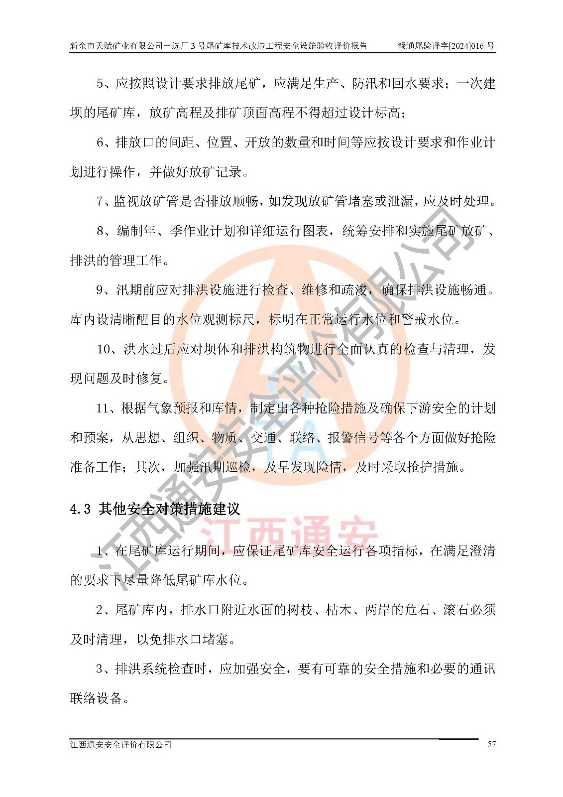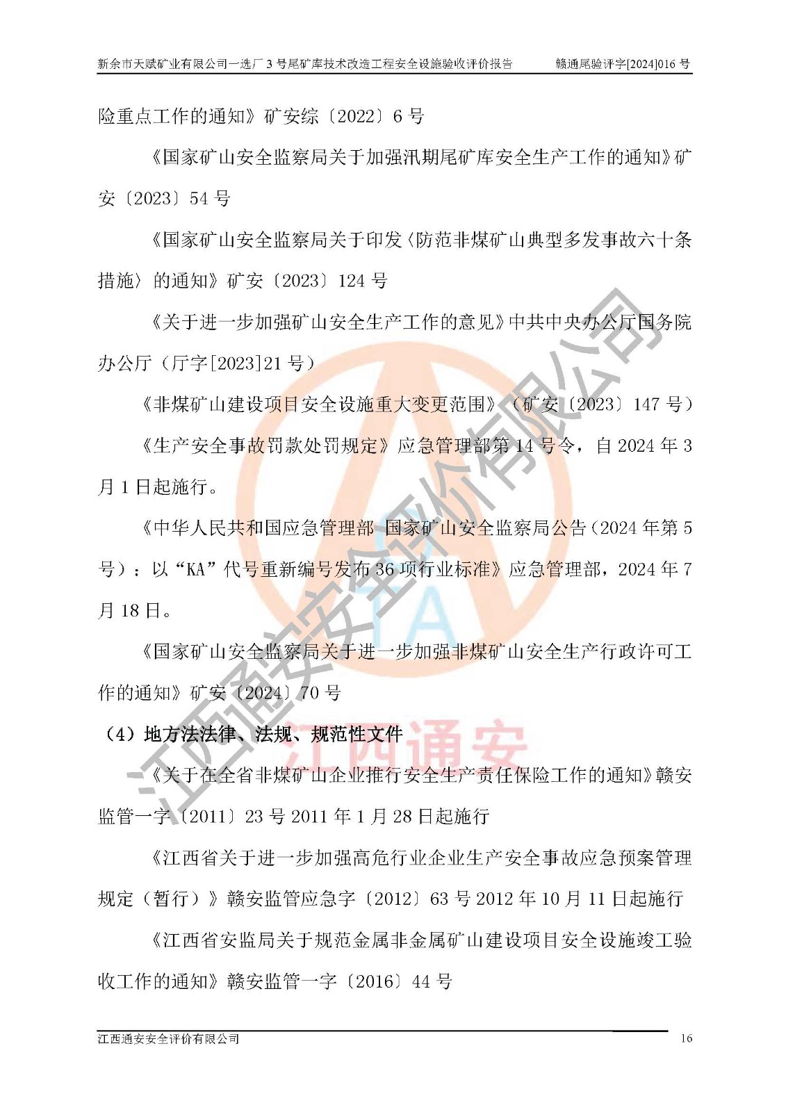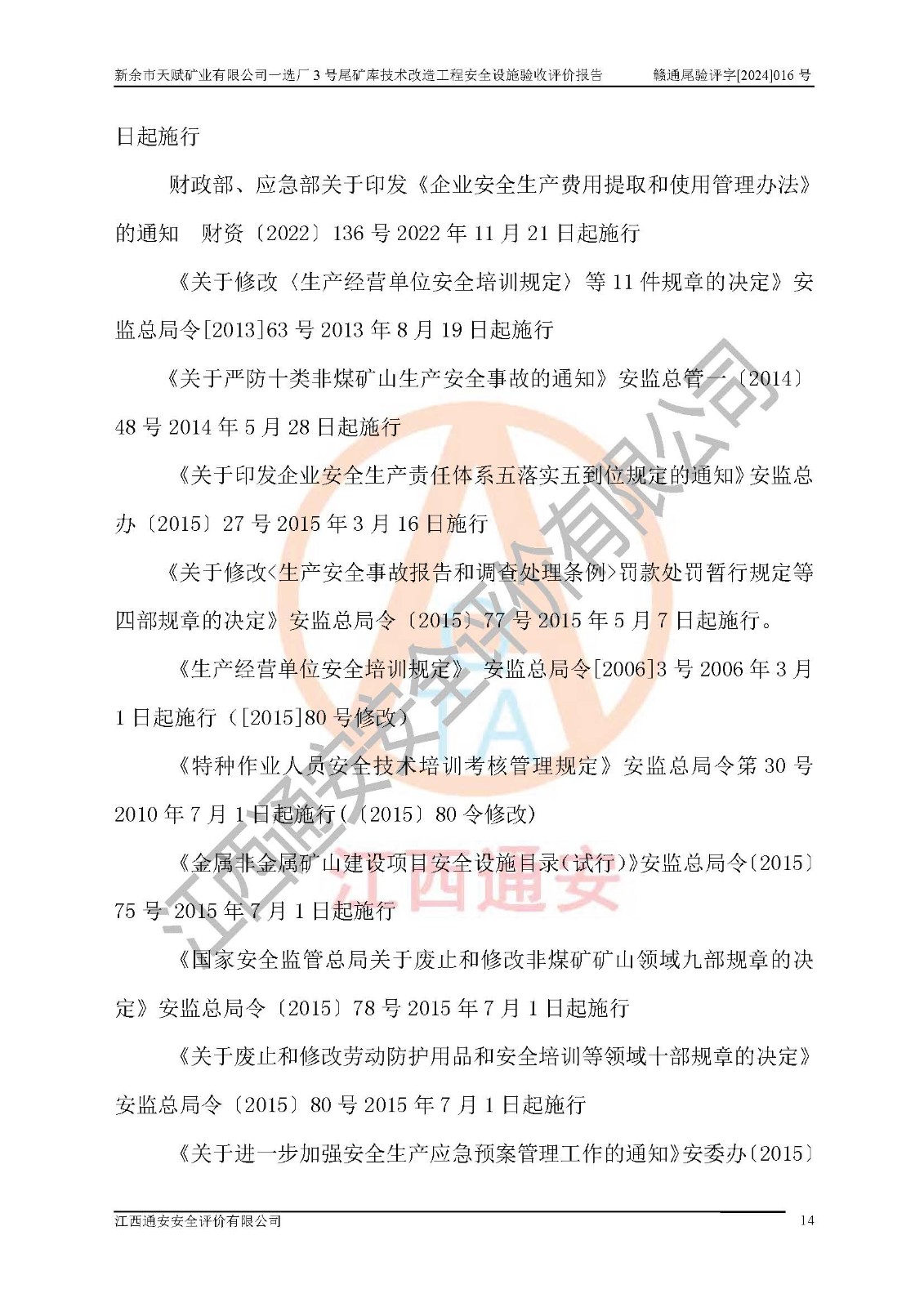 新余市天賦礦業(yè)有限公司一選廠3號(hào)尾礦庫(kù)位于江西省分宜縣鈐山鎮(zhèn)境內(nèi),屬鈐山鎮(zhèn)管轄,有鄉(xiāng)村公路相通,交通較為方便。3號(hào)尾礦庫(kù)壩頂中心點(diǎn)地理坐標(biāo)為:X=3058292,Y=38566139。 2008年6月,邯鄲華北冶建工程設(shè)計(jì)有限公司完成了3號(hào)尾礦庫(kù)初步設(shè)計(jì),該尾礦庫(kù)為五等庫(kù),尾礦壩壩型為攔擋壩,一次型機(jī)械碾壓土石壩,排洪系統(tǒng)為溢洪道,排水系統(tǒng)為排水斜槽+排水管+消力池。2010年7月原江西省安全生產(chǎn)監(jiān)督管理局組織專家對(duì)該尾礦庫(kù)進(jìn)行竣工驗(yàn)收,對(duì)驗(yàn)收過(guò)程中發(fā)現(xiàn)的問(wèn)題,建設(shè)單位積極整改,整改完成后通過(guò)了竣工驗(yàn)收,并取得了安全生產(chǎn)許可證。為了礦山的可持續(xù)性發(fā)展,2012年委托金建工程設(shè)計(jì)有限公司對(duì)3號(hào)尾礦庫(kù)進(jìn)行加高擴(kuò)容設(shè)計(jì),2013年2月,金建工程設(shè)計(jì)有限公司完成了該尾礦庫(kù)加高擴(kuò)容可行性研究報(bào)告,2014年2月,原江西省安全生產(chǎn)監(jiān)督管理局組織專家對(duì)金建工程設(shè)計(jì)有限公司編制的3號(hào)尾礦庫(kù)加高擴(kuò)容安全專篇進(jìn)行評(píng)審,2014年6月原江西省安全生產(chǎn)監(jiān)督管理局以贛安監(jiān)非煤項(xiàng)目設(shè)審〔2014〕30號(hào)對(duì)3號(hào)尾礦庫(kù)加高擴(kuò)容安全專篇進(jìn)行批復(fù),3號(hào)尾礦庫(kù)加高擴(kuò)容工程分二期實(shí)施,一期工程由江西南方礦山建設(shè)有限公司進(jìn)行施工,江西省新大地建設(shè)監(jiān)理有限公司進(jìn)行監(jiān)理,該工程(一期工程)已于2018年8月底完工,2021年3月完成一期工程竣工驗(yàn)收,2021年8月19日取得了江西省應(yīng)急管理廳下發(fā)的尾礦庫(kù)安全生產(chǎn)許可證(證號(hào):(贛)FM 安許證字[2021]M1790 號(hào)),安全生產(chǎn)許可證**期為2021年8月19日至2024年8月18 日。 由于選廠對(duì)尾砂進(jìn)行分級(jí),粗尾砂外賣,細(xì)粒尾砂排入尾礦庫(kù),因入庫(kù)尾砂粒度變細(xì),尾砂灘面坡度較緩,造成壩前干灘長(zhǎng)度不滿足設(shè)計(jì)要求,2022年6月,分宜縣應(yīng)急管理局在對(duì)尾礦庫(kù)進(jìn)行檢查時(shí),發(fā)現(xiàn)了上述問(wèn)題(詳見(jiàn)附件安全生產(chǎn)行政執(zhí)法文書(shū)),為了解決上述問(wèn)題,使尾礦庫(kù)運(yùn)行滿足設(shè)計(jì)要求,因此需要對(duì)3號(hào)尾礦庫(kù)進(jìn)行技術(shù)改造。 2022年12月金建工程設(shè)計(jì)有限公司出具了《新余市天賦礦業(yè)有限公司一選廠3號(hào)尾礦庫(kù)技術(shù)改造工程安全設(shè)施設(shè)計(jì)》,并于2023年1月12日取得《江西省應(yīng)急管理廳關(guān)于新余市天賦礦業(yè)有限公司一選廠3號(hào)尾礦庫(kù)技術(shù)改造工程安全設(shè)施設(shè)計(jì)審查的批復(fù)》(贛應(yīng)急非煤項(xiàng)目設(shè)審[2023]2號(hào))。因新余市天賦礦業(yè)有限公司綠色礦山建設(shè)原因選礦廠一直半停產(chǎn)狀態(tài),導(dǎo)致尾礦庫(kù)技術(shù)改造工程未能完成建設(shè)并沒(méi)有及時(shí)驗(yàn)收,現(xiàn)已完成了尾礦庫(kù)技術(shù)改造工程施工建設(shè)工作,尾礦庫(kù)技術(shù)改造工程2024年8月21日已完工,現(xiàn)進(jìn)入驗(yàn)收程序。 |