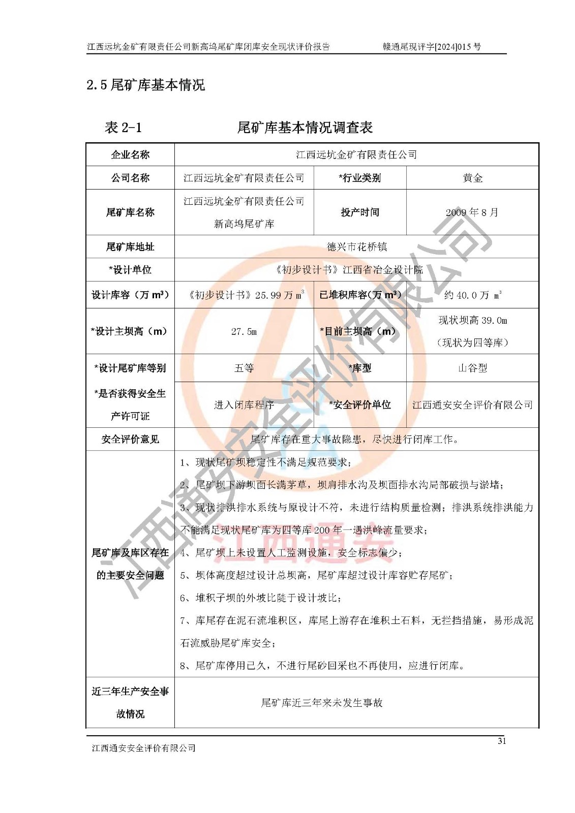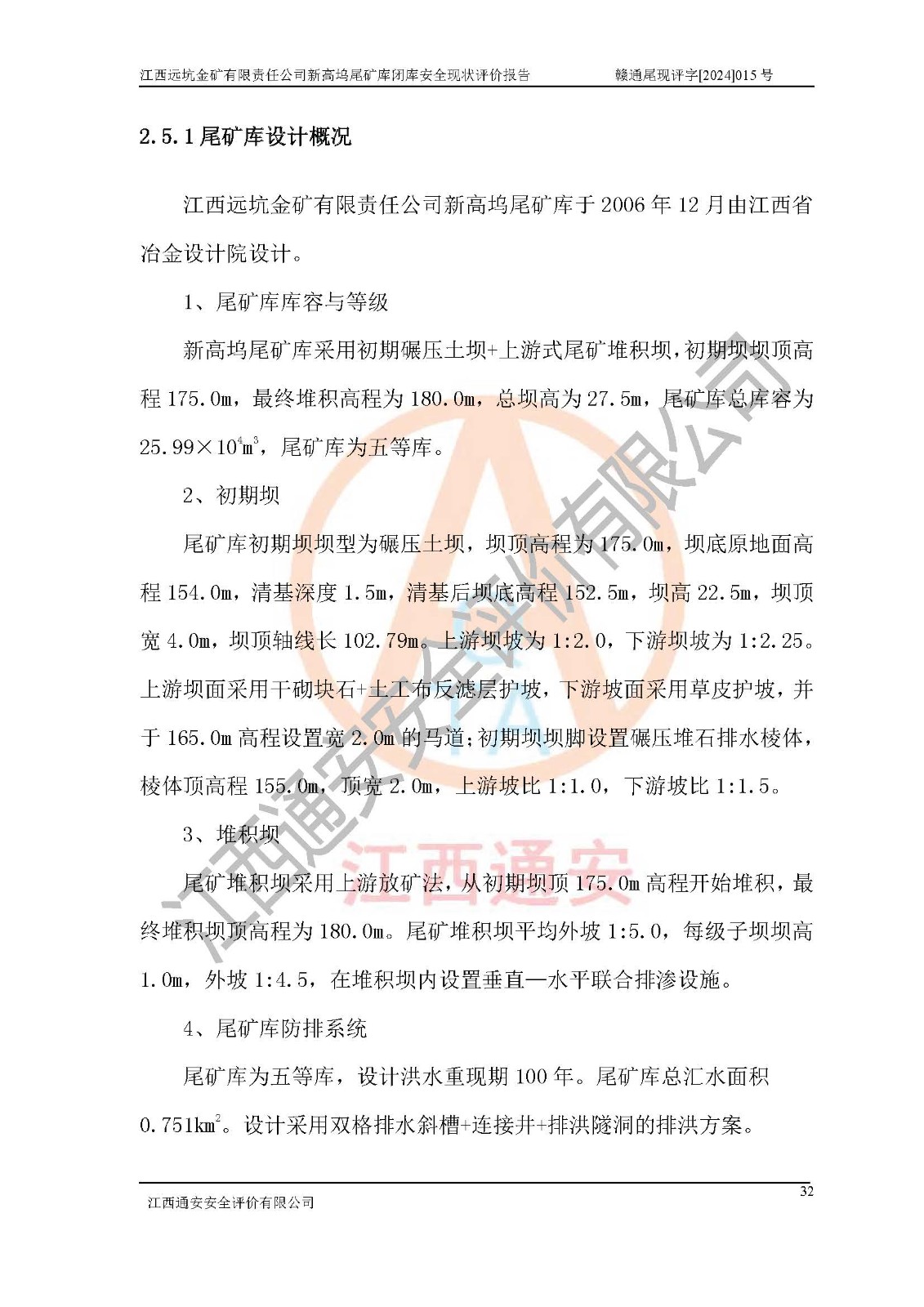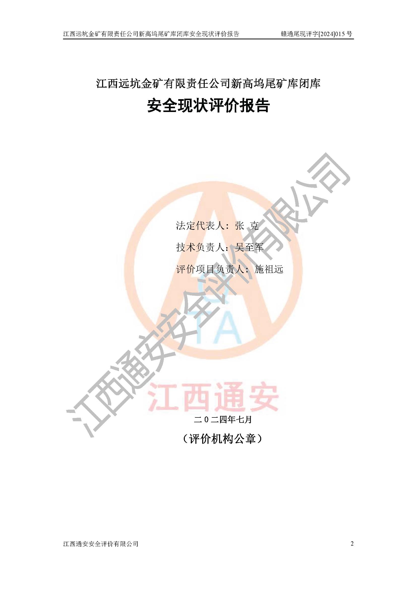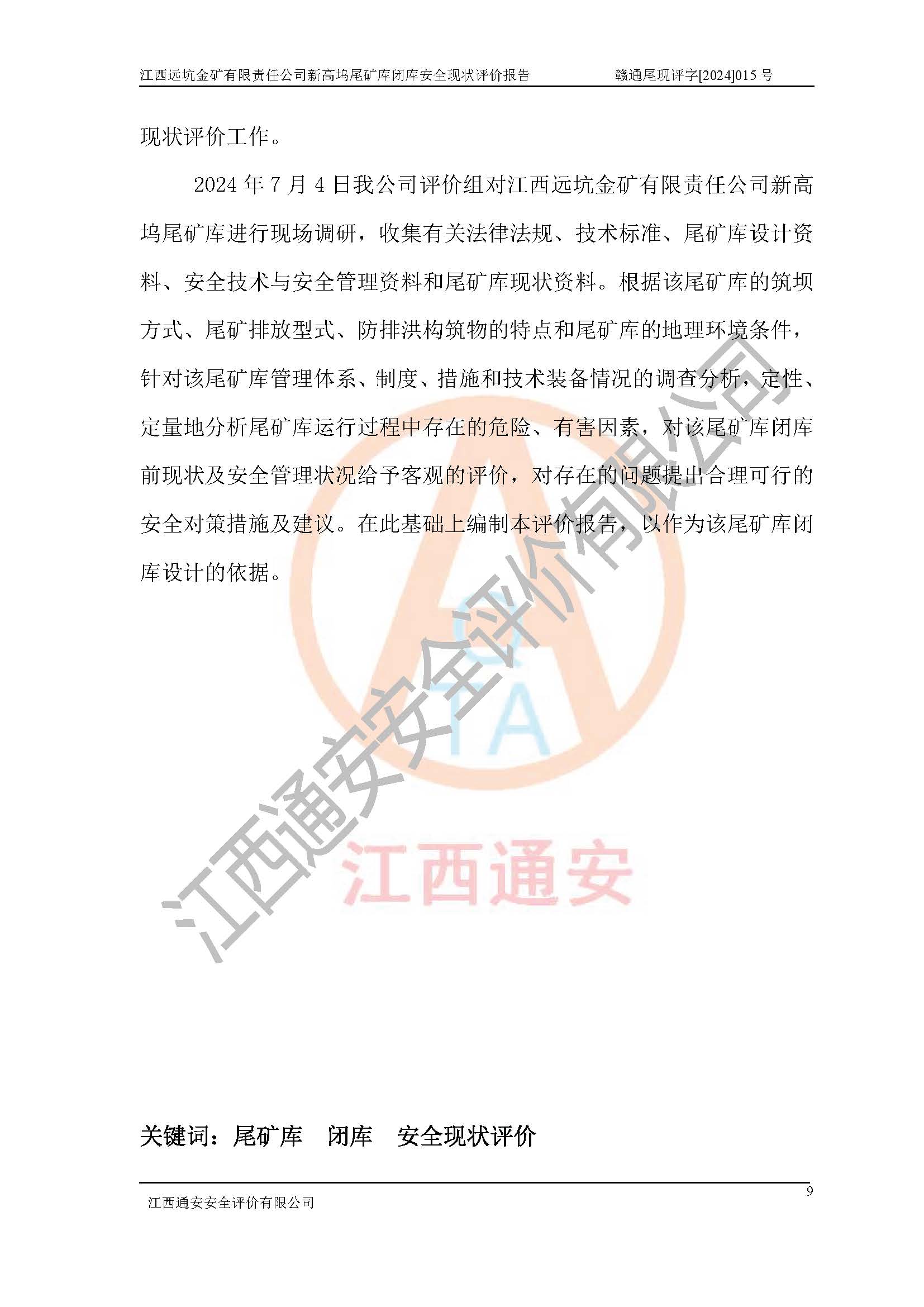 評價報告名稱 | 江西遠坑金礦有限責(zé)任公司新高塢尾礦庫閉庫現(xiàn)狀評價報告 | |||